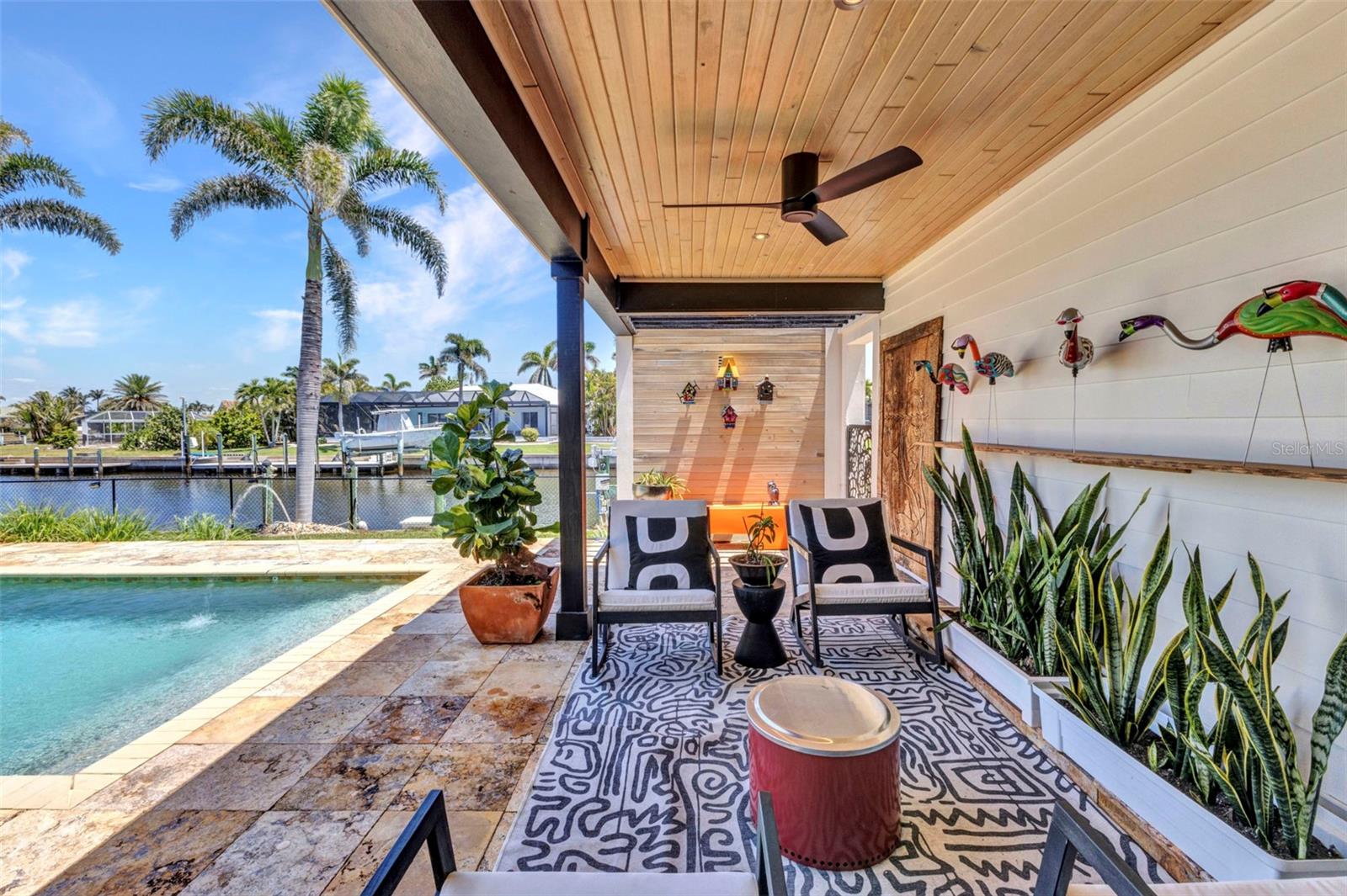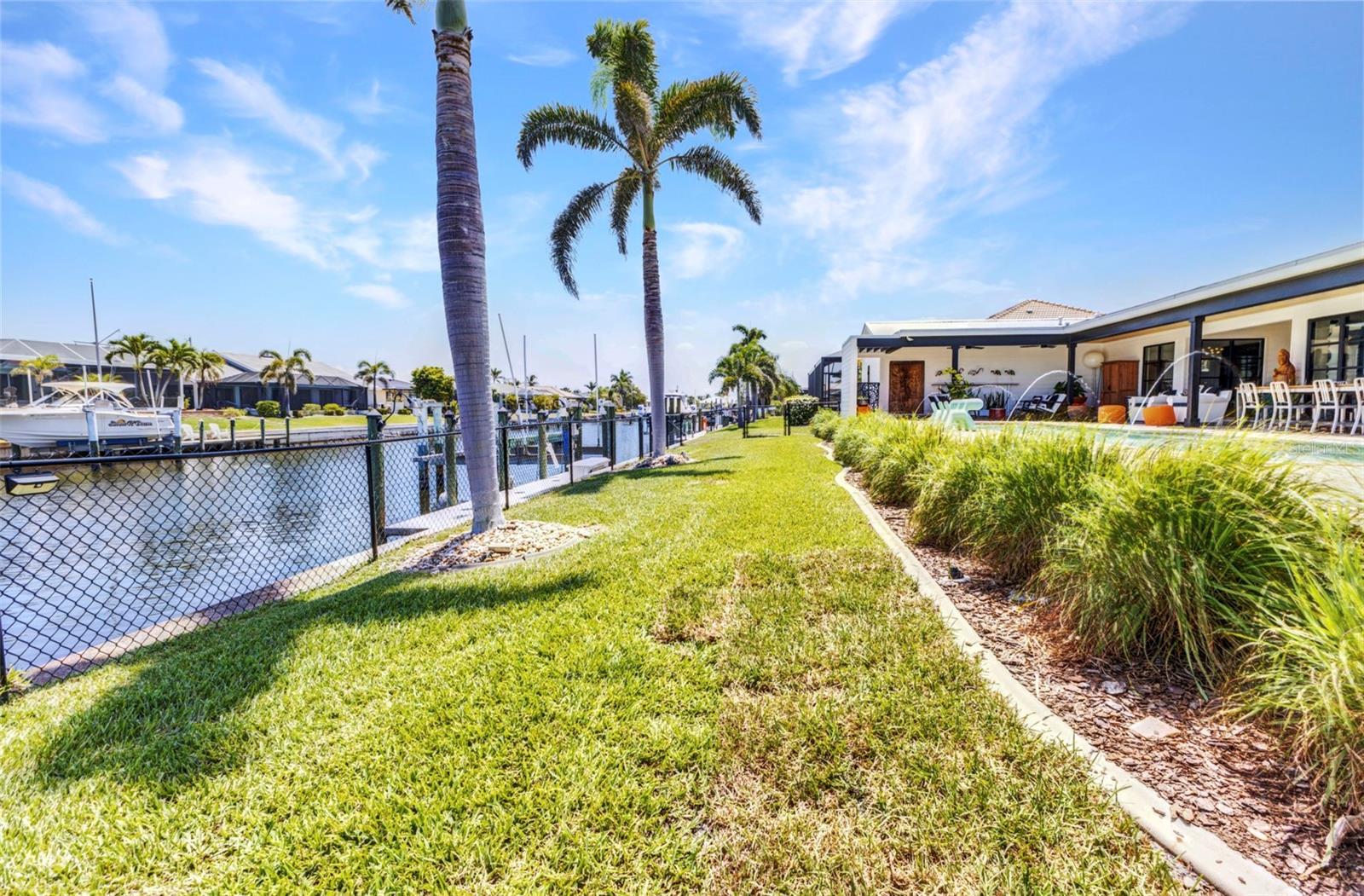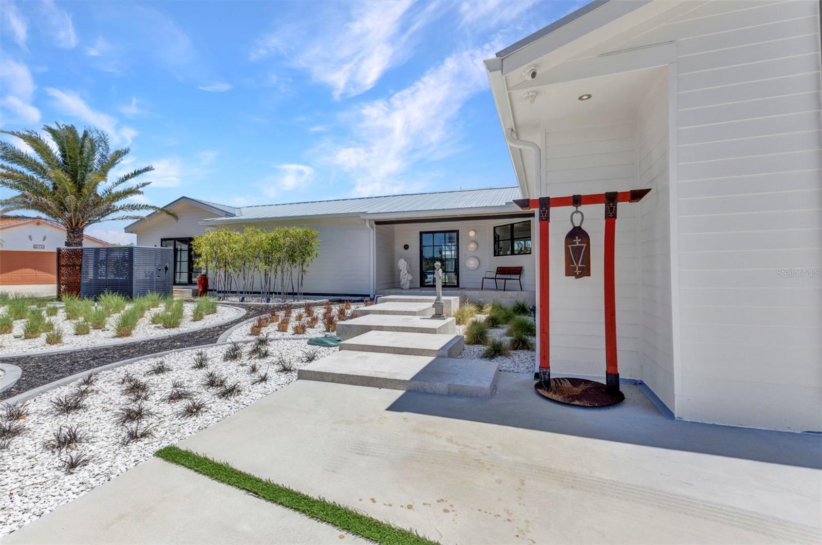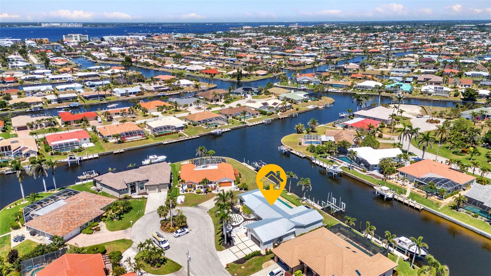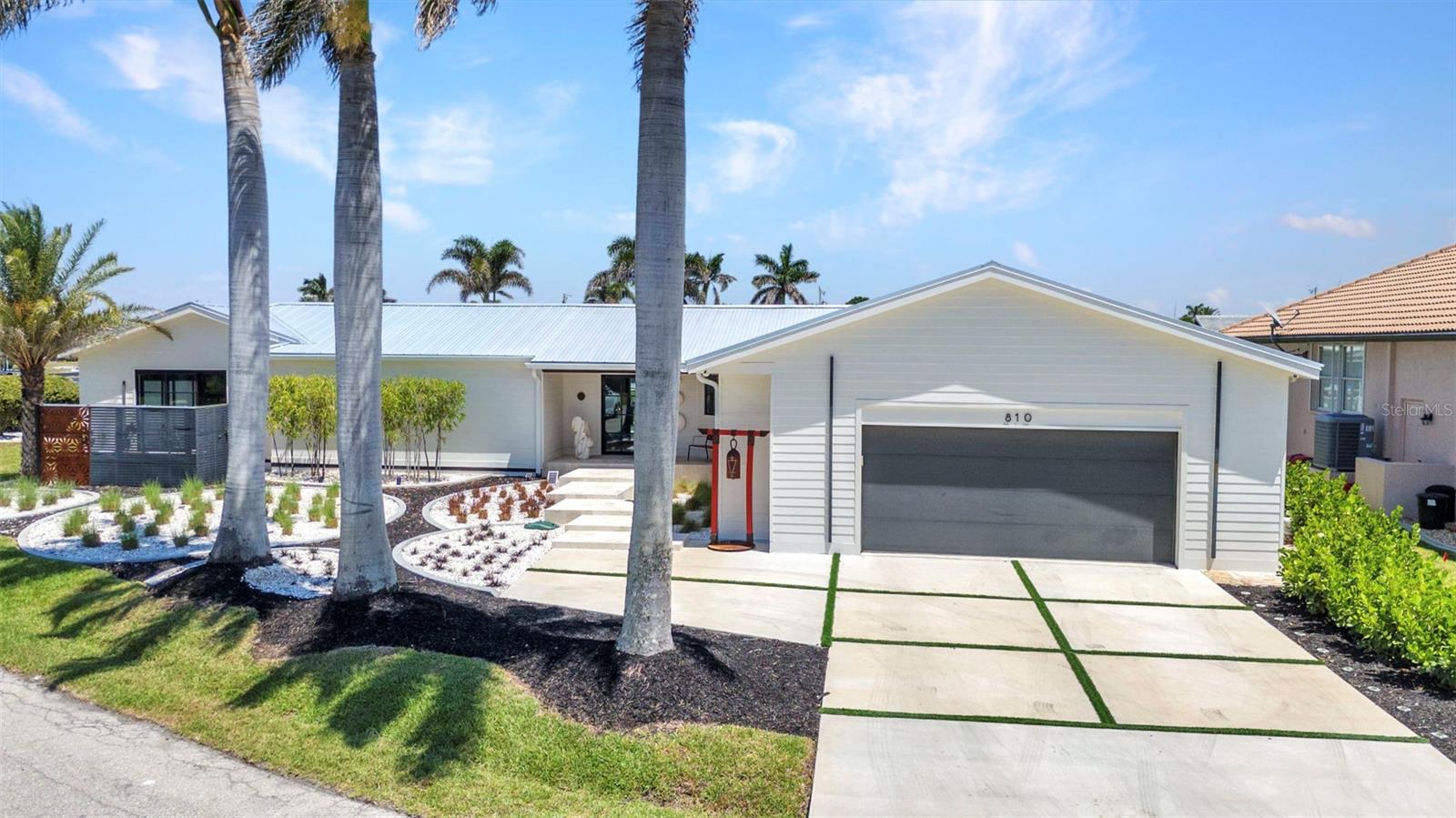 ... ALL THE THINGS! Exquisite Custom Rebuild – Modern Coastal Elegance with Unmatched Structural Integrity. Completely reimagined from the slab up in 2023/2024, this 3-bedroom, 2-bath home offers 2,675 square feet of luxury living with a focus on strength, sophistication, and seamless indoor-outdoor living. Built atop a 4-course stem wall at 9.6' elevation, this residence boasts unparalleled structural integrity with a standing seam metal roof (2024) tied to the foundation via threaded steel rods every 18 inches. Step through one of the two custom steel hurricane-impact pivot doors into a stunning interior featuring vaulted cypress ceilings and French-pattern cream travertine marble flooring. Entertain effortlessly in the chef’s kitchen with JennAir, Bosch, and Fisher Paykel appliances featuring 2 dishwashers, gas range, double wall ovens, warming drawer, a hidden pantry with a second Bosch refrigerator, custom cabinetry, two expansive islands topped with Carrera marble and Brazilian granite, and a striking Picasso-inspired tile backsplash. Walnut live-edge shelving and Picasso inspired wall paper adds a bespoke touch. The open-concept design extends to a spectacular covered lanai with a flat roof (2024), tan travertine marble flooring, and gas hookup ready for a future outdoor kitchen and plenty of shady and sunny seating areas. Overlooking the lanai is a 50’ saltwater lap pool with 4 decorative jets, new variable speed pump (2024), new actuator for pool jets, 2 LED color lights (2024), and electric heater with new control panel (2024), Aqui Link for wireless connection to all pool equipment. Built for resilience and comfort, the home includes: Whole-house 24KW Generac generator (auto switchover) powered by an in-ground 250-gallon LP tank, Hardie Board cement siding and soffits and hurricane-impact windows and doors throughout house, Two AC units with Reme-Halo filters and UV light (2023 & 2024), and two on-demand hot water heaters (electric 2023, LP gas 2024), HALO whole-house water filtration system which will function carefree until 2033, Advanced security system with cameras, audio, and DVD backup Retreat to the luxurious primary suite with a Kohler rain shower, Kohler handheld shower, custom tilework, an infrared sauna and expansive custom cabinetry with his and hers walk in closets. Guest bedrooms and bathroom feature equally high-end finishes and built-in storage. Guest bath has edgeless glass door and Kohler rain shower a private water closet, and large linen closet with built-ins, Outdoors, enjoy the professionally landscaped backyard (fully fenced) maintained by Beautiful Boundaries. Boaters will appreciate the 30’ dock with 30,000 lb boat lift and all-new 2024 electrical. The 32' x 22' garage includes epoxy flooring, wall waterproofing extending up 3', overhead storage, a workshop in a 3rd bay, and a hurricane-rated, custom Clopay door. Sellers are offering a 1 year home warranty for appliances and pool equipment. Buy with confidence. Truly move-in ready, this meticulously designed home delivers peace of mind, exceptional taste, and every modern convenience. Schedule your private showing today.