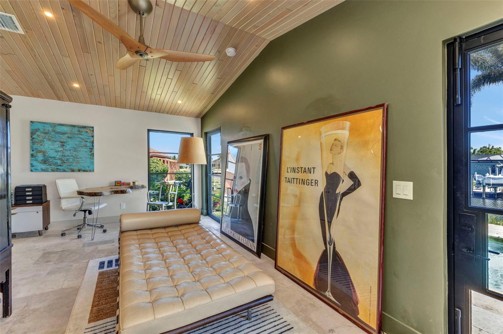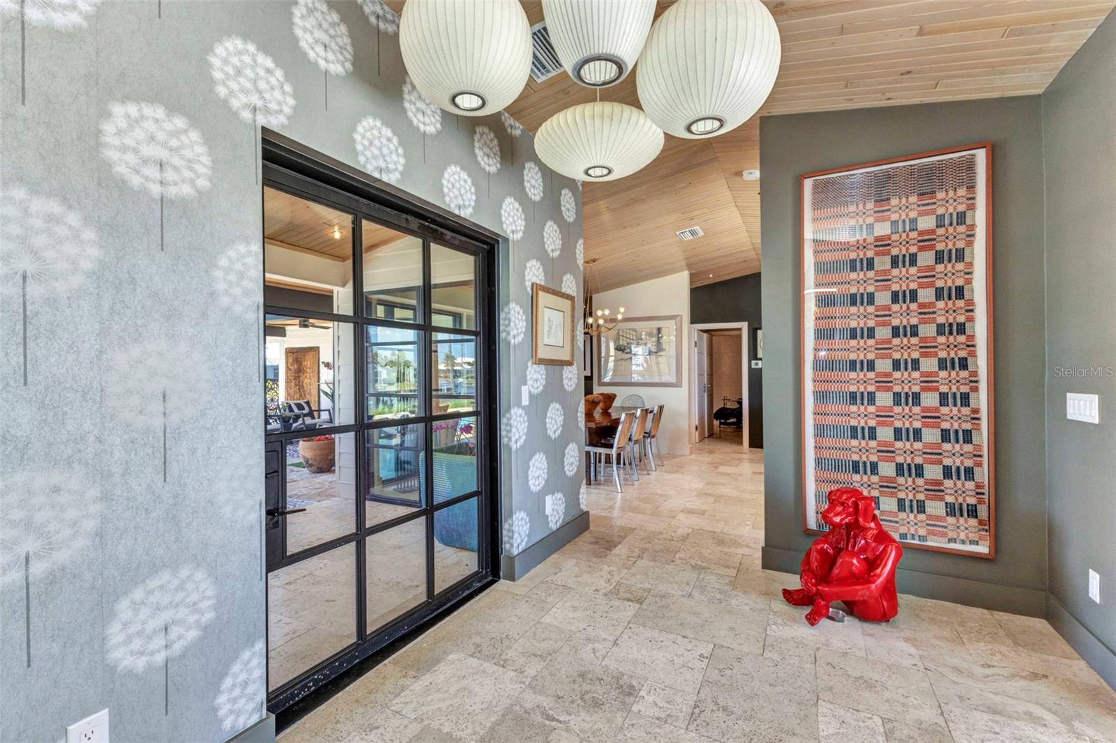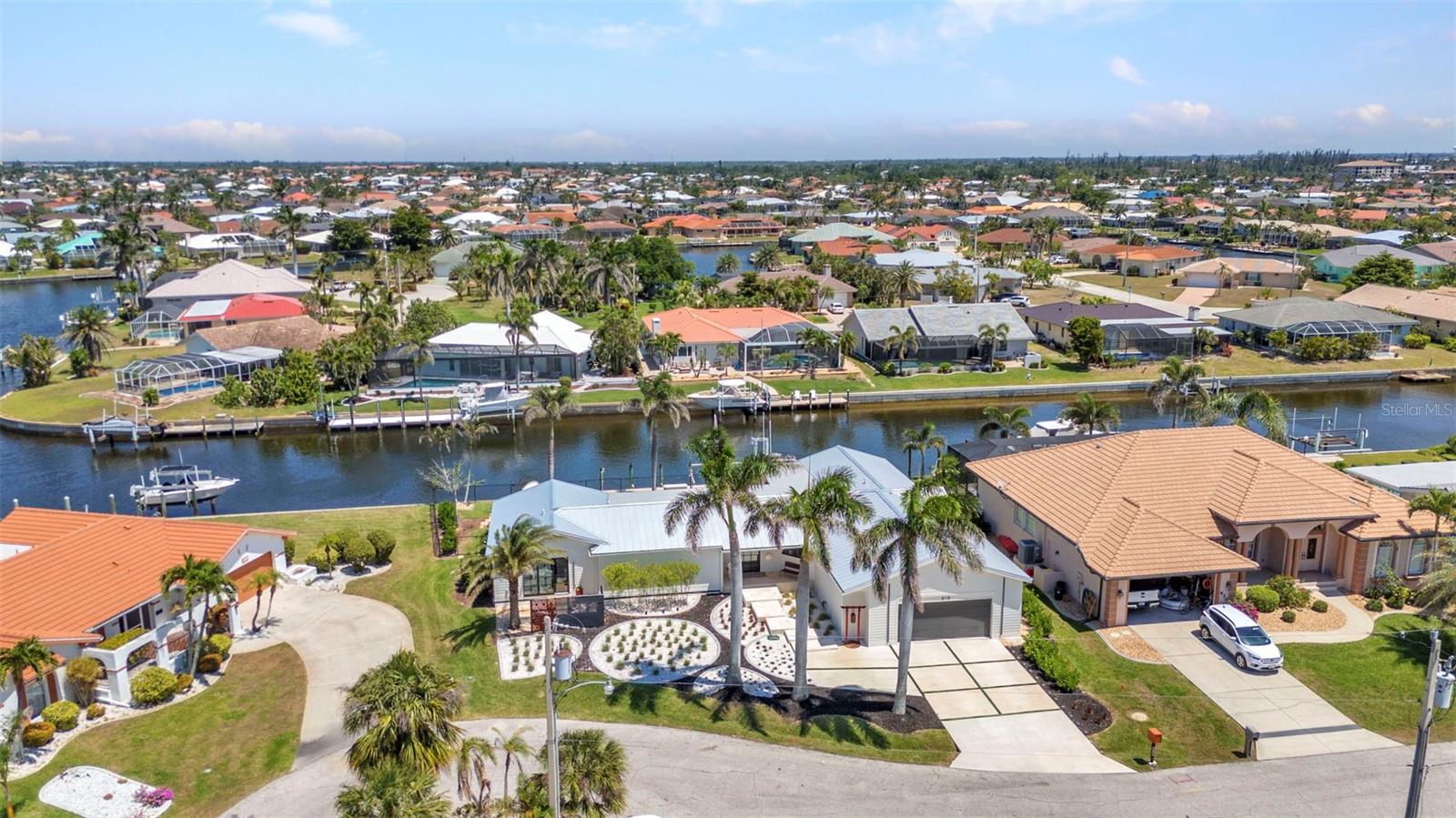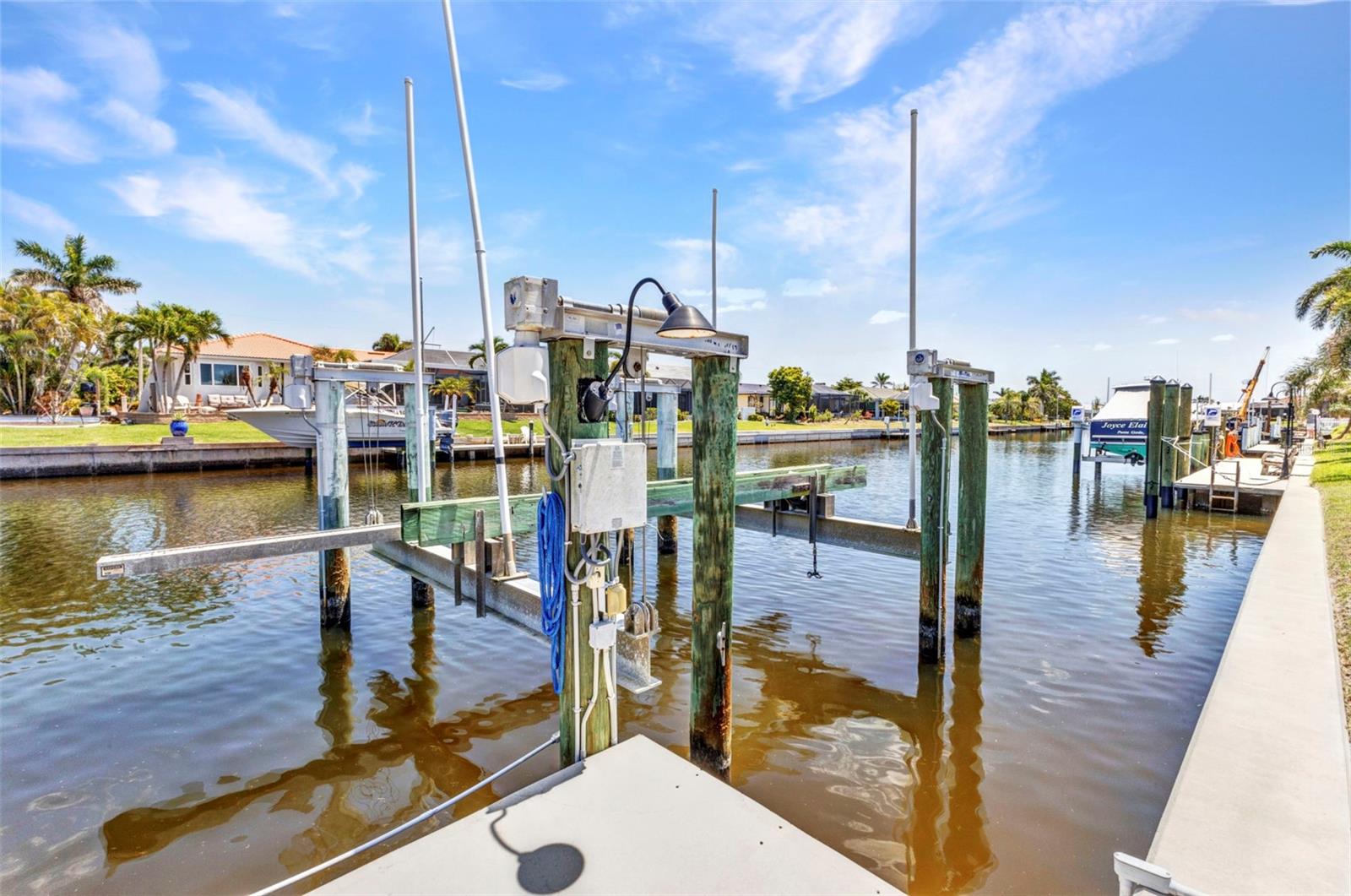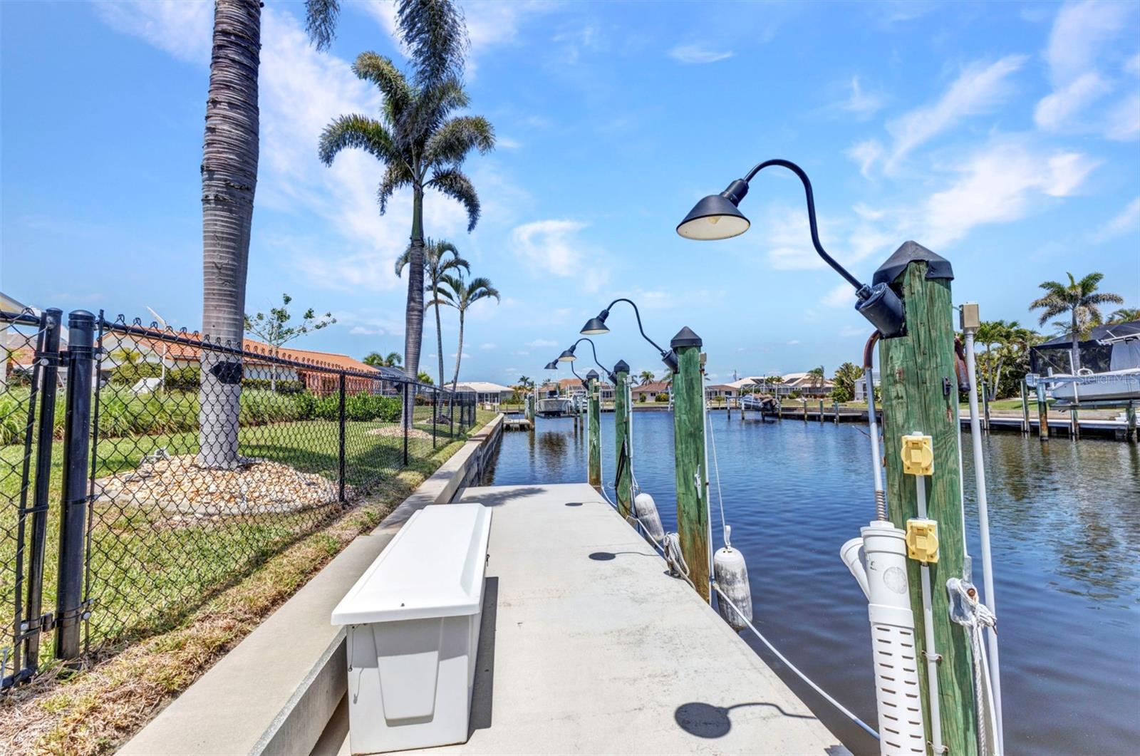 ... ALL THE THINGS! Exquisite Custom Rebuild – Modern Coastal Elegance with Unmatched Structural Integrity. Completely reimagined from the slab up in 2023/2024, this 3-bedroom, 2-bath home offers 2,675 square feet of luxury living with a focus on strength, sophistication, and seamless indoor-outdoor living. Built atop a 4-course stem wall at 9.6' elevation, this residence boasts unparalleled structural integrity with a standing seam metal roof (2024) tied to the foundation via threaded steel rods every 18 inches. Step through one of the two custom steel hurricane-impact pivot doors into a stunning interior featuring vaulted cypress ceilings and French-pattern cream travertine marble flooring. Entertain effortlessly in the chef’s kitchen with JennAir, Bosch, and Fisher Paykel appliances featuring 2 dishwashers, gas range, double wall ovens, warming drawer, a hidden pantry with a second Bosch refrigerator, custom cabinetry, two expansive islands topped with Carrera marble and Brazilian granite, and a striking Picasso-inspired tile backsplash. Walnut live-edge shelving and Picasso inspired wall paper adds a bespoke touch. The open-concept design extends to a spectacular covered lanai with a flat roof (2024), tan travertine marble flooring, and gas hookup ready for a future outdoor kitchen and plenty of shady and sunny seating areas. Overlooking the lanai is a 50’ saltwater lap pool with 4 decorative jets, new variable speed pump (2024), new actuator for pool jets, 2 LED color lights (2024), and electric heater with new control panel (2024), Aqui Link for wireless connection to all pool equipment. Built for resilience and comfort, the home includes: Whole-house 24KW Generac generator (auto switchover) powered by an in-ground 250-gallon LP tank, Hardie Board cement siding and soffits and hurricane-impact windows and doors throughout house, Two AC units with Reme-Halo filters and UV light (2023 & 2024), and two on-demand hot water heaters (electric 2023, LP gas 2024), HALO whole-house water filtration system which will function carefree until 2033, Advanced security system with cameras, audio, and DVD backup Retreat to the luxurious primary suite with a Kohler rain shower, Kohler handheld shower, custom tilework, an infrared sauna and expansive custom cabinetry with his and hers walk in closets. Guest bedrooms and bathroom feature equally high-end finishes and built-in storage. Guest bath has edgeless glass door and Kohler rain shower a private water closet, and large linen closet with built-ins, Outdoors, enjoy the professionally landscaped backyard (fully fenced) maintained by Beautiful Boundaries. Boaters will appreciate the 30’ dock with 30,000 lb boat lift and all-new 2024 electrical. The 32' x 22' garage includes epoxy flooring, wall waterproofing extending up 3', overhead storage, a workshop in a 3rd bay, and a hurricane-rated, custom Clopay door. Sellers are offering a 1 year home warranty for appliances and pool equipment. Buy with confidence. Truly move-in ready, this meticulously designed home delivers peace of mind, exceptional taste, and every modern convenience. Schedule your private showing today.