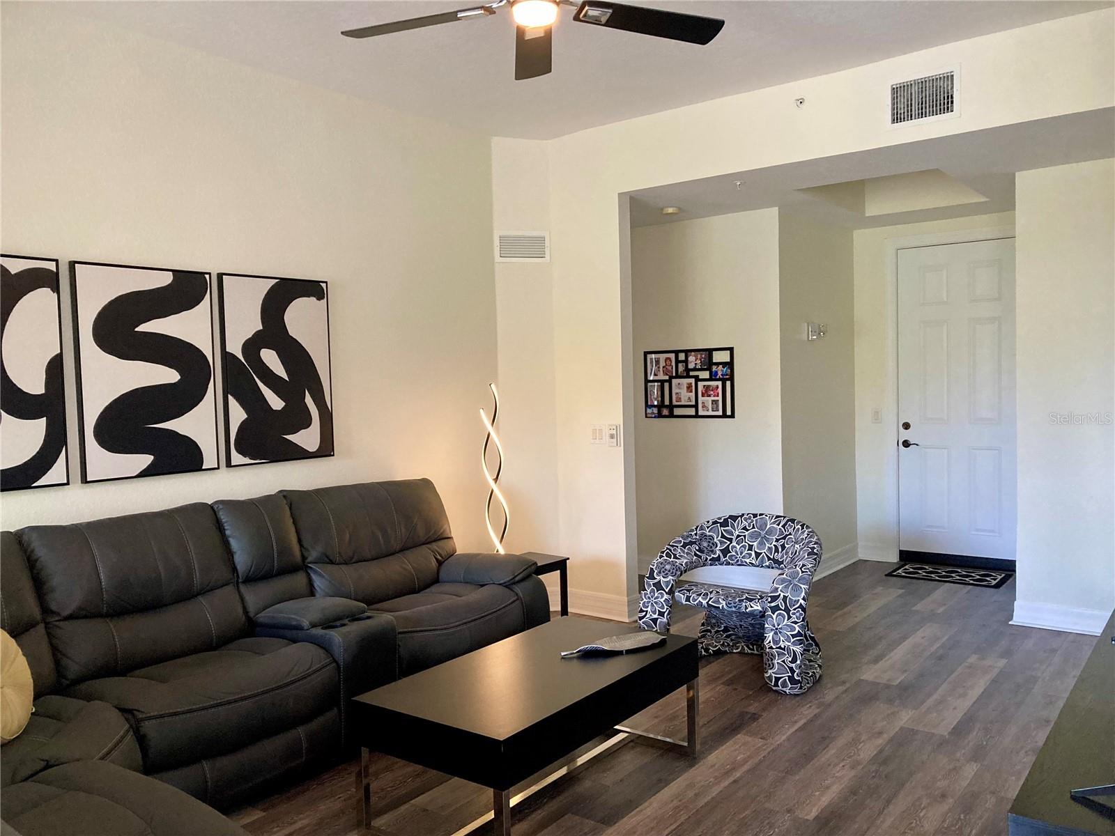 Welcome home to this beautifully updated, light-filled 2-bedroom, 2-bath condo, complete with a private 30ft garage and separate storage unit! A true chef’s kitchen sits at the heart of this home, featuring brand-new 2024 Whirlpool appliances and a stylish glass block backsplash. Enjoy the elegance of vinyl wood flooring, modern light fixtures and décor, soaring 10-foot ceilings, walk-in closets, and the secure comfort of Kevlar lanai screens. The spacious primary suite offers a spa-like ensuite bath and a serene retreat at day’s end. A brand-new Whirlpool washer (2024) and dryer (2021) with a new A/C (2022) add convenience and comfort to everyday living. Experience resort-style living in the exclusive, gated community of Vivante, where beautifully landscaped grounds surround tranquil waters. Residents enjoy access to incredible amenities, including two sparkling pools, a luxurious clubhouse, six Har-Tru tennis courts, a state-of-the-art fitness center with steam room and sauna, scenic walking paths, outdoor fireplace, cabana with gas grills, and even on-site spa services (spa services at an additional fee). Your monthly dues include water, sewer, trash, basic cable, high-speed internet, and full access to all the amenities Vivante has to offer. This condo is perfect for full-time residents or as a seasonal retreat! Ideally located just minutes from downtown Punta Gorda, this is maintenance-free living at its finest!