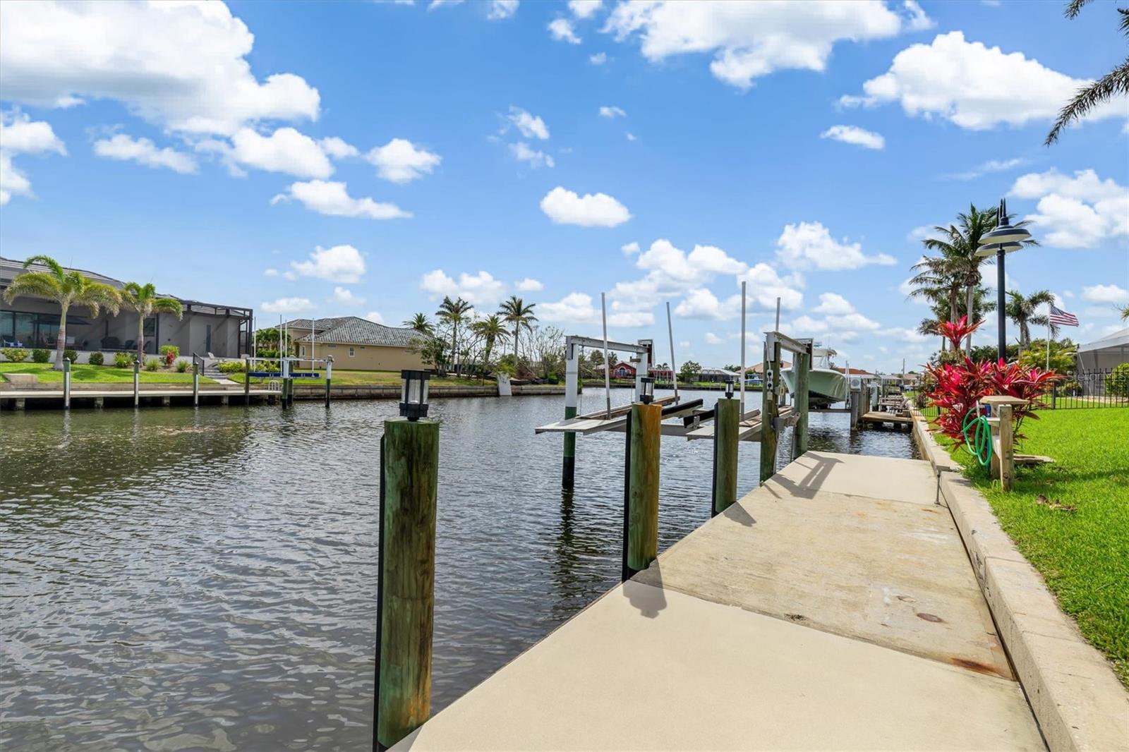 Prepare to be impressed by the pinnacle of peace of mind and relaxation in the highly sought after waterfront community of Punta Gorda Isles. This meticulously updated home boasts an extensive list of high-end improvements inside and out providing unparalleled comfort, security, and true Florida living with direct Gulf access. Not only did it remain HIGH & DRY during the most recent Hurricanes thanks to its SUPERB ELEVATION, it sports phenomenal protection from the elements courtesy of a BRAND NEW METAL-TILE ROOF, FULL HURRICANE IMPACT WINDOWS, a whole house surge protector, and much much more! This luxurious property has something for everyone. Relax out in the extended pool area featuring brand new pavers and pool cage, as you take in the breathtaking canal views. Entertain in the lavish living area. Stay cool as you tinker in comfort in the garage thanks to the high efficiency mini split system, or charge your electric vehicles among the upgraded Gorilla Flooring. Enjoy a serene afternoon on the extended concrete dock or take your boat off the lift and head into the gulf for the perfect Florida Sunset! The opportunities are endless! A whole house security system, kitchen reverse osmosis system, designer closets, new gutters, new dock pilings, and much much more await you! This exceptional waterfront property offers not just a home, but a lifestyle. With its extensive upgrades and prime location, 340 Belaire Ct is a true gem. Don't miss the opportunity to make this your own piece of paradise! Schedule your private showing today!