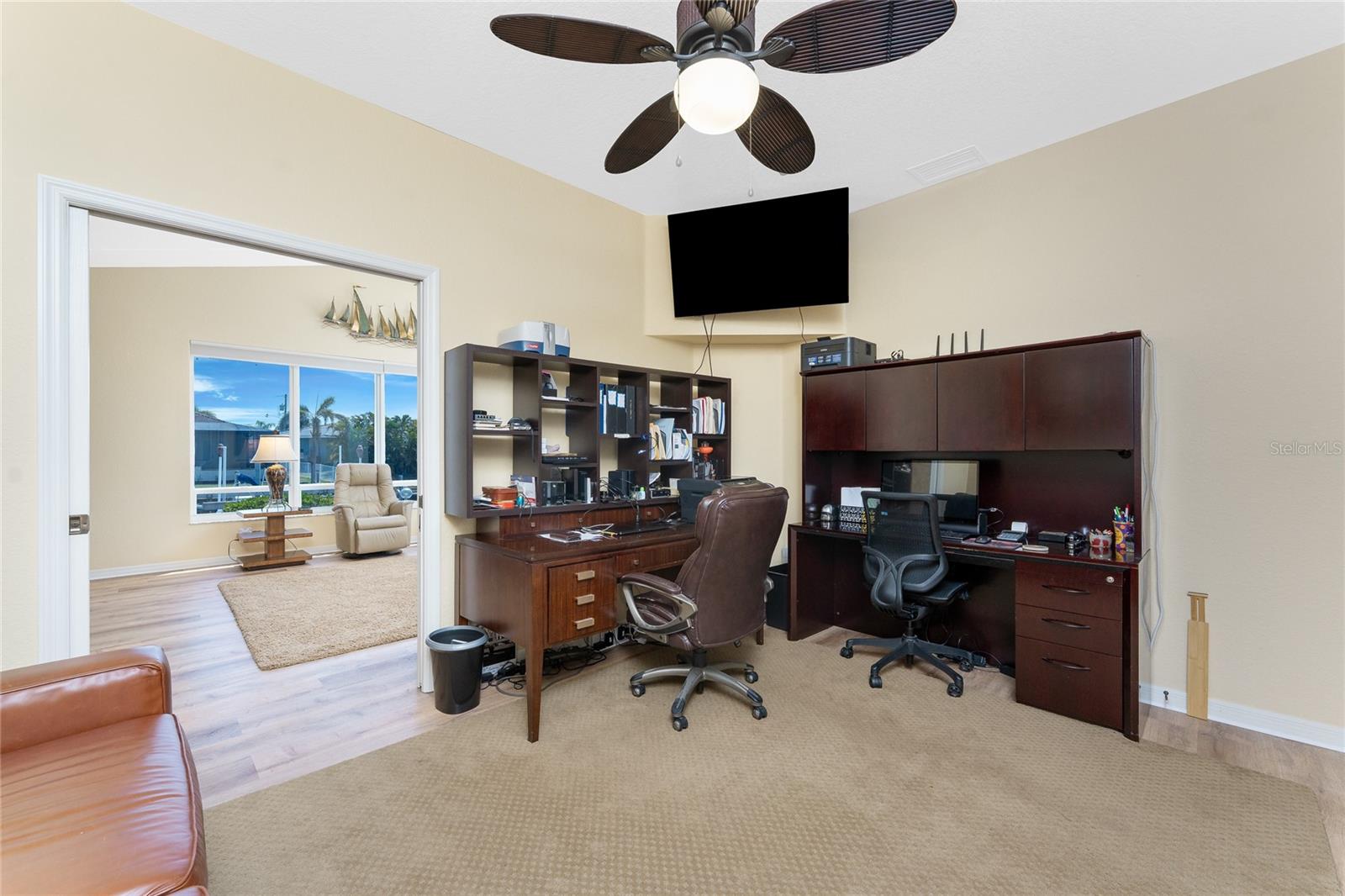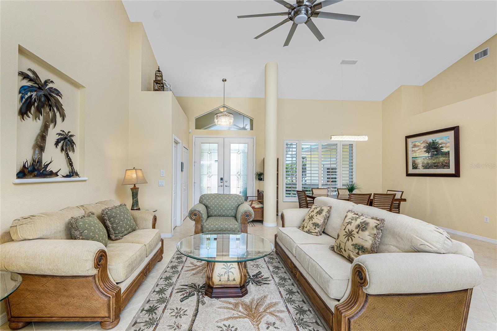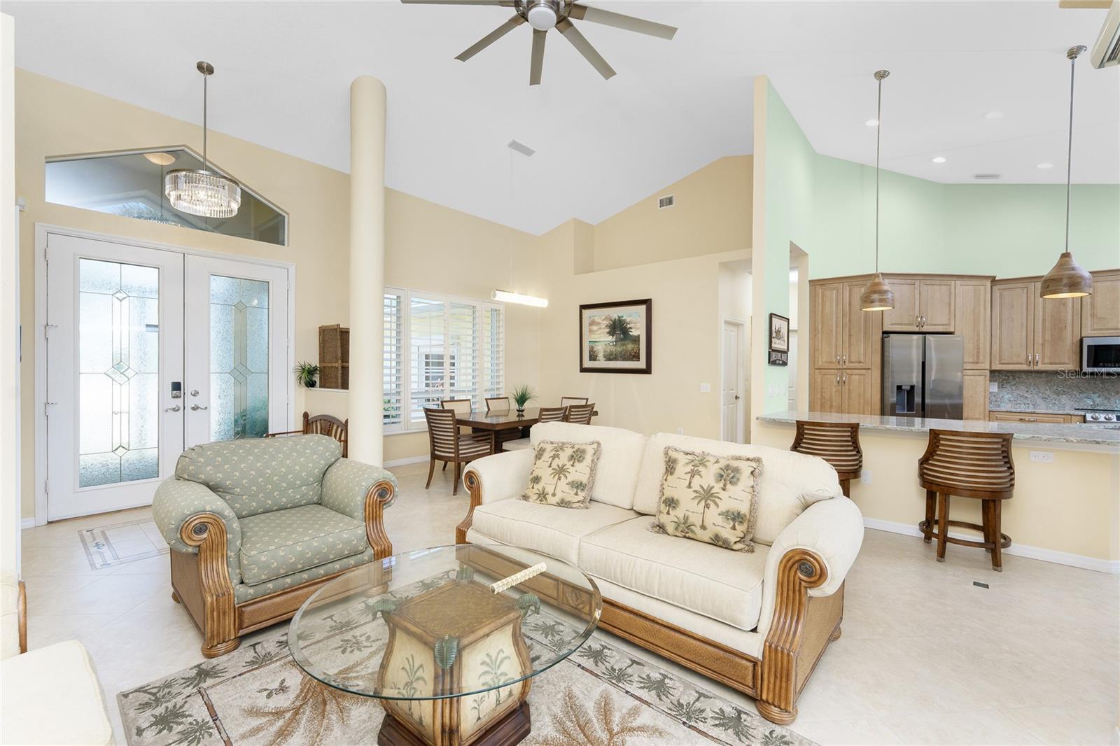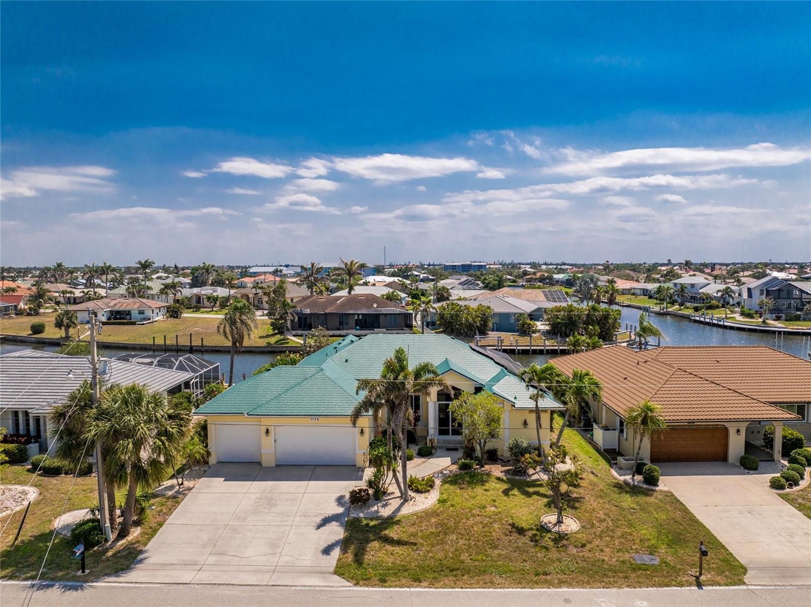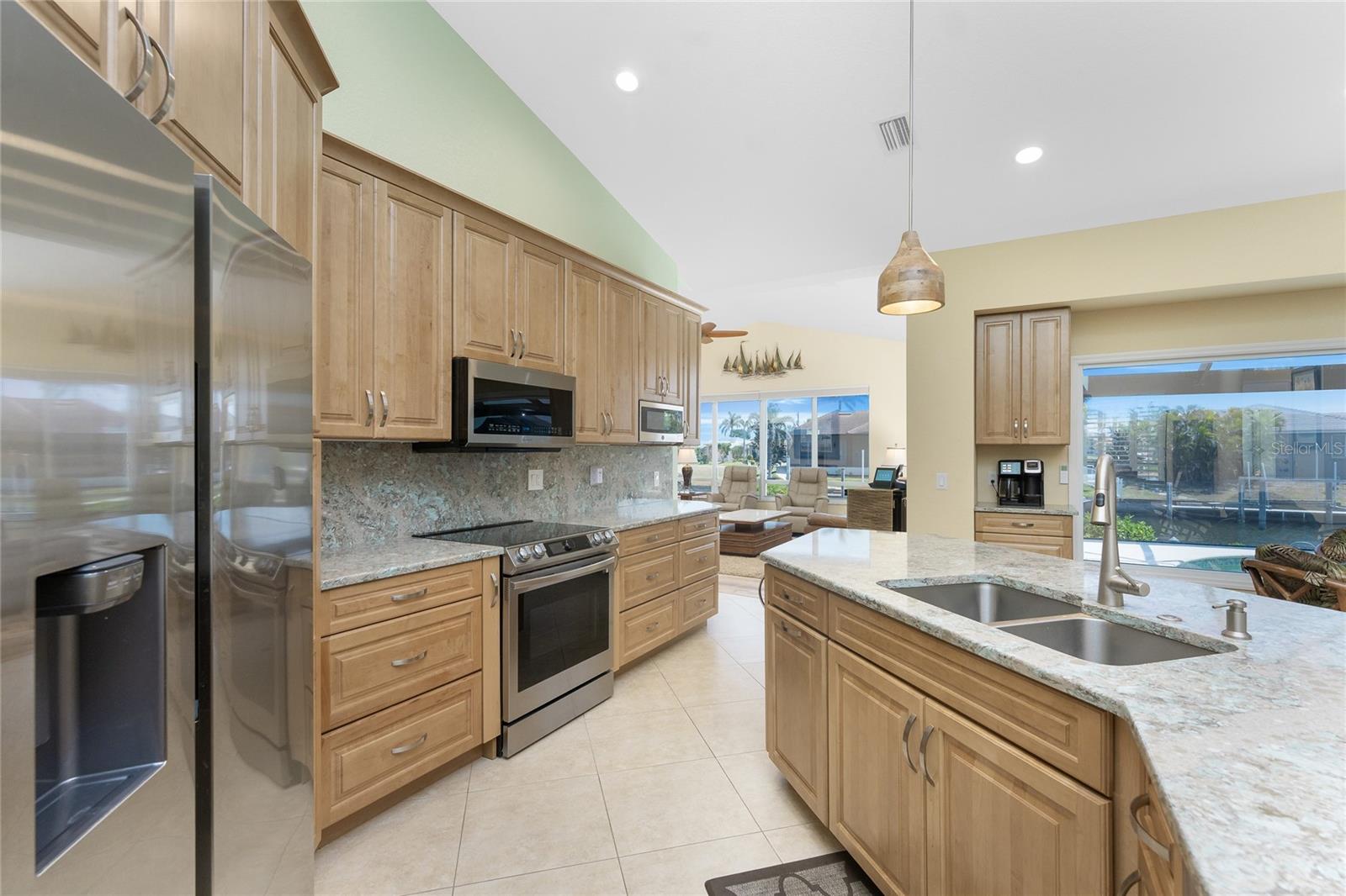 Impressive WATERFRONT home with INTERSECTING CANAL VIEW located in the desirable deed restricted community of PUNTA GORDA ISLES. QUICK SAILBOAT ACCESS to Charlotte Harbor and on to the Gulf of Mexico. This light and bright Towles custom home offers 3 Bedrooms 2.5 Bathrooms and attached oversized 3 Car Garage. ***This home was COMPLETELY REMODELED in 2022 (kitchen), 2023,2024*** There is an open and split bedroom floor plan with a Great Room, Family Room, well appointed Kitchen, separate Dining Room, Inside Laundry and screened Lanai. The Great Room features tile flooring, cathedral ceiling, plant shelves, pocket sliding glass doors to the Lanai and opens to the Kitchen. The stunning Kitchen offers wood cabinets, quartz counters and backsplash, breakfast bar, great storage and counter space, and stainless appliances. Appliances include double door refrigerator, oven/range with induction cooktop, TWO built in microwaves, dishwasher. There is also a Dining Area with aquarium glass offering an expansive view of the pool and water. The spacious Family Room features a cathedral ceiling, a wall of windows with water view, sliding glass doors to the lanai, luxury vinyl plank flooring. The Inside Laundry has a front loading washer, front loading dryer, cabinets and sink. The Master Bedroom suite is very spacious and offers a tray ceiling, walk in custom closets, luxury vinyl plank flooring, lanai access via sliding glass doors and private bathroom. The bathroom features dual sinks, vanity area, jetted tub and walk in shower with glass block. There are two generous sized bedrooms with double closets, one is currently being used as an office. The guest bathroom has a long vanity and tub/shower combination. Your living space extends to the screened Lanai with picture window screens (2023) to maximize the view. large covered area, heated (heat pump) inground pool, plenty of deck for sunbathing, half bath and FABULOUS WATER VIEWS. Continue to the waterfront with 85 foot concrete seawall maintained by the city of Punta Gorda, 30 foot concrete dock with water and electric and 20,000 lb boat lift. Other features include hurricane shutters, double door glass entry with transom window and double screen doors, plantation shutters, soaring ceilings, aluminum roof with slate embossed pattern and 50 year warranty, charging station with 220 outlet for electric vehicles in the garage, rain gutters, trees/landscaped, professionally installed Lorex security system with 3 cameras (driveway, front entrance, boat lifts). The aluminum roof panels interlock and are fastened in place with aluminum ring nails (no rusting). Utilities are city water and sewer. There are deed restrictions but NO HOA. Per owner: The 30 year Samsung solar panels provide whole house electricity during daylight hours, FPL bill runs approximately $65/ month in the winter. (average $46.72 for the last 12 months) The solar panels are paid for- No loan. This home is minutes from Golf, Fishermen's Village, the Visual Art Center and historic downtown Punta Gorda shopping, dining, medical care, waterfront parks, boat ramps, walking and biking paths, art galleries, Charlotte Harbor Event Center, weekend farmer and artisan markets, downtown weekend events and more. This is a beautiful home in a great community!