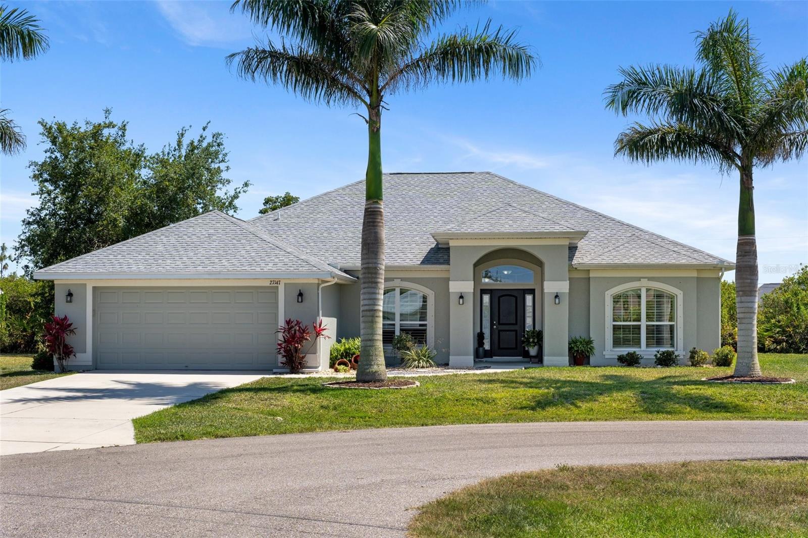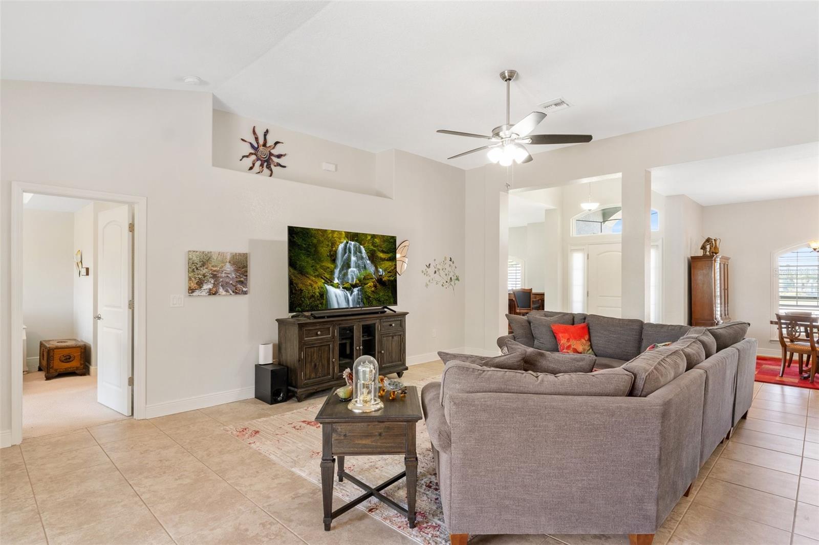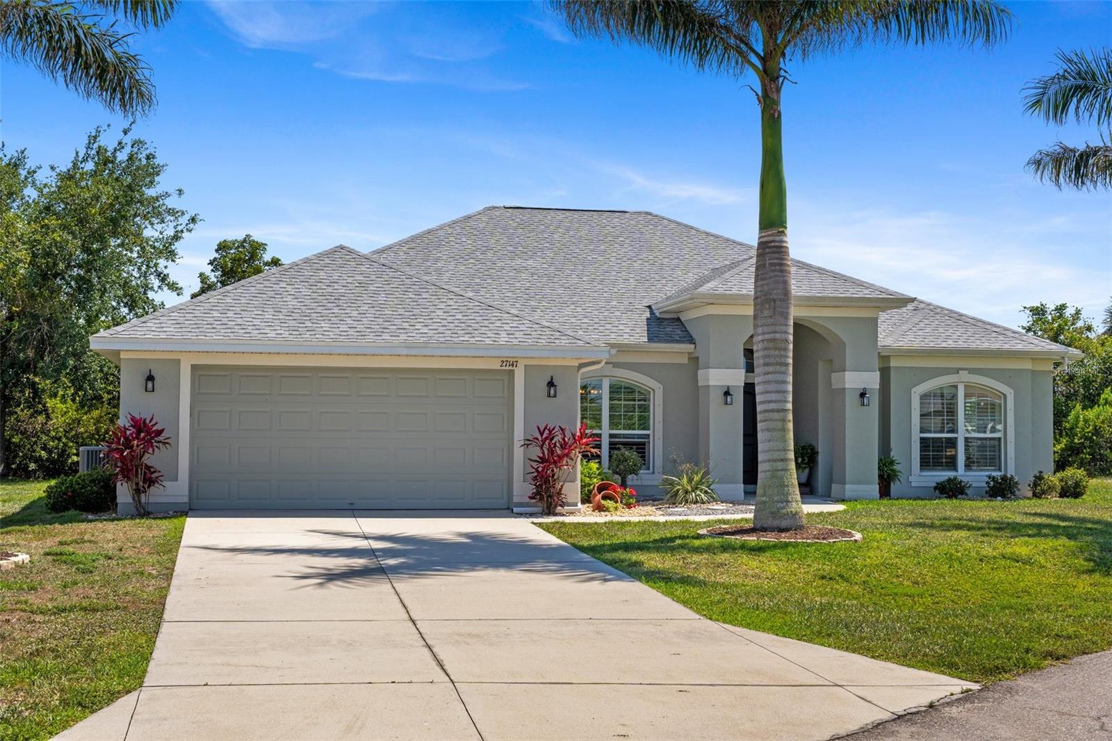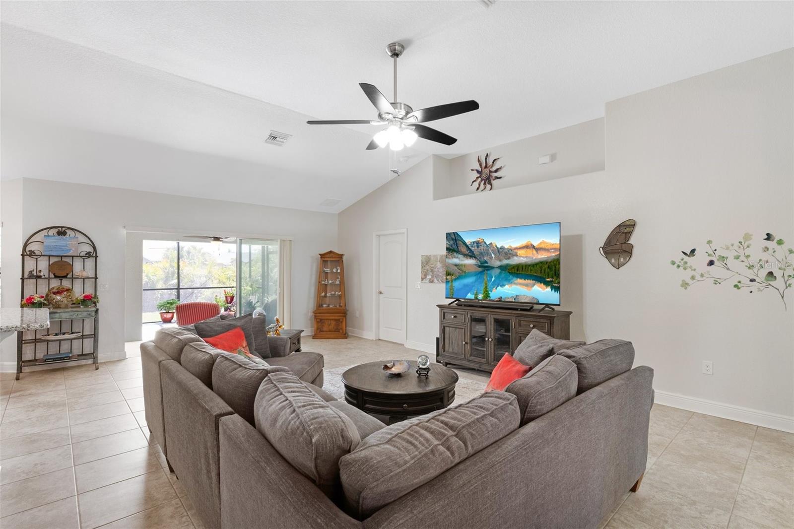 Tranquil Cul-de-Sac Living in Deep Creek– Spacious, Upgraded, and Move-In Ready! Tucked away on a peaceful cul-de-sac, this beautifully maintained 4-bedroom, 2-bathroom home offers privacy, style, and easy Florida living. The curb appeal shines with lush landscaping, an elegant walkway, and fresh 2023 exterior paint. Inside, soaring ceilings and ceramic tile floors create an airy, welcoming feel. Bedrooms offer soft carpeting, and the home features plantation shutters, eight ceiling fans, and custom window treatments for all-season comfort. You’ll love the two dining areas—a bright breakfast nook with backyard views and a formal dining room perfect for entertaining. The kitchen features granite countertops, stainless steel appliances, ample cabinetry, and a large pantry. A versatile den adds flexibility, and the laundry room off the kitchen includes a washer and dryer. The private primary suite offers a tray ceiling, blackout blinds, lanai access, dual walk-in closets, and a spa-like bath with soaking tub, walk-in shower, water closet, and granite vanities. Three more bedrooms share a private hallway and full bath with double sinks and lanai access. Step outside to the 18x36 fully caged lanai—a sunny, bug-free oasis with greenway views, privacy, and hot tub wiring ready to go. Additional perks: 2023 roof, newer appliances, 2-car garage, automated irrigation system, and No Flood Zone. Minutes from Fishermen’s Village, historic downtown, and waterfront dining, this home blends comfort and location perfectly. Schedule your private showing today!