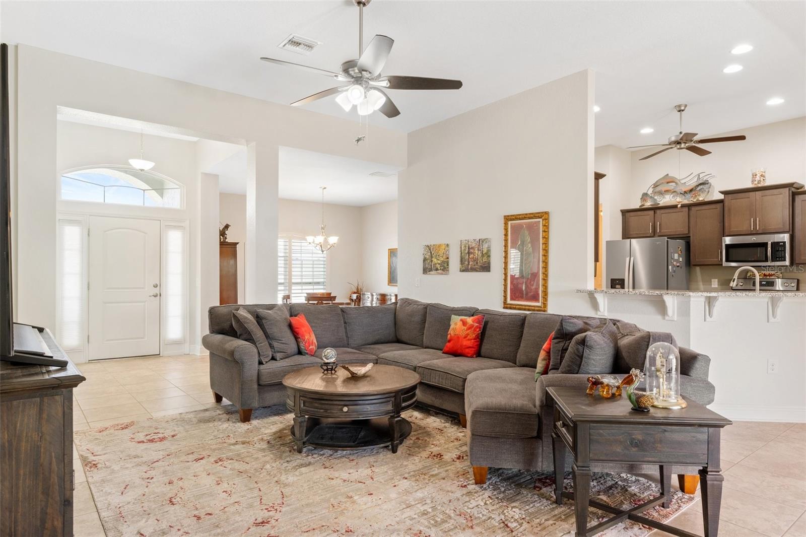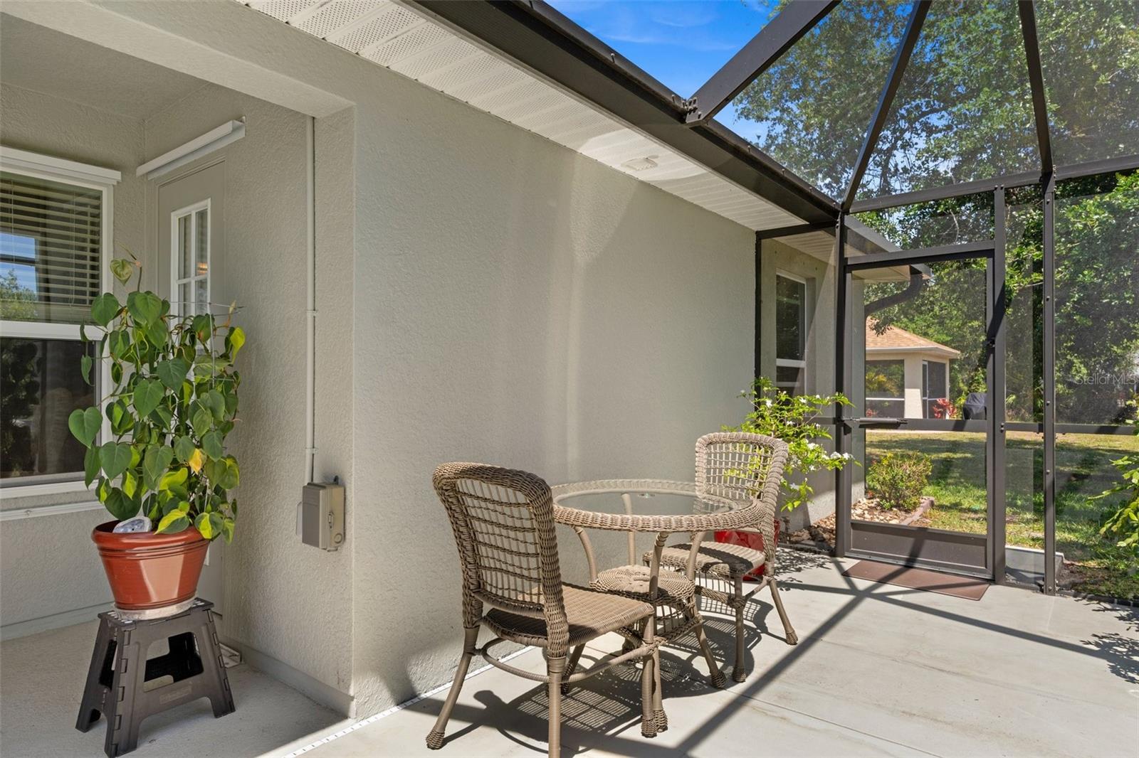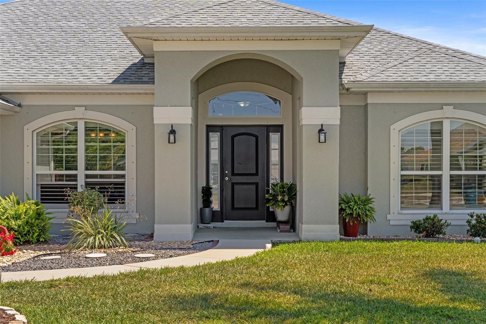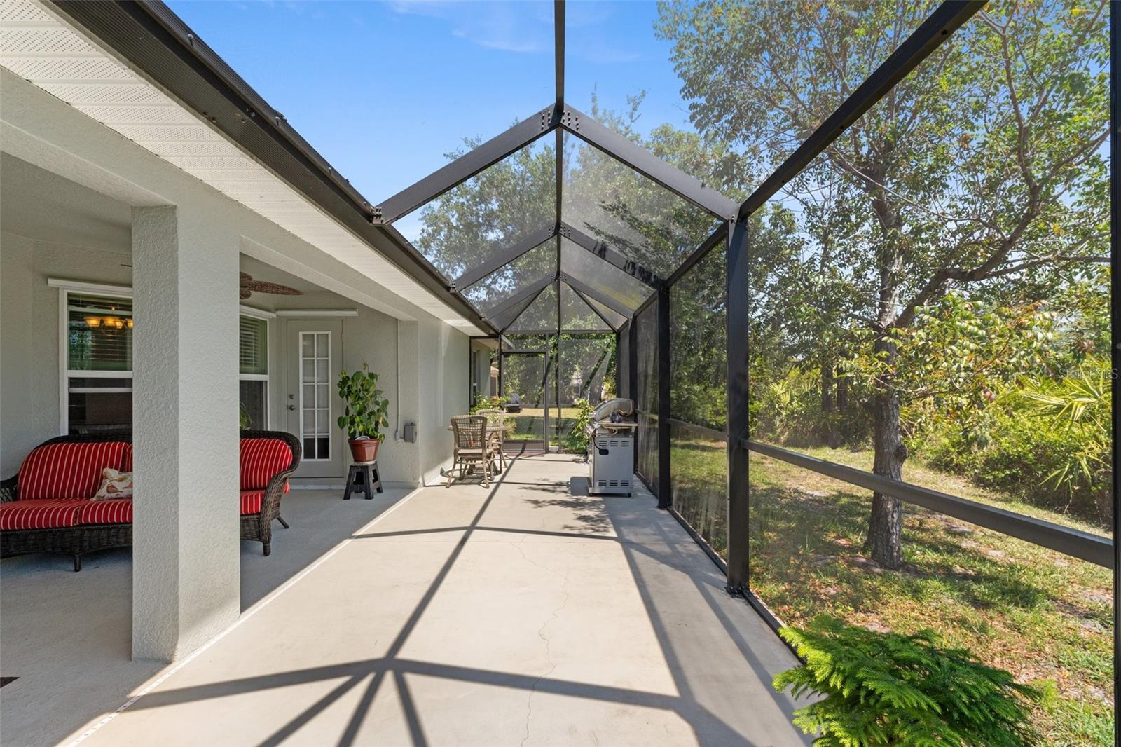 Tranquil Cul-de-Sac Living in Deep Creek– Spacious, Upgraded, and Move-In Ready! Tucked away on a peaceful cul-de-sac, this beautifully maintained 4-bedroom, 2-bathroom home offers privacy, style, and easy Florida living. The curb appeal shines with lush landscaping, an elegant walkway, and fresh 2023 exterior paint. Inside, soaring ceilings and ceramic tile floors create an airy, welcoming feel. Bedrooms offer soft carpeting, and the home features plantation shutters, eight ceiling fans, and custom window treatments for all-season comfort. You’ll love the two dining areas—a bright breakfast nook with backyard views and a formal dining room perfect for entertaining. The kitchen features granite countertops, stainless steel appliances, ample cabinetry, and a large pantry. A versatile den adds flexibility, and the laundry room off the kitchen includes a washer and dryer. The private primary suite offers a tray ceiling, blackout blinds, lanai access, dual walk-in closets, and a spa-like bath with soaking tub, walk-in shower, water closet, and granite vanities. Three more bedrooms share a private hallway and full bath with double sinks and lanai access. Step outside to the 18x36 fully caged lanai—a sunny, bug-free oasis with greenway views, privacy, and hot tub wiring ready to go. Additional perks: 2023 roof, newer appliances, 2-car garage, automated irrigation system, and No Flood Zone. Minutes from Fishermen’s Village, historic downtown, and waterfront dining, this home blends comfort and location perfectly. Schedule your private showing today!
