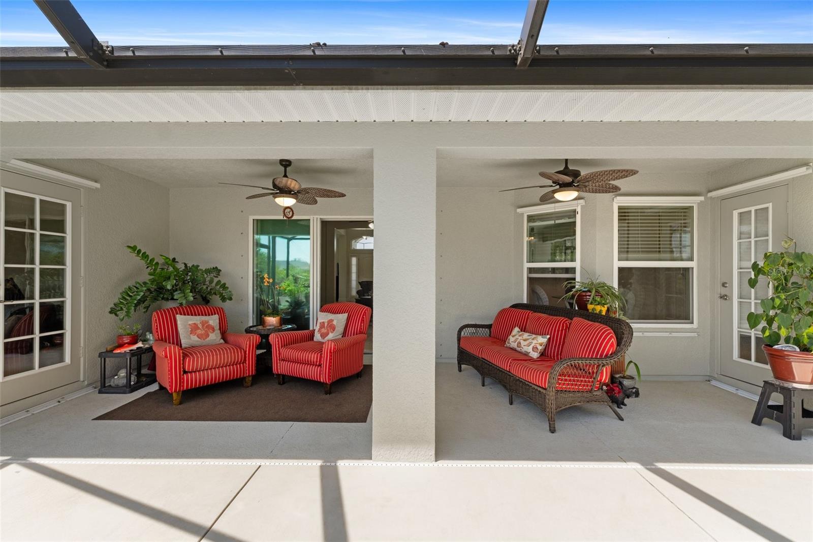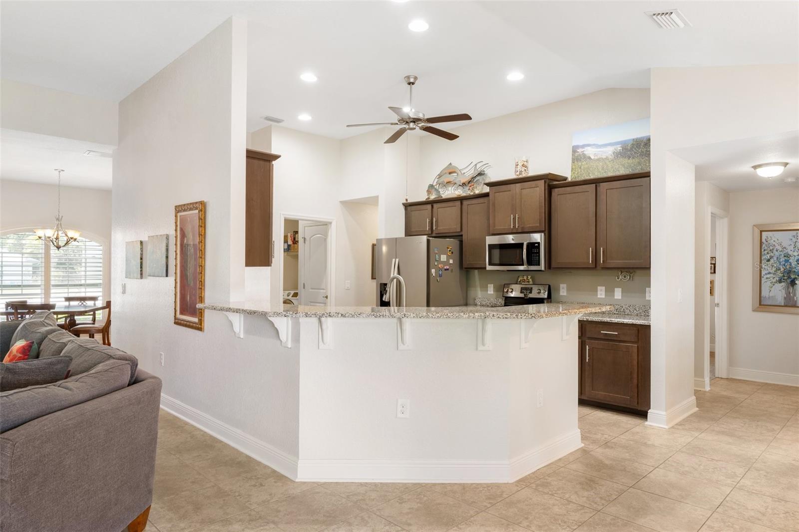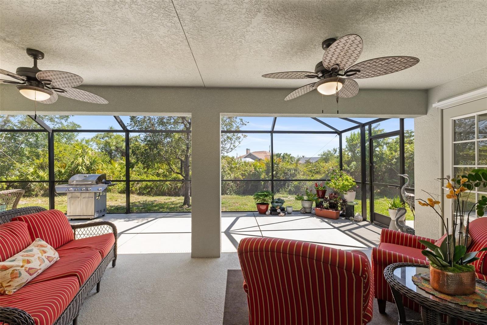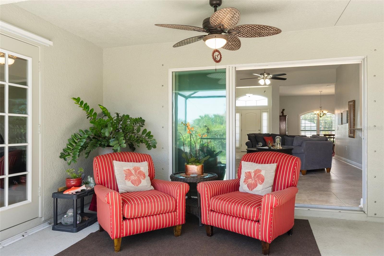 Tranquil Cul-de-Sac Living in Deep Creek– Spacious, Upgraded, and Move-In Ready! Tucked away on a peaceful cul-de-sac, this beautifully maintained 4-bedroom, 2-bathroom home offers privacy, style, and easy Florida living. The curb appeal shines with lush landscaping, an elegant walkway, and fresh 2023 exterior paint. Inside, soaring ceilings and ceramic tile floors create an airy, welcoming feel. Bedrooms offer soft carpeting, and the home features plantation shutters, eight ceiling fans, and custom window treatments for all-season comfort. You’ll love the two dining areas—a bright breakfast nook with backyard views and a formal dining room perfect for entertaining. The kitchen features granite countertops, stainless steel appliances, ample cabinetry, and a large pantry. A versatile den adds flexibility, and the laundry room off the kitchen includes a washer and dryer. The private primary suite offers a tray ceiling, blackout blinds, lanai access, dual walk-in closets, and a spa-like bath with soaking tub, walk-in shower, water closet, and granite vanities. Three more bedrooms share a private hallway and full bath with double sinks and lanai access. Step outside to the 18x36 fully caged lanai—a sunny, bug-free oasis with greenway views, privacy, and hot tub wiring ready to go. Additional perks: 2023 roof, newer appliances, 2-car garage, automated irrigation system, and No Flood Zone. Minutes from Fishermen’s Village, historic downtown, and waterfront dining, this home blends comfort and location perfectly. Schedule your private showing today!