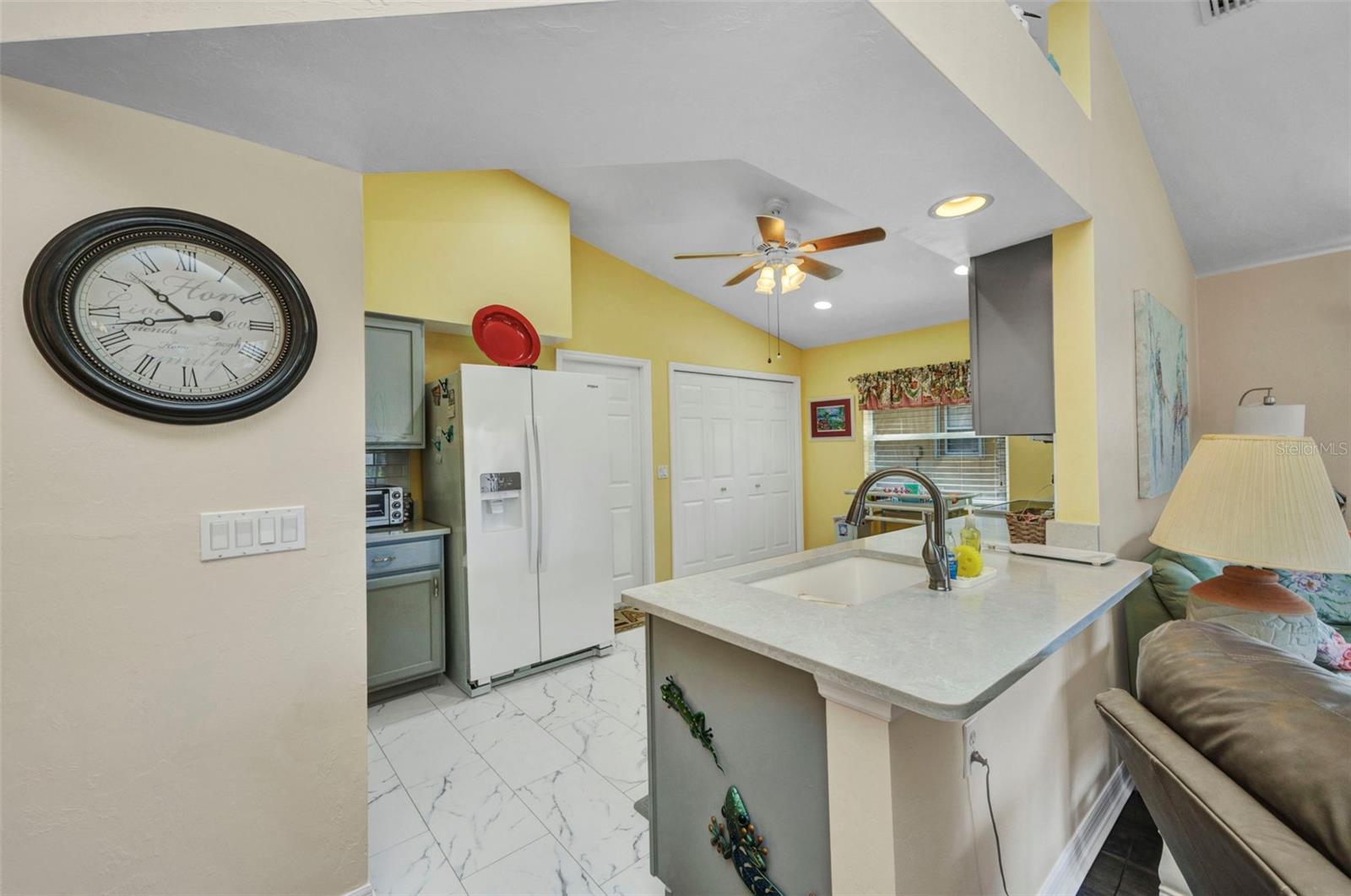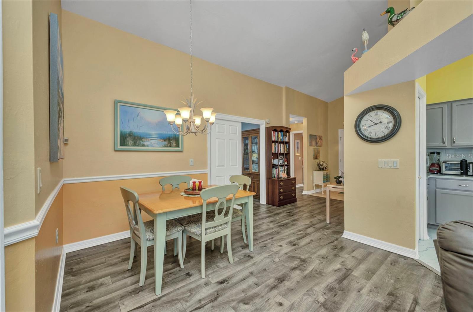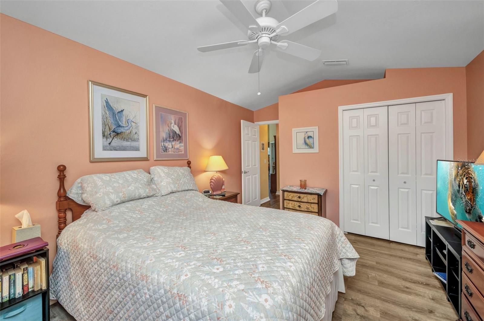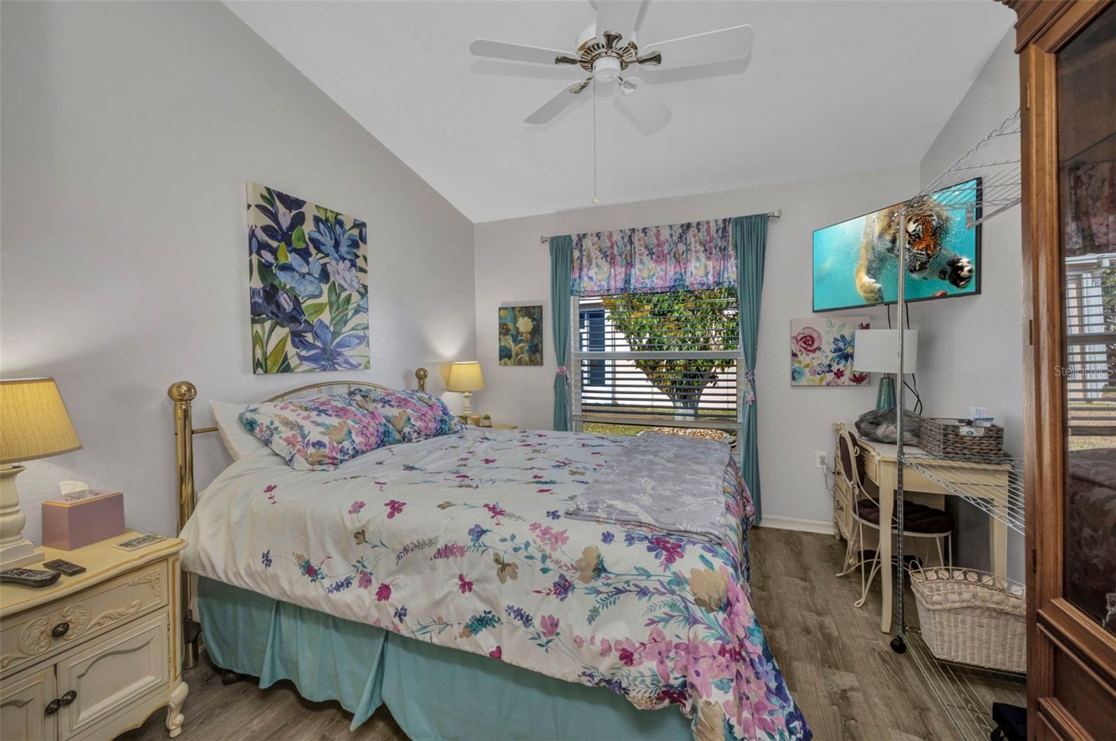 INCREDIBLE VALUE in this Edinburg home in the highly desirable gated golf course/active resort of Kings Gate, a 55+ community that is NOT in a flood zone and in evacuation zone D (never been under an evacuation order). This home being offered FULLY FURNISHED has several nice updates (ROOF 2022, some IMPACT Windows + hurricane shutters, LVP throughout, Quartz counters in kitchen and both bathrooms). Located on a quiet cul-de-sac street and near the club house this house is in a PERFECT LOCATION within Kings gate. Great curb appeal as you approach the house - step inside and you'll notice the updated LVP flooring throughout. The OPEN CONCEPT floorplan has the kitchen - living room - dining room and lanai all seamlessly connected. Kitchen has been updated with gorgeous Quartz counters. Master bedroom is located to back right of home with generous size guest bedroom in the front right of the home - separated by the office/den which has doors and is currently set up as a 3rd bedroom. Screened lanai with tile flooring adds one more space for entertaining or relaxing. And if you haven't been to Kings Gate before - you're going to love the options for activity (Olympic size heated swimming pool and spa, tennis courts, pickle ball, lawn bowling, shuffle board, bocce, horseshoes, gym, billiards, library, euchre, bingo, bridge, Texas hold em, poker, mahjong and more). The onsite AND NEWLY REMODELED Lions Den restaurant and bar is super convenient and also offers Tuesday night Karaoke and monthly trivia contests. Many residents love the fact that they are just a golf cart ride away from the Winn Dixie shopping plaza that provides you access to grocery store, drug store, bank, restaurants and shopping. Want to explore outside of Kings Gate – you are minutes away from the restaurants and shops of downtown Punta Gorda and Fisherman's village. And if you want to explore more of Florida's fun spots you’re near I75 to quickly head north or south. An AWESOME home & VALUE being sold FULLY FURNISHED in a PREMIER gated community won't last long. Call today for a private showing and a golf cart tour of the community/amenities.