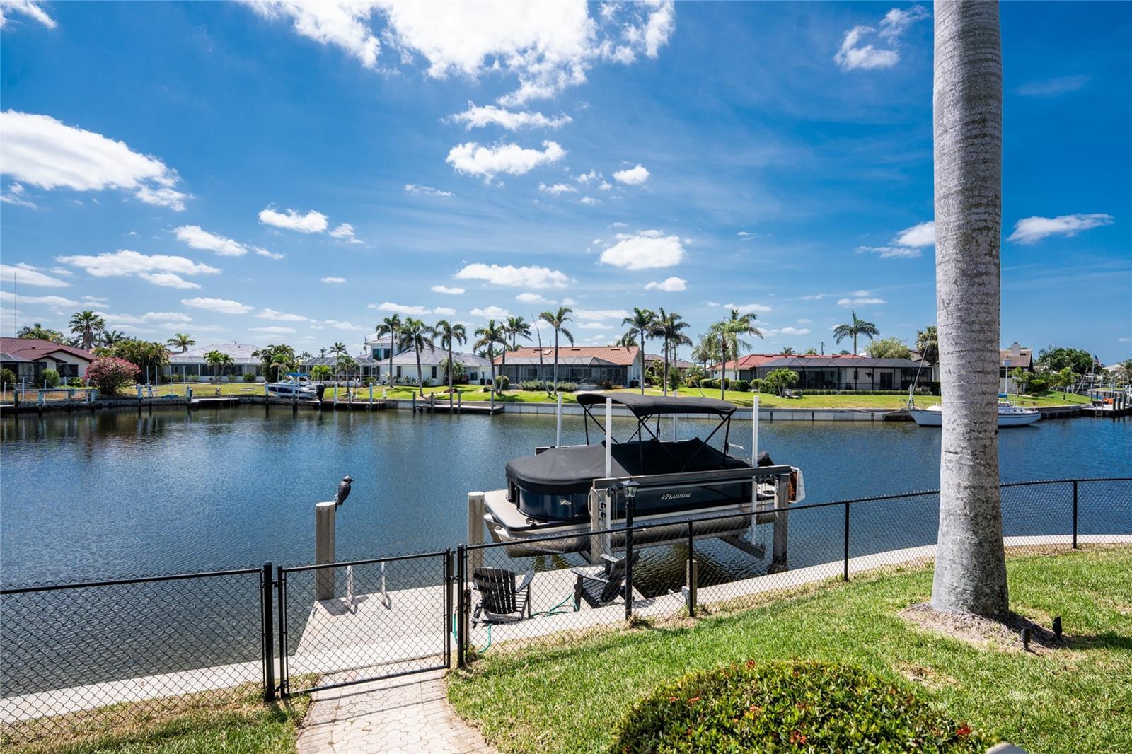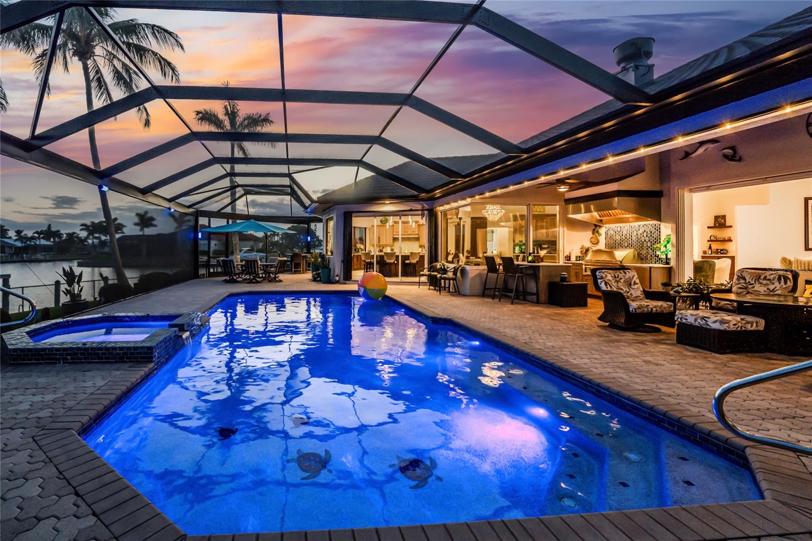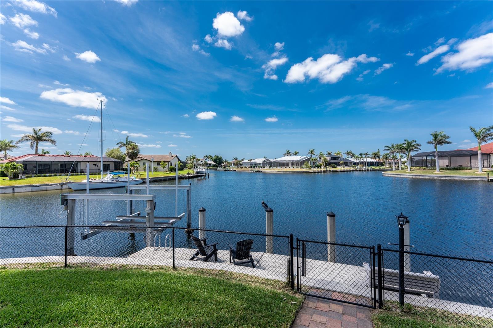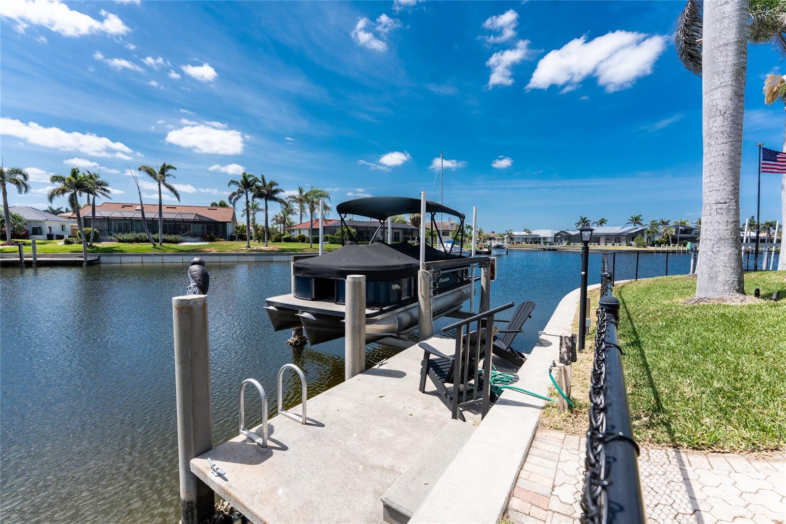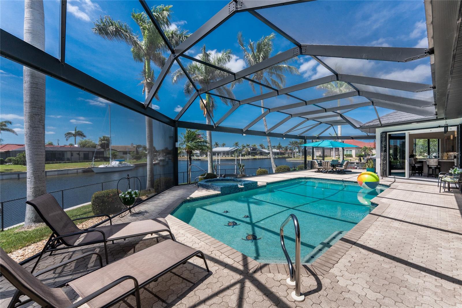 PLEASE WATCH BOTH VIDEOS ATTACHED! If you are looking for the perfect waterfront home that checks all the boxes…..look no more.This nearly 2900sqft, 3 Bedroom/3 Bath home is situated on a tip lot with over 144’ of seawall with TWO docks and TWO lifts (10K&15K) in the highly desirable community of Punta Gorda Isles. This is sailboat water with no bridges and only 15 min to Charlotte Harbor. This location is a boater’s dream! Upon arrival you will immediately be impressed with the updated paver driveway and landscaping. Here too, you will note the recently painted exterior and new (2024) metal stone covered roof. But this is just the beginning! This home has been COMPLETELY RENOVATED AND UPDATED INSIDE as well. Upon entering be prepared for a very pleasant surprise…you will find a unique and very welcoming floorpan with details found only in newer luxury homes. No part of the home has been ignored and all upgrades have been completed to a premium level. As you enter through the front door you will be greeted with a dazzling view in every direction….first through the slider to the pool and long canal view, then to the left and incredible stacked stone focal wall in the great room with a 98” TV and 100" Fireplace, and finally to the right to the huge wet bar and beyond to the all new kitchen. And talk about a kitchen! This is a chef’s delight with high level quartz counter tops and appliances from Wolf and SubZero. Here too you will find a huge island/dining area. Cabinet and counter space abound throughout this area. The large Primary Bedroom and Bath are all completely renovated and upgraded to the highest standards with great water and pool views. Both of the guest bedrooms are well sized and each with its own bath. Both the Primary Bedroom and second guest bedroom have new carpeting. Stepping outside to the massive lanai with its paver deck and 3 huge panoramic screens allow you to fully enjoy great view of the intersecting canals beyond. And no great home like this would not be complete without an outdoor kitchen! It’s here and completely updated as well! Other features include: *22kw propane generator *Bahama Shutters *all tile floors are 12x48 Ceramic tile *Remote control window shades in many rooms *whole house water conditioner * Reverse Osmosis water at kitchen and Freezer Ice maker*monitored security system/cameras *fiber optic or cable available *tons of cabinets and storage in the garage *Impact windows or shutters throughout the home A picture is worth a thousand words…please review all attached photos and video. Don’t miss your opportunity to own this very impressive home. You won’t be disappointed IT’S BETTER THAN NEW! Call today for your private showing.NOTE: This home had NO FLOODING during recent storms. All dimensions and specifications are deemed to be accurate and should be confirmed to the Buyer or Buyer's agent satisfaction. Infinity lights over wet bar and TVs do not convey....Large 98"TV in Great Room DOES CONVEY.