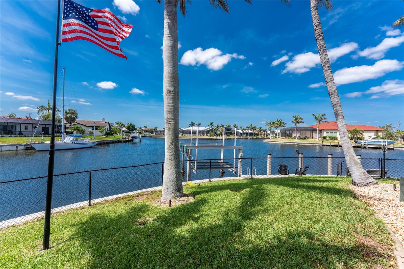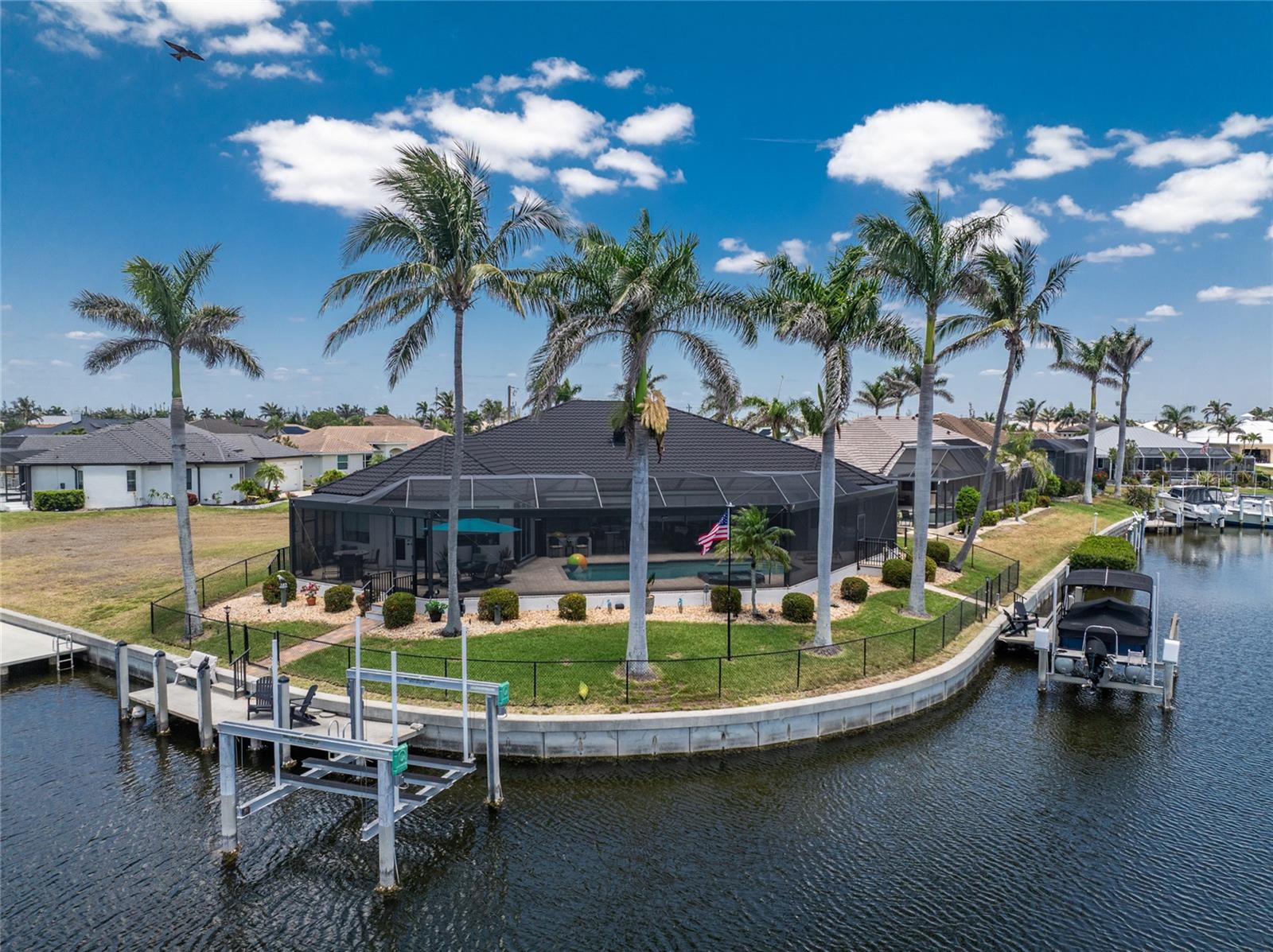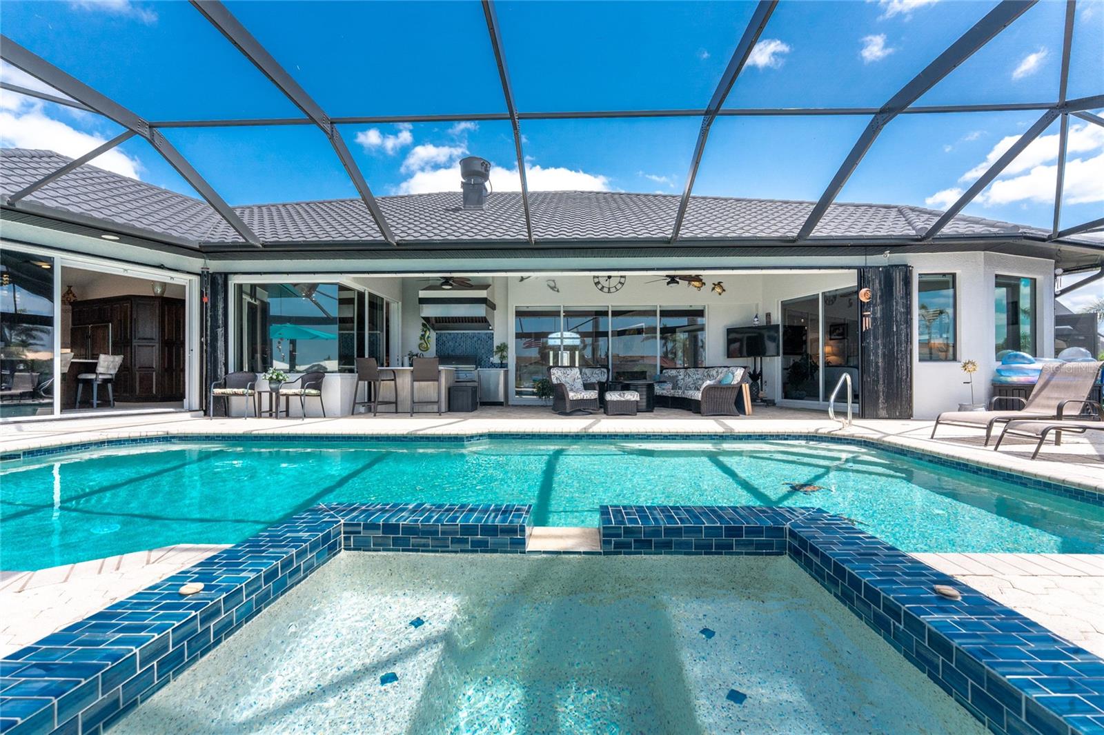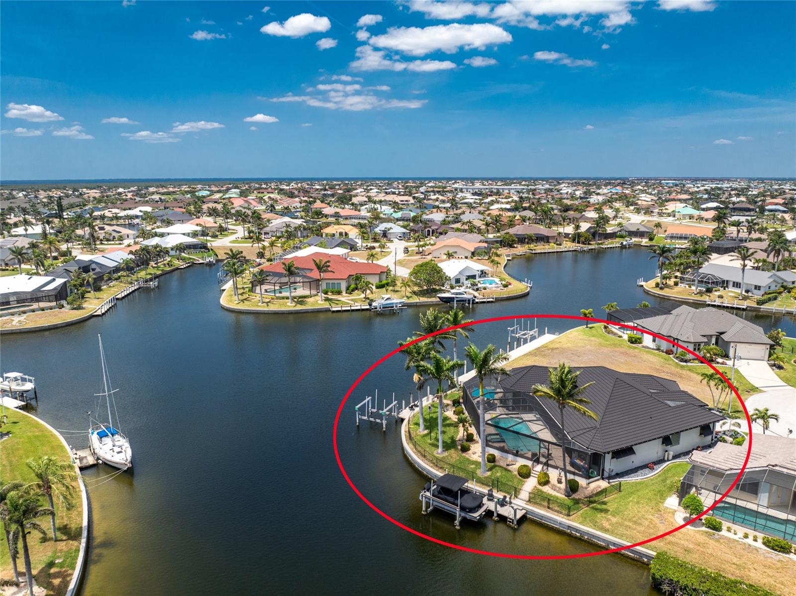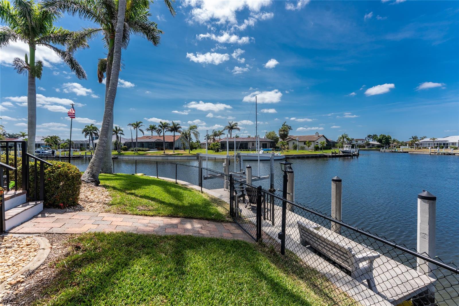 PLEASE WATCH BOTH VIDEOS ATTACHED! If you are looking for the perfect waterfront home that checks all the boxes…..look no more.This nearly 2900sqft, 3 Bedroom/3 Bath home is situated on a tip lot with over 144’ of seawall with TWO docks and TWO lifts (10K&15K) in the highly desirable community of Punta Gorda Isles. This is sailboat water with no bridges and only 15 min to Charlotte Harbor. This location is a boater’s dream! Upon arrival you will immediately be impressed with the updated paver driveway and landscaping. Here too, you will note the recently painted exterior and new (2024) metal stone covered roof. But this is just the beginning! This home has been COMPLETELY RENOVATED AND UPDATED INSIDE as well. Upon entering be prepared for a very pleasant surprise…you will find a unique and very welcoming floorpan with details found only in newer luxury homes. No part of the home has been ignored and all upgrades have been completed to a premium level. As you enter through the front door you will be greeted with a dazzling view in every direction….first through the slider to the pool and long canal view, then to the left and incredible stacked stone focal wall in the great room with a 98” TV and 100" Fireplace, and finally to the right to the huge wet bar and beyond to the all new kitchen. And talk about a kitchen! This is a chef’s delight with high level quartz counter tops and appliances from Wolf and SubZero. Here too you will find a huge island/dining area. Cabinet and counter space abound throughout this area. The large Primary Bedroom and Bath are all completely renovated and upgraded to the highest standards with great water and pool views. Both of the guest bedrooms are well sized and each with its own bath. Both the Primary Bedroom and second guest bedroom have new carpeting. Stepping outside to the massive lanai with its paver deck and 3 huge panoramic screens allow you to fully enjoy great view of the intersecting canals beyond. And no great home like this would not be complete without an outdoor kitchen! It’s here and completely updated as well! Other features include: *22kw propane generator *Bahama Shutters *all tile floors are 12x48 Ceramic tile *Remote control window shades in many rooms *whole house water conditioner * Reverse Osmosis water at kitchen and Freezer Ice maker*monitored security system/cameras *fiber optic or cable available *tons of cabinets and storage in the garage *Impact windows or shutters throughout the home A picture is worth a thousand words…please review all attached photos and video. Don’t miss your opportunity to own this very impressive home. You won’t be disappointed IT’S BETTER THAN NEW! Call today for your private showing.NOTE: This home had NO FLOODING during recent storms. All dimensions and specifications are deemed to be accurate and should be confirmed to the Buyer or Buyer's agent satisfaction. Infinity lights over wet bar and TVs do not convey....Large 98"TV in Great Room DOES CONVEY.