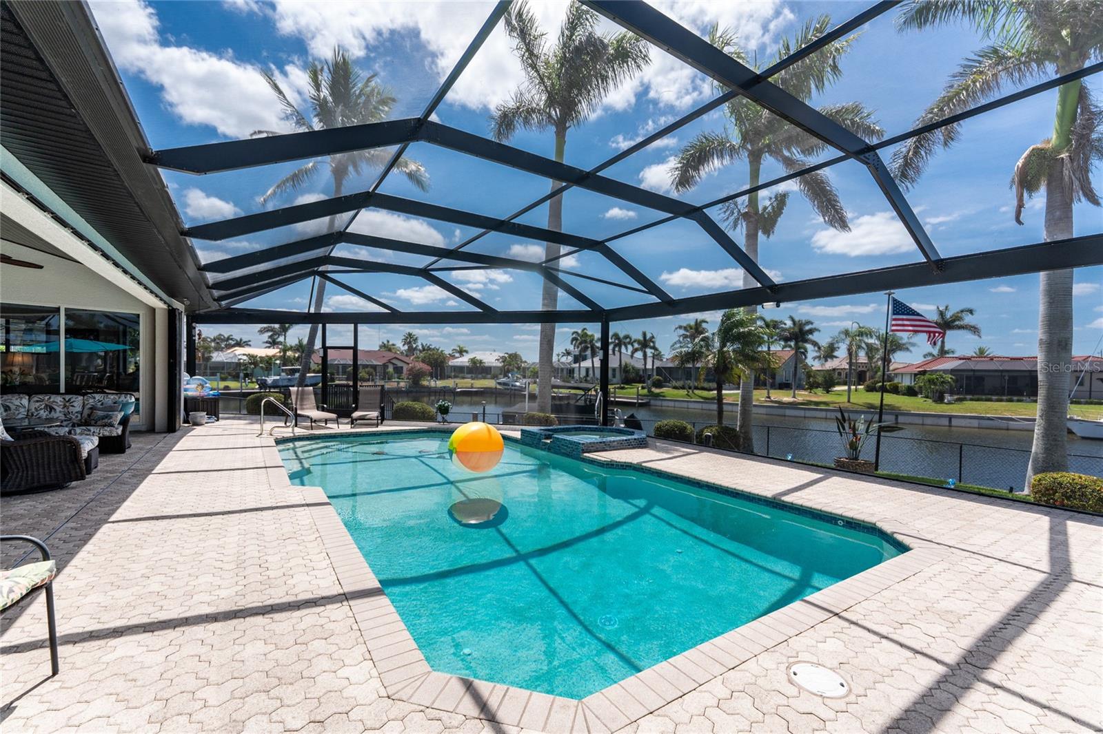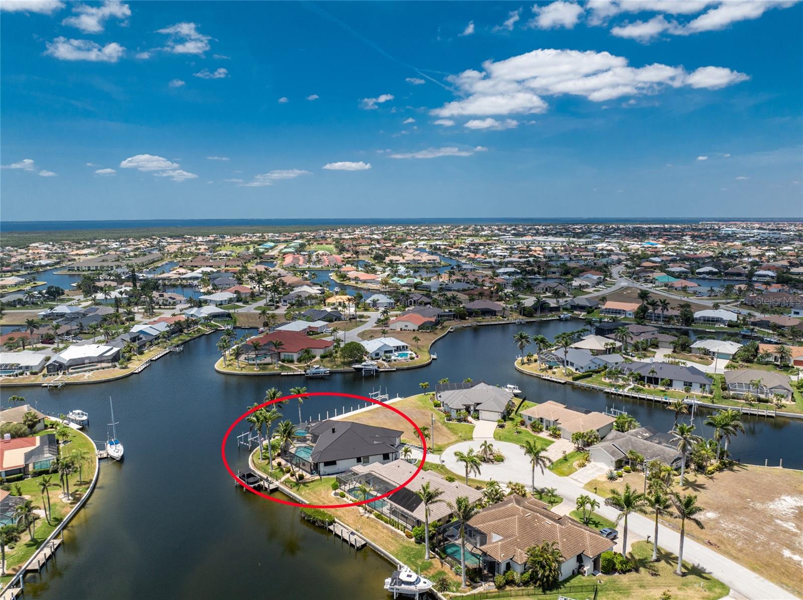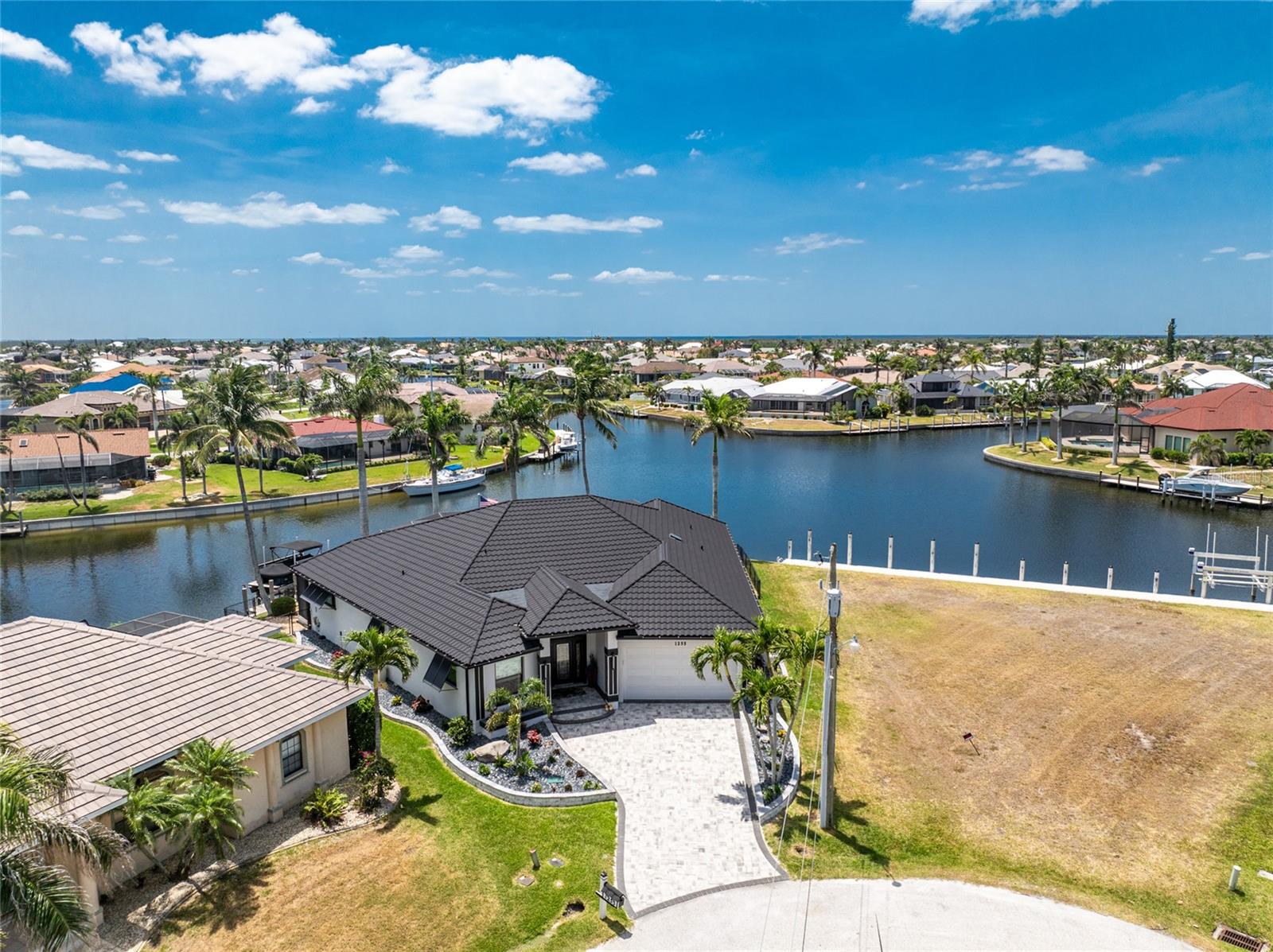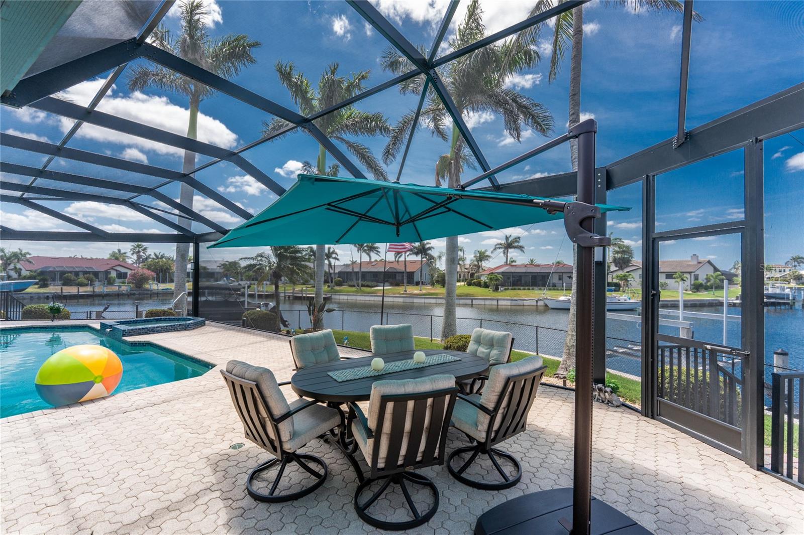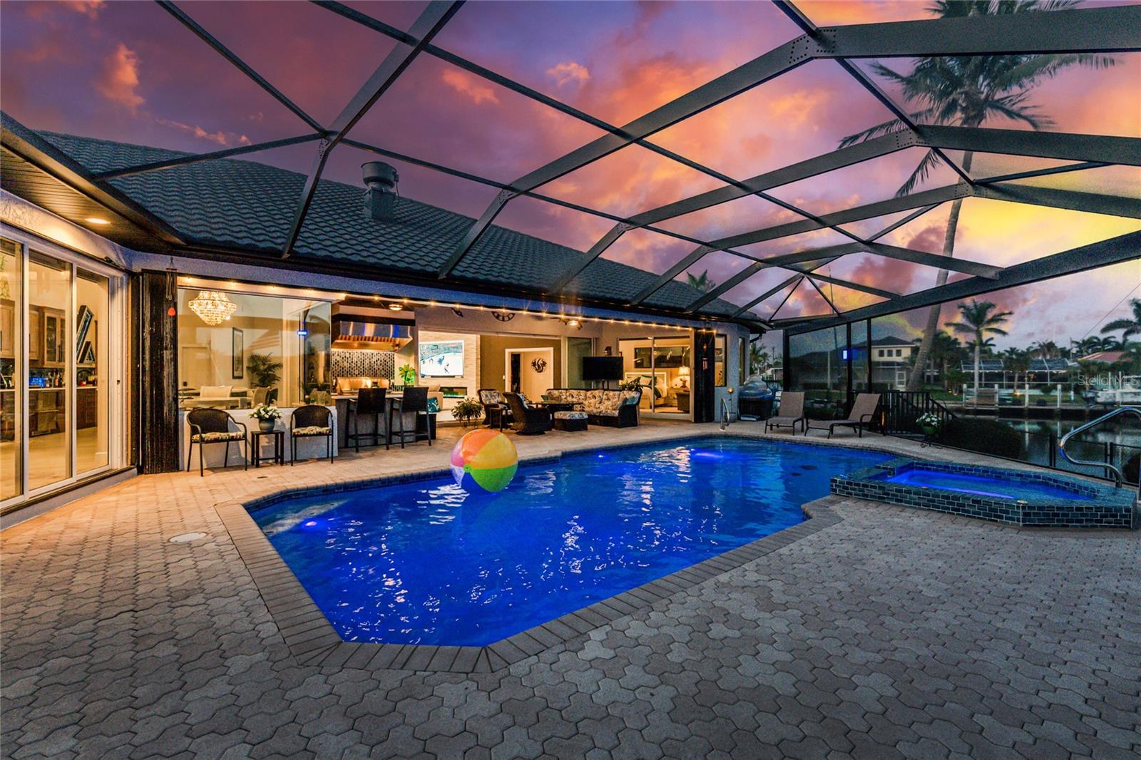 PLEASE WATCH BOTH VIDEOS ATTACHED! If you are looking for the perfect waterfront home that checks all the boxes…..look no more.This nearly 2900sqft, 3 Bedroom/3 Bath home is situated on a tip lot with over 144’ of seawall with TWO docks and TWO lifts (10K&15K) in the highly desirable community of Punta Gorda Isles. This is sailboat water with no bridges and only 15 min to Charlotte Harbor. This location is a boater’s dream! Upon arrival you will immediately be impressed with the updated paver driveway and landscaping. Here too, you will note the recently painted exterior and new (2024) metal stone covered roof. But this is just the beginning! This home has been COMPLETELY RENOVATED AND UPDATED INSIDE as well. Upon entering be prepared for a very pleasant surprise…you will find a unique and very welcoming floorpan with details found only in newer luxury homes. No part of the home has been ignored and all upgrades have been completed to a premium level. As you enter through the front door you will be greeted with a dazzling view in every direction….first through the slider to the pool and long canal view, then to the left and incredible stacked stone focal wall in the great room with a 98” TV and 100" Fireplace, and finally to the right to the huge wet bar and beyond to the all new kitchen. And talk about a kitchen! This is a chef’s delight with high level quartz counter tops and appliances from Wolf and SubZero. Here too you will find a huge island/dining area. Cabinet and counter space abound throughout this area. The large Primary Bedroom and Bath are all completely renovated and upgraded to the highest standards with great water and pool views. Both of the guest bedrooms are well sized and each with its own bath. Both the Primary Bedroom and second guest bedroom have new carpeting. Stepping outside to the massive lanai with its paver deck and 3 huge panoramic screens allow you to fully enjoy great view of the intersecting canals beyond. And no great home like this would not be complete without an outdoor kitchen! It’s here and completely updated as well! Other features include: *22kw propane generator *Bahama Shutters *all tile floors are 12x48 Ceramic tile *Remote control window shades in many rooms *whole house water conditioner * Reverse Osmosis water at kitchen and Freezer Ice maker*monitored security system/cameras *fiber optic or cable available *tons of cabinets and storage in the garage *Impact windows or shutters throughout the home A picture is worth a thousand words…please review all attached photos and video. Don’t miss your opportunity to own this very impressive home. You won’t be disappointed IT’S BETTER THAN NEW! Call today for your private showing.NOTE: This home had NO FLOODING during recent storms. All dimensions and specifications are deemed to be accurate and should be confirmed to the Buyer or Buyer's agent satisfaction. Infinity lights over wet bar and TVs do not convey....Large 98"TV in Great Room DOES CONVEY.