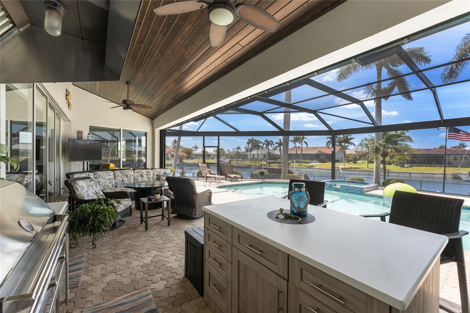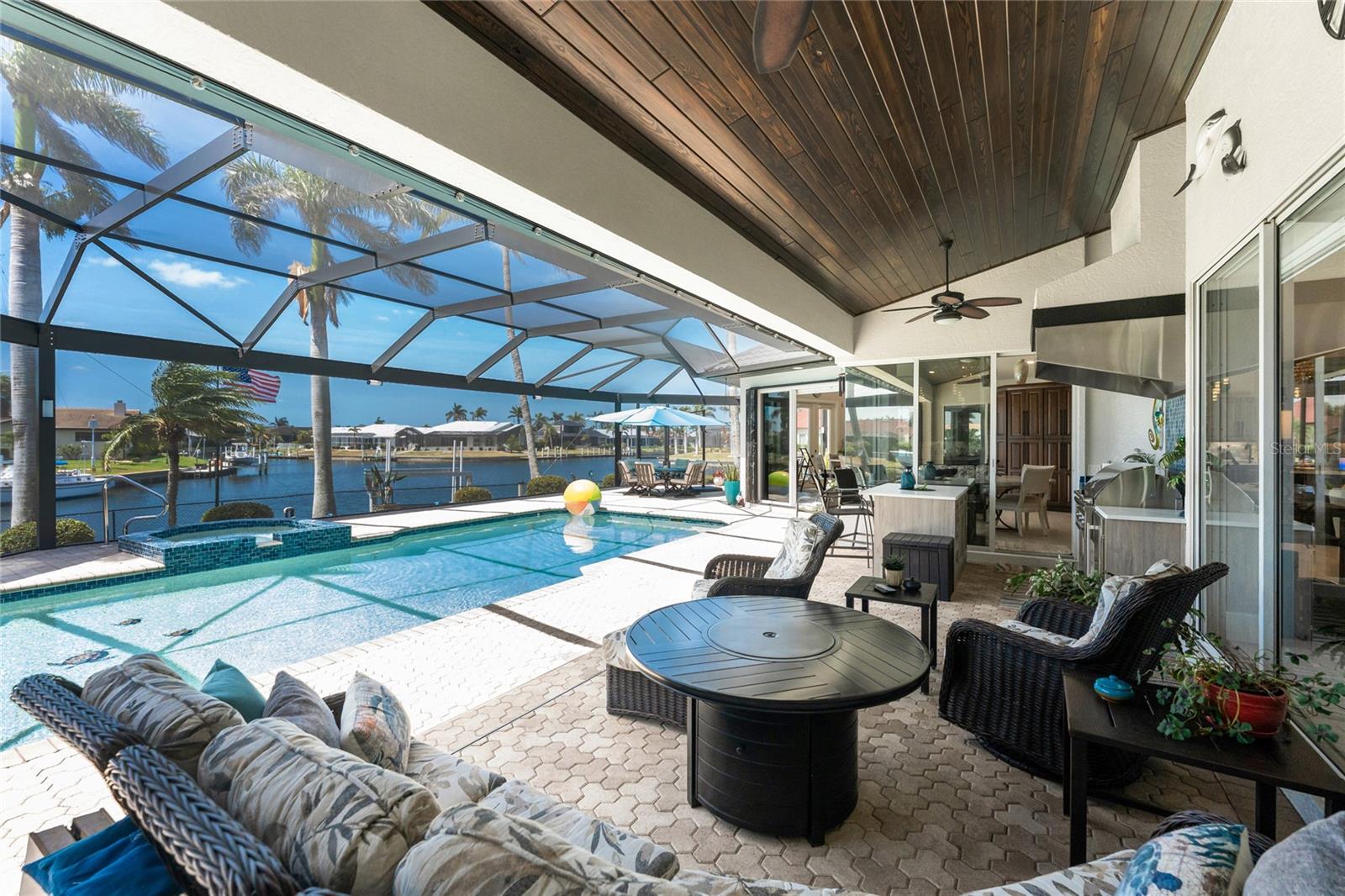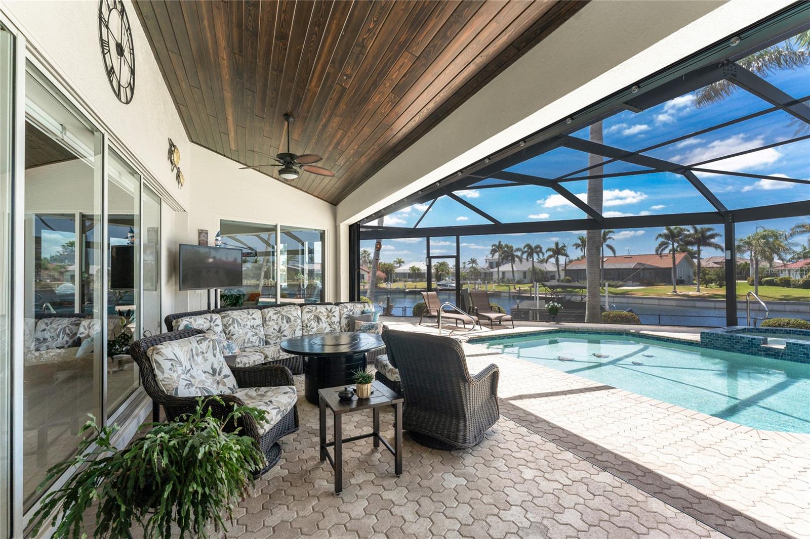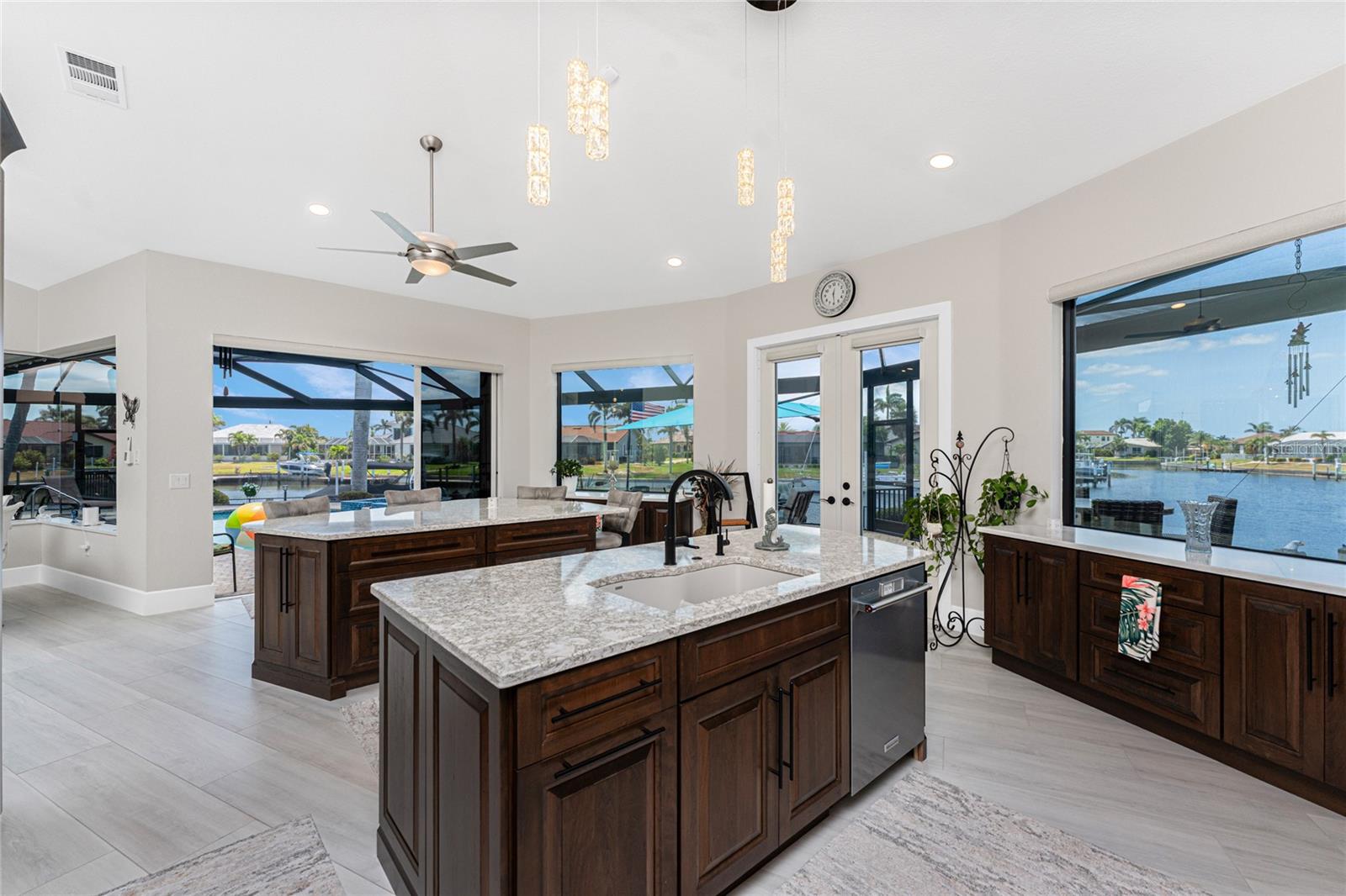 PLEASE WATCH BOTH VIDEOS ATTACHED! If you are looking for the perfect waterfront home that checks all the boxes…..look no more.This nearly 2900sqft, 3 Bedroom/3 Bath home is situated on a tip lot with over 144’ of seawall with TWO docks and TWO lifts (10K&15K) in the highly desirable community of Punta Gorda Isles. This is sailboat water with no bridges and only 15 min to Charlotte Harbor. This location is a boater’s dream! Upon arrival you will immediately be impressed with the updated paver driveway and landscaping. Here too, you will note the recently painted exterior and new (2024) metal stone covered roof. But this is just the beginning! This home has been COMPLETELY RENOVATED AND UPDATED INSIDE as well. Upon entering be prepared for a very pleasant surprise…you will find a unique and very welcoming floorpan with details found only in newer luxury homes. No part of the home has been ignored and all upgrades have been completed to a premium level. As you enter through the front door you will be greeted with a dazzling view in every direction….first through the slider to the pool and long canal view, then to the left and incredible stacked stone focal wall in the great room with a 98” TV and 100" Fireplace, and finally to the right to the huge wet bar and beyond to the all new kitchen. And talk about a kitchen! This is a chef’s delight with high level quartz counter tops and appliances from Wolf and SubZero. Here too you will find a huge island/dining area. Cabinet and counter space abound throughout this area. The large Primary Bedroom and Bath are all completely renovated and upgraded to the highest standards with great water and pool views. Both of the guest bedrooms are well sized and each with its own bath. Both the Primary Bedroom and second guest bedroom have new carpeting. Stepping outside to the massive lanai with its paver deck and 3 huge panoramic screens allow you to fully enjoy great view of the intersecting canals beyond. And no great home like this would not be complete without an outdoor kitchen! It’s here and completely updated as well! Other features include: *22kw propane generator *Bahama Shutters *all tile floors are 12x48 Ceramic tile *Remote control window shades in many rooms *whole house water conditioner * Reverse Osmosis water at kitchen and Freezer Ice maker*monitored security system/cameras *fiber optic or cable available *tons of cabinets and storage in the garage *Impact windows or shutters throughout the home A picture is worth a thousand words…please review all attached photos and video. Don’t miss your opportunity to own this very impressive home. You won’t be disappointed IT’S BETTER THAN NEW! Call today for your private showing.NOTE: This home had NO FLOODING during recent storms. All dimensions and specifications are deemed to be accurate and should be confirmed to the Buyer or Buyer's agent satisfaction. Infinity lights over wet bar and TVs do not convey....Large 98"TV in Great Room DOES CONVEY.