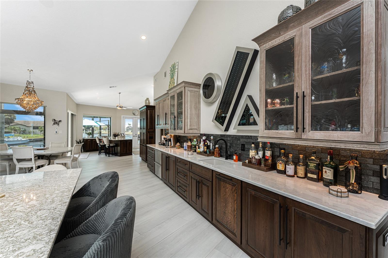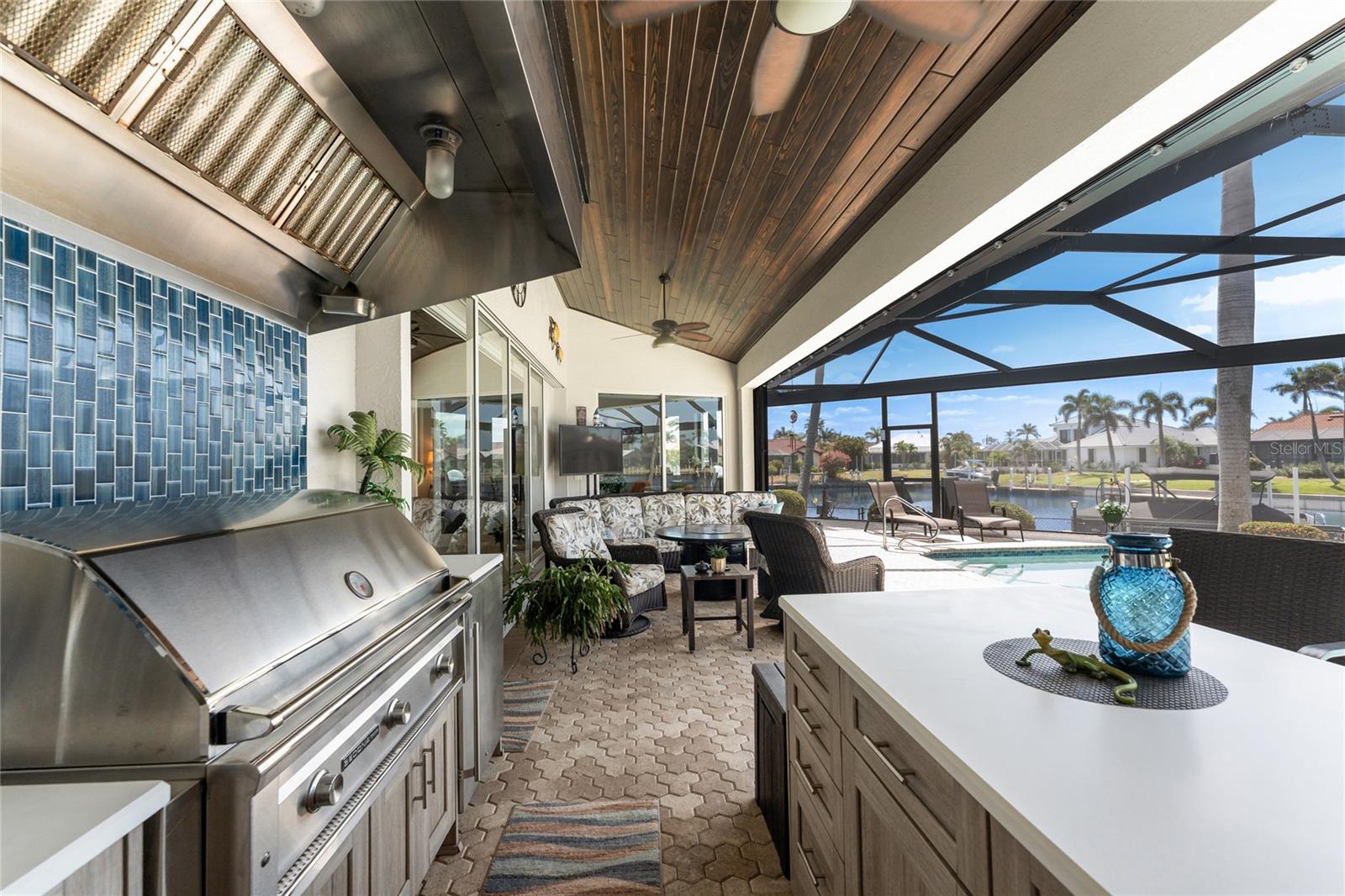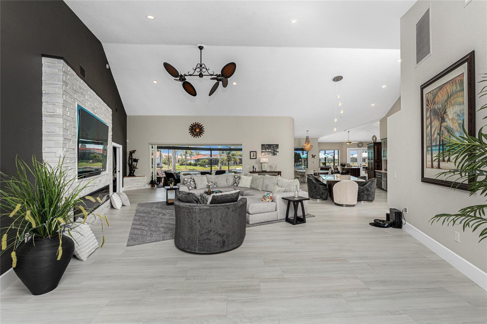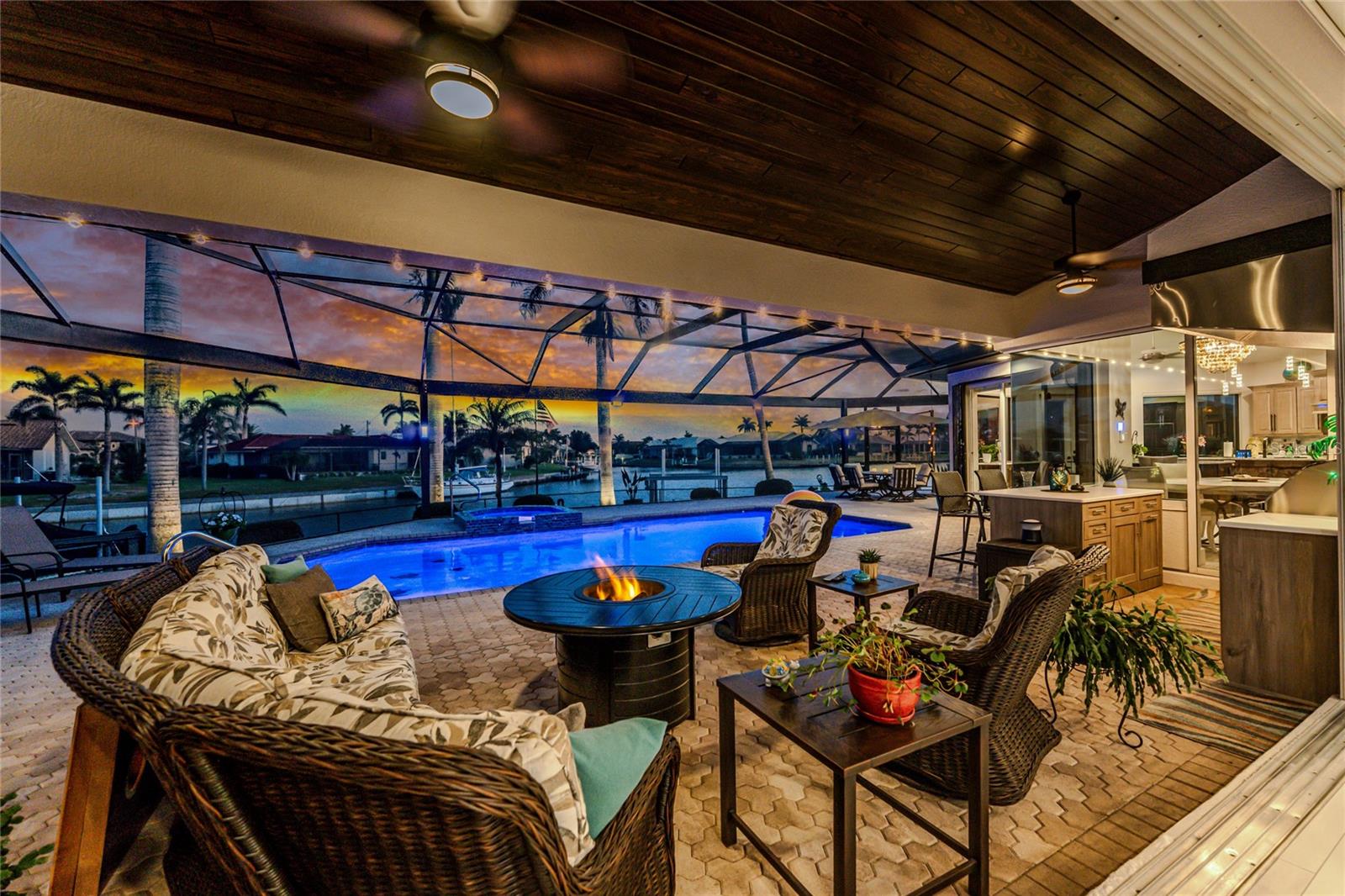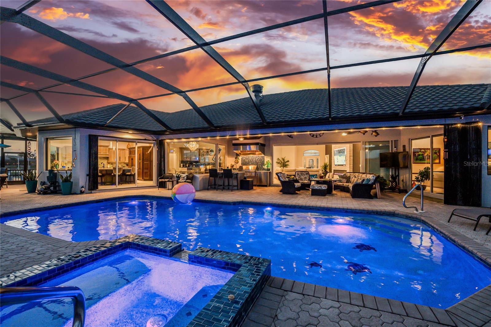 PLEASE WATCH BOTH VIDEOS ATTACHED! If you are looking for the perfect waterfront home that checks all the boxes…..look no more.This nearly 2900sqft, 3 Bedroom/3 Bath home is situated on a tip lot with over 144’ of seawall with TWO docks and TWO lifts (10K&15K) in the highly desirable community of Punta Gorda Isles. This is sailboat water with no bridges and only 15 min to Charlotte Harbor. This location is a boater’s dream! Upon arrival you will immediately be impressed with the updated paver driveway and landscaping. Here too, you will note the recently painted exterior and new (2024) metal stone covered roof. But this is just the beginning! This home has been COMPLETELY RENOVATED AND UPDATED INSIDE as well. Upon entering be prepared for a very pleasant surprise…you will find a unique and very welcoming floorpan with details found only in newer luxury homes. No part of the home has been ignored and all upgrades have been completed to a premium level. As you enter through the front door you will be greeted with a dazzling view in every direction….first through the slider to the pool and long canal view, then to the left and incredible stacked stone focal wall in the great room with a 98” TV and 100" Fireplace, and finally to the right to the huge wet bar and beyond to the all new kitchen. And talk about a kitchen! This is a chef’s delight with high level quartz counter tops and appliances from Wolf and SubZero. Here too you will find a huge island/dining area. Cabinet and counter space abound throughout this area. The large Primary Bedroom and Bath are all completely renovated and upgraded to the highest standards with great water and pool views. Both of the guest bedrooms are well sized and each with its own bath. Both the Primary Bedroom and second guest bedroom have new carpeting. Stepping outside to the massive lanai with its paver deck and 3 huge panoramic screens allow you to fully enjoy great view of the intersecting canals beyond. And no great home like this would not be complete without an outdoor kitchen! It’s here and completely updated as well! Other features include: *22kw propane generator *Bahama Shutters *all tile floors are 12x48 Ceramic tile *Remote control window shades in many rooms *whole house water conditioner * Reverse Osmosis water at kitchen and Freezer Ice maker*monitored security system/cameras *fiber optic or cable available *tons of cabinets and storage in the garage *Impact windows or shutters throughout the home A picture is worth a thousand words…please review all attached photos and video. Don’t miss your opportunity to own this very impressive home. You won’t be disappointed IT’S BETTER THAN NEW! Call today for your private showing.NOTE: This home had NO FLOODING during recent storms. All dimensions and specifications are deemed to be accurate and should be confirmed to the Buyer or Buyer's agent satisfaction. Infinity lights over wet bar and TVs do not convey....Large 98"TV in Great Room DOES CONVEY.