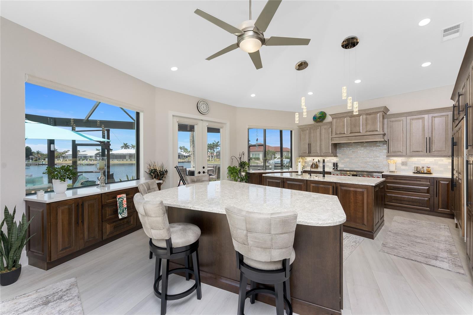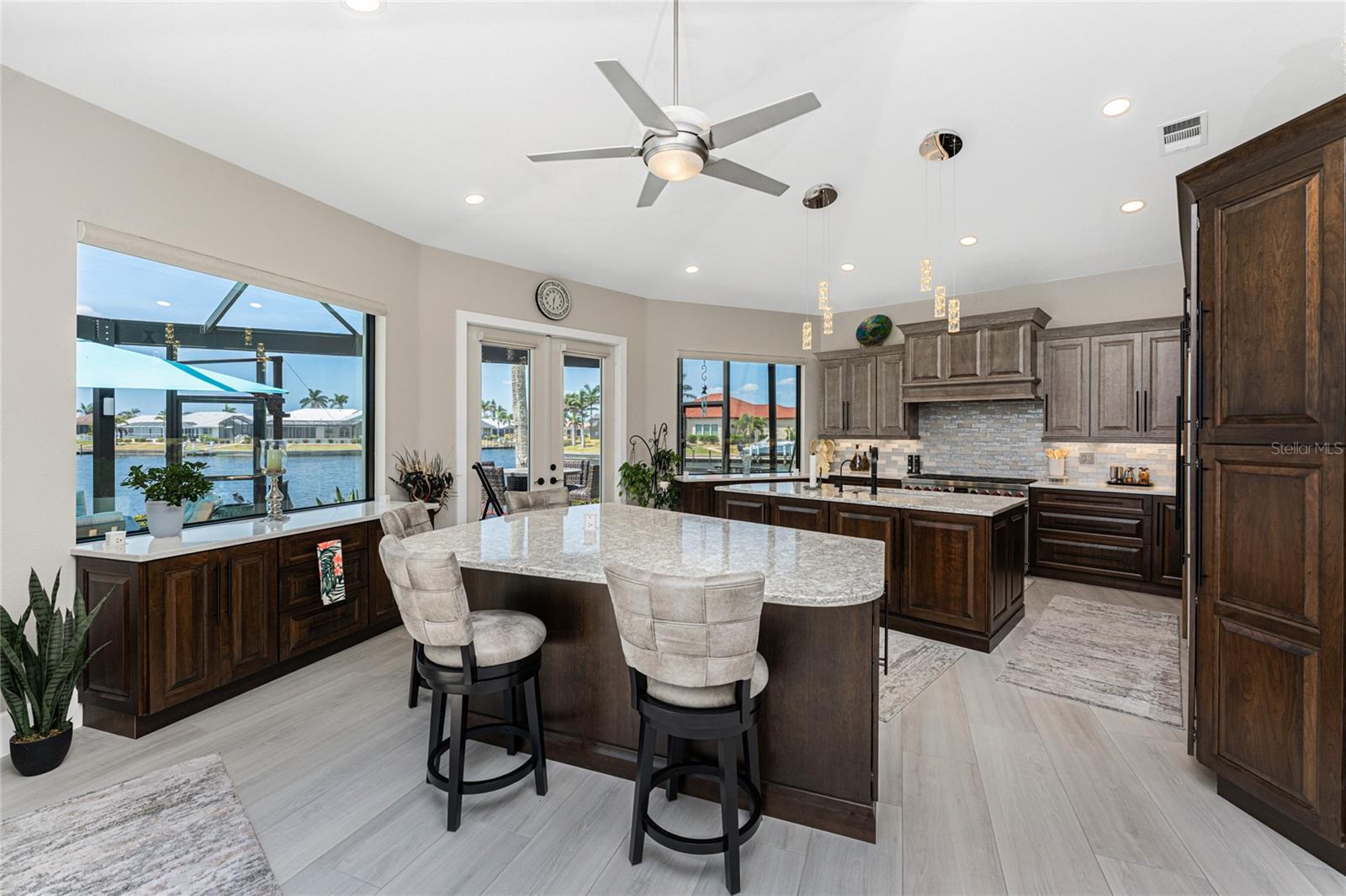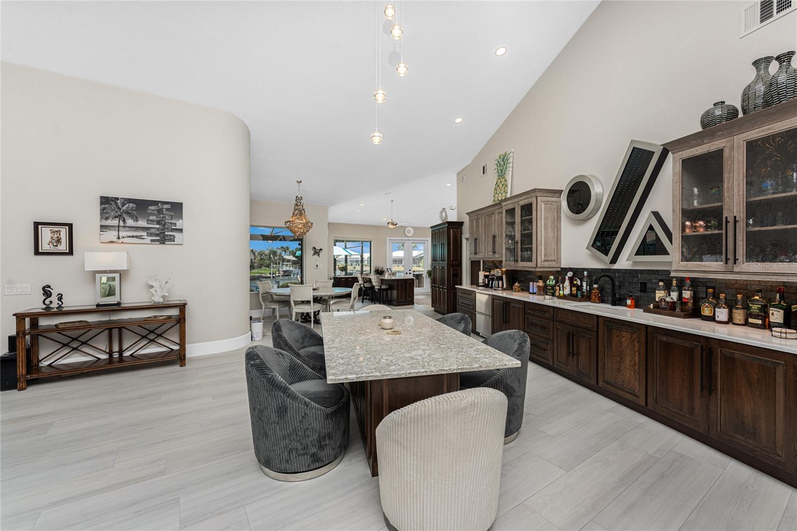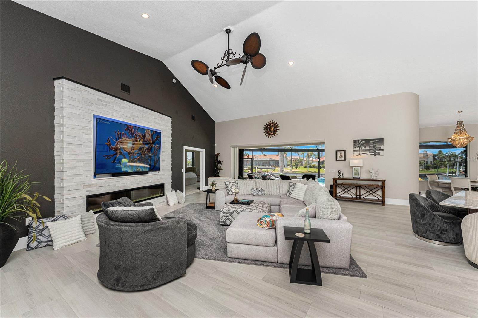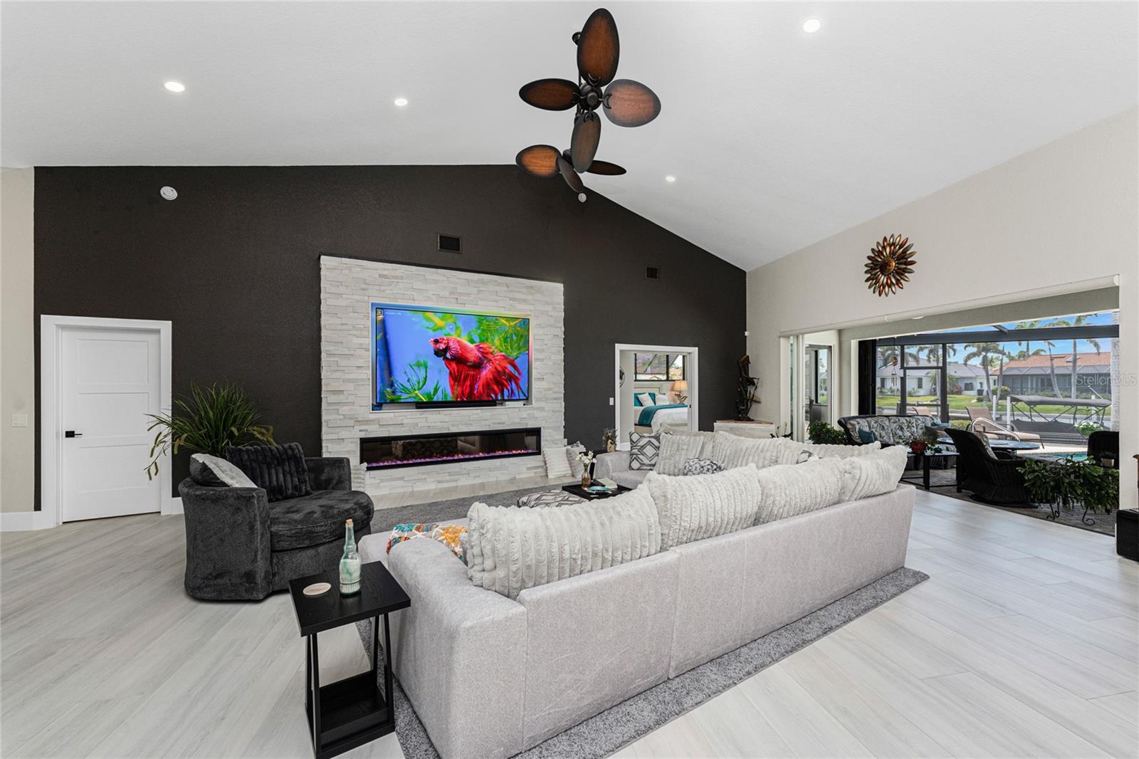 PLEASE WATCH BOTH VIDEOS ATTACHED! If you are looking for the perfect waterfront home that checks all the boxes…..look no more.This nearly 2900sqft, 3 Bedroom/3 Bath home is situated on a tip lot with over 144’ of seawall with TWO docks and TWO lifts (10K&15K) in the highly desirable community of Punta Gorda Isles. This is sailboat water with no bridges and only 15 min to Charlotte Harbor. This location is a boater’s dream! Upon arrival you will immediately be impressed with the updated paver driveway and landscaping. Here too, you will note the recently painted exterior and new (2024) metal stone covered roof. But this is just the beginning! This home has been COMPLETELY RENOVATED AND UPDATED INSIDE as well. Upon entering be prepared for a very pleasant surprise…you will find a unique and very welcoming floorpan with details found only in newer luxury homes. No part of the home has been ignored and all upgrades have been completed to a premium level. As you enter through the front door you will be greeted with a dazzling view in every direction….first through the slider to the pool and long canal view, then to the left and incredible stacked stone focal wall in the great room with a 98” TV and 100" Fireplace, and finally to the right to the huge wet bar and beyond to the all new kitchen. And talk about a kitchen! This is a chef’s delight with high level quartz counter tops and appliances from Wolf and SubZero. Here too you will find a huge island/dining area. Cabinet and counter space abound throughout this area. The large Primary Bedroom and Bath are all completely renovated and upgraded to the highest standards with great water and pool views. Both of the guest bedrooms are well sized and each with its own bath. Both the Primary Bedroom and second guest bedroom have new carpeting. Stepping outside to the massive lanai with its paver deck and 3 huge panoramic screens allow you to fully enjoy great view of the intersecting canals beyond. And no great home like this would not be complete without an outdoor kitchen! It’s here and completely updated as well! Other features include: *22kw propane generator *Bahama Shutters *all tile floors are 12x48 Ceramic tile *Remote control window shades in many rooms *whole house water conditioner * Reverse Osmosis water at kitchen and Freezer Ice maker*monitored security system/cameras *fiber optic or cable available *tons of cabinets and storage in the garage *Impact windows or shutters throughout the home A picture is worth a thousand words…please review all attached photos and video. Don’t miss your opportunity to own this very impressive home. You won’t be disappointed IT’S BETTER THAN NEW! Call today for your private showing.NOTE: This home had NO FLOODING during recent storms. All dimensions and specifications are deemed to be accurate and should be confirmed to the Buyer or Buyer's agent satisfaction. Infinity lights over wet bar and TVs do not convey....Large 98"TV in Great Room DOES CONVEY.