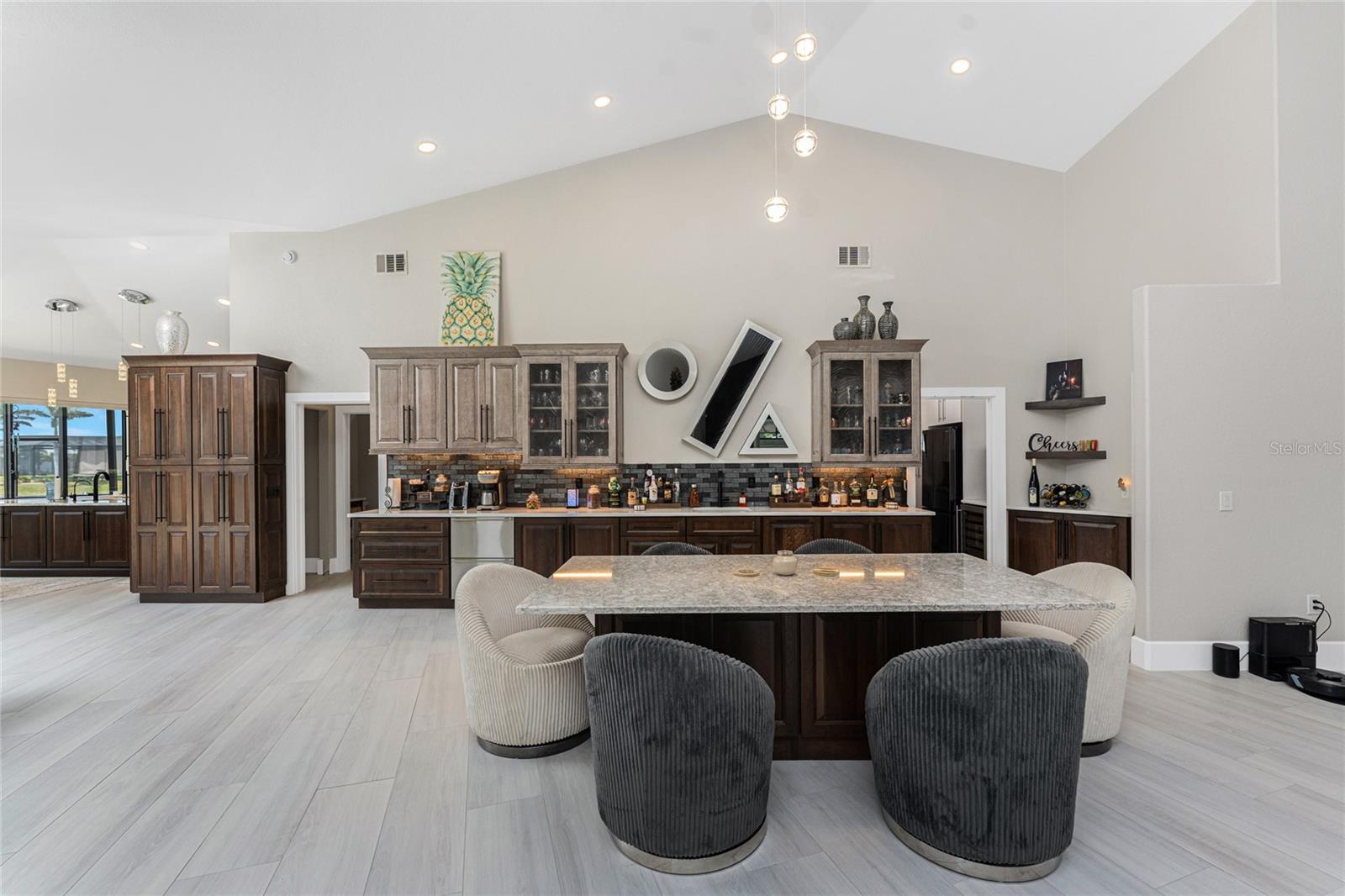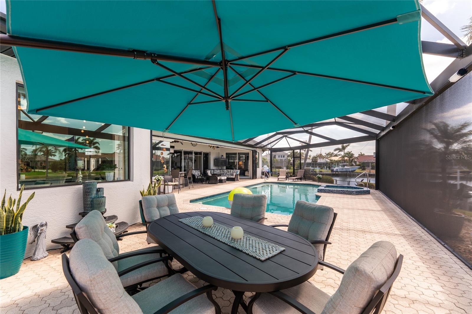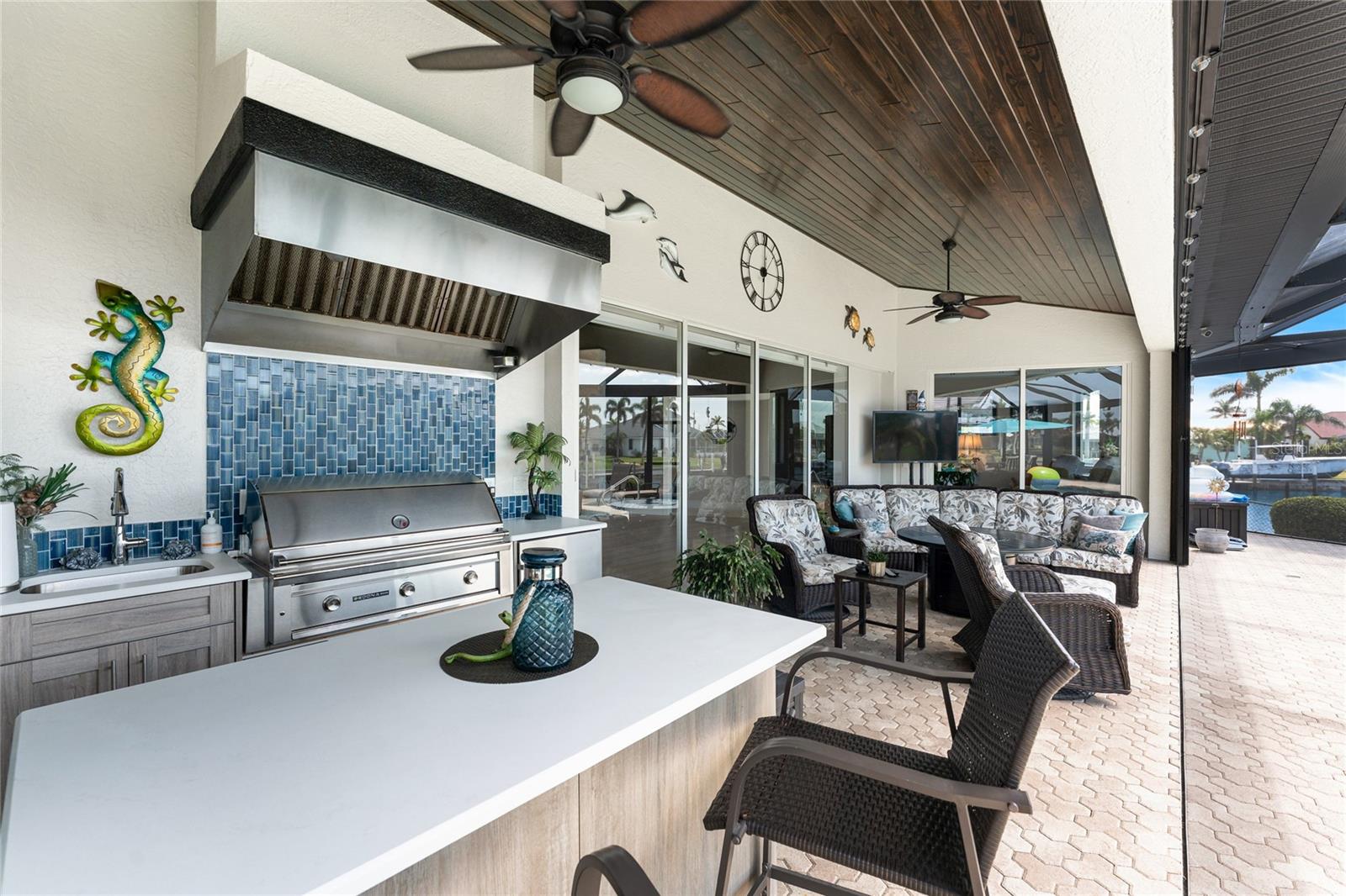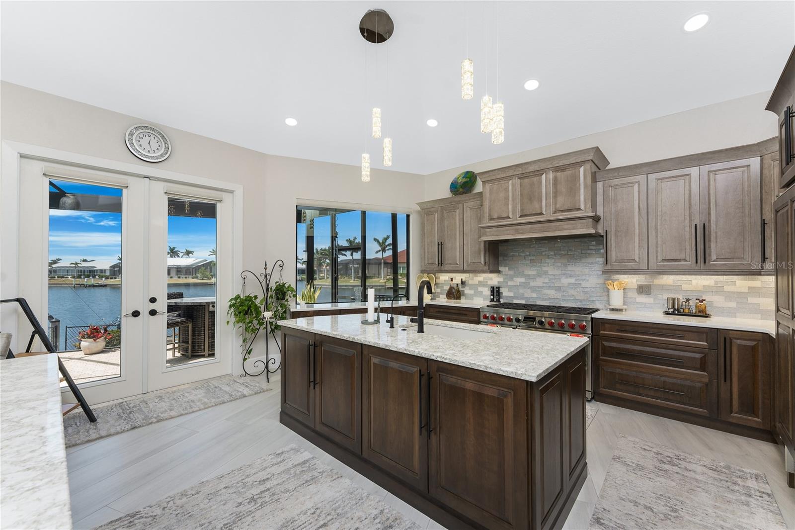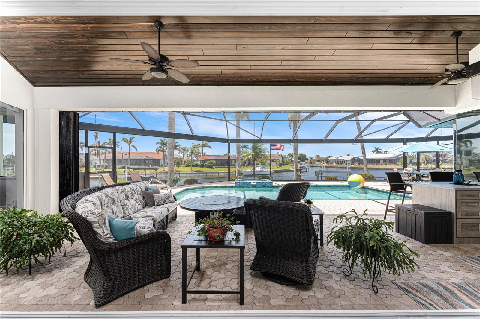 PLEASE WATCH BOTH VIDEOS ATTACHED! If you are looking for the perfect waterfront home that checks all the boxes…..look no more.This nearly 2900sqft, 3 Bedroom/3 Bath home is situated on a tip lot with over 144’ of seawall with TWO docks and TWO lifts (10K&15K) in the highly desirable community of Punta Gorda Isles. This is sailboat water with no bridges and only 15 min to Charlotte Harbor. This location is a boater’s dream! Upon arrival you will immediately be impressed with the updated paver driveway and landscaping. Here too, you will note the recently painted exterior and new (2024) metal stone covered roof. But this is just the beginning! This home has been COMPLETELY RENOVATED AND UPDATED INSIDE as well. Upon entering be prepared for a very pleasant surprise…you will find a unique and very welcoming floorpan with details found only in newer luxury homes. No part of the home has been ignored and all upgrades have been completed to a premium level. As you enter through the front door you will be greeted with a dazzling view in every direction….first through the slider to the pool and long canal view, then to the left and incredible stacked stone focal wall in the great room with a 98” TV and 100" Fireplace, and finally to the right to the huge wet bar and beyond to the all new kitchen. And talk about a kitchen! This is a chef’s delight with high level quartz counter tops and appliances from Wolf and SubZero. Here too you will find a huge island/dining area. Cabinet and counter space abound throughout this area. The large Primary Bedroom and Bath are all completely renovated and upgraded to the highest standards with great water and pool views. Both of the guest bedrooms are well sized and each with its own bath. Both the Primary Bedroom and second guest bedroom have new carpeting. Stepping outside to the massive lanai with its paver deck and 3 huge panoramic screens allow you to fully enjoy great view of the intersecting canals beyond. And no great home like this would not be complete without an outdoor kitchen! It’s here and completely updated as well! Other features include: *22kw propane generator *Bahama Shutters *all tile floors are 12x48 Ceramic tile *Remote control window shades in many rooms *whole house water conditioner * Reverse Osmosis water at kitchen and Freezer Ice maker*monitored security system/cameras *fiber optic or cable available *tons of cabinets and storage in the garage *Impact windows or shutters throughout the home A picture is worth a thousand words…please review all attached photos and video. Don’t miss your opportunity to own this very impressive home. You won’t be disappointed IT’S BETTER THAN NEW! Call today for your private showing.NOTE: This home had NO FLOODING during recent storms. All dimensions and specifications are deemed to be accurate and should be confirmed to the Buyer or Buyer's agent satisfaction. Infinity lights over wet bar and TVs do not convey....Large 98"TV in Great Room DOES CONVEY.