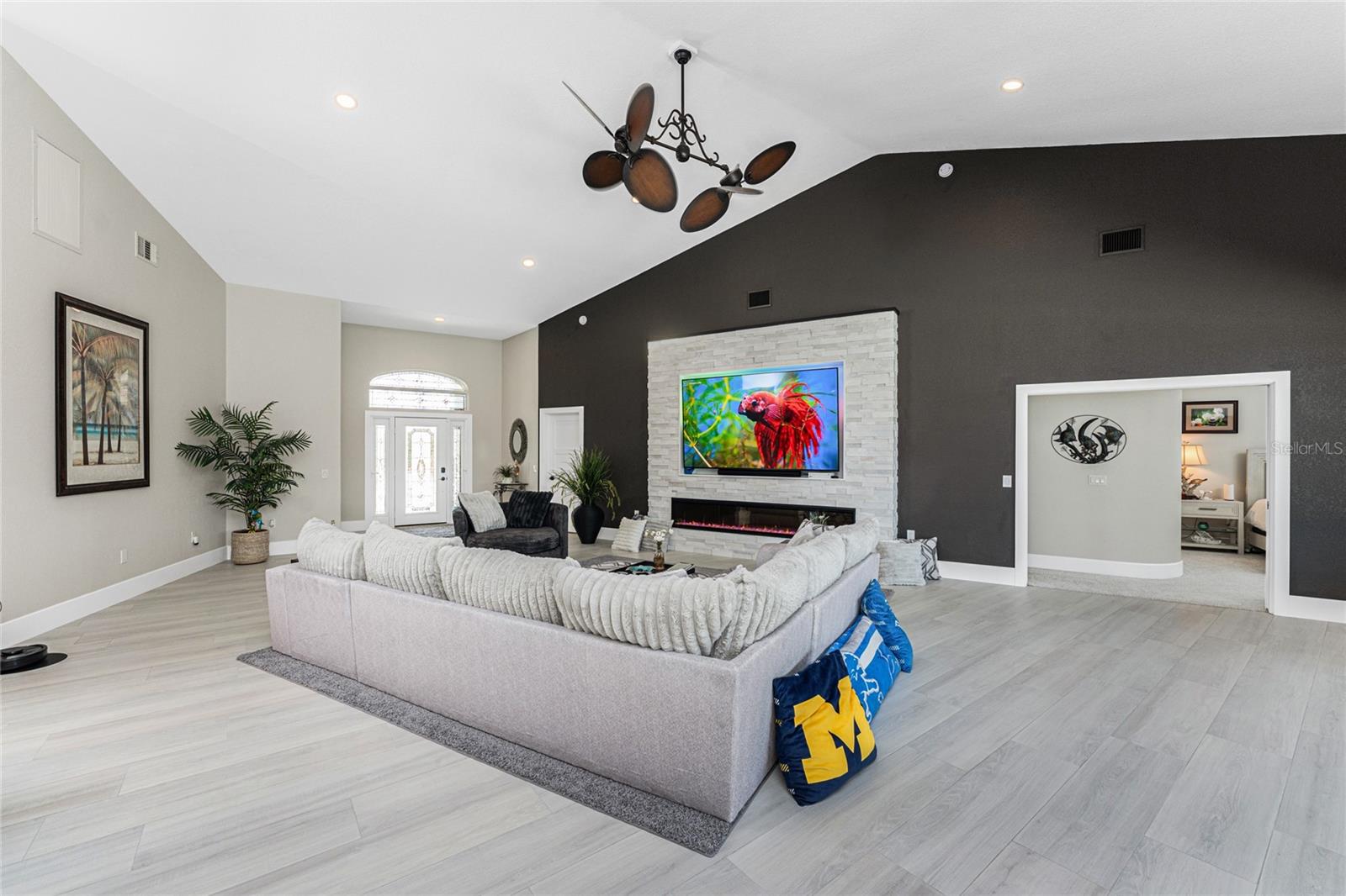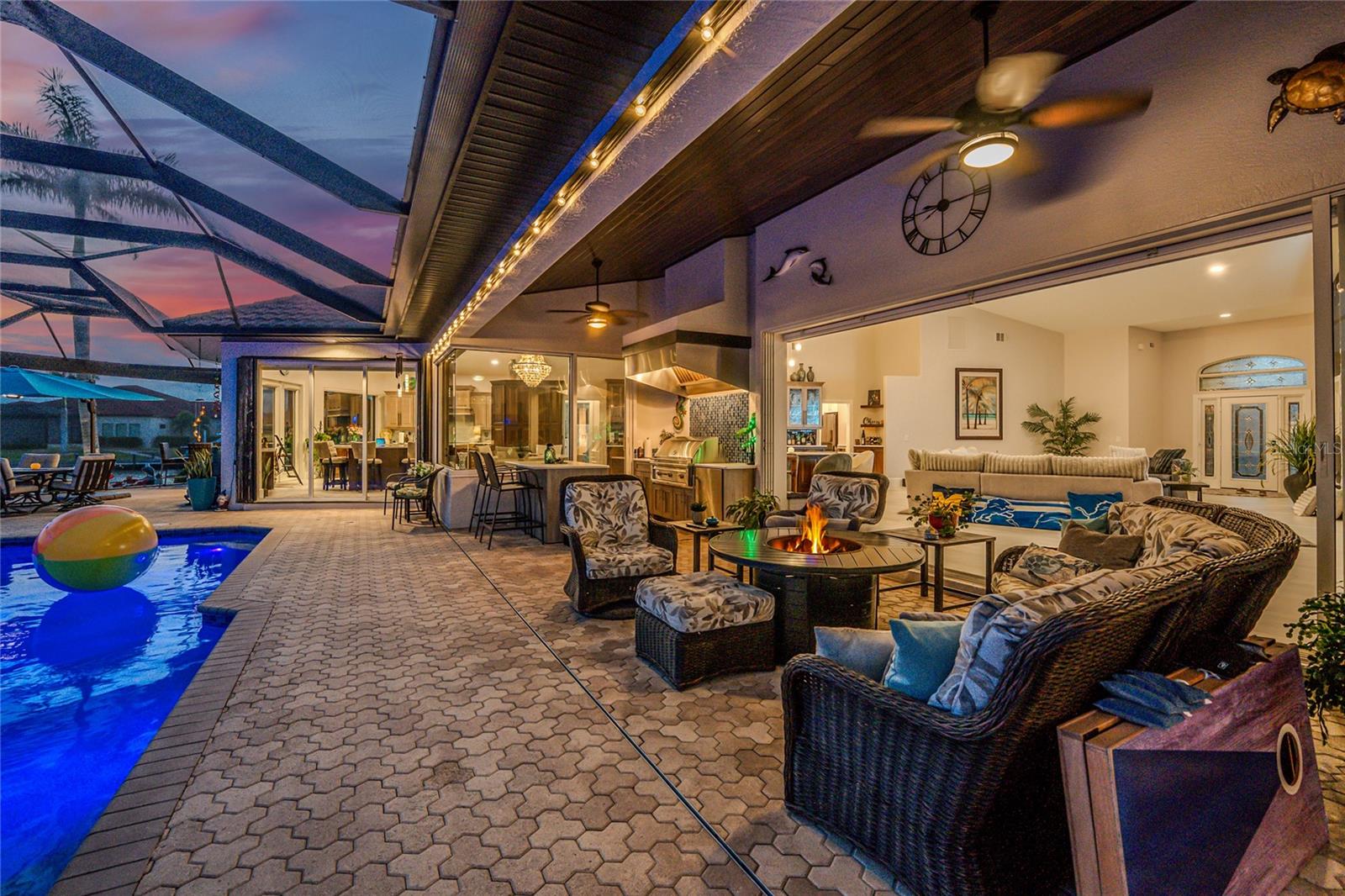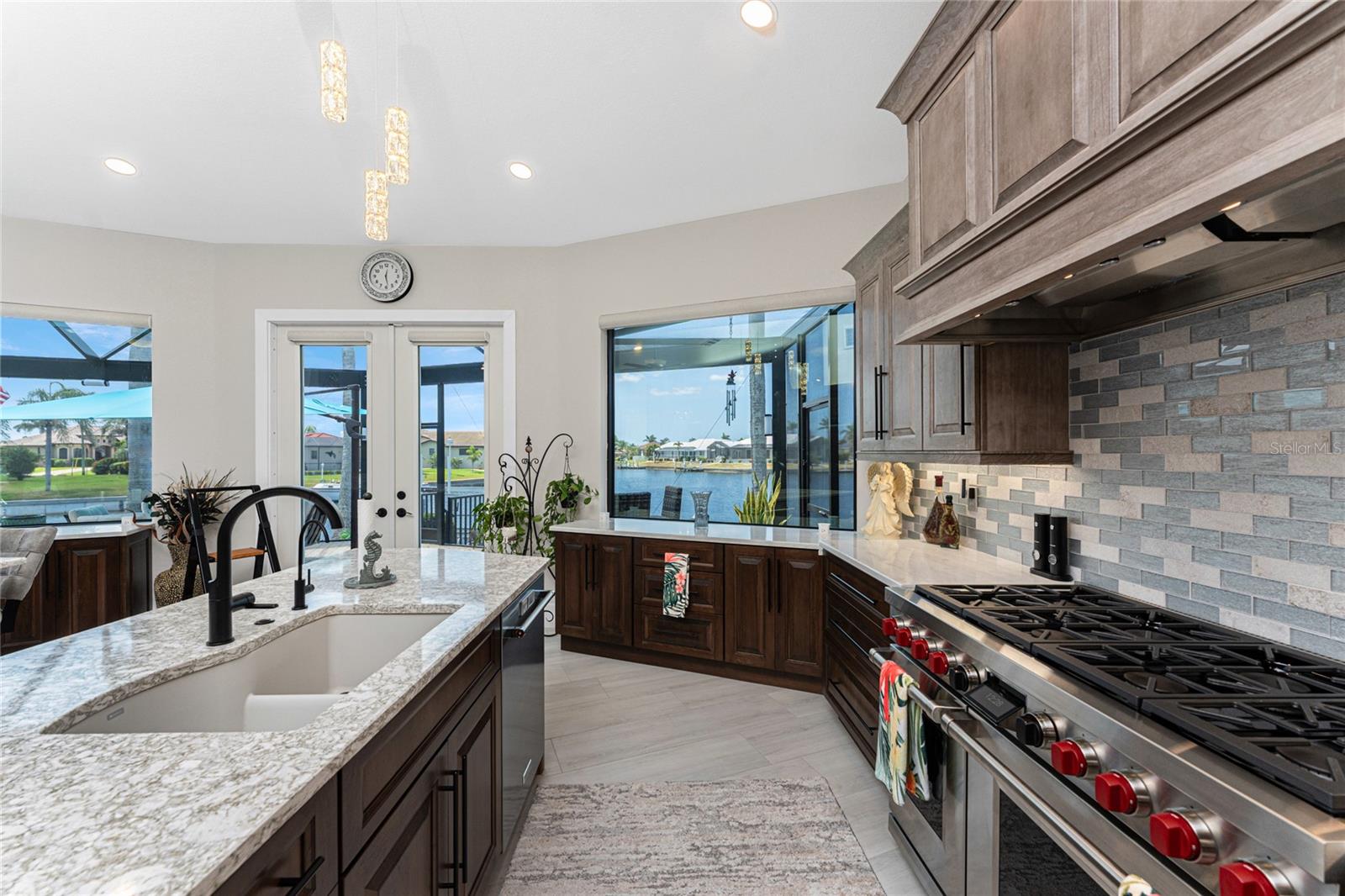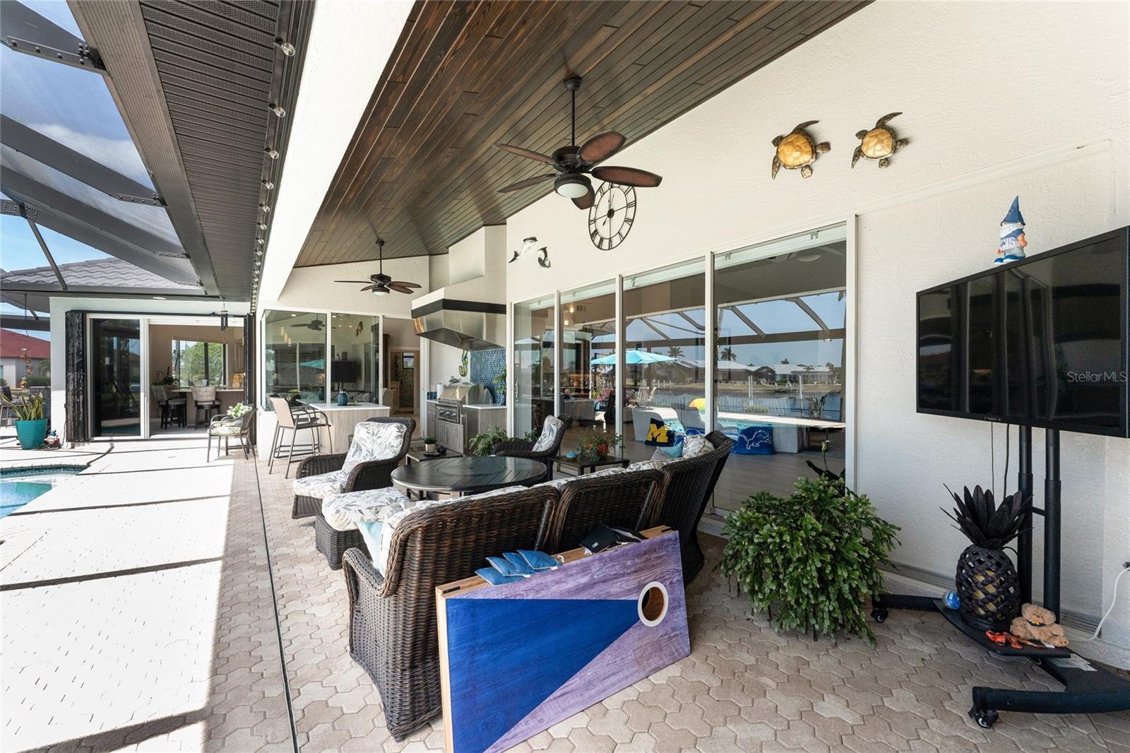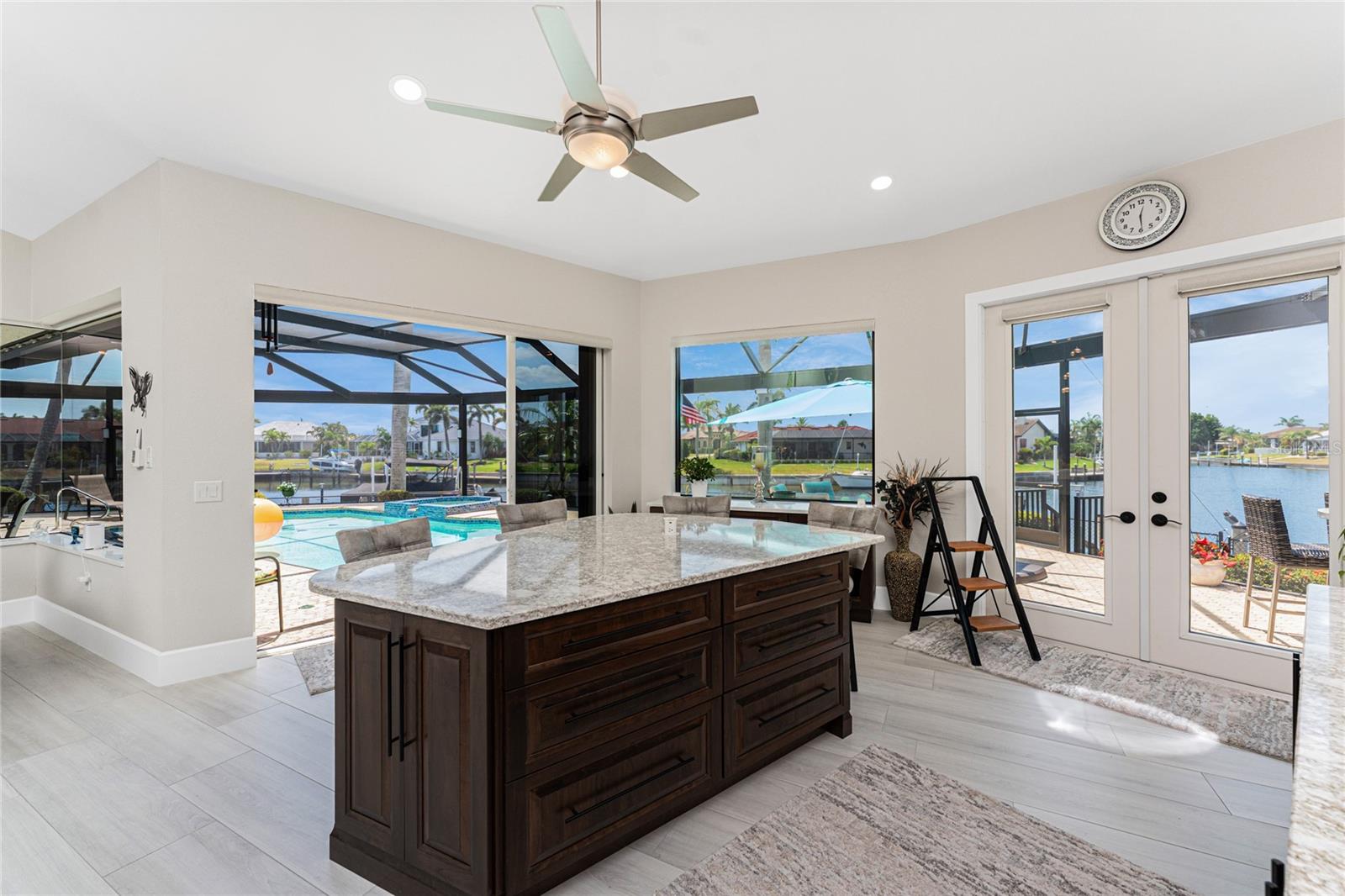 PLEASE WATCH BOTH VIDEOS ATTACHED! If you are looking for the perfect waterfront home that checks all the boxes…..look no more.This nearly 2900sqft, 3 Bedroom/3 Bath home is situated on a tip lot with over 144’ of seawall with TWO docks and TWO lifts (10K&15K) in the highly desirable community of Punta Gorda Isles. This is sailboat water with no bridges and only 15 min to Charlotte Harbor. This location is a boater’s dream! Upon arrival you will immediately be impressed with the updated paver driveway and landscaping. Here too, you will note the recently painted exterior and new (2024) metal stone covered roof. But this is just the beginning! This home has been COMPLETELY RENOVATED AND UPDATED INSIDE as well. Upon entering be prepared for a very pleasant surprise…you will find a unique and very welcoming floorpan with details found only in newer luxury homes. No part of the home has been ignored and all upgrades have been completed to a premium level. As you enter through the front door you will be greeted with a dazzling view in every direction….first through the slider to the pool and long canal view, then to the left and incredible stacked stone focal wall in the great room with a 98” TV and 100" Fireplace, and finally to the right to the huge wet bar and beyond to the all new kitchen. And talk about a kitchen! This is a chef’s delight with high level quartz counter tops and appliances from Wolf and SubZero. Here too you will find a huge island/dining area. Cabinet and counter space abound throughout this area. The large Primary Bedroom and Bath are all completely renovated and upgraded to the highest standards with great water and pool views. Both of the guest bedrooms are well sized and each with its own bath. Both the Primary Bedroom and second guest bedroom have new carpeting. Stepping outside to the massive lanai with its paver deck and 3 huge panoramic screens allow you to fully enjoy great view of the intersecting canals beyond. And no great home like this would not be complete without an outdoor kitchen! It’s here and completely updated as well! Other features include: *22kw propane generator *Bahama Shutters *all tile floors are 12x48 Ceramic tile *Remote control window shades in many rooms *whole house water conditioner * Reverse Osmosis water at kitchen and Freezer Ice maker*monitored security system/cameras *fiber optic or cable available *tons of cabinets and storage in the garage *Impact windows or shutters throughout the home A picture is worth a thousand words…please review all attached photos and video. Don’t miss your opportunity to own this very impressive home. You won’t be disappointed IT’S BETTER THAN NEW! Call today for your private showing.NOTE: This home had NO FLOODING during recent storms. All dimensions and specifications are deemed to be accurate and should be confirmed to the Buyer or Buyer's agent satisfaction. Infinity lights over wet bar and TVs do not convey....Large 98"TV in Great Room DOES CONVEY.