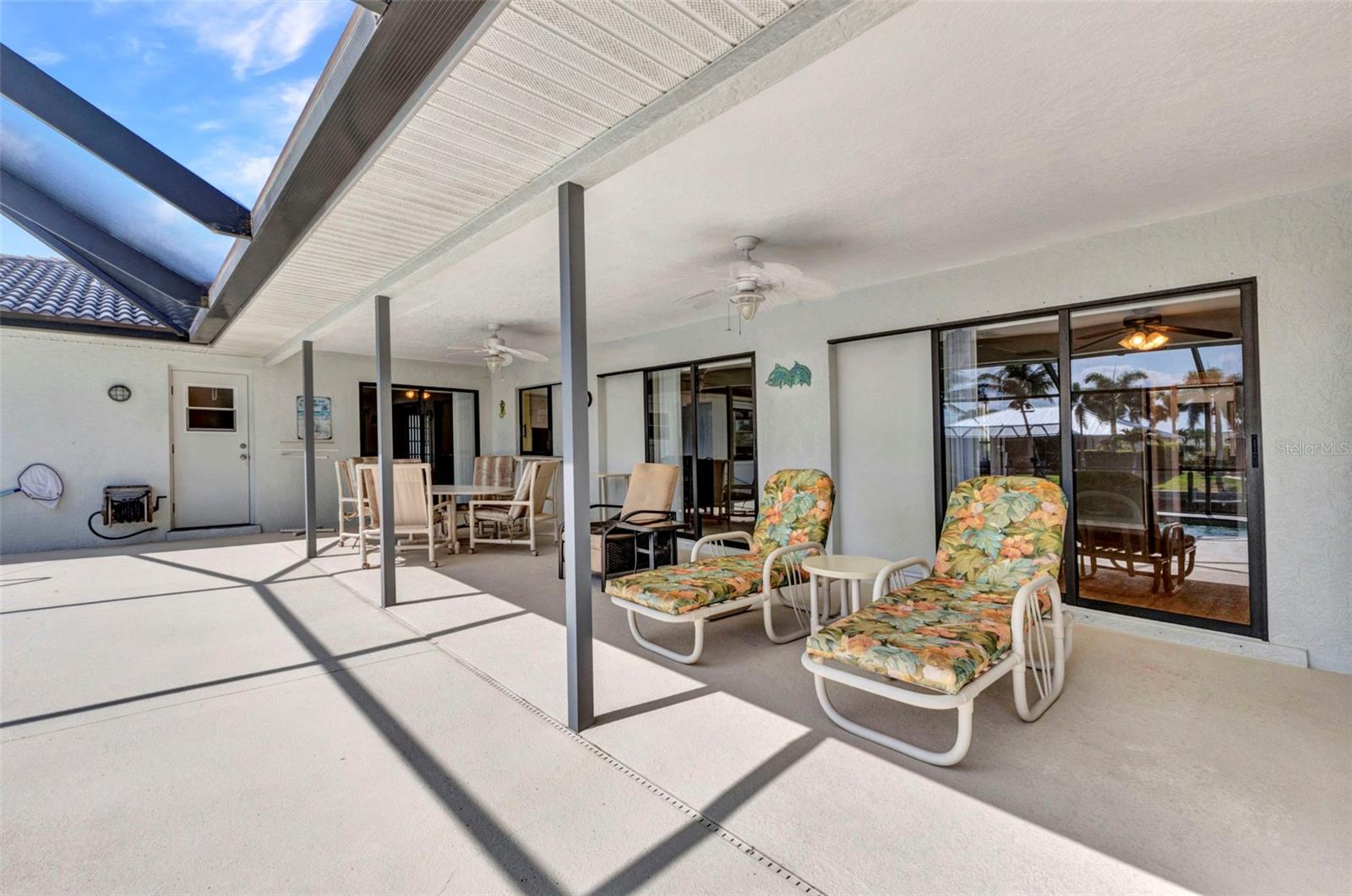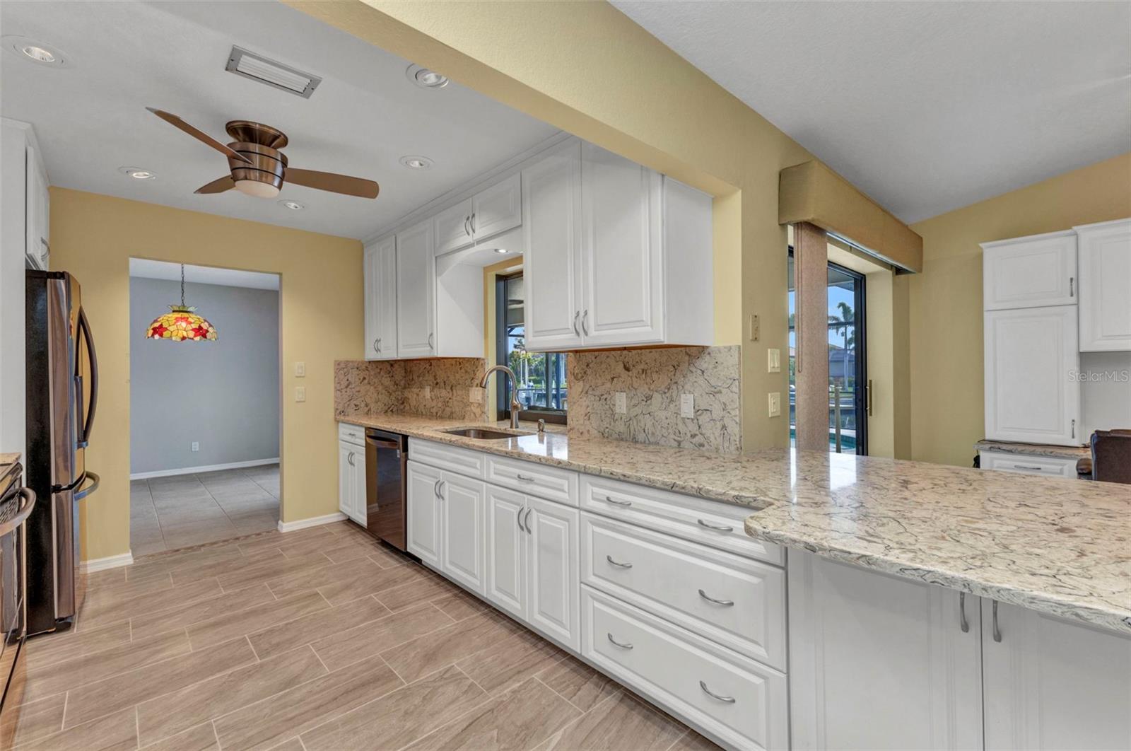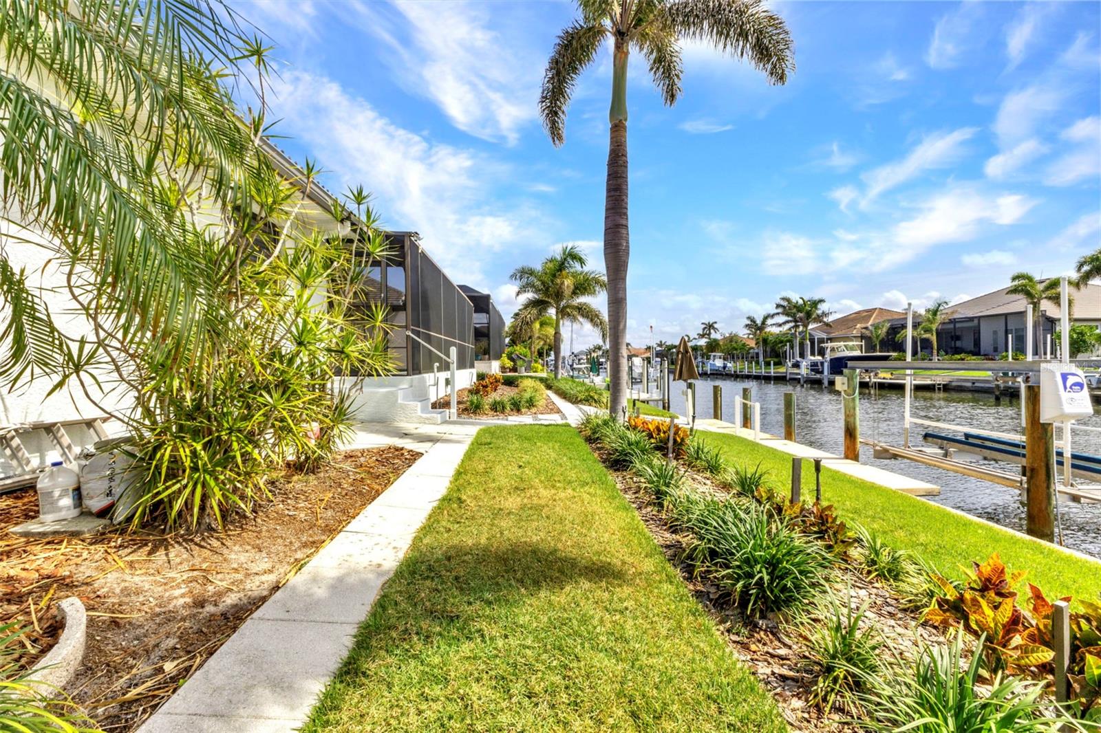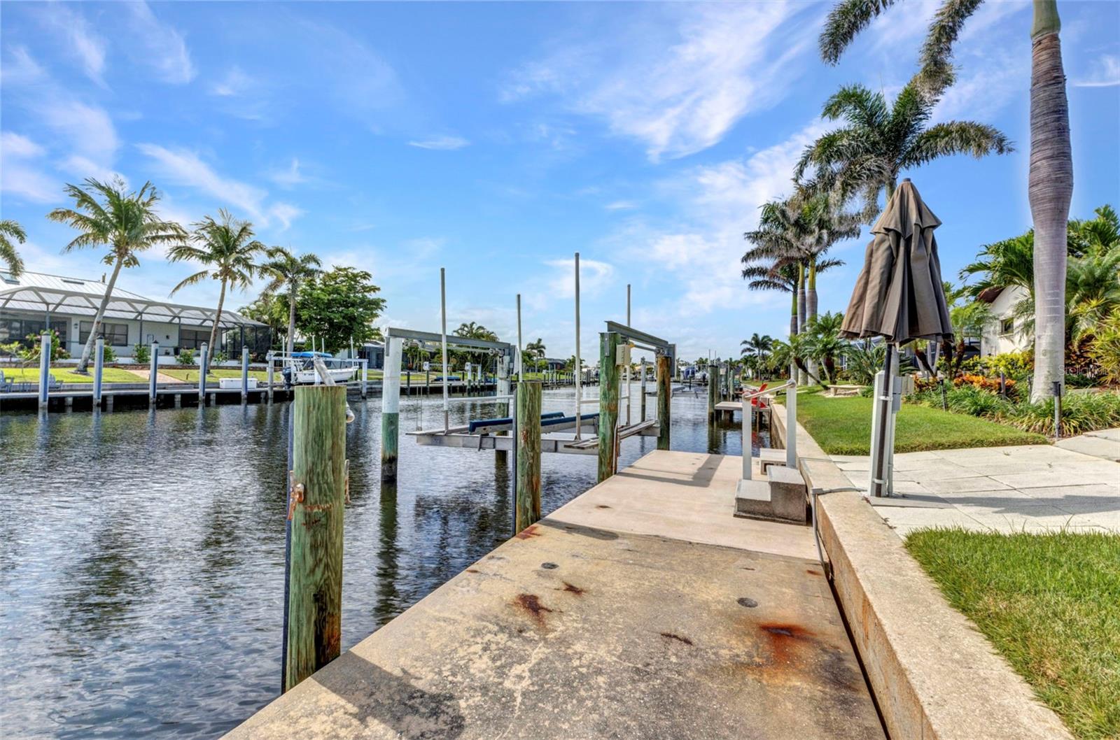 HUGE PRICE ADJUSTMENT!!! LOCATION LOCATION LOCATION .... Deep draft sailboat water, minutes from Charlotte Harbor - hop in your boat and you can be fishing or frolicking in Boca Grande in no time. You will enjoy a cooks kitchen which has been updated with quartz counter tops and a full backsplash throughout. It has plenty of storage and easy access to the dining room and a pass through window to the lanai. The 3 bedroom split floor plan, 2 bath home also features a 7 x 15 air-conditioned work shop/office in the garage, a desk area just off the kitchen and lots of updating. Extremely well maintained and cared for - inside AND out - the home offers vaulted ceilings, extensive tile flooring throughout - except for the carpeted guest bedrooms and the primary which features luxury vinyl wood plank flooring. All bedrooms boast walk in closets; all rooms have lighted ceiling fans and hurricane shutter protection is in place for all windows, along with wood shutter protection for the sliding doors. Enjoy your spacious lanai and have fun entertaining your friends around the sparkling pool over looking your concrete dock, 10,000# lift and 80' of concrete seawall maintained by the city of Punta Gorda. There is always something happening in Punta Gorda. PGI property owners can join the PGI Civic Association and enjoy its many, varied clubs. The area has two golf courses with access to tennis, pickleball, hiking and biking routes, Hounds on Henry dog park, public boat ramps at Ponce Park and Marina Park, weekend farmer markets, Isles Yacht Club, Visual Arts Center, Charlotte County Event Center, Charlotte County Library, award winning restaurants and much more. This property has had NO DAMAGE or FLOODING from previous storms. High and dry!!!
