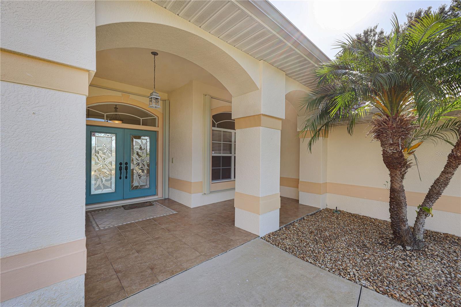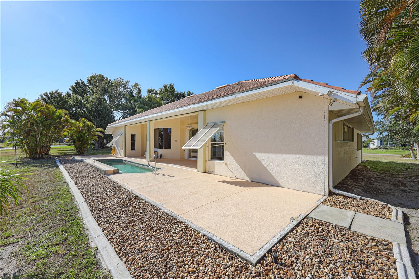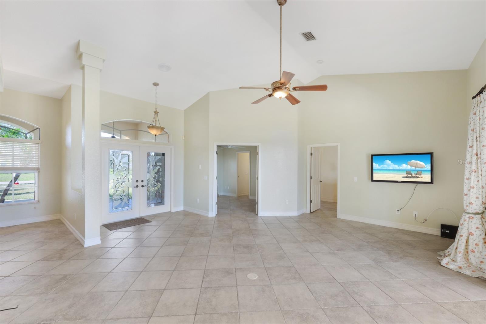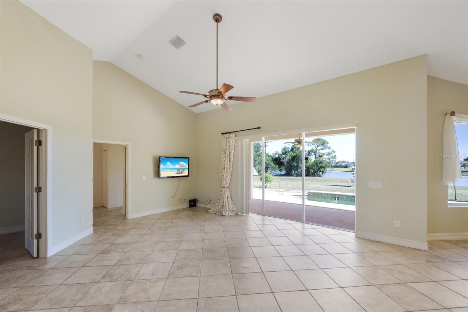 Welcome to this beautiful Deep Creek LAKE VIEW 3-bedroom (with optional 4th bedroom/office) home nestled on the shore of Lake Zappa in the desirable Deep Creek community. From the moment you step through the double etched-glass front doors, you’re greeted by breathtaking lake views and the peaceful presence of local wildlife. A large aquarium window provides the perfect backdrop for morning coffee or relaxing with a book, while the gourmet kitchen — complete with granite countertops, glass-front cabinetry, and panoramic lake views — is a dream for both cooking and entertaining. Enjoy Florida’s indoor-outdoor lifestyle with 8-foot sliding doors that open to the pool deck area, creating a seamless flow for gatherings or quiet evenings by the water. The spacious primary suite features a luxurious en-suite bathroom with dual sinks, a jetted soaking tub, walk-in shower, and walk-in closet. Throughout the home, you'll find thoughtful touches like 14-foot ceilings, porcelain tile flooring, a built-in stereo system, hurricane shutters, and a tile roof. The dedicated office with French doors and a closet easily doubles as a fourth bedroom. Additional highlights include: Split bedroom floor plan for added privacy. Buyer must be willing to add pool cage per deed restrictions of the community. Conveniently located near shopping, dining, golf courses, I-75, and historic downtown Punta Gorda and all the activities.