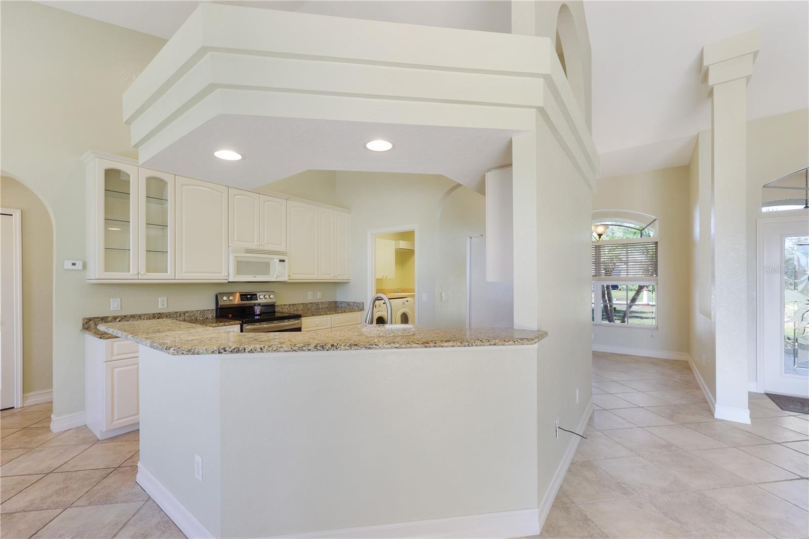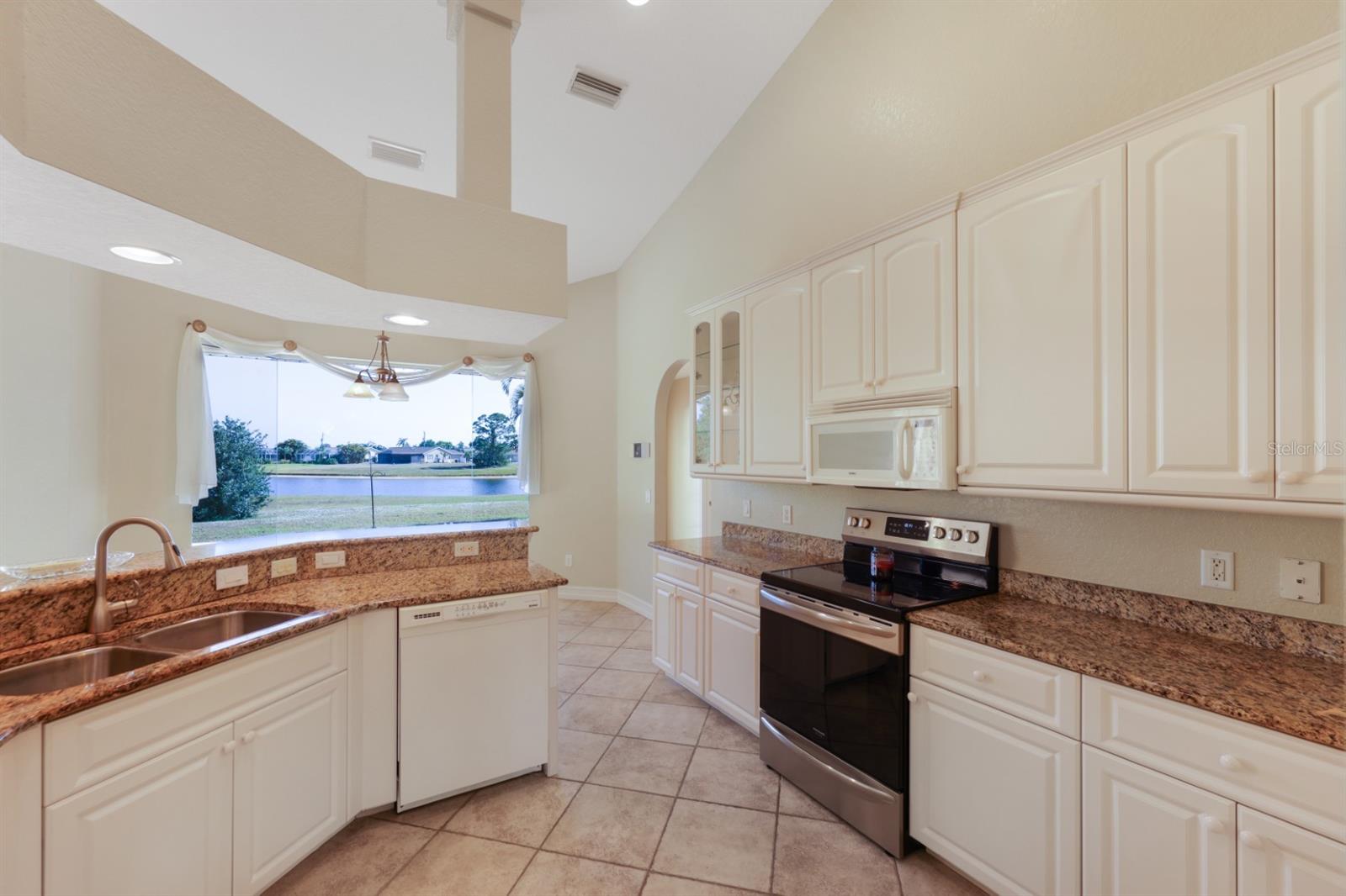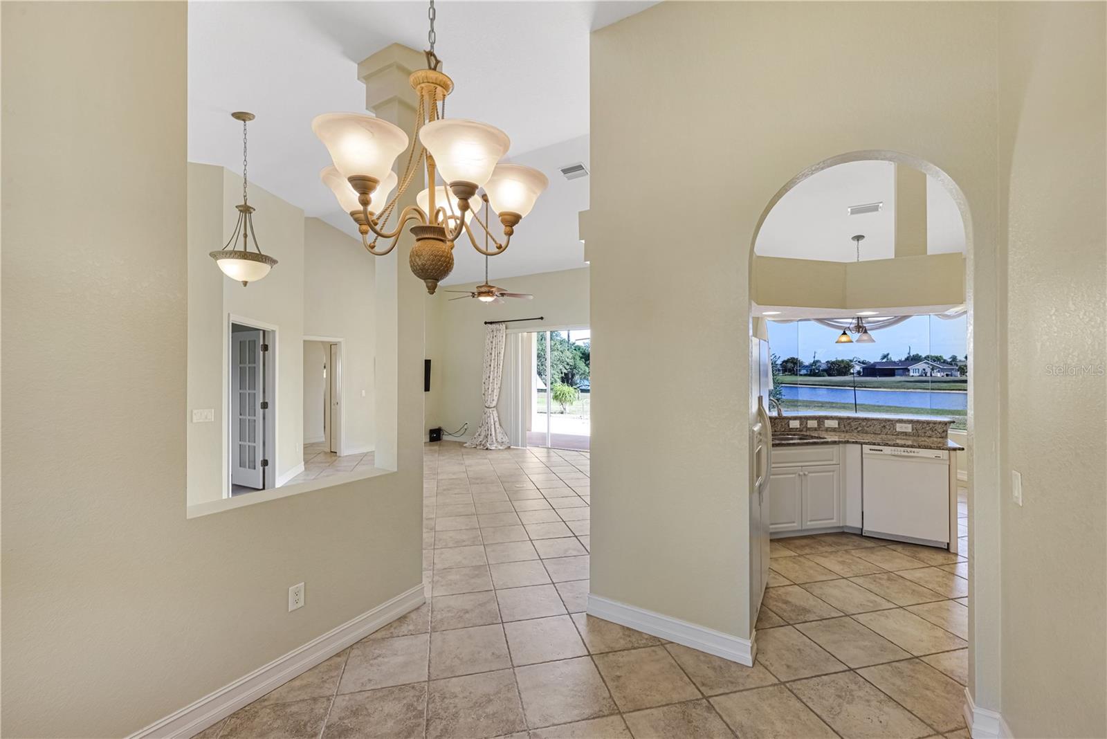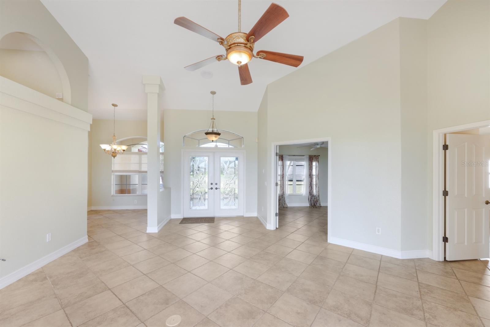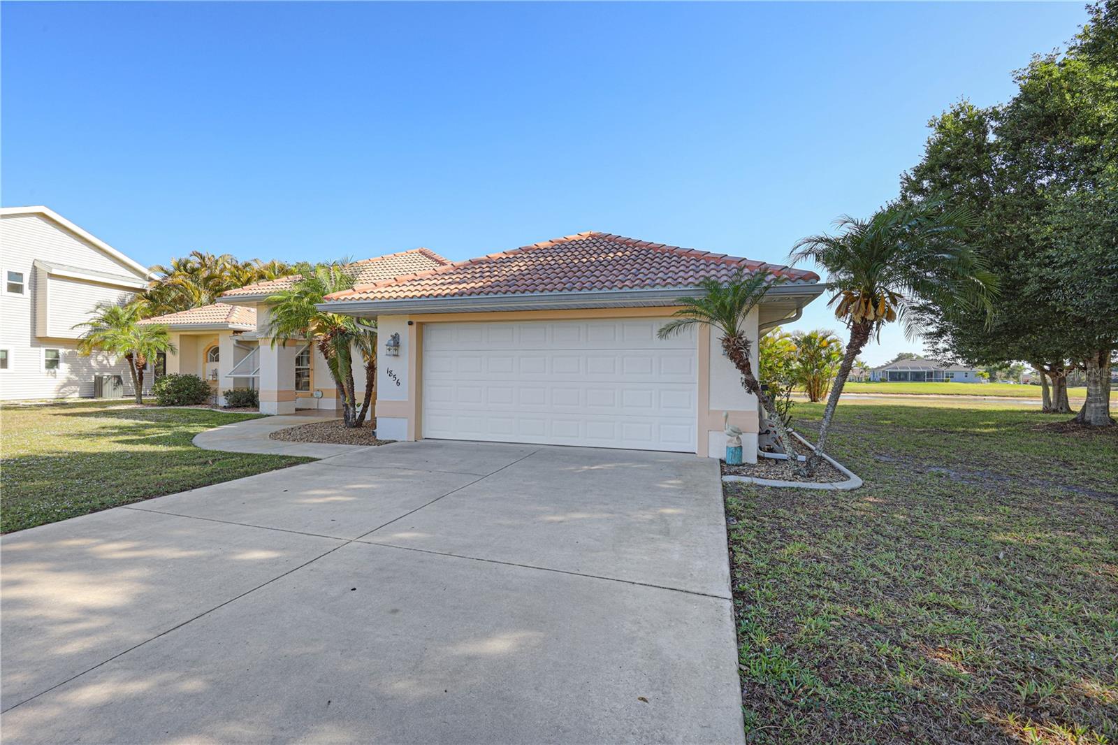 Welcome to this beautiful Deep Creek LAKE VIEW 3-bedroom (with optional 4th bedroom/office) home nestled on the shore of Lake Zappa in the desirable Deep Creek community. From the moment you step through the double etched-glass front doors, you’re greeted by breathtaking lake views and the peaceful presence of local wildlife. A large aquarium window provides the perfect backdrop for morning coffee or relaxing with a book, while the gourmet kitchen — complete with granite countertops, glass-front cabinetry, and panoramic lake views — is a dream for both cooking and entertaining. Enjoy Florida’s indoor-outdoor lifestyle with 8-foot sliding doors that open to the pool deck area, creating a seamless flow for gatherings or quiet evenings by the water. The spacious primary suite features a luxurious en-suite bathroom with dual sinks, a jetted soaking tub, walk-in shower, and walk-in closet. Throughout the home, you'll find thoughtful touches like 14-foot ceilings, porcelain tile flooring, a built-in stereo system, hurricane shutters, and a tile roof. The dedicated office with French doors and a closet easily doubles as a fourth bedroom. Additional highlights include: Split bedroom floor plan for added privacy. Buyer must be willing to add pool cage per deed restrictions of the community. Conveniently located near shopping, dining, golf courses, I-75, and historic downtown Punta Gorda and all the activities.