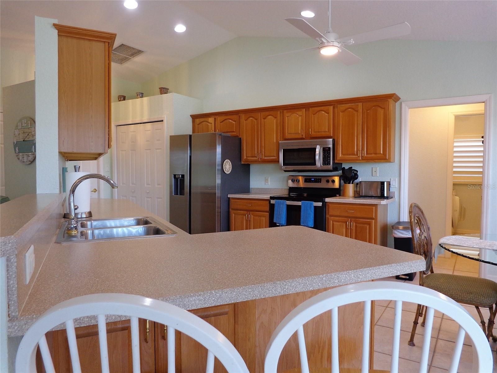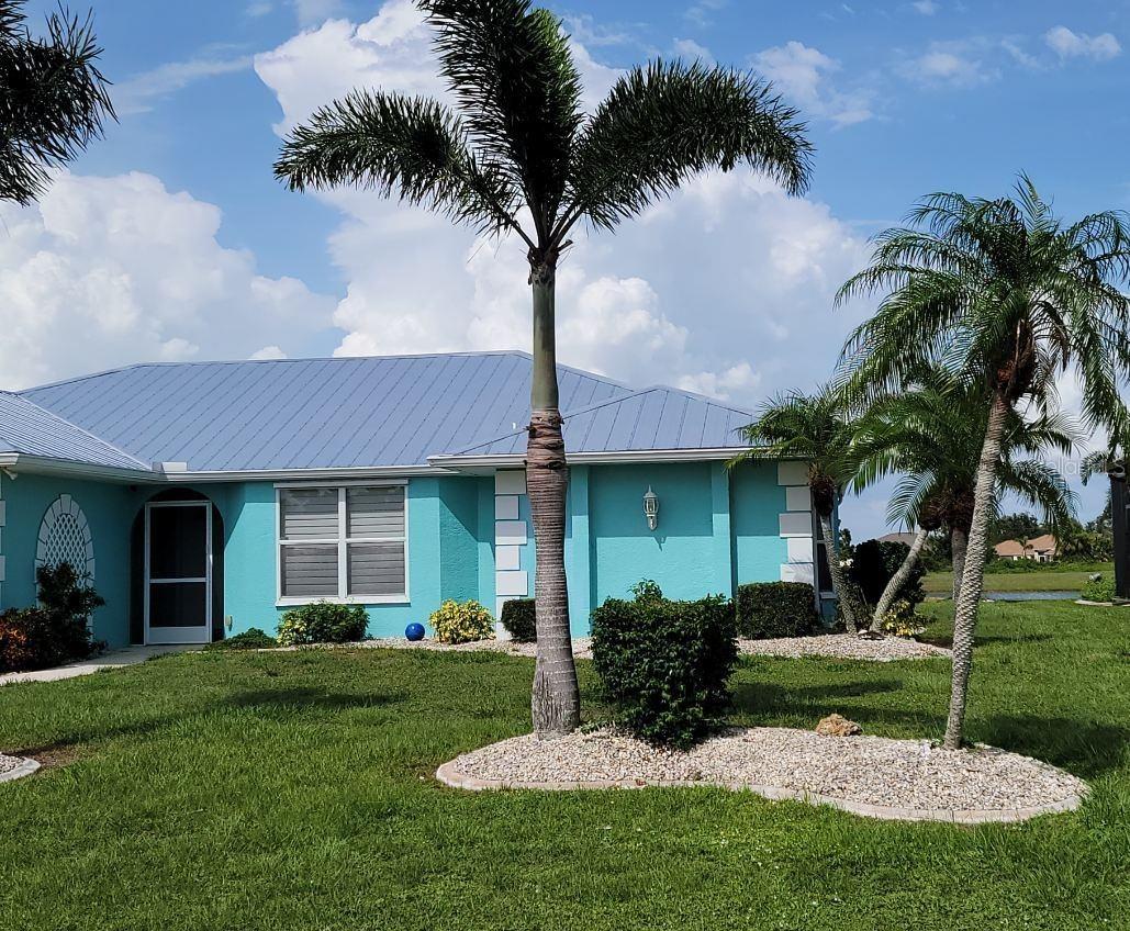 Meticulously maintained home on a cul-de-sac street located in the much sought after deed restricted community of Deep Creek, offering public water, public sewer, and a reasonable HOA fee. Open kitchen so you don't miss out on anything going on when entertaining. Kitchen offers newer range and refrigerator, Bosch dishwasher, closet pantry, cabinetry with pull out drawers and breakfast bar. Dining area overlooks the back yard and lake. Spacious living room with a four panel pocket sliding door to the covered and screened lanai with a lake view. Primary bedroom has a French door for private access to the lanai, en-suite bathroom with a walk-in shower, makeup vanity, and two walk-in closets. Split bedroom plan with a pocket door for additional privacy to bedrooms 2 and 3. Plantation shutters on windows, neutral tile flooring in the main living area and carpeted bedrooms. Interior laundry with laundry sink, cabinets, and includes the washer and dryer. April 2025 - New garage door opener. February 2023 - Changeout to a new Ruud A/C system. November 2022 - New Metal Roof. April 2022 - Re-piped water lines inside home. Just a 15 minute drive to the Punta Gorda Airport (PGD). Golf, parks, restaurants, schools, medical, churches and shopping are all nearby. A short distance to I-75 at exit 167 or 170 affords easy access to historic downtown Punta Gorda/Fort Myers/Naples to the south and North Port/Venice/Sarasota to the north. Only 2 miles to Deep Creek Golf Club, open to the public.