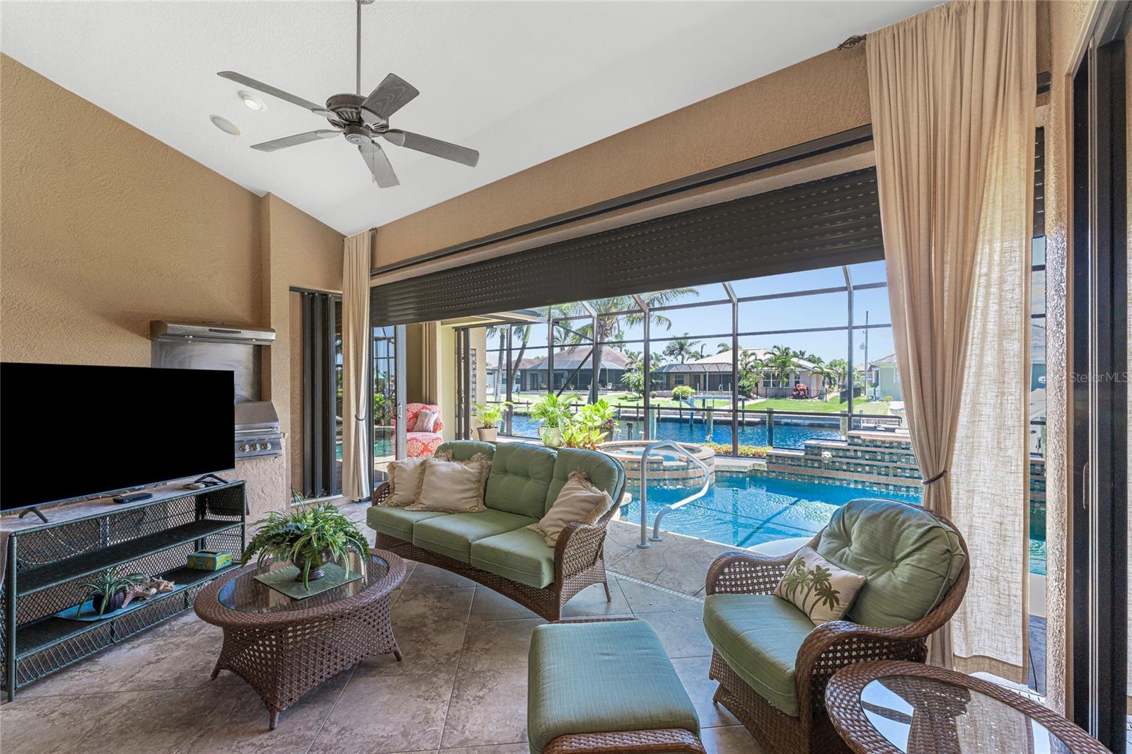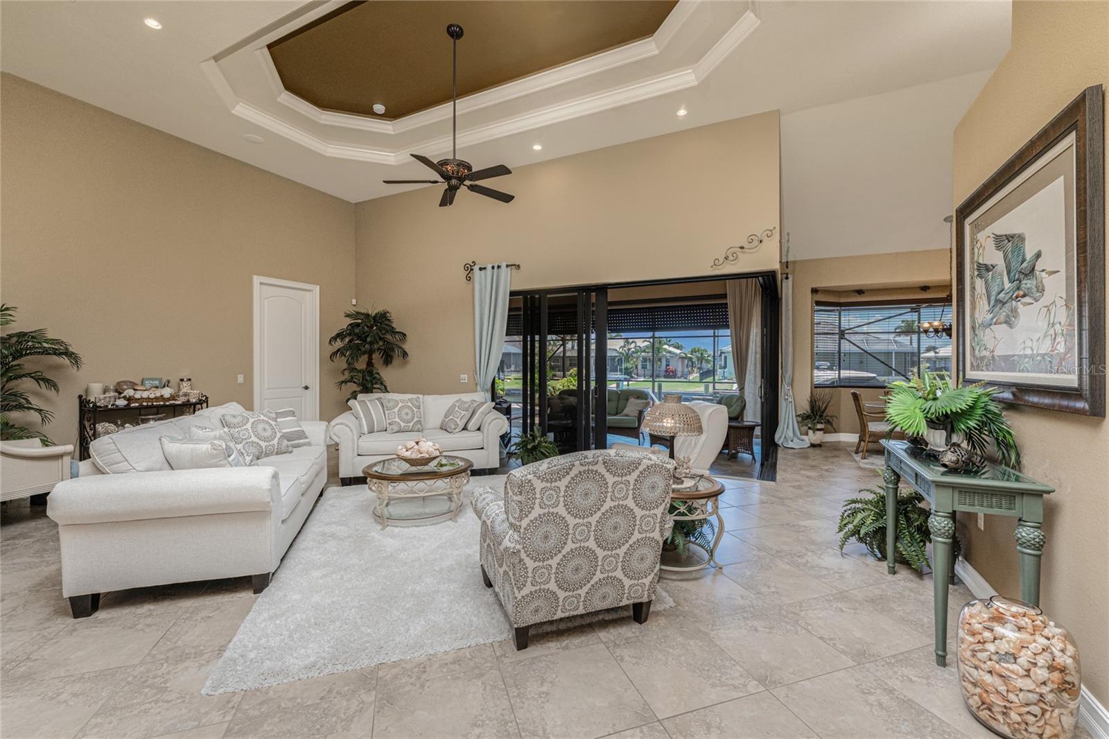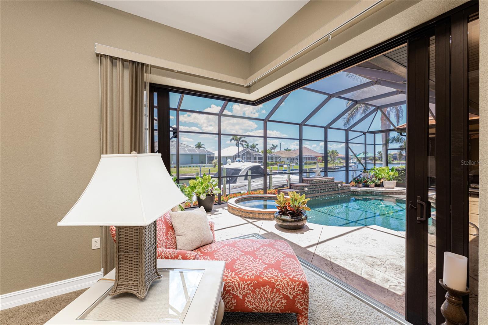 Stunning WATERFRONT custom pool home located in desirable deed restricted PUNTA GORDA ISLES. SAILBOAT ACCESS to Charlotte Harbor and on to the Gulf from the 97 FOOT concrete seawall (maintained by the city of Punta Gorda) and 82 FOOT concrete DOCK with 50 amp service and Slidemoors that were rebuilt in 2023. This 3 Bedroom, 2 full Bathroom and 2 half Bathroom home with attached 2 Car Garage has gorgeous design features throughout the home. There is a Great Room, separate Dining Room, well appointed Kitchen, Study/Den with 2 large windows, Inside Laundry and Bonus Room on the second floor. The Great Room features diagonal lay 18 inch tile flooring, double tray ceiling, zero corner sliding glass doors lead to the Lanai. There is a separate Dining Room with large windows with transom windows, tray ceiling and French doors to balcony. The Kitchen features stone counters, wood cabinets with crown molding and some with glass doors, tile backsplash, breakfast bar, double sink, large island, large pantry closet, stainless appliances. Appliances include French door refrigerator, oven/range with gas cooktop/hood, dishwasher, built in microwave and oven. The large Dining area in the Kitchen has aquarium glass overlooking the pool and water and access to the lanai via sliding glass doors. The Inside Laundry has a washer, dryer, cabinet with sink, 2 large windows and shelf. There is a Bonus Room on the second floor currently used as a media room, wet bar with under counter refrigerator, sink, stone counter and wood cabinet. A glass door leads to a 14x14 open covered porch with extensive water views. The bedrooms are on the first floor. The Master Bedroom suite offers a tray ceiling, sliding glass doors to the lanai, walk in closet and private bathroom. The Bathroom features two large antique style his and hers vanities with sinks, stone counters and wood mirrors. There is a garden tub and walk in shower. There are two generous sized guest bedrooms with double closets and storage above. Your living space extends to the screened Lanai. The covered area has tile flooring, ceiling fan, half bath, and summer Kitchen with gas grill, hood, under counter refrigerator and sink. There is an outdoor shower, saltwater inground pool and spa with variable speed pump and fabulous water views. Other features include ** NEW METAL ROOF AUG 2024**, hurricane shutters, water softener, Mediterranean style architecture, lush tropical landscaping, rain gutters, double door entry with transom window, tile floors throughout the living areas, carpet in the bedrooms, recirculating pump on the hot water system, 14 foot ceilings, 8 foot doors. Second floor door and windows are storm resistant- hurricane shutters for other openings. There are two A/C systems- one for the first floor and a unit with variable speed motor for the second floor. are city water and sewer. There are deed restrictions but NO HOA. This home is 5 minutes from Golf and 10 minutes from Fishermen's Village and historic downtown Punta Gorda shopping, dining, medical care, waterfront parks, boat ramps, walking and biking paths, art galleries, Charlotte Harbor Event Center, weekend farmer and artisan markets, downtown events and more!