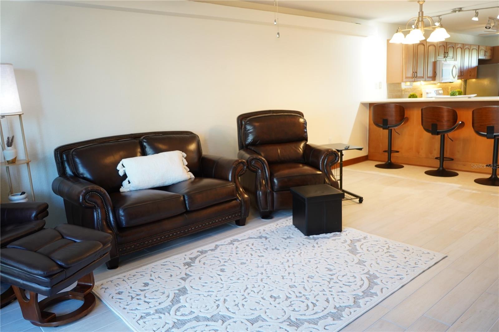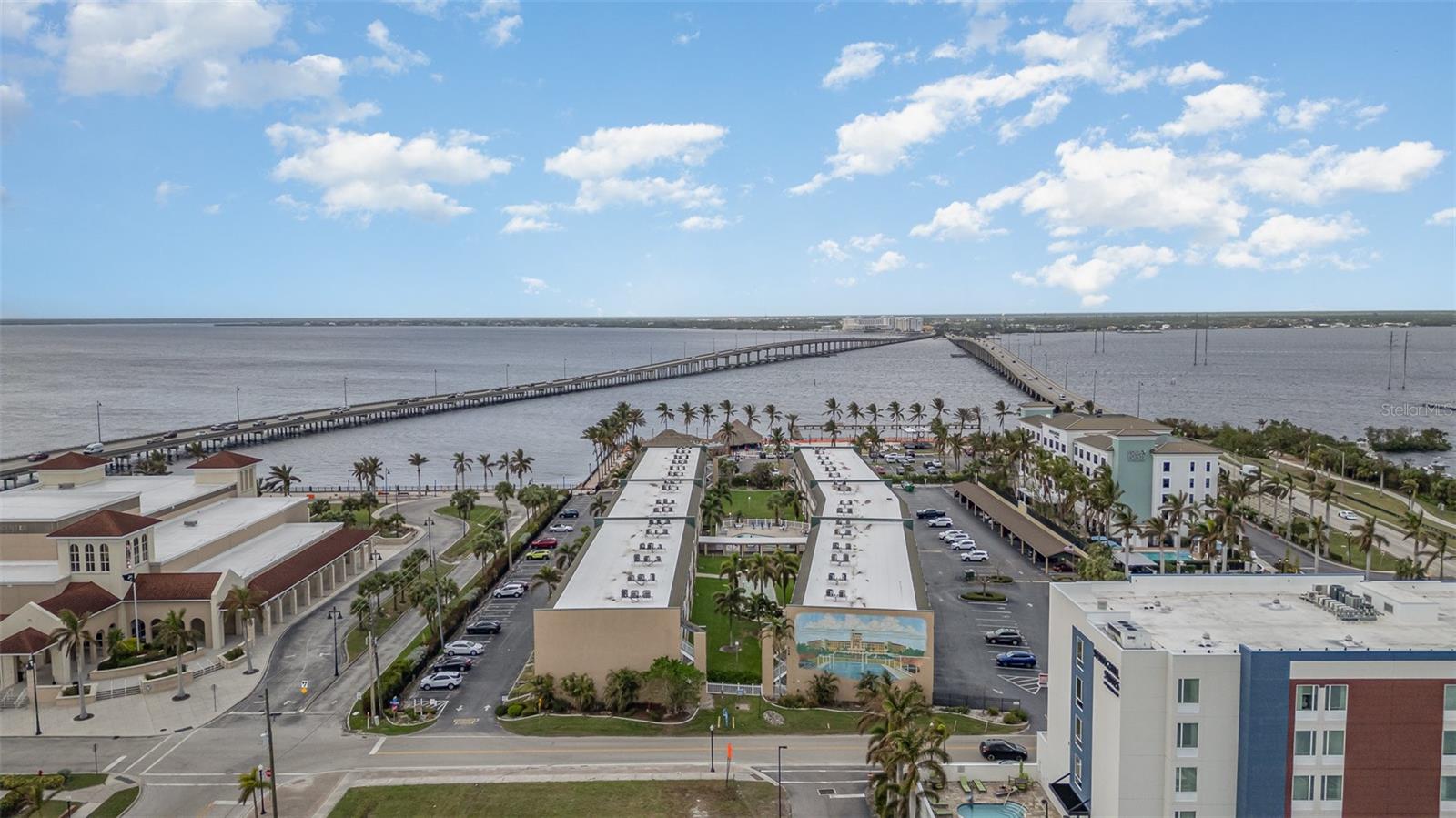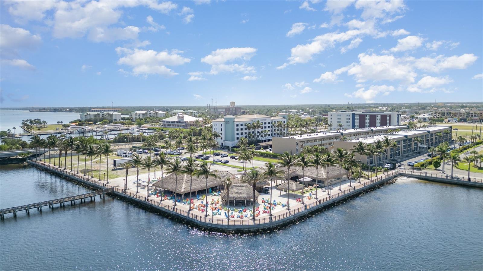 Welcome to your new home at Charlevoi Condos! Experience resort-style 55+ living in the heart of downtown Punta Gorda with this beautifully maintained and thoughtfully updated unit - offering one of the most attractive price points in the community. The inviting condo features freshly painted walls in soft, modern natural tone that brightens the space with warm and airy feel. Enjoy new tile installed in October 2025 in the main living area. The kitchen is equipped with wood cabinetry, a tiled backsplash with under-cabinet lighting, a pantry, and a convenient in-unit washer and dryer. Thoughtful design touches include a built-in rotating shelf in the corner cabinet for easy access to pots and pans. Additional highlights include built-in ceiling speakers in the living room, a built-in desk for added workspace, and recent upgrades such as a new hot water heater and roof (2024). The primary bedroom offers generous storage with two closets, including a large walk-in. Step onto your private lanai and take in peaceful water views. This charming retreat features a ceramic tile floor with an indoor-outdoor rug designed to mimic lush grass, along with a storage closet for extra convenience—perfect for relaxing or entertaining. Charlevoi offers residents a vibrant, maintenance-free lifestyle with community amenities and an unbeatable downtown location—just steps from the Charlotte Harbor Event & Conference Center, restaurants, boutique shops, the weekend farmers market, and miles of scenic walking and biking paths. Whether you’re downsizing, investing, or ready to embrace the Florida lifestyle, this updated condo combines comfort, convenience, and charm in a prime Punta Gorda location. Schedule your private showing today!