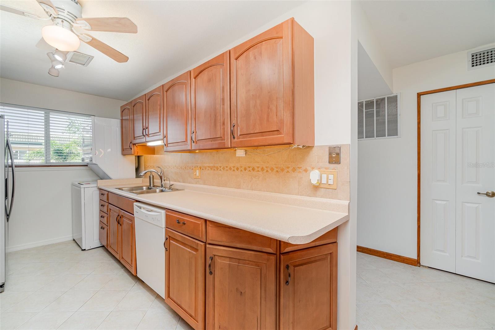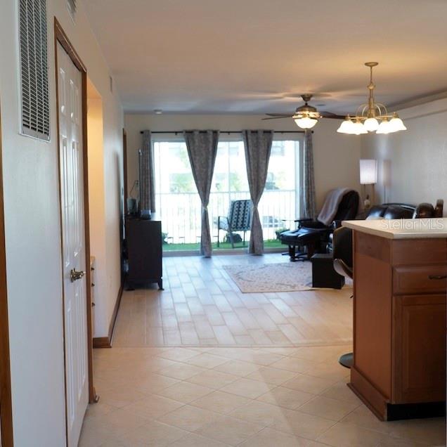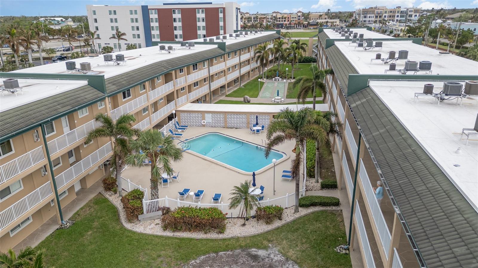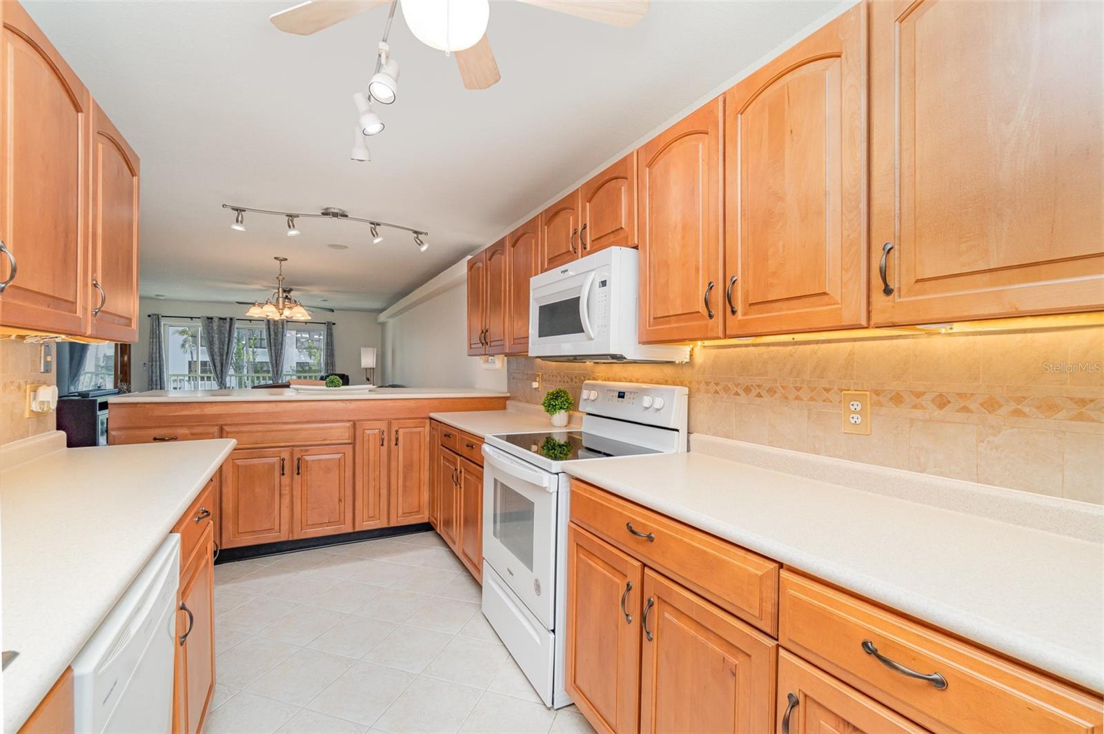 Welcome to your new home at Charlevoi Condos! Experience resort-style 55+ living in the heart of downtown Punta Gorda with this beautifully maintained and thoughtfully updated unit - offering one of the most attractive price points in the community. The inviting condo features freshly painted walls in soft, modern natural tone that brightens the space with warm and airy feel. Enjoy new tile installed in October 2025 in the main living area. The kitchen is equipped with wood cabinetry, a tiled backsplash with under-cabinet lighting, a pantry, and a convenient in-unit washer and dryer. Thoughtful design touches include a built-in rotating shelf in the corner cabinet for easy access to pots and pans. Additional highlights include built-in ceiling speakers in the living room, a built-in desk for added workspace, and recent upgrades such as a new hot water heater and roof (2024). The primary bedroom offers generous storage with two closets, including a large walk-in. Step onto your private lanai and take in peaceful water views. This charming retreat features a ceramic tile floor with an indoor-outdoor rug designed to mimic lush grass, along with a storage closet for extra convenience—perfect for relaxing or entertaining. Charlevoi offers residents a vibrant, maintenance-free lifestyle with community amenities and an unbeatable downtown location—just steps from the Charlotte Harbor Event & Conference Center, restaurants, boutique shops, the weekend farmers market, and miles of scenic walking and biking paths. Whether you’re downsizing, investing, or ready to embrace the Florida lifestyle, this updated condo combines comfort, convenience, and charm in a prime Punta Gorda location. Schedule your private showing today!