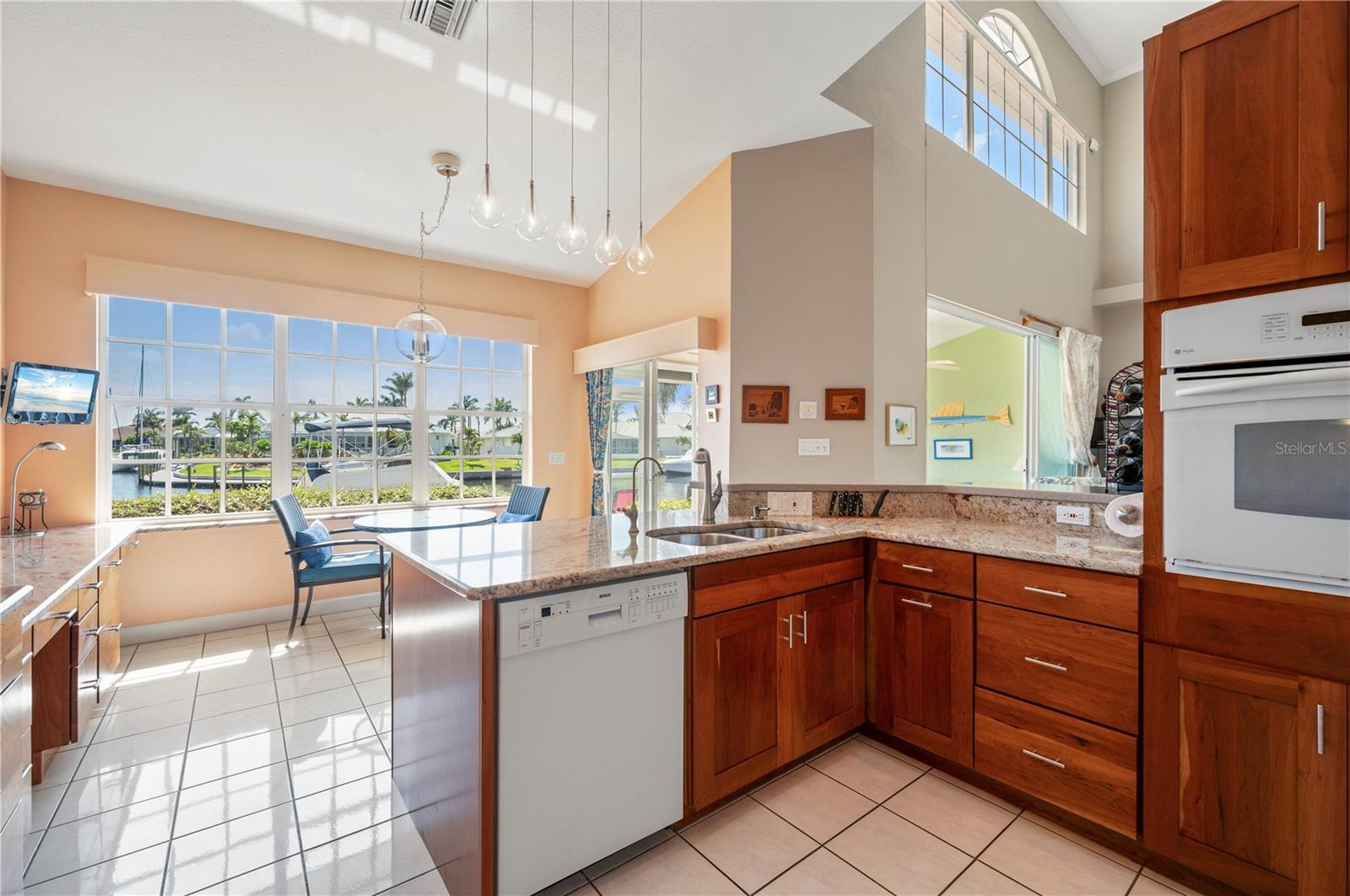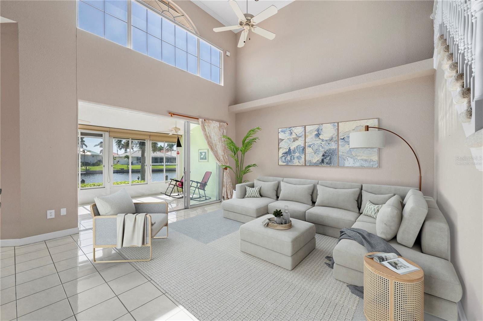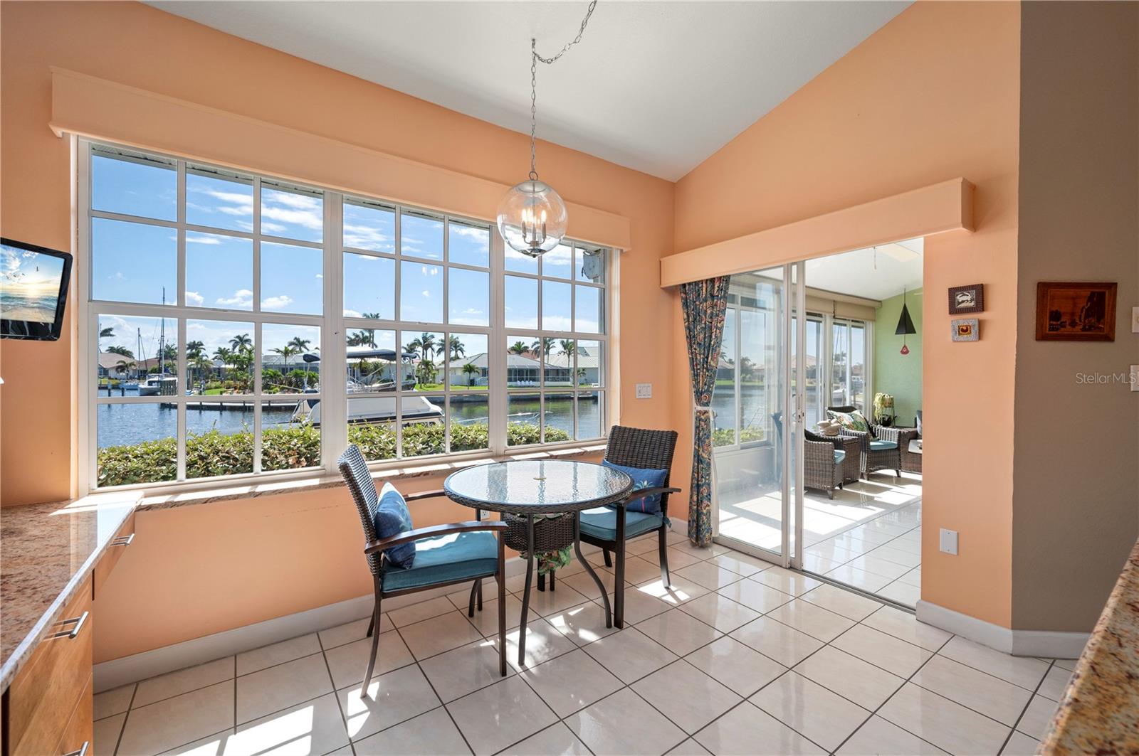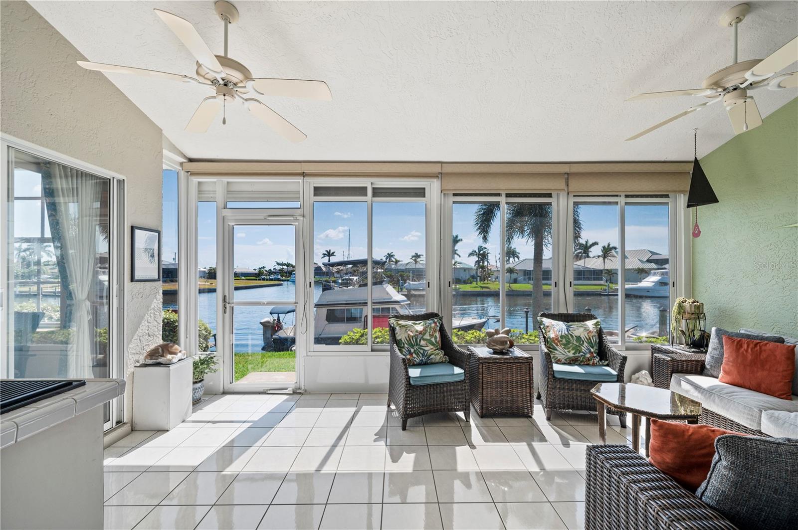 One or more photo(s) has been virtually staged. THE TIME IS NOW to get a GREAT DEAL, on this updated townhouse style PUNTA GORDA ISLES condo with GREAT WATERFRONT VIEWS, and GREAT BOATING ACCESS. Everything is GREAT in Punta Gorda, especially in this NAVIGABLE WATERFRONT 3/2.5/2 condo with a private spa. You'll REACH OPEN WATER in less than 15 minutes. EXPANSIVE VIEW of the intersecting canals make this unit the one to call home. East Facing Great Room gets flooded with Florida Sunshine. There's a built-in down draft Jenn-Aire Grill in the 4 season sunroom/lanai. The SECOND lanai space is a private screened courtyard lanai off the FIRST FLOOR MASTER SUITE and it's where you'll find the in-ground heated SPA. Exit to the spa from either the updated master bathroom or the spacious master bedroom, both rooms lead into the private courtyard lanai. The updated kitchen features solid wood cabinetry, granite counters, breakfast bar with solid surface countertop and two built-in desks. There is a formal dining room for entertaining. Indoor Laundry Room with adjacent storage room. A 1/2 bath on the first floor. Upstairs you'll enjoy the second story waterfront views from the OPEN LOFT SPACE... an awesome spot for a home office or fitness room. The upstairs also features two guest bedrooms with a jack-and-jill style full bathroom between them. Easy-peasy electric powered hurricane roll-down shutters. Community amenities include the in-ground, heated swimming pool and restrooms at the pool area. The entire complex had new TILE ROOFING installed (Aug '23) The DEEDED DOCK has POWER and WATER and space enough for up to a 35 foot vessel. Harbor Landings HOA has approved the installation of boat lifts! St. Andrews South Golf Course is across the street and their clubhouse is less than a mile away. The Isles Yacht Club is only 2 miles away. Grocery shopping is only 4 miles away. There is always something happening in Punta Gorda. PGI property owners can also join the Punta Gorda Isles Civic Association and its many, varied clubs such as social groups like Newcomers, Just for Fun and Paradise Friends, fishing club (earn a master fisherman designation), garden club, boating club, bridge and mahjong. The Punta Gorda area has multiple golf courses within easy distance, tennis, pickleball, hiking and biking routes, Hounds on Henry dog park, public boat ramps at Ponce Park and Marina Park, weekend farmer markets, Visual Arts Center, Charlotte County Event Center, Charlotte County Library, award winning restaurants and much more. Call today and start to Live the Gulf Life!
