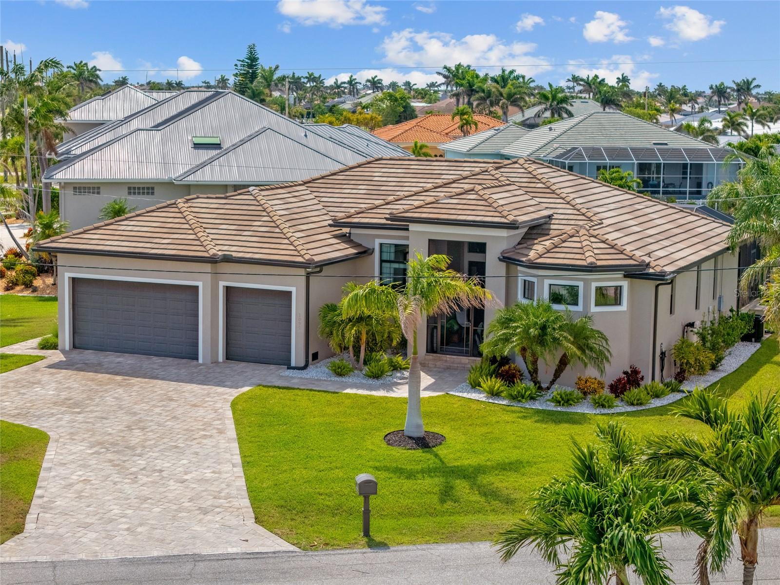 Experience unparalleled modern luxury and practical design in this exceptional waterfront home located in the coveted Punta Gorda Isles! Minutes to Charlotte Harbor, this remarkable property is ideal for those seeking the ultimate waterfront lifestyle or an investment opportunity. With direct water access and proximity to the harbor, it's a boater's dream come true, while the screened-in saltwater pool offers a tranquil setting perfect for enjoying sunsets. Constructed in 2019, this residence features 3 generously sized bedrooms with custom walk-in closets and 2 elegantly updated bathrooms with premium finishes. Encompassing 2,029 square feet of expertly crafted living space, the open floor plan effortlessly connects the indoor and outdoor areas through pocket sliders that lead to a spacious lanai. The master suite is deluxe, complete with a spacious spa shower, soaking tub, and refined details throughout. Recent upgrades include new carpeting throughout, maintaining a shoe-free environment, a cutting-edge water purification system, and a UV air filtration system for superior air quality. The back lanai features high-grade hurricane-rated screening, complementing the front screened-in patio for enhanced outdoor living. Additional improvements include new appliances, a saltwater softener system, a heated saltwater pool system for year-round use, and a newly installed central AC system, along with a cooling unit in the three-car garage to ensure comfort in the home gym. Every element of this property has custom lighting, door hardware, faucets, and fixtures, ensuring both style and functionality. Its contemporary design stands out in the area for its storm resilience, elevated construction, stem walls along the canal, and hurricane-rated windows, doors, and pool screens. Buyers have the option to purchase the home furnished with exquisitely selected luxury pieces from Anthropologie, Modern Living, Pottery Barn, and Sleep Number. This home is a true masterpiece with its flawless craftsmanship, prime location, and grand finishes. Whether you're in search of a permanent Florida sanctuary or a high-end investment property, this home offers everything you desire. Don't miss this opportunity! Schedule your private showing today!