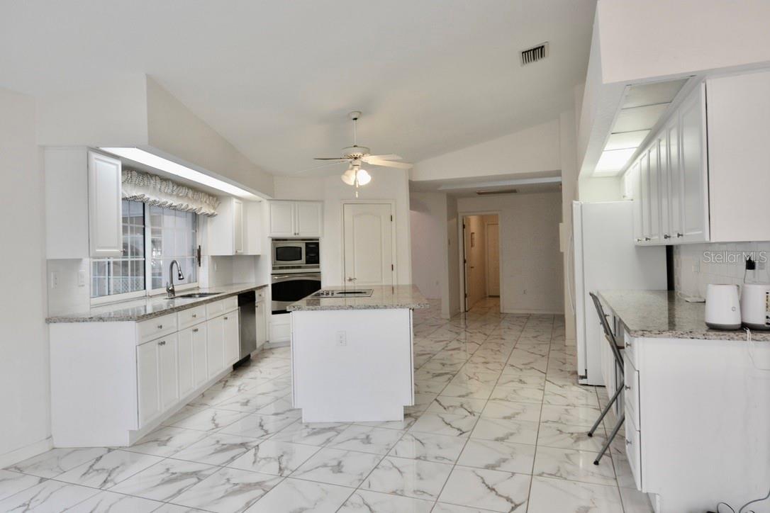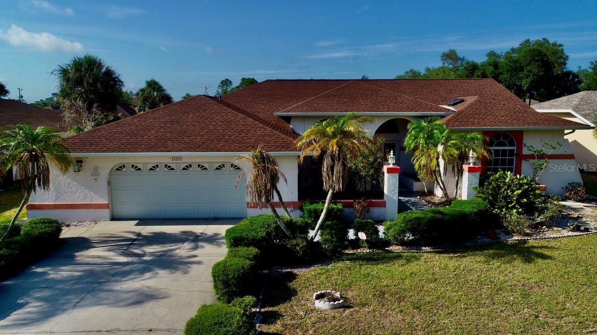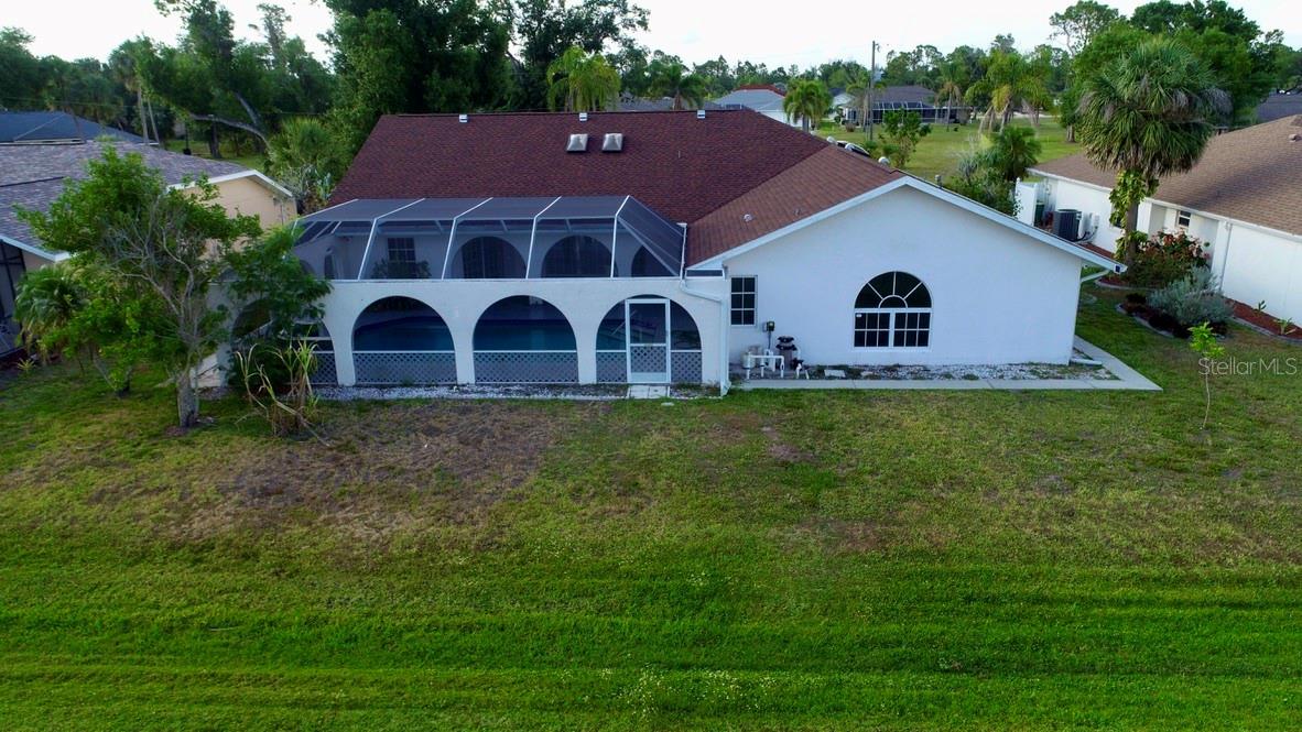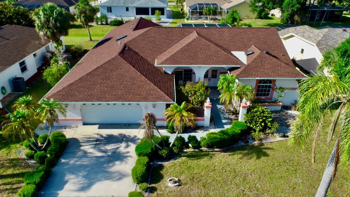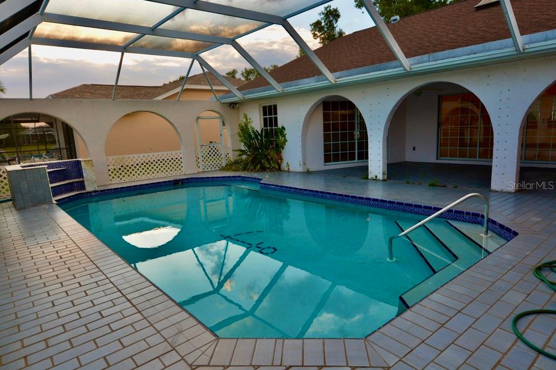What a find in this neighborhood of picturesque homes! Tucked away on a quiet cul-de-sac, you can enjoy your peaceful surroundings. Deep Creek features a golf course, garden club, greenbelts. lots of lakes, tennis courts, and low HOA fees. This home features HUGH ceiligs tons of large windows allowing great natural light to flood the home. The primary bedroom is enormous, yet serene - a true sanctuary and opens with sliding doors to the lanai and pool area. The other two bedrooms form a Jack and Jill lay out. Outside there is a gorgeous in-ground sparkling pool. This area is complete with a dedicated pool bath complete with shower making life easier - no tracking through the house. Resplendent with charm, make this house your home today.