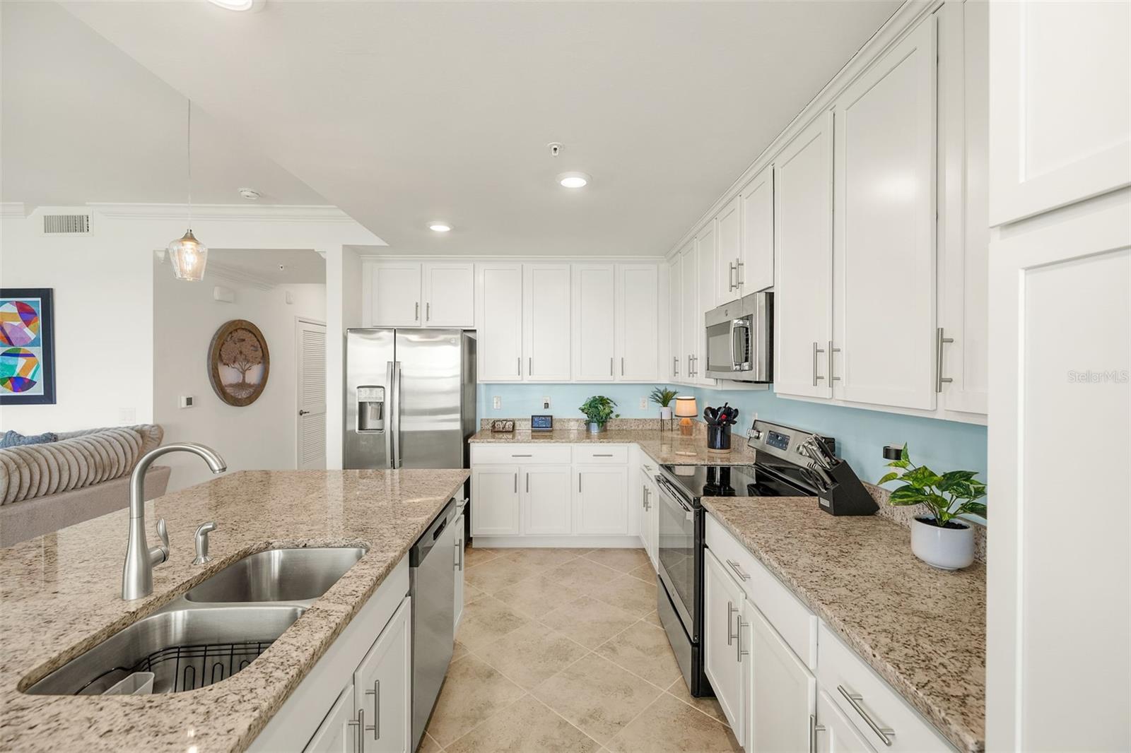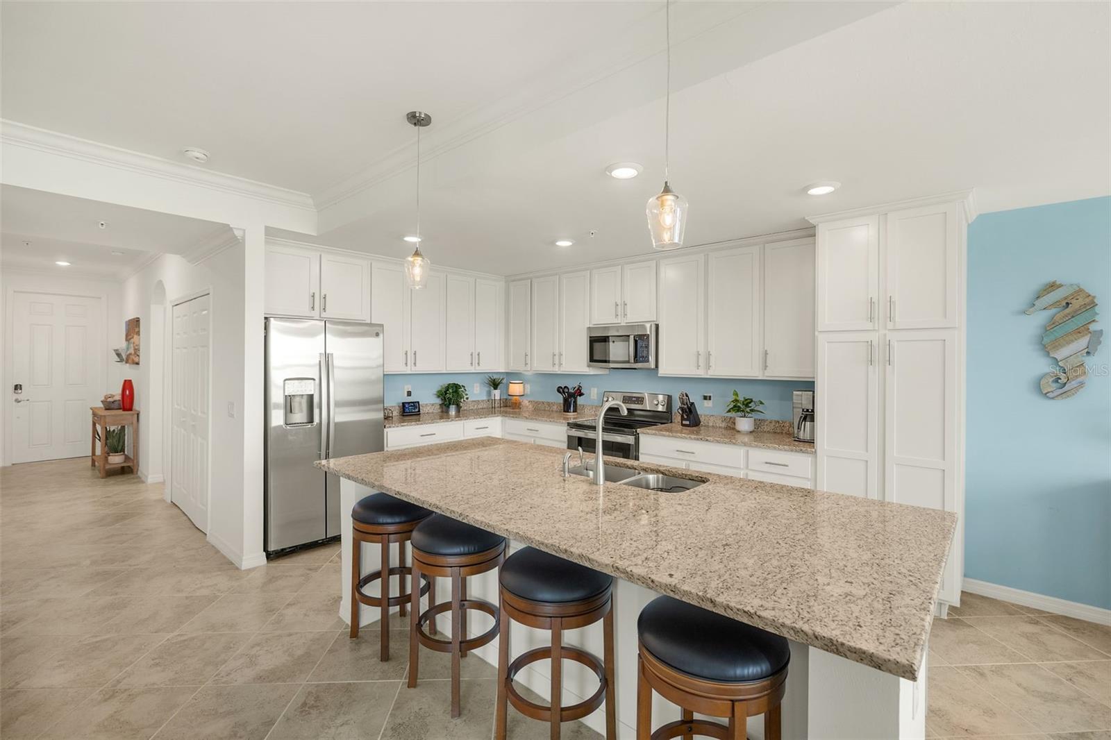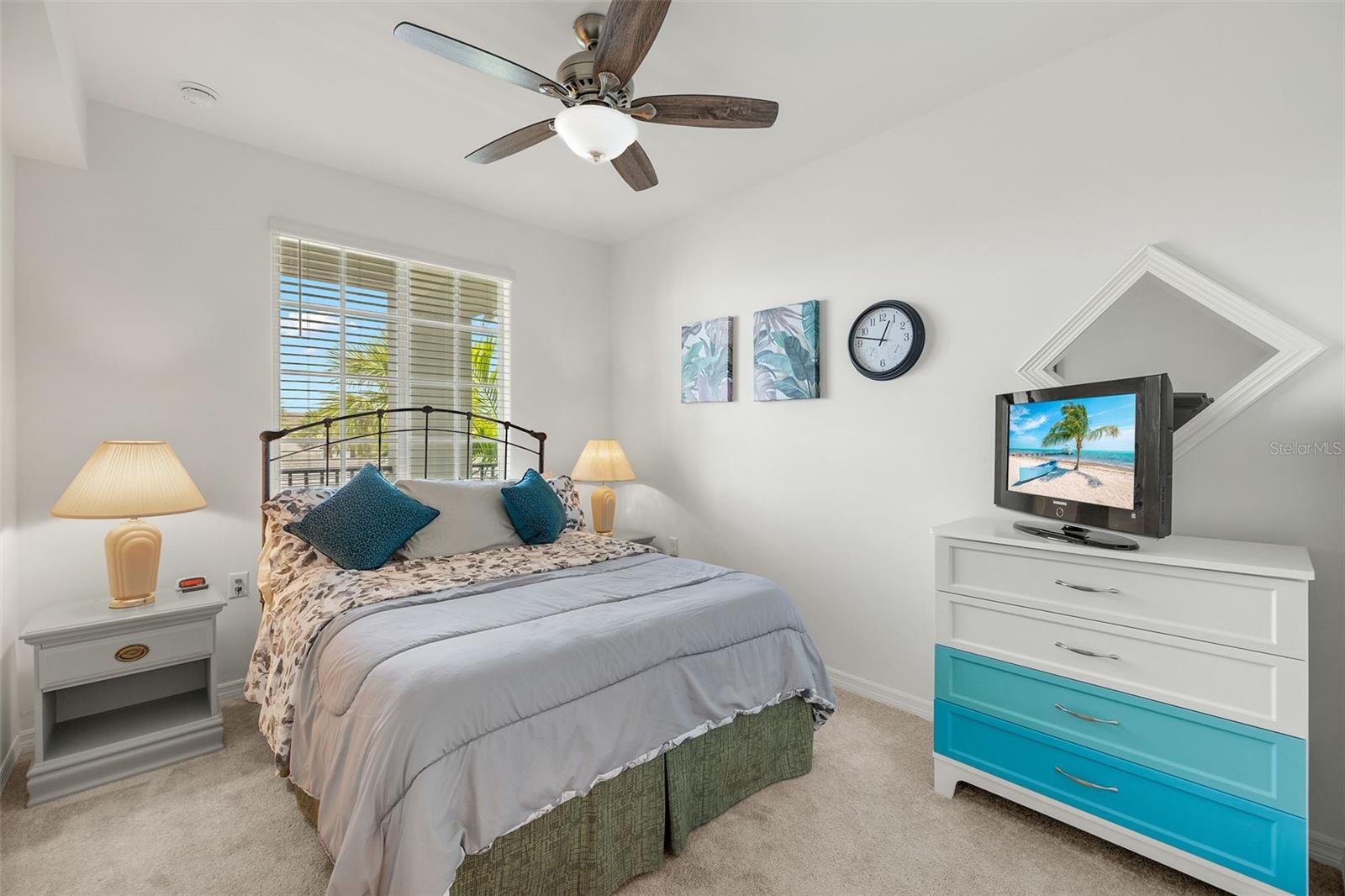 Here's your opportunity to embrace year-round golf within Babcock National because this unit has the GOLF MEMBERSHP INCLUDED! Just bring yourself and your suitcase because this home is being sold turnkey-furnished. This floor plan is known as the "Birkdale". This model comes with 2 bedrooms, 2 bathrooms, about 1,200 square feet of living space, an exterior storage unit AND a 1-car covered parking space. Additionally, this unit is accessible by the stairs or the common elevator. Walking inside and through the main hallway, you'll head right into your open kitchen which overlooks the living room and lanai. Finishes included in your main living spaces include everything from sleek granite countertops with an oversized island, stainless steel appliances, crown molding, tile flooring, white cabinetry, updated paint schemes and updated ceiling fixtures. With bay windows in the eat-in kitchen and sliding glass doors in the living room, you have the luxury of enjoying golf course & water views without even stepping outside! Outside, you have your very own screened-in lanai with panoramic views. Views that are hard to beat. Sellers also added a ceiling fan out there for additional cooling! Back on the opposite (entry) side of the condo, you have your 2 spacious bedrooms and bathrooms. Your primary bedroom offers a large walk-in closet, linen closet, and a beautifully tiled walk-in shower. Your guest bedroom has a closet and it's own nearby bathroom. It's maintained and it's move-in ready! Just outside of your home and within the community, you have an array of amenities at your fingertips. There's the 18-hole championship golf course, resort-style pool with lap lanes & a spa, tiki bar, pickleball & bocce courts, a state-of-the-art fitness center, tennis center, a clubhouse w/ dining, and more. Not only that but Founder’s Square within Babcock Ranch, hosts food trucks every weekend with entertainment, markets, music, etc. Living at Babcock means more than just residing—it's a vibrant lifestyle. Your neighbors are waiting! Come check out what the community and lifestyle is all about!