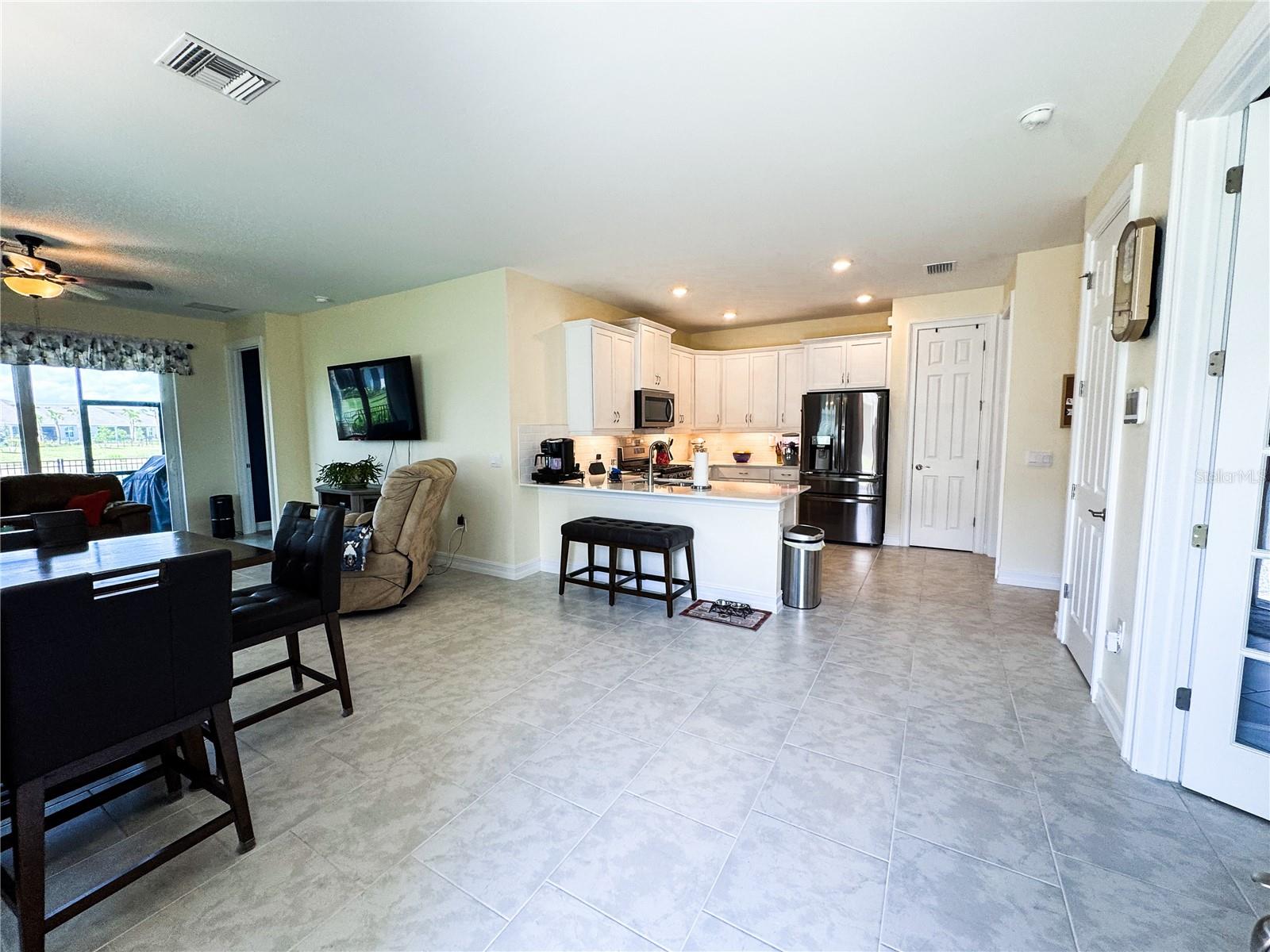 Experience the best of Florida living in this beautifully maintained villa in The Preserve at Babcock Ranch. Built in 2023, this nearly new two-bedroom, two-bathroom home with a versatile den offers single-level living with a bright, open floor plan designed for both comfort and functionality. The kitchen is a chef’s delight, featuring stainless steel appliances, quartz countertops, a gas stove, and a breakfast bar—perfect for entertaining or casual meals. Additional upgrades include a gas water heater and gas dryer, providing energy efficiency and reliable performance. The spacious two-car garage boasts epoxy flooring, built-in shelving, and drop-ceiling storage, offering ample space for organization and utility. Step outside to enjoy a premium fenced yard with tranquil pond views—ideal for relaxing mornings or spotting Florida’s native wildlife. The Preserve offers a community pool and bocce ball courts, providing great opportunities to unwind and connect with neighbors. With no new construction remaining in this sought-after neighborhood, this move-in-ready villa is a rare and valuable find. As part of Babcock Ranch, America’s first solar-powered town, residents enjoy a vibrant, eco-conscious lifestyle. The community features miles of scenic trails, lakes, and green spaces, along with a bustling downtown filled with restaurants, shops, a splash pad, clubhouses with pools, weekly farmers market, and regular events—all fostering a lively, walkable environment designed to bring neighbors together.
