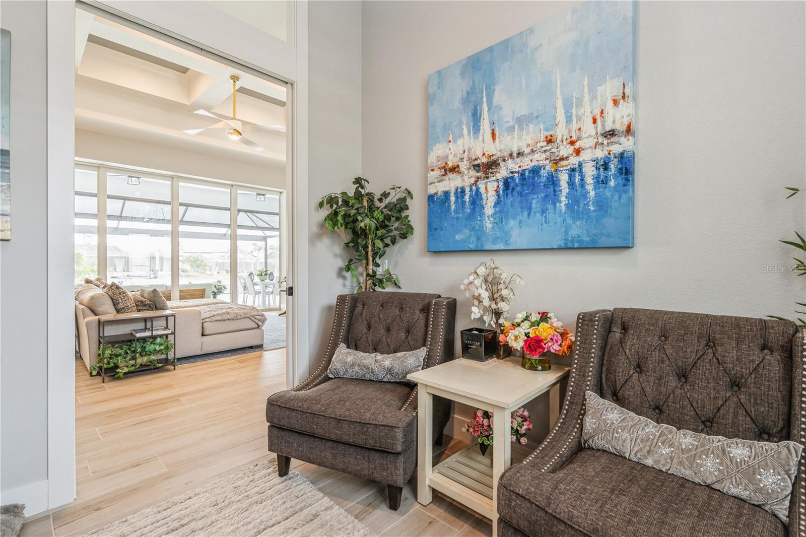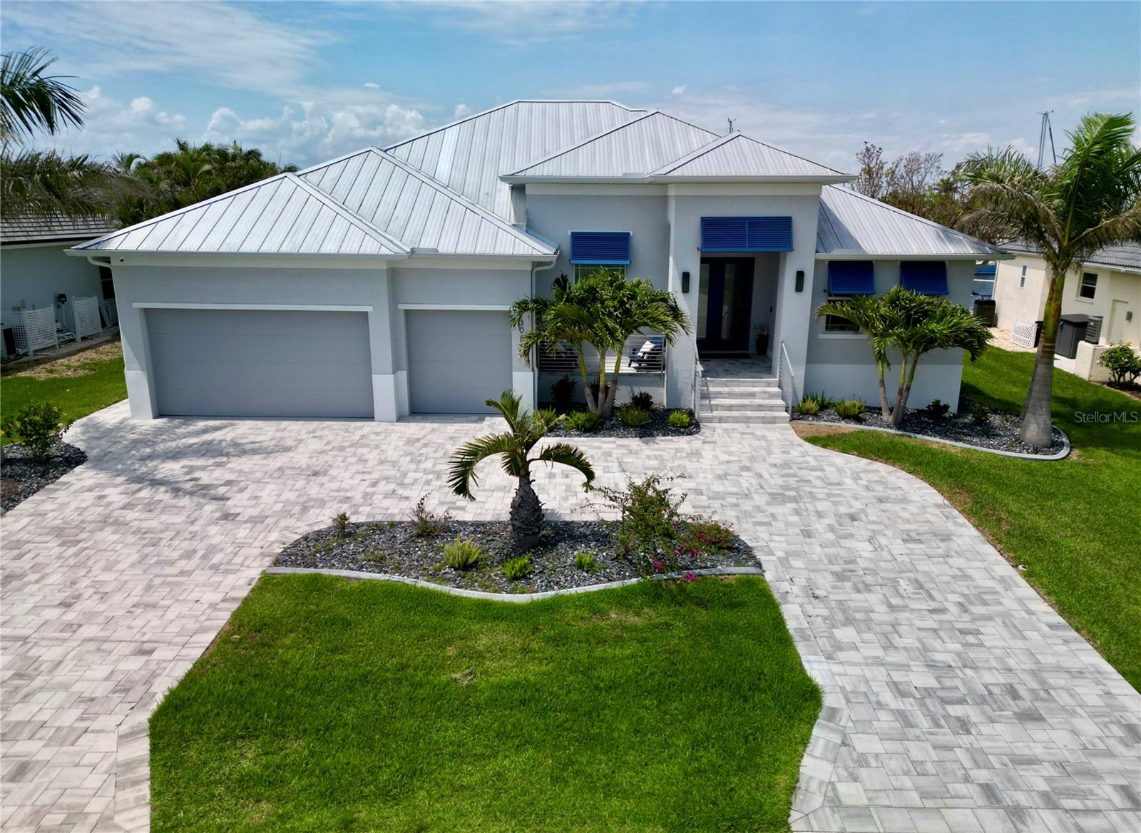 Experience waterfront luxury at its finest in this one-of-a-kind, custom-designed home, built in 2022 and located in the highly desirable Bird Section of Punta Gorda Isles. Perfectly positioned on 80 feet of city-maintained seawall with wide intersecting canal views and unrestricted Gulf access, this home is a boater’s paradise—featuring a 42-foot dock with water and electric hookups, plus a 13,500 lb boat lift. Step outside to your private resort-style retreat, where a fully automated, extra-deep saltwater pool and spa await. The outdoor area includes a sun shelf, custom water features, mosaic medallion, and a white marble paver pool deck framed by reinforced steel and panoramic screens on all three sides. The expansive lanai is perfect for entertaining with an outdoor kitchen, outdoor shower, remote-controlled hurricane screen, and elegant welded railings. Inside, no detail has been overlooked. Boasting three bedrooms, three bathrooms and a den, there is plenty of room for everyone. The home features oversized wood-look porcelain tile, solid core doors, and impact-resistant windows throughout. The chef’s kitchen is a showstopper with a full suite of Thermador professional appliances (including designer blue knobs), Carrara marble backsplash, seeded glass upper cabinets, upgraded pulls, and quartz and granite countertops. Custom cabinetry adds both beauty and functionality, while additional upgrades like a reclaimed wood mantle above the electric fireplace and upgraded lighting throughout the home reflect thoughtful design and craftsmanship. Retreat to the primary suite and enjoy plantation shutters, luxurious upgraded bath fixtures with rain head and handhelds, and fully customized closets and storage throughout. Other notable upgrades include full interior wall insulation, a gas line, upgraded garage door, advanced PC Security system, and an extensive landscaping package. Ask for a full features list! All of this, just minutes from downtown Punta Gorda, Fishermen’s Village, waterfront dining, shopping, and only 10 minutes by boat to Charlotte Harbor. With over $350,000 in high-end enhancements, and furnishing negotiable, this home is not just move-in ready—it is a turnkey masterpiece of coastal elegance.