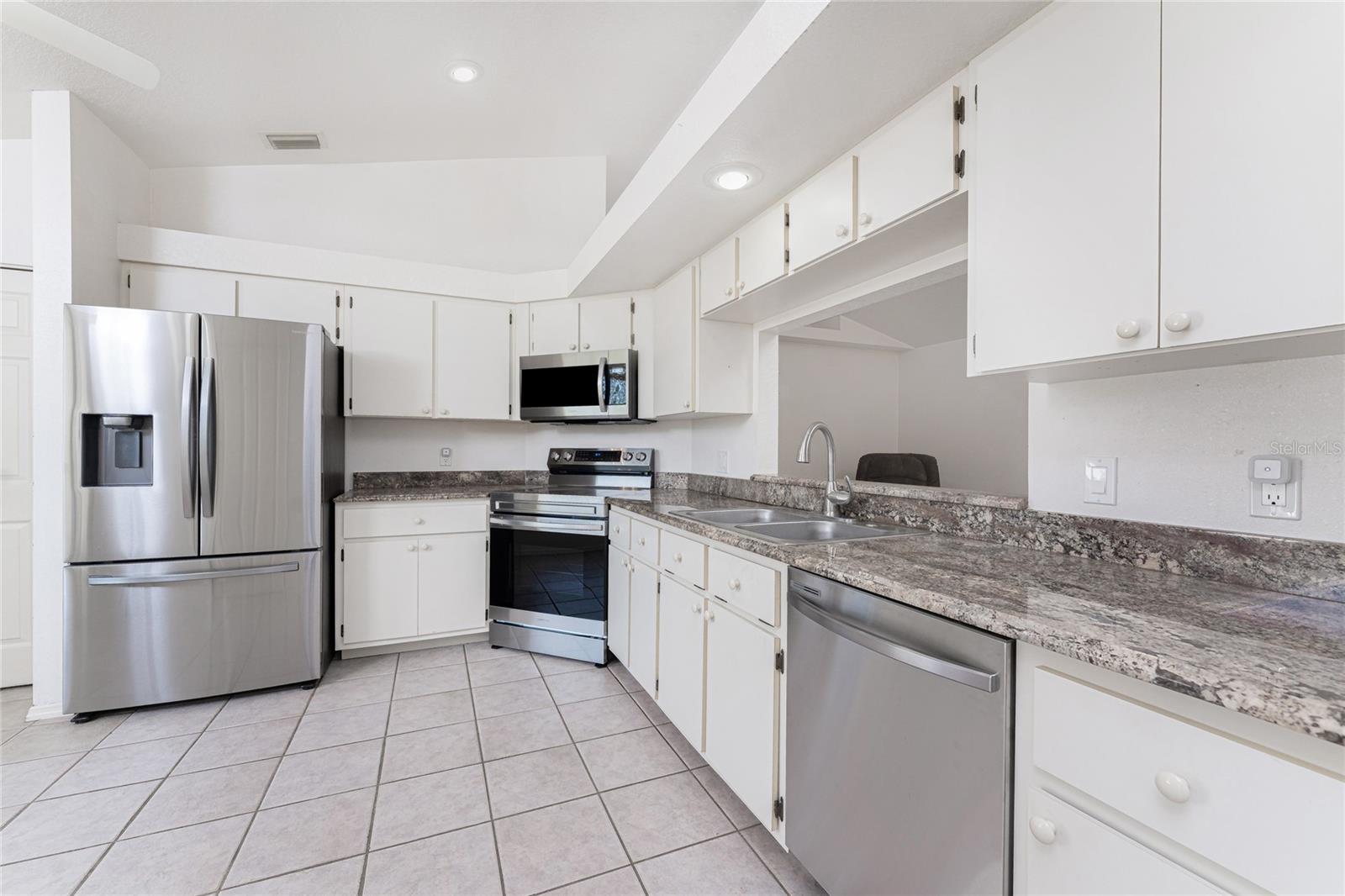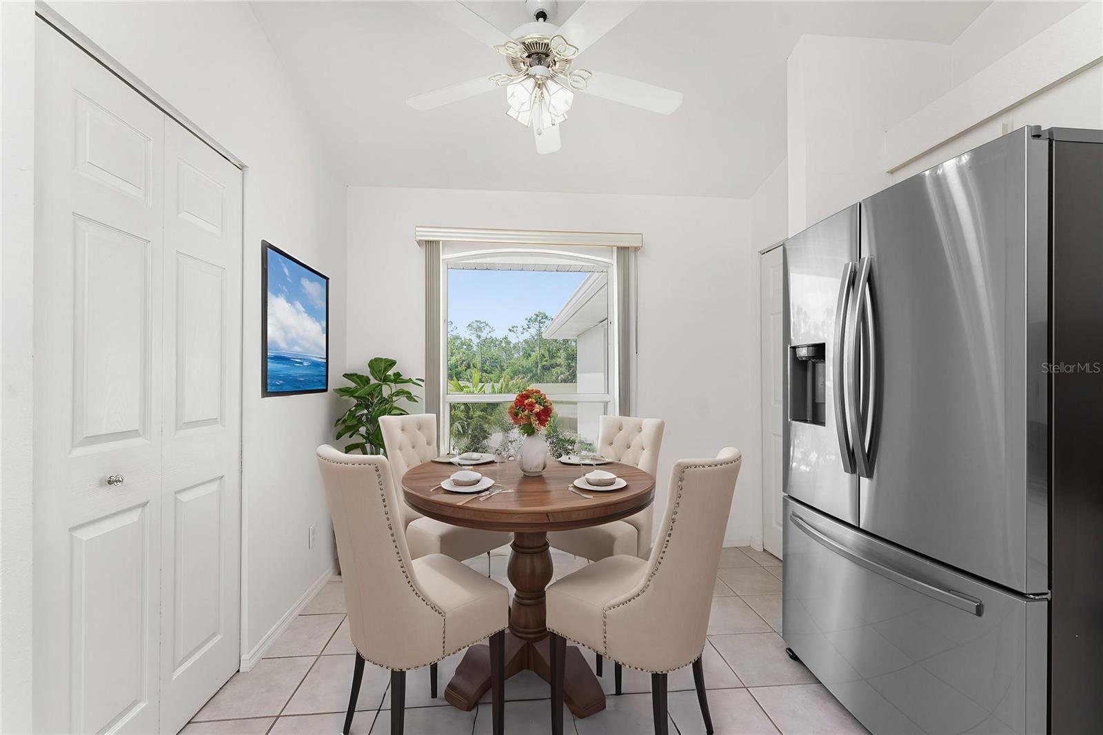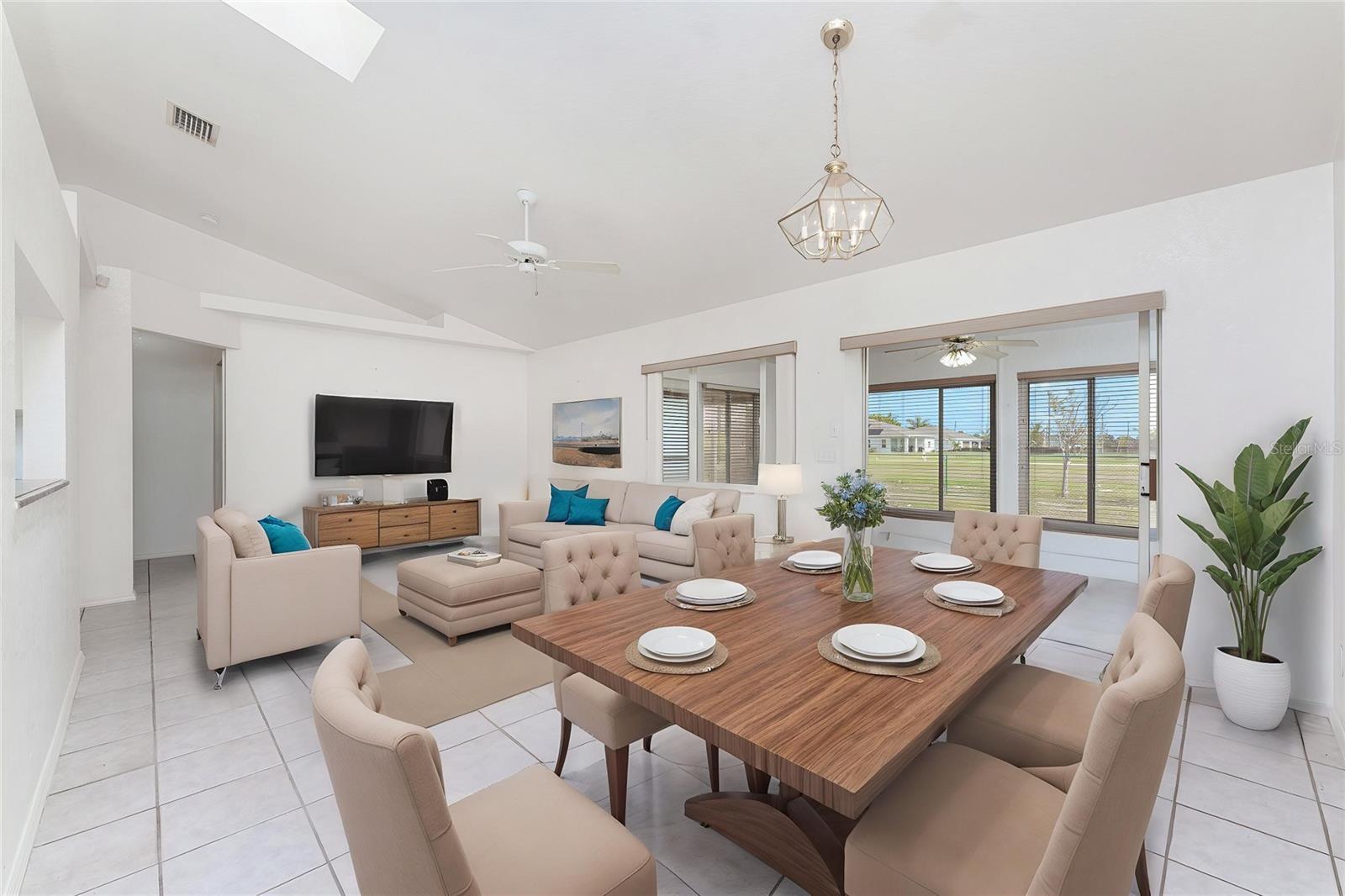 One or more photo(s) has been virtually staged. Welcome to 25046 Doredo Drive, this charming home is nestled in the peaceful, deed-restricted community of Burnt Store Village in Punta Gorda. With a very attractive offer price, this inviting residence blends comfort, style, and the allure of Florida living in a welcoming neighborhood. Built in 1996 and a 2023 ROOF, this home offers 1,525 square feet under air, featuring three bedrooms, two bathrooms, and a spacious 22’ x 22’ two-car garage. Inside, you’ll find a thoughtfully designed open floor plan with a desirable split-bedroom layout and a combination of tile and carpet flooring throughout. Natural light filters through the many windows, all outfitted with blinds for privacy. High ceilings and a skylight add to the airy feel, complemented by ceiling fans found throughout the home. The kitchen features granite countertops, Samsung stainless steel appliances, a large pantry closet, and a pass-through to the living area is perfect for entertaining. An eat-in dinette area framed by an arched window and ceiling fan creates the ideal setting for casual meals. The great room boasts high ceilings and opens seamlessly to the window lined Florida Room, providing outdoor views and abundant natural light. From here, you can access the additional screened lanai, an ideal spot for relaxing. The primary suite is a peaceful retreat with fresh paint, new carpet, a large walk-in closet with built-in shelves, and ceiling fan. The en-suite bathroom includes a single sink vanity, comfort height commode, and a fully tiled walk-in shower with a door. Guests will enjoy their own roomy bedrooms with a walk-in closet, ceiling fan, and a nearby full bath with a tub/shower combination and single sink vanity. A dedicated laundry room with washer and dryer provides convenience, while numerous exterior features add value and peace of mind. These include hurricane storm shutters, a brand-new roof and gutters (2023), fenced yard with a designated vinyl enclosure for trash receptacles, stone-mulched landscaping with concrete curbed beds, screened entry with a tiled front porch, and a skeeter-beater screen for the garage door. Burnt Store Village offers a sense of community with a park with a gazebo and a walking path around a maintained lake and also includes basketball court and a playground. Social gatherings like the chili cook-off and ice cream social bring neighbors together, and nature enthusiasts will enjoy birdwatching and the abundant Florida wildlife. Plus, downtown Punta Gorda’s dining, shopping, and entertainment are just minutes away, along with essentials like Publix and Home Depot. This home offers the ideal Florida lifestyle—affordable, comfortable, and connected to nature and community. Don’t miss your opportunity to make 25046 Doredo Drive your new home!