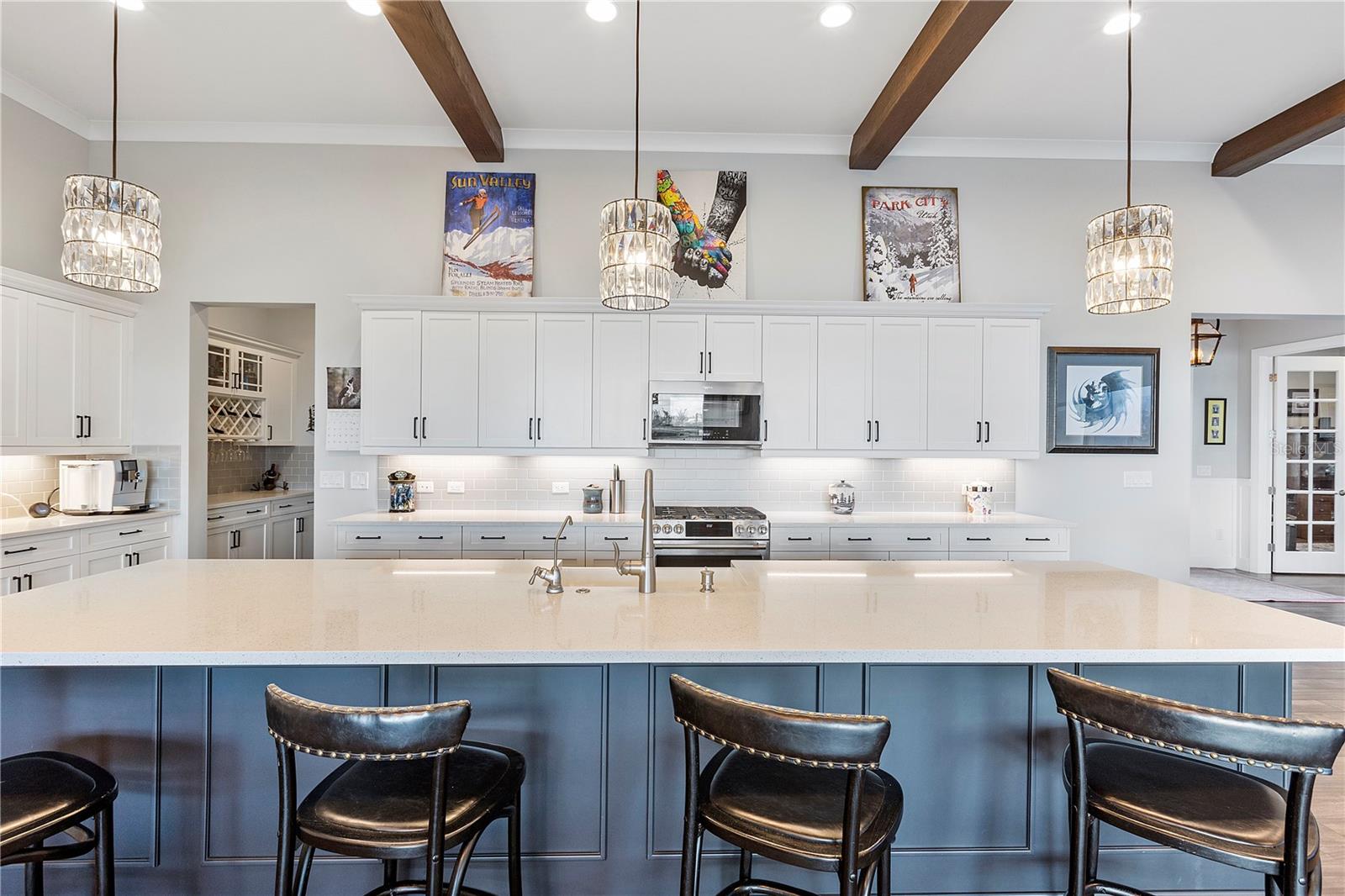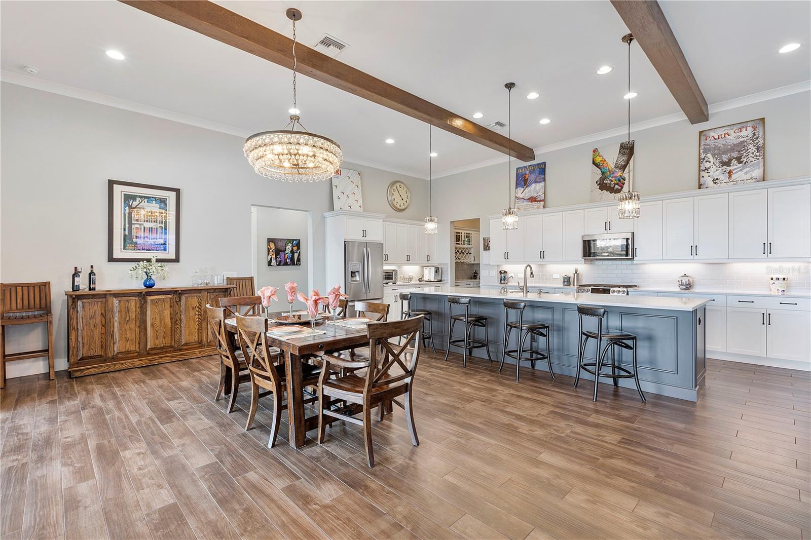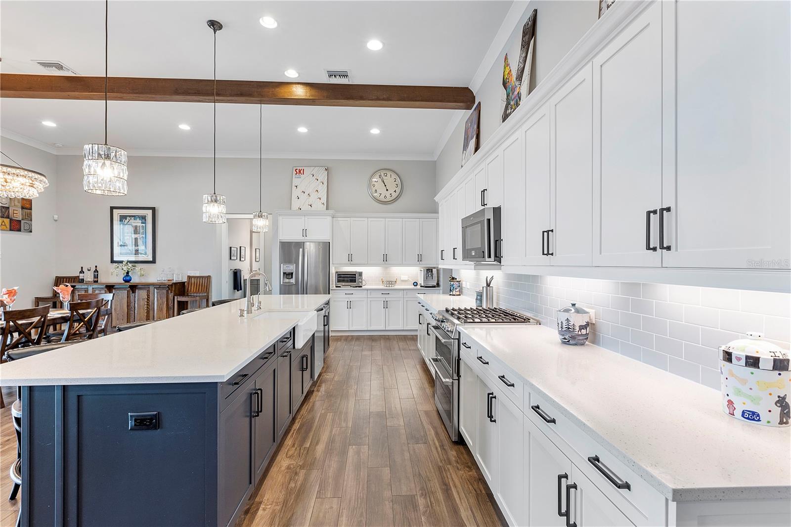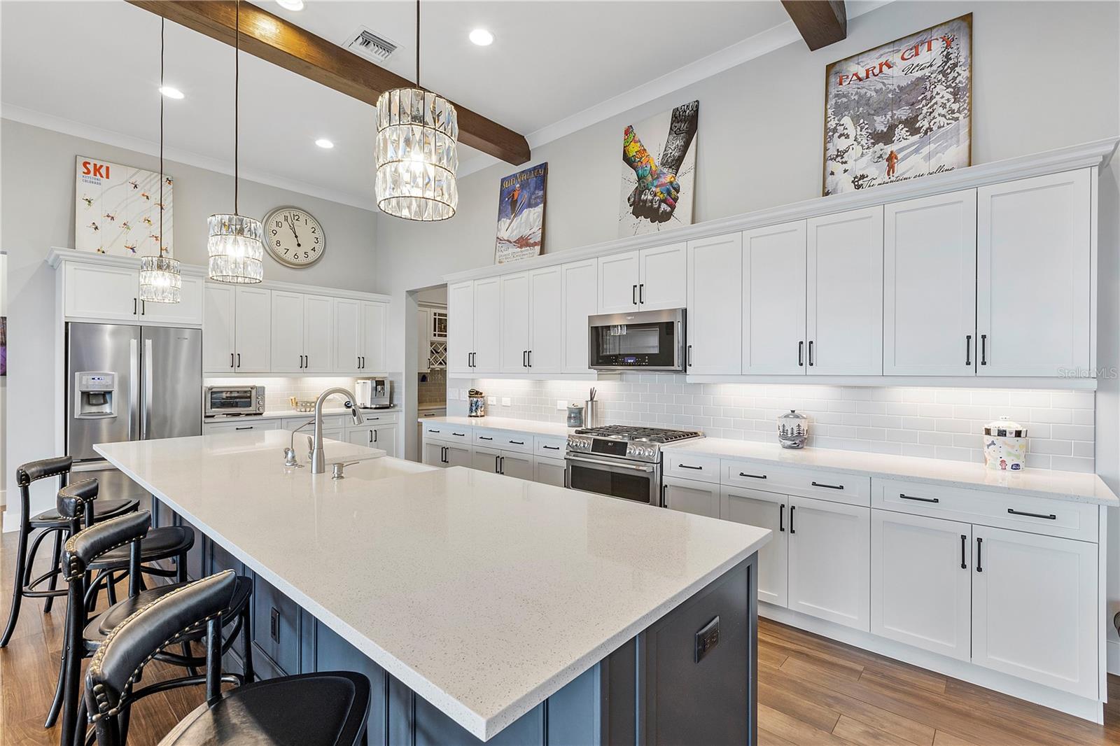 Welcome to your dream home in Babcock Ranch! This stunning single-family home features 4 bedrooms, two and a half baths, and a three-car+ garage. The home is equipped with a solar array on the roof, which powers two EV charging stations and includes two Tesla Powerwalls. The in-ground pool with a spa is perfect for relaxing and entertaining, while the waterfront location offers serene views and a peaceful atmosphere. Inside, you'll be impressed by the supersized quartz countertops, expanded surfaces, extra cabinetry, upgraded stainless steel appliances, and wood-like plank tile flooring in the main living areas. The great room boasts a beamed volume ceiling, creating a spacious and inviting atmosphere—perfect for entertaining. The master bedroom suite serves as a true retreat, featuring a custom bath with a separate shower and custom closets for added luxury. From the bedroom, step outside to the enlarged panoramic screened lanai, complete with a custom outdoor kitchen—ideal for enjoying the Florida sunshine year-round. With impact windows throughout, you can rest easy knowing your home is protected during inclement weather, while remote-controlled Storm Smart roll-down screens provide additional protection. This home boasts countless upgrades, making it truly desirable. Walk to Founders Square, where you can enjoy markets, entertainment, food trucks, art fairs, family movies, and more. The square also features a wellness center, restaurants, and other amenities coming soon on Bee Street. Babcock Ranch has gained worldwide recognition for withstanding storms, and its sustainability has attracted homeowners from all over. Don't miss your chance to own this exceptional property in Babcock Ranch—schedule a showing today and make this house your forever home!
