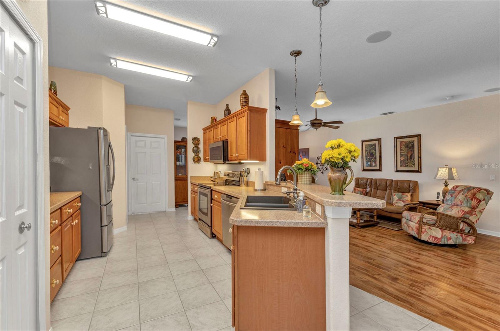 SENSATIONAL BRISTOL Floor plan - true 3 bedroom with MASSIVE LANAI and AWESOME VIEW available in the highly desirable gated golf course/active resort of Kings Gate, a 55+ community that is NOT in a flood zone and in evacuation zone D (have never been ordered to evacuate). Located on a quiet street - this home being sold MOSTLY FURNISHED features a 2020 ROOF, 2022 AC and 2023 HWH and has accordion shutters and Bahama shutters. Step inside this WELL MAINTAINED home and you'll see a SPACIOUS living room before your eyes are drawn to that MASSIVE LANAI and gorgeous view it provides. The floor plan flows exceptionally well as it seamlessly brings together the dining room, kitchen, living room and lanai - providing you plenty of options for entertainment and/or relaxation. Kitchen offers SS appliances, pull outs in the cabinets and under cabinet lighting. Split floor plan has master bedroom on the back left with the guest bedrooms/bath on the back right - providing plenty of privacy for both you and your guests. One of the guest bedrooms is currently set up as an office with the other guest bedroom featuring a murphy bed and pull out craft table allowing for tremendous flexibility on how to use the room year round. Garage has sliding screens across the front and hang down storage. No question you're going to love enjoying your morning cup of coffee or your favorite after dinner drink on that massive enclosed lanai providing a scenic view. And if you haven't been to Kings Gate before - you're going to love the options for activity (Olympic size heated swimming pool and spa, tennis courts, pickle ball, lawn bowling, shuffle board, bocce, horseshoes, gym, billiards, library, euchre, bingo, bridge, Texas hold em, poker, mahjong and more). The onsite AND NEWLY REMODELED Lions Den restaurant and bar is super convenient and also offers Tuesday night Karaoke and monthly trivia contests. Many residents love the fact that they are just a golf cart ride away from the shopping plaza that provides you access to grocery store, drug store, bank, restaurants and shopping. Want to explore outside of Kings Gate – you are minutes away from the restaurants and shops of downtown Punta Gorda and Fisherman's village. And if you want to explore more of Florida's fun spots you’re near I75 to quickly head north or south. An AWESOME home with a MASSIVE LANAI and a great view in a PREMIER gated community that NEEDS to be EXPERIENCED. Call today for a private showing and a golf cart tour of the community/amenities.