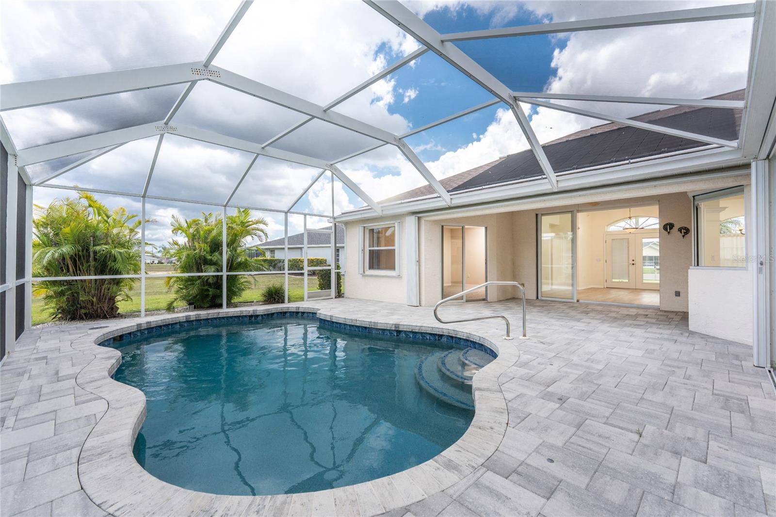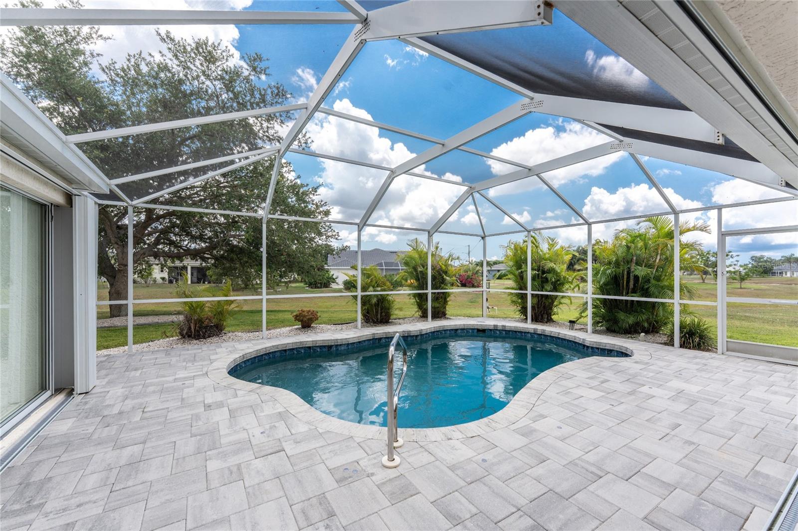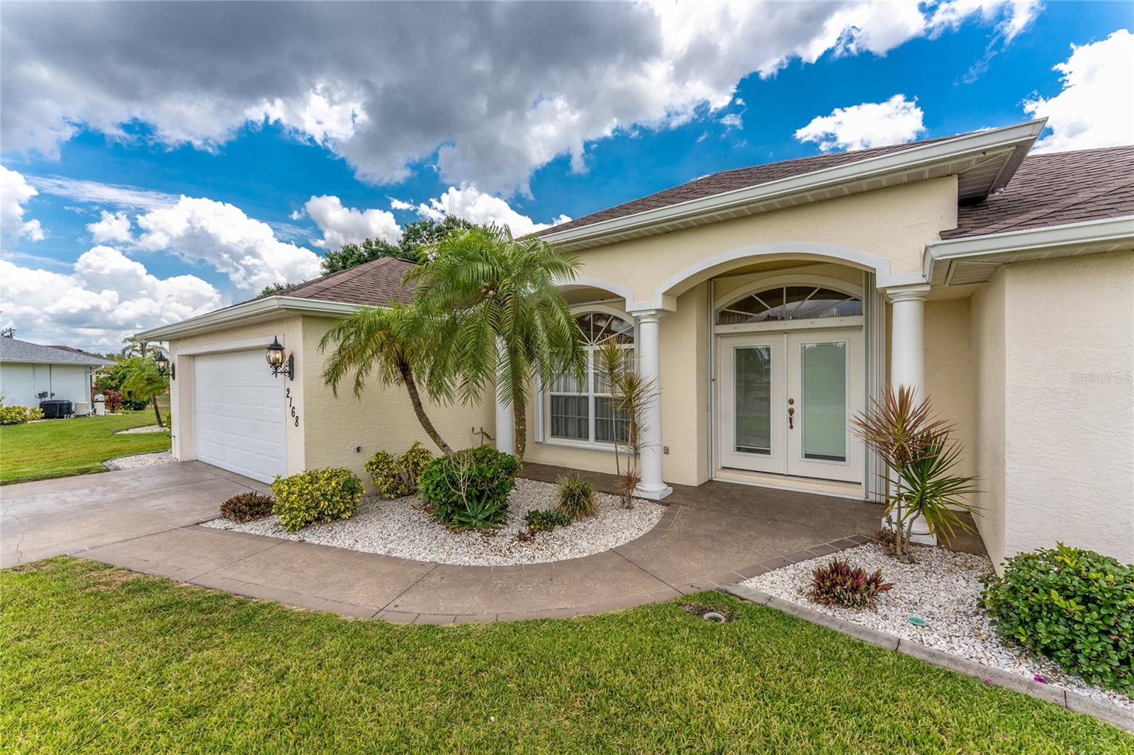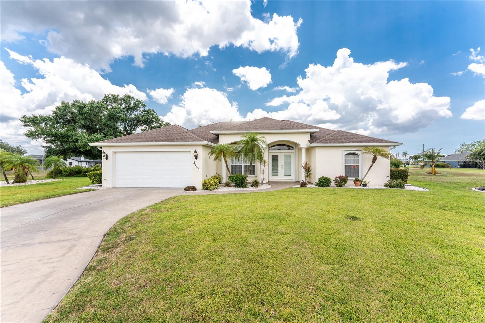Welcome to this stunning custom-built David Schroeder home nestled in the highly desirable deed-restricted community of Deep Creek in Punta Gorda. Boasting 3 spacious bedrooms and 2 elegant bathrooms, this residence offers 1,817 square feet of comfortable, air-conditioned living space. Step through a beautiful arched and pillared entry that gracefully separates the dining room and enjoy the seamless flow into the kitchen and family room through another charming arched entry from the living room. The spacious kitchen has an abundance of cabinets, stainless steel appliances, center island, and breakfast bar with corian countertops –inviting your gourmet preparations. Natural light fills the home through three sets of sliding doors, each leading to a brick-pavered lanai and inviting solar-heated pool—accessible from the living room, family room, and primary ensuite—perfect for relaxing or entertaining. The home features durable laminate and tile flooring throughout and is situated on an oversized tip lot, providing a private, beautifully landscaped view with serene lake vistas right from the pool area. Recent upgrades include a new roof installed in 2021, a new air conditioning system in 2022, a new hot water heater in 2025, a pool resurfaced in 2023, and a new generator and panel rewire ensuring peace of mind and modern convenience. Hurricane protection is comprehensive with accordion shutters and a brand-new high-impact double front door added in 2024. Located just minutes from downtown Punta Gorda, enjoy easy access to a variety of fine restaurants, charming shops, and the vibrant Fishermen’s Village, known for its waterfront dining and unique boutiques. This home perfectly blends elegant design, modern amenities, and a prime location to offer a truly exceptional living experience.
