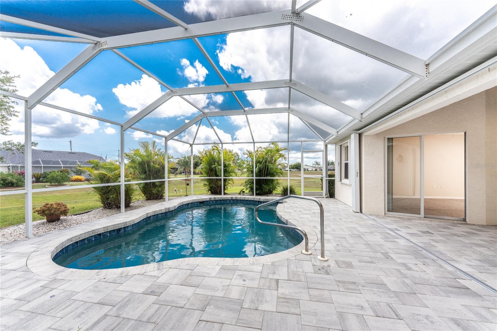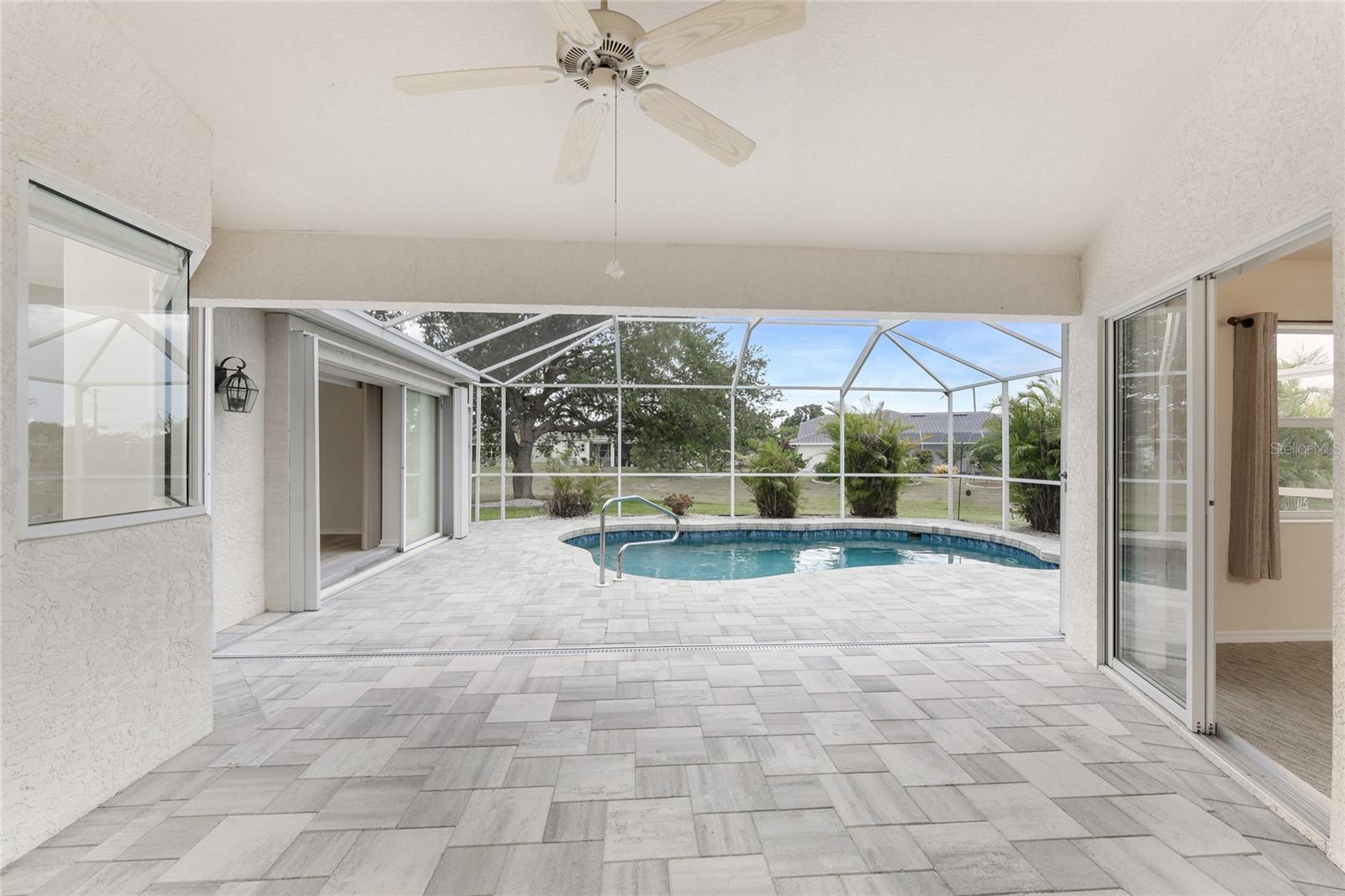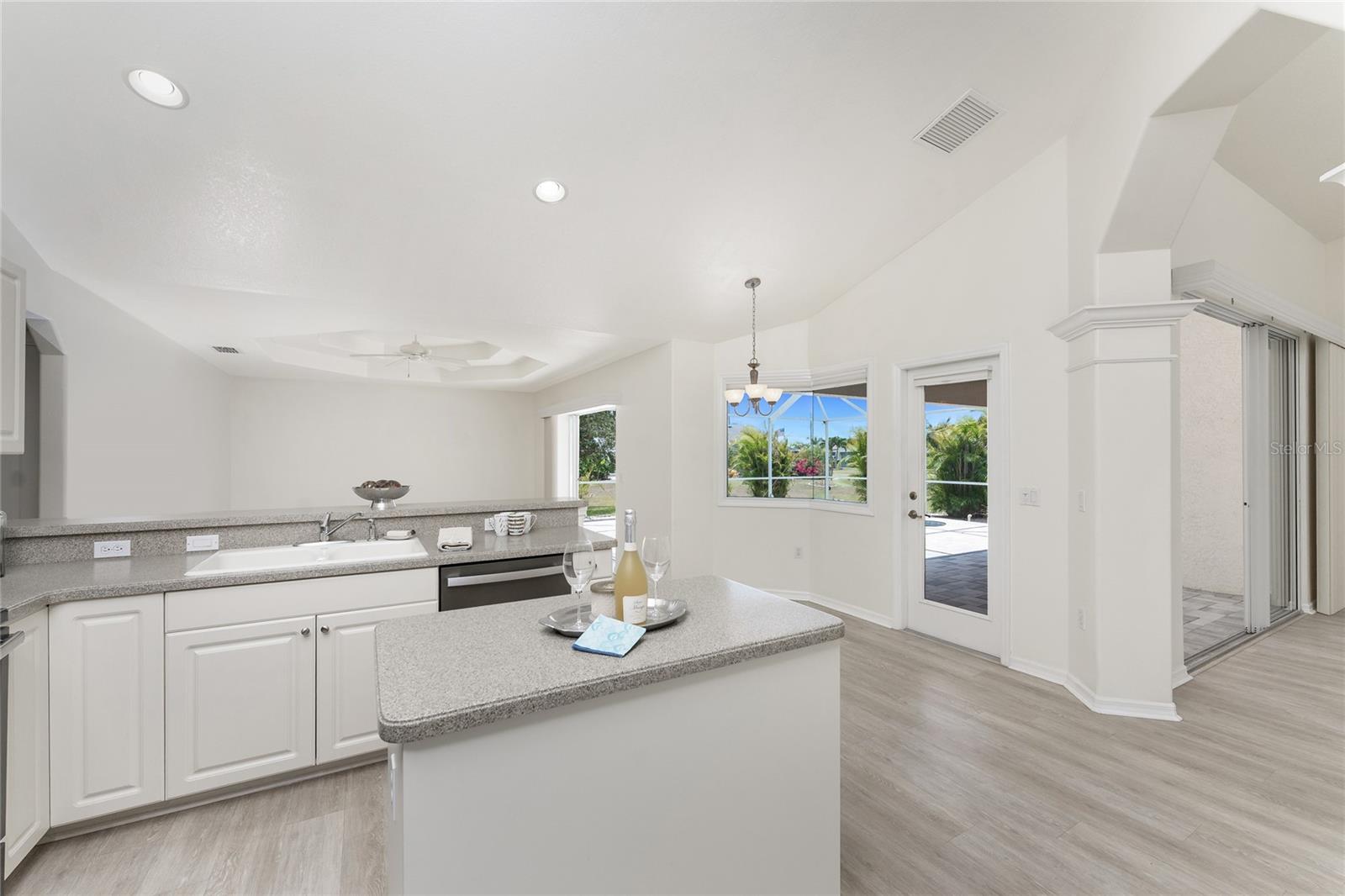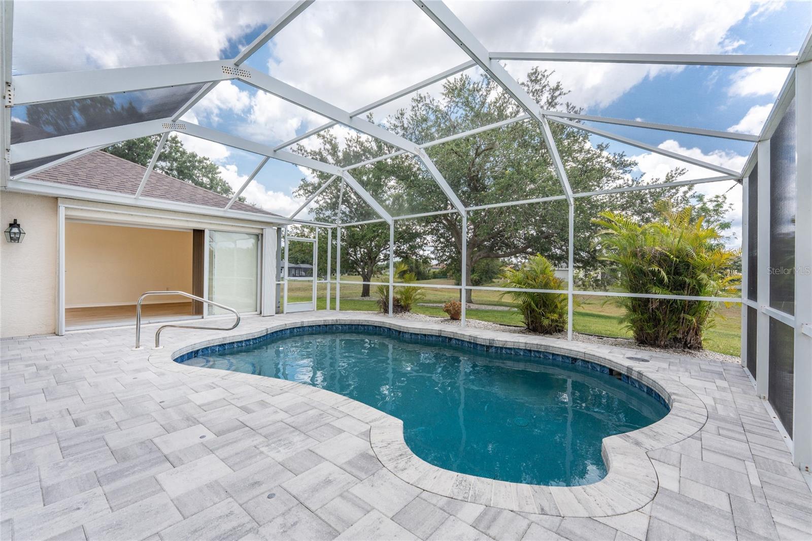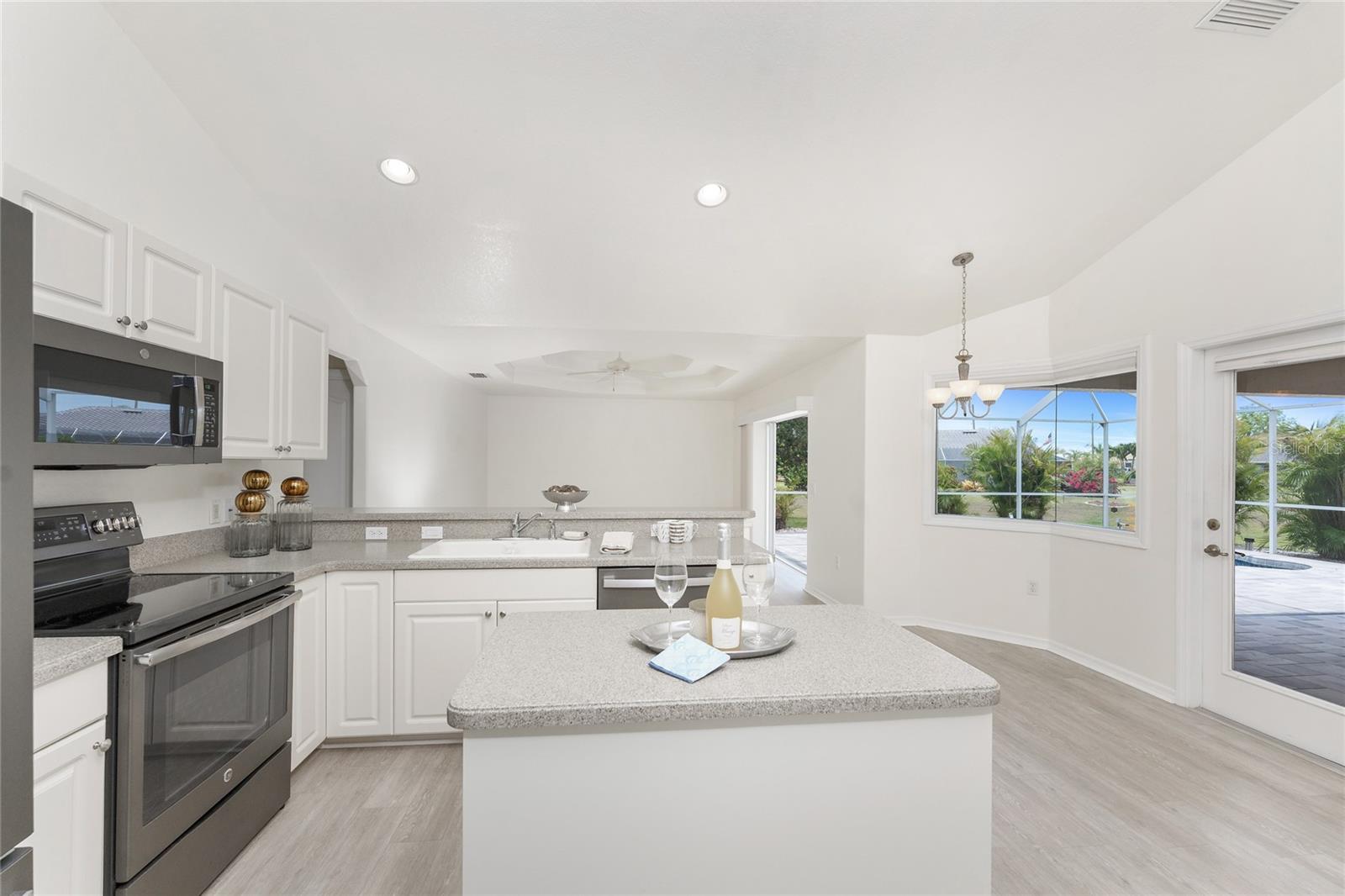 Welcome to this stunning custom-built David Schroeder home nestled in the highly desirable deed-restricted community of Deep Creek in Punta Gorda. Boasting 3 spacious bedrooms and 2 elegant bathrooms, this residence offers 1,817 square feet of comfortable, air-conditioned living space. Step through a beautiful arched and pillared entry that gracefully separates the dining room and enjoy the seamless flow into the kitchen and family room through another charming arched entry from the living room. The spacious kitchen has an abundance of cabinets, stainless steel appliances, center island, and breakfast bar with corian countertops –inviting your gourmet preparations. Natural light fills the home through three sets of sliding doors, each leading to a brick-pavered lanai and inviting solar-heated pool—accessible from the living room, family room, and primary ensuite—perfect for relaxing or entertaining. The home features durable laminate and tile flooring throughout and is situated on an oversized tip lot, providing a private, beautifully landscaped view with serene lake vistas right from the pool area. Recent upgrades include a new roof installed in 2021, a new air conditioning system in 2022, a new hot water heater in 2025, a pool resurfaced in 2023, and a new generator and panel rewire ensuring peace of mind and modern convenience. Hurricane protection is comprehensive with accordion shutters and a brand-new high-impact double front door added in 2024. Located just minutes from downtown Punta Gorda, enjoy easy access to a variety of fine restaurants, charming shops, and the vibrant Fishermen’s Village, known for its waterfront dining and unique boutiques. This home perfectly blends elegant design, modern amenities, and a prime location to offer a truly exceptional living experience.