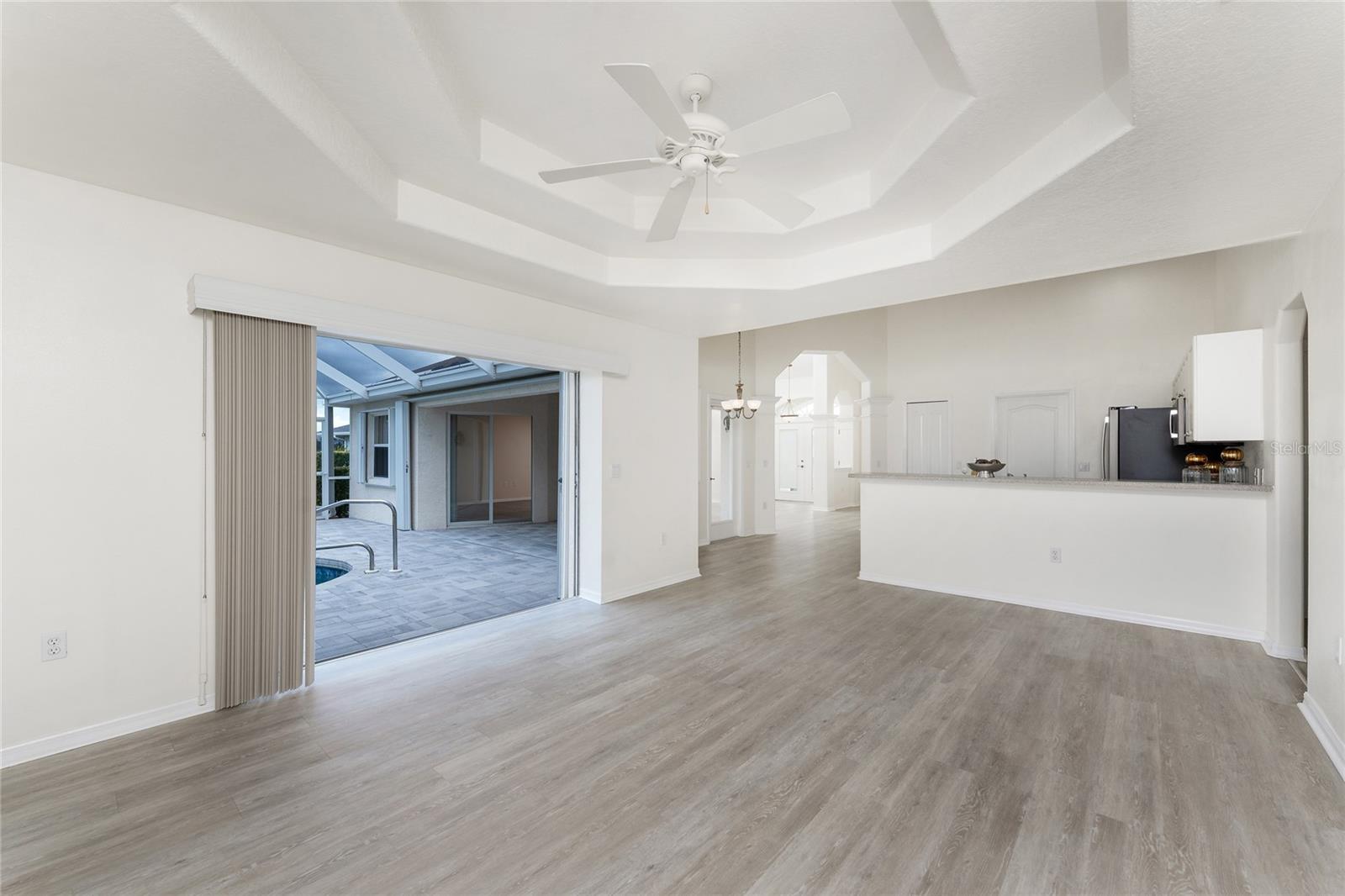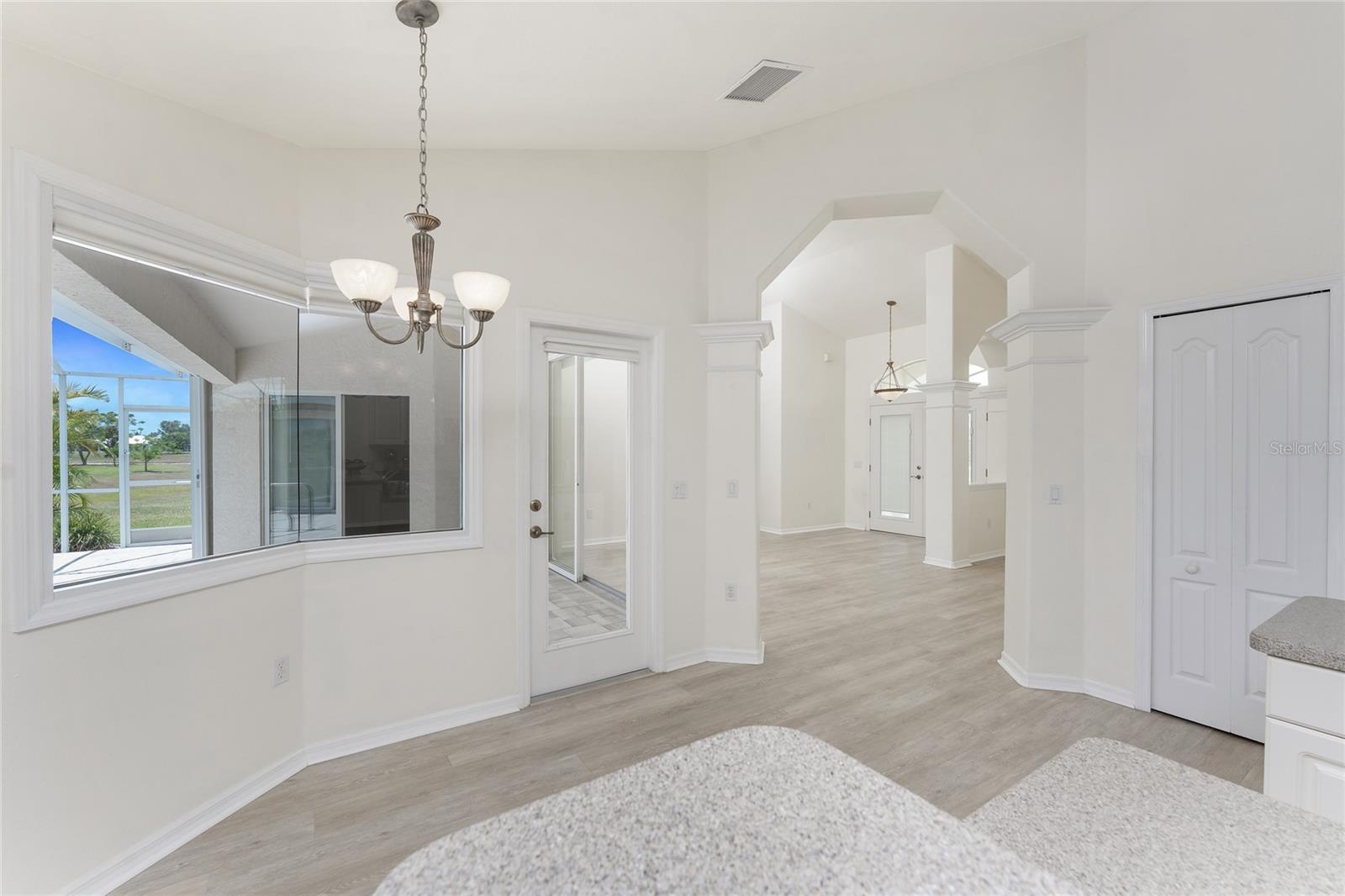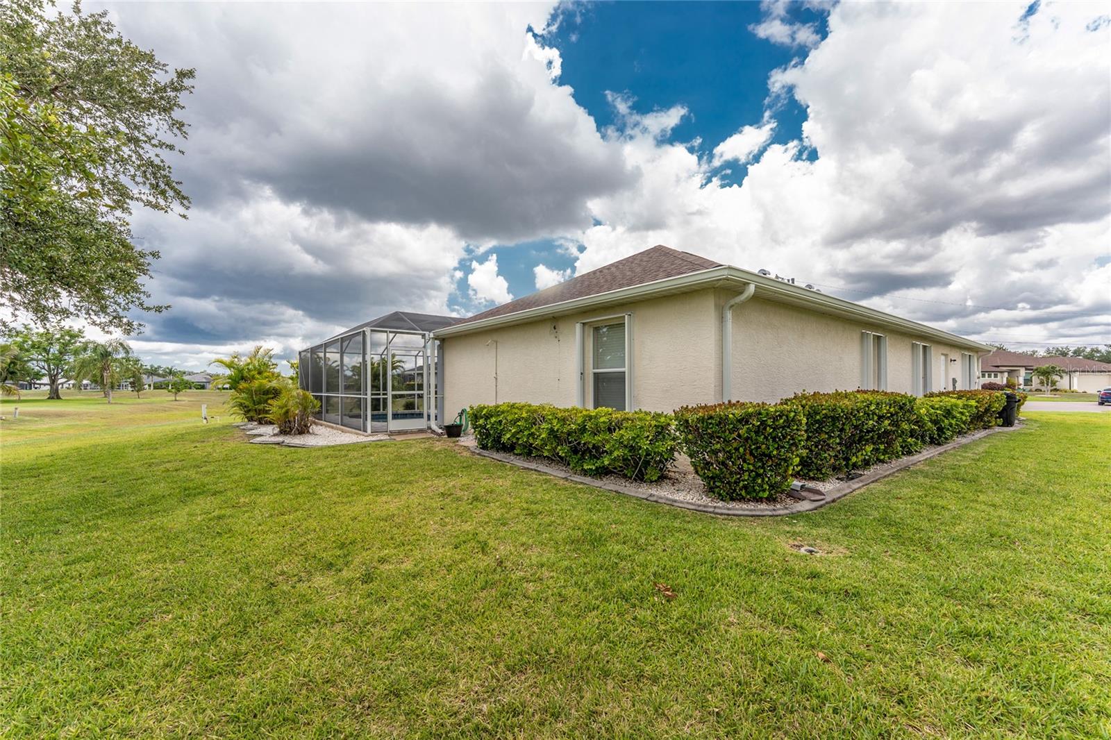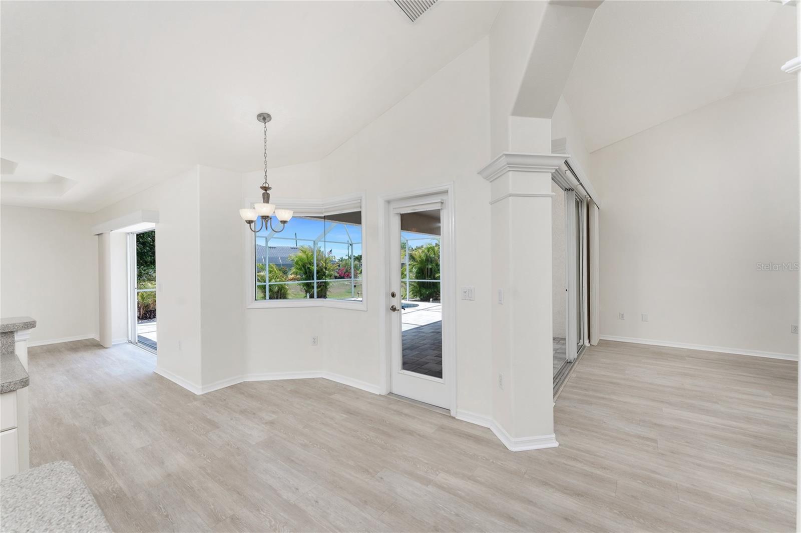 Welcome to this stunning custom-built David Schroeder home nestled in the highly desirable deed-restricted community of Deep Creek in Punta Gorda. Boasting 3 spacious bedrooms and 2 elegant bathrooms, this residence offers 1,817 square feet of comfortable, air-conditioned living space. Step through a beautiful arched and pillared entry that gracefully separates the dining room and enjoy the seamless flow into the kitchen and family room through another charming arched entry from the living room. The spacious kitchen has an abundance of cabinets, stainless steel appliances, center island, and breakfast bar with corian countertops –inviting your gourmet preparations. Natural light fills the home through three sets of sliding doors, each leading to a brick-pavered lanai and inviting solar-heated pool—accessible from the living room, family room, and primary ensuite—perfect for relaxing or entertaining. The home features durable laminate and tile flooring throughout and is situated on an oversized tip lot, providing a private, beautifully landscaped view with serene lake vistas right from the pool area. Recent upgrades include a new roof installed in 2021, a new air conditioning system in 2022, a new hot water heater in 2025, a pool resurfaced in 2023, and a new generator and panel rewire ensuring peace of mind and modern convenience. Hurricane protection is comprehensive with accordion shutters and a brand-new high-impact double front door added in 2024. Located just minutes from downtown Punta Gorda, enjoy easy access to a variety of fine restaurants, charming shops, and the vibrant Fishermen’s Village, known for its waterfront dining and unique boutiques. This home perfectly blends elegant design, modern amenities, and a prime location to offer a truly exceptional living experience.