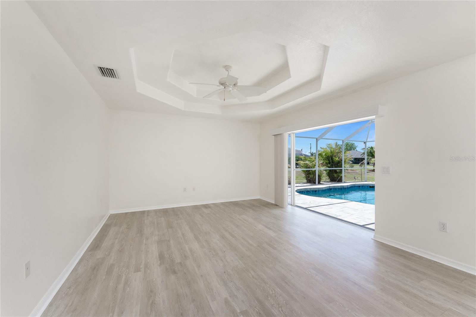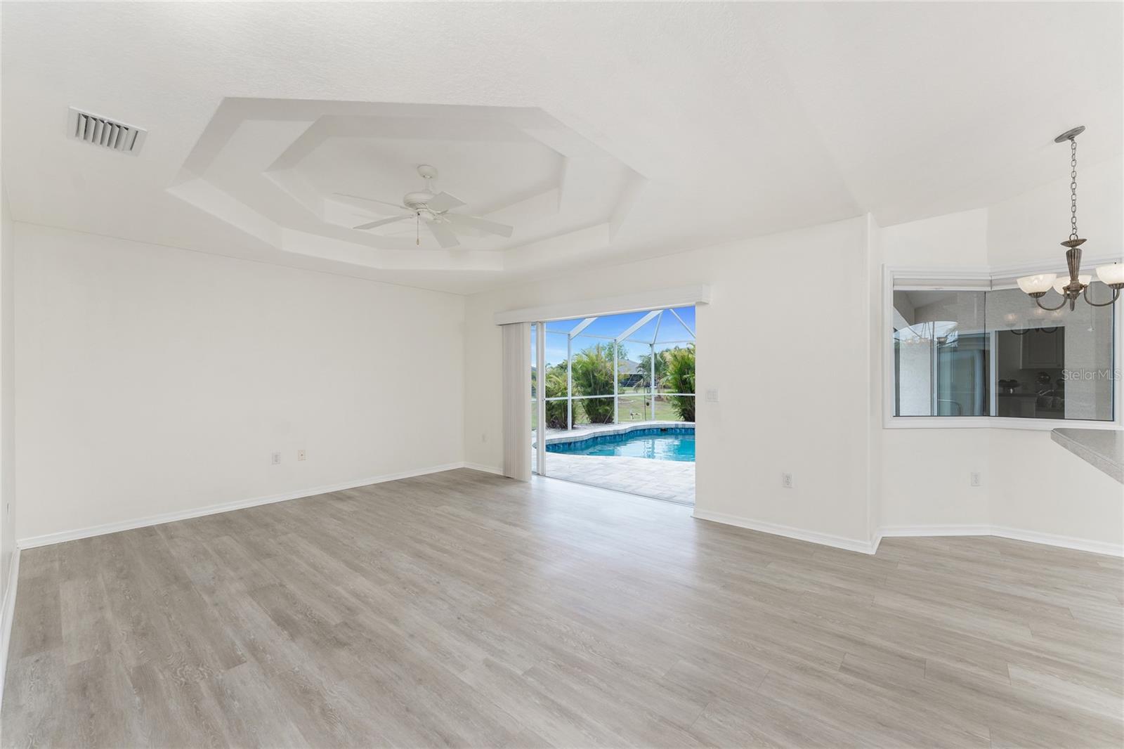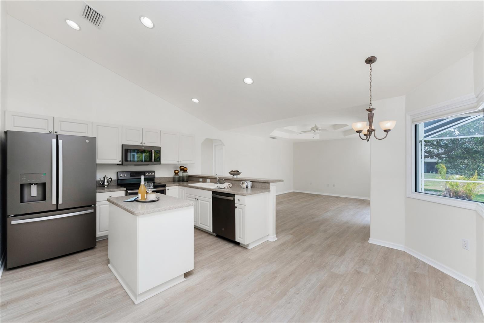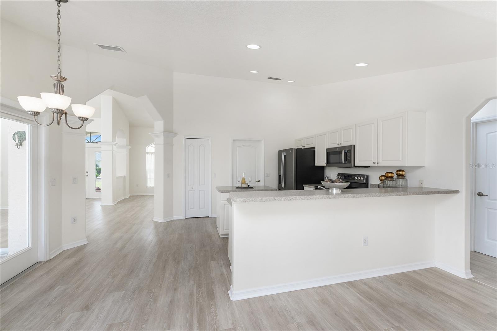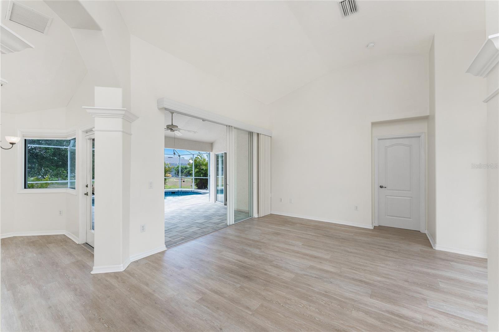 Welcome to this stunning custom-built David Schroeder home nestled in the highly desirable deed-restricted community of Deep Creek in Punta Gorda. Boasting 3 spacious bedrooms and 2 elegant bathrooms, this residence offers 1,817 square feet of comfortable, air-conditioned living space. Step through a beautiful arched and pillared entry that gracefully separates the dining room and enjoy the seamless flow into the kitchen and family room through another charming arched entry from the living room. The spacious kitchen has an abundance of cabinets, stainless steel appliances, center island, and breakfast bar with corian countertops –inviting your gourmet preparations. Natural light fills the home through three sets of sliding doors, each leading to a brick-pavered lanai and inviting solar-heated pool—accessible from the living room, family room, and primary ensuite—perfect for relaxing or entertaining. The home features durable laminate and tile flooring throughout and is situated on an oversized tip lot, providing a private, beautifully landscaped view with serene lake vistas right from the pool area. Recent upgrades include a new roof installed in 2021, a new air conditioning system in 2022, a new hot water heater in 2025, a pool resurfaced in 2023, and a new generator and panel rewire ensuring peace of mind and modern convenience. Hurricane protection is comprehensive with accordion shutters and a brand-new high-impact double front door added in 2024. Located just minutes from downtown Punta Gorda, enjoy easy access to a variety of fine restaurants, charming shops, and the vibrant Fishermen’s Village, known for its waterfront dining and unique boutiques. This home perfectly blends elegant design, modern amenities, and a prime location to offer a truly exceptional living experience.