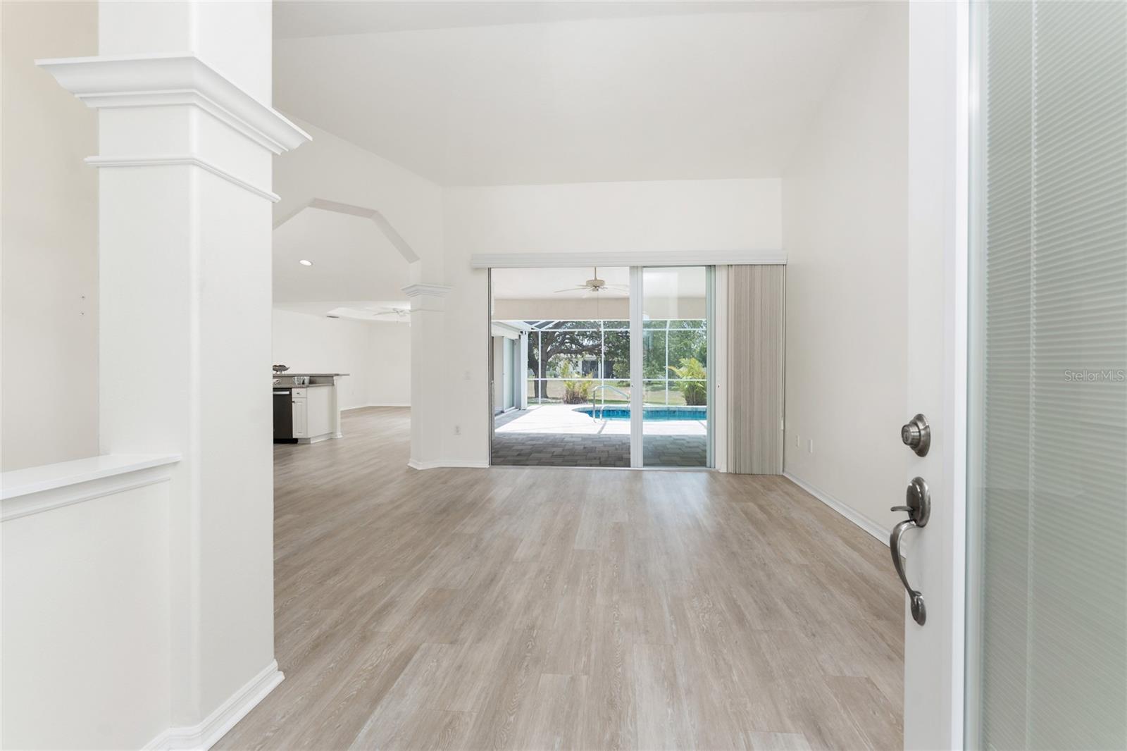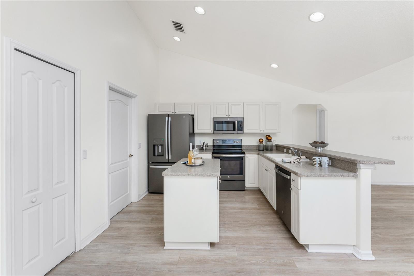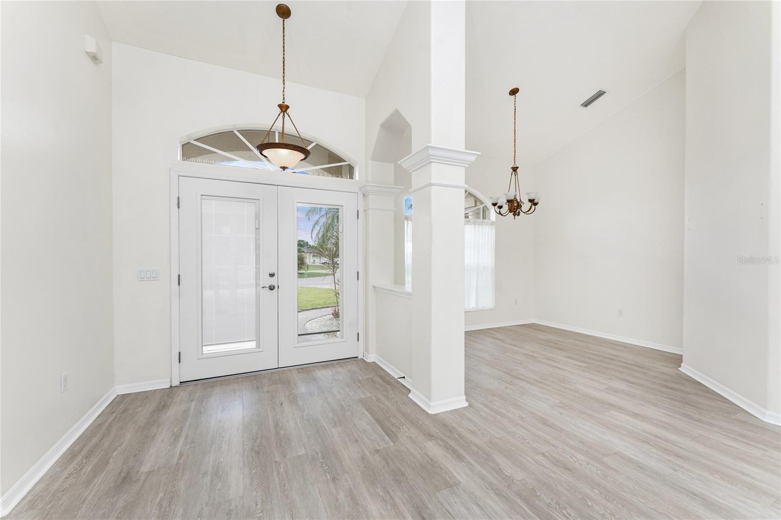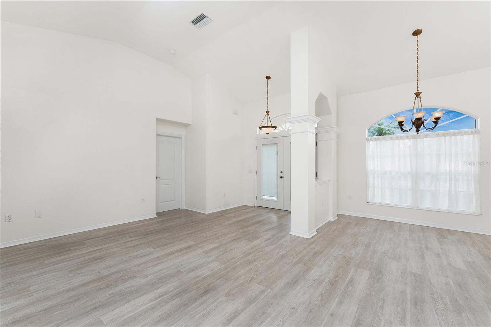 Welcome to this stunning custom-built David Schroeder home nestled in the highly desirable deed-restricted community of Deep Creek in Punta Gorda. Boasting 3 spacious bedrooms and 2 elegant bathrooms, this residence offers 1,817 square feet of comfortable, air-conditioned living space. Step through a beautiful arched and pillared entry that gracefully separates the dining room and enjoy the seamless flow into the kitchen and family room through another charming arched entry from the living room. The spacious kitchen has an abundance of cabinets, stainless steel appliances, center island, and breakfast bar with corian countertops –inviting your gourmet preparations. Natural light fills the home through three sets of sliding doors, each leading to a brick-pavered lanai and inviting solar-heated pool—accessible from the living room, family room, and primary ensuite—perfect for relaxing or entertaining. The home features durable laminate and tile flooring throughout and is situated on an oversized tip lot, providing a private, beautifully landscaped view with serene lake vistas right from the pool area. Recent upgrades include a new roof installed in 2021, a new air conditioning system in 2022, a new hot water heater in 2025, a pool resurfaced in 2023, and a new generator and panel rewire ensuring peace of mind and modern convenience. Hurricane protection is comprehensive with accordion shutters and a brand-new high-impact double front door added in 2024. Located just minutes from downtown Punta Gorda, enjoy easy access to a variety of fine restaurants, charming shops, and the vibrant Fishermen’s Village, known for its waterfront dining and unique boutiques. This home perfectly blends elegant design, modern amenities, and a prime location to offer a truly exceptional living experience.