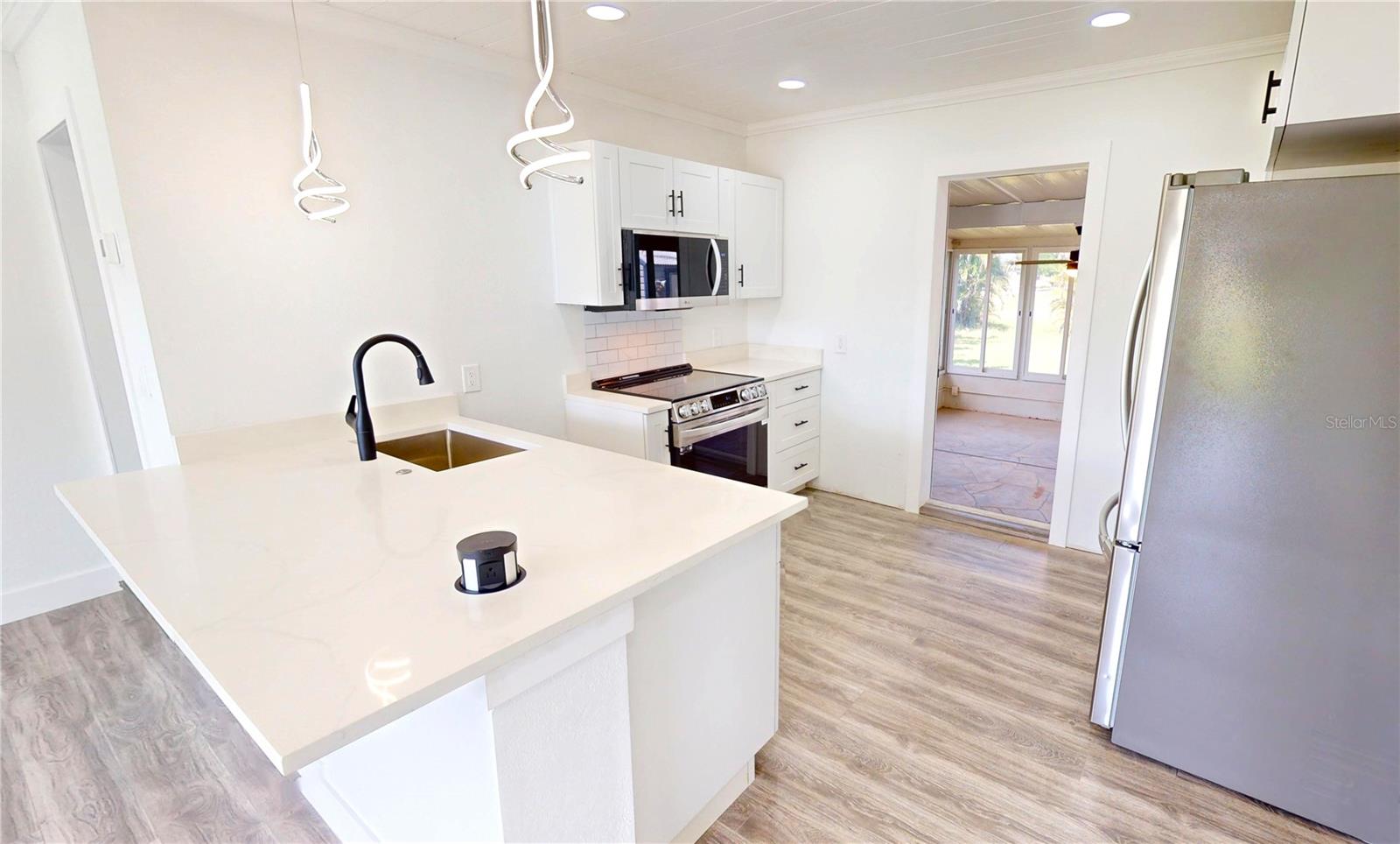 **PRICE IMPROVEMENT**PLEASE ENJOY THE 3D INTERACTIVE VIRTUAL TOUR ASSOCIATED WITH THIS LISTING – ADORABLE! You really owe it to yourself to check out this fully reimagined Punta Gorda original located on a 9600 square foot lot within the city limits of Punta Gorda! Comprised of three bedrooms and two full baths with an efficient great room plan, this home has an interior laundry room plus a ~225 square foot air-conditioned lanai, the perfect place for a dining room and family retreat. The house has undergone a complete and tasteful renovation, which provided for a new roof, new luxury vinyl flooring, tongue-and-groove ceilings throughout, impact-resistant windows, Quartz counters, ceiling fans and a tankless hot water system. There is also an oversized concrete driveway and a carport. There are also two utility sheds on the property (10x10 & 12x10). With it's new roof and fresh exterior paint, you’ll love the way this home looks and feels. The homeowners also have a transferable flood insurance policy that has been prepaid until June, 2026 and can be transferred. From this location, you are but 1.7 miles from historic downtown Punta Gorda and the Fisherman’s Village complex. Walk through now by clicking on the attached interactive 3D VIRTUAL TOUR!