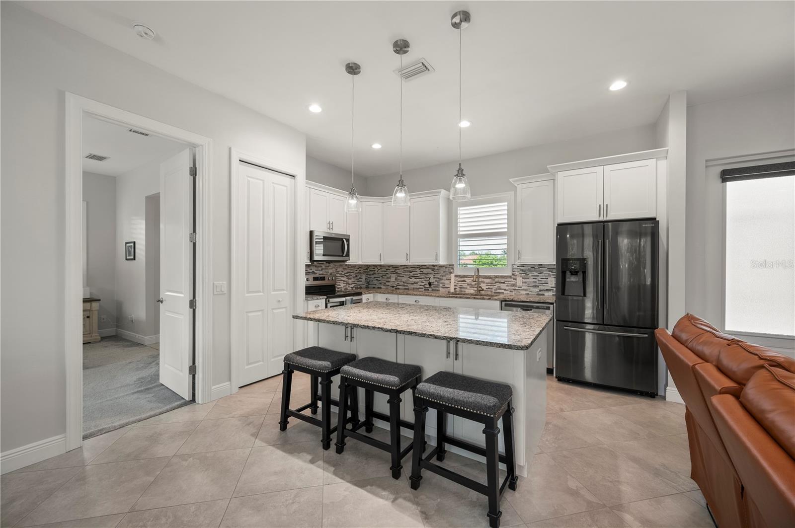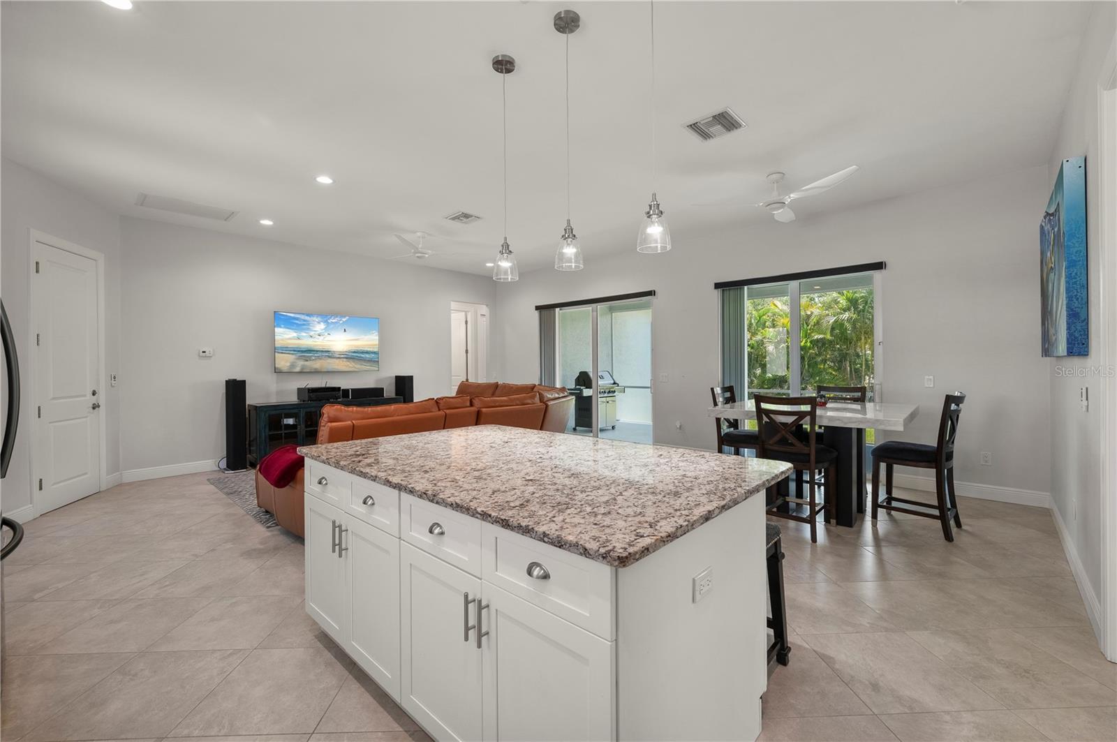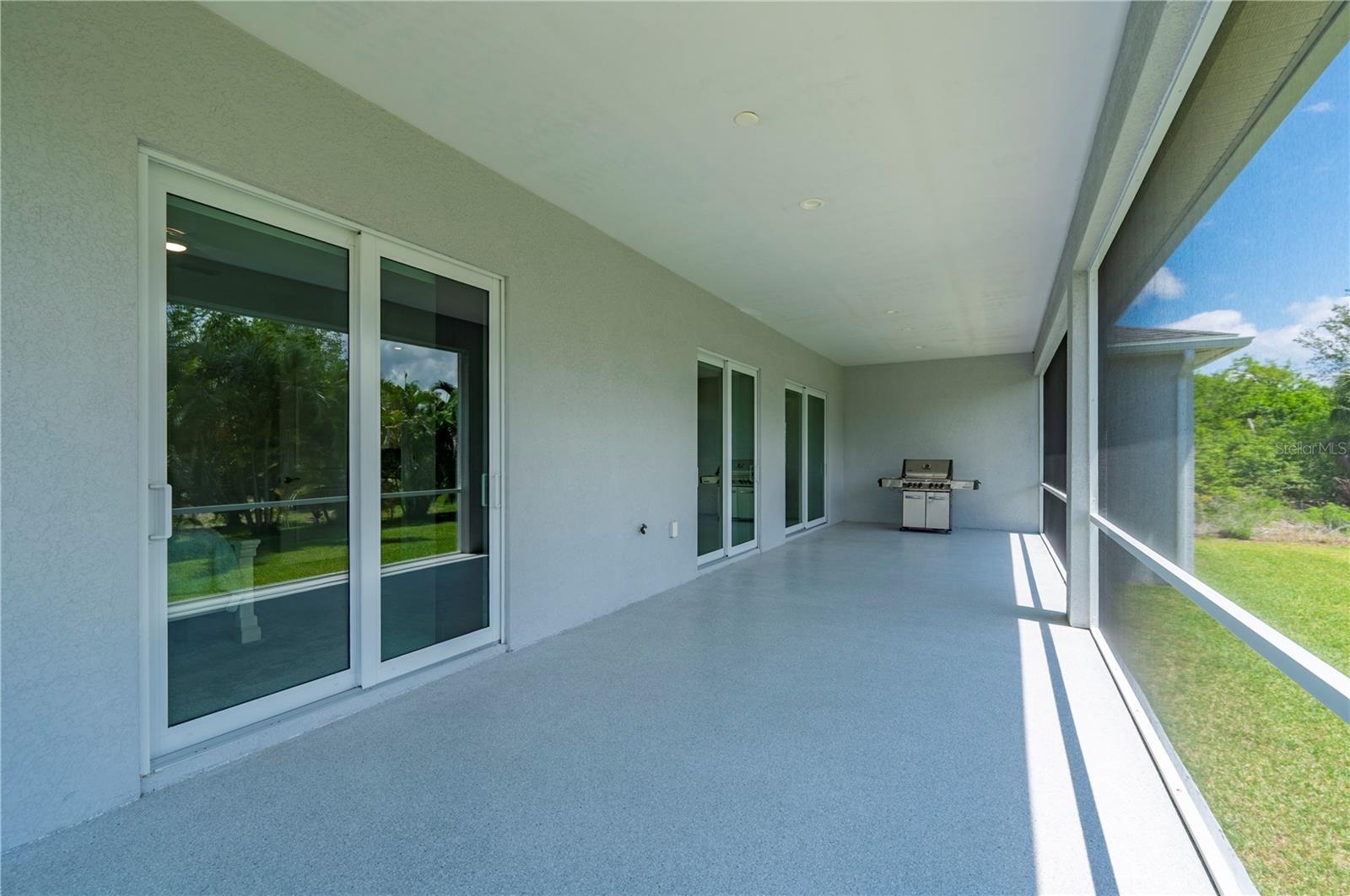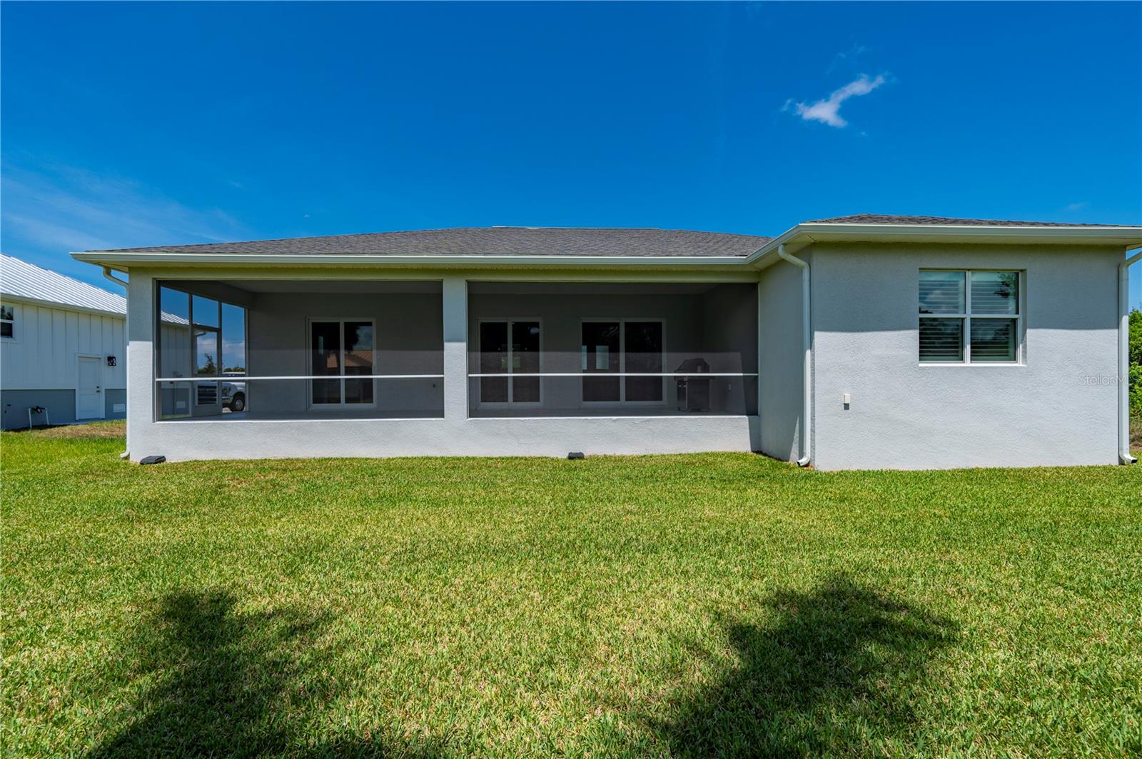 Welcome to your slice of coastal comfort-a meticulously maintained, 3 bedroom, 2 bathroom home built in 2019 by the respected Florida Coastline Construction. Designed with both style and function in mind, this residence is the perfect blend of quality craftsmanship and easy Florida living. Inside, generous 9’4” ceilings and oversized 20"x20" tile set the tone for open, airy spaces. Upgraded baseboards and refined trim moldings add just the right touch of detail, while impact-resistant low-E windows and sliders fill the home with natural light and peace of mind. At the heart of it all is a well-appointed kitchen with rich wood cabinetry, soft-close drawers, granite countertops, and a central island that invites gathering and connection. Whether you're hosting or unwinding, the layout is built to support your lifestyle. The master suite opens directly to the lanai and is paired with a luxurious bath featuring a soaking tub and walk-in shower for that everyday spa feel. Climate control is handled by a high-efficiency SEER-16 HVAC system, and the epoxy-finished, air-conditioned two-car garage provides year-round utility. Step outside and enjoy the oversized lanai with view of lush tropical landscaping- your own quiet escape with room to add a pool if desired. Best of all, this property offers flexibility with NO HOA or Deed Restrictions, and is ideally located just minutes from Punta Gorda’s historic downtown, Ponce de Leon Park, Laishley Marina, and more. Whether you're looking for a full-time residence or the perfect winter retreat, this move-in-ready home captures everything there is to love about Southwest Florida living.