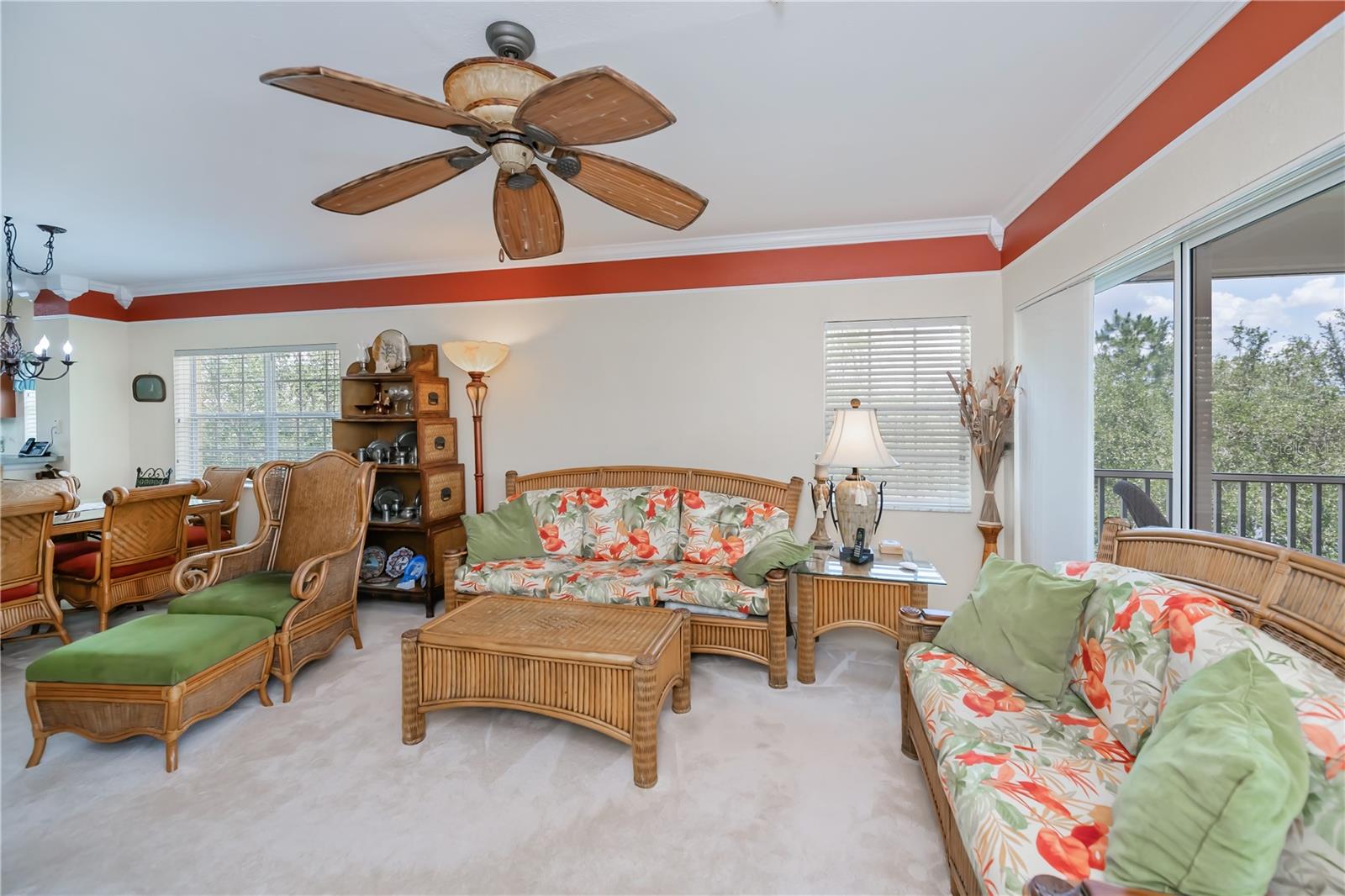 Incredible top floor view from this pristine end unit 3/2 condo! The medallion entry foyer opens to a newly painted interior with new carpeting and laminate flooring, ceiling fans and more! Under 3-year new A/C and hot water heater. Upscale appointments with a full-size stacked washer & dryer. Fabulous, eat-in kitchen opens to a sizable great room with sliders to a tiled balcony lanai! Enjoy the morning sunrise and nesting birds from the comfort & privacy of your own lanai. Tasteful decor and immaculately kept home in a gated, bird sanctuary community with a clubhouse, heated pool, fitness center, pickleball, tennis, and more! Priced to sell.