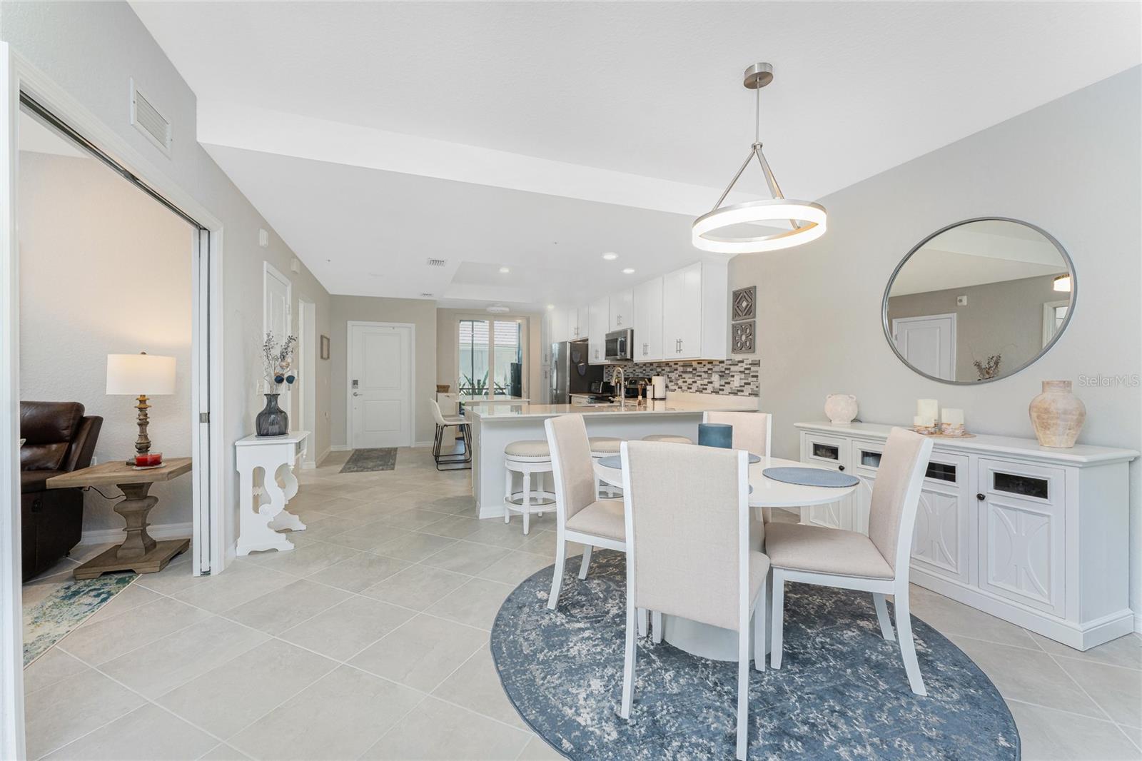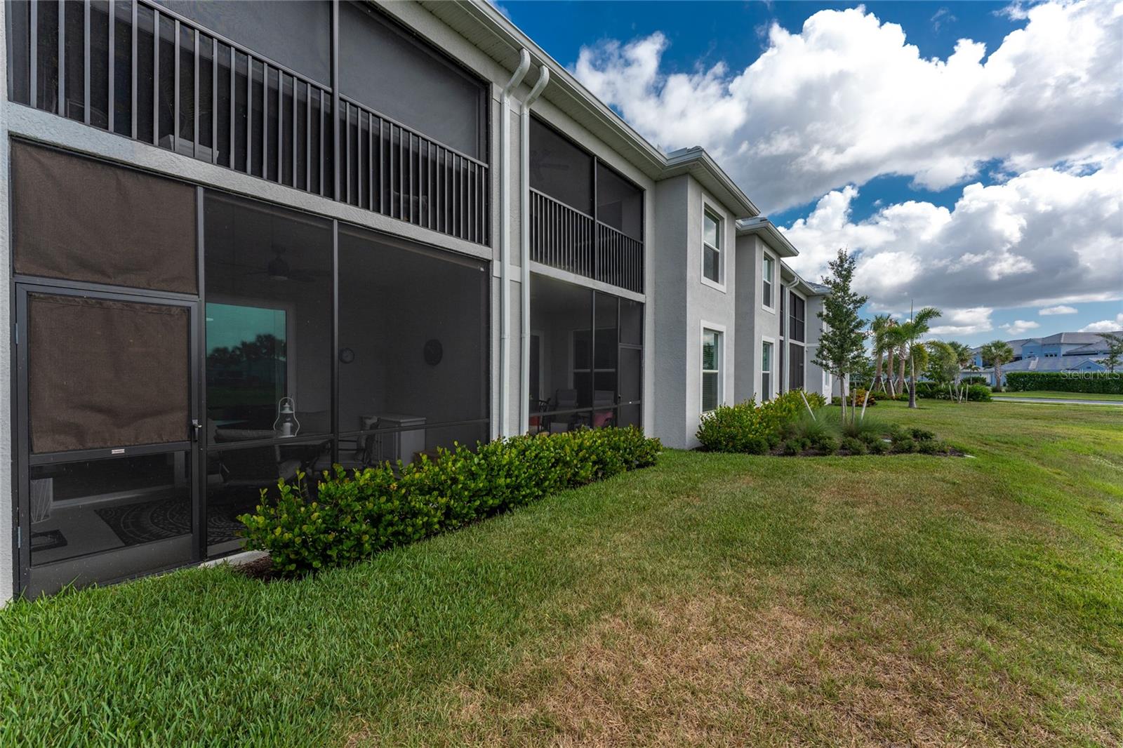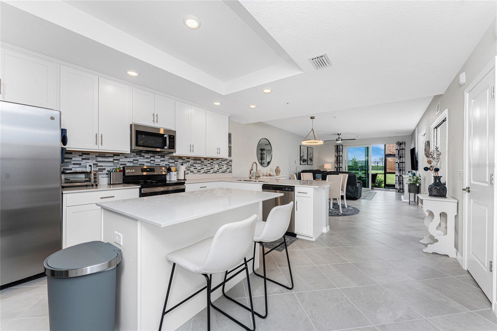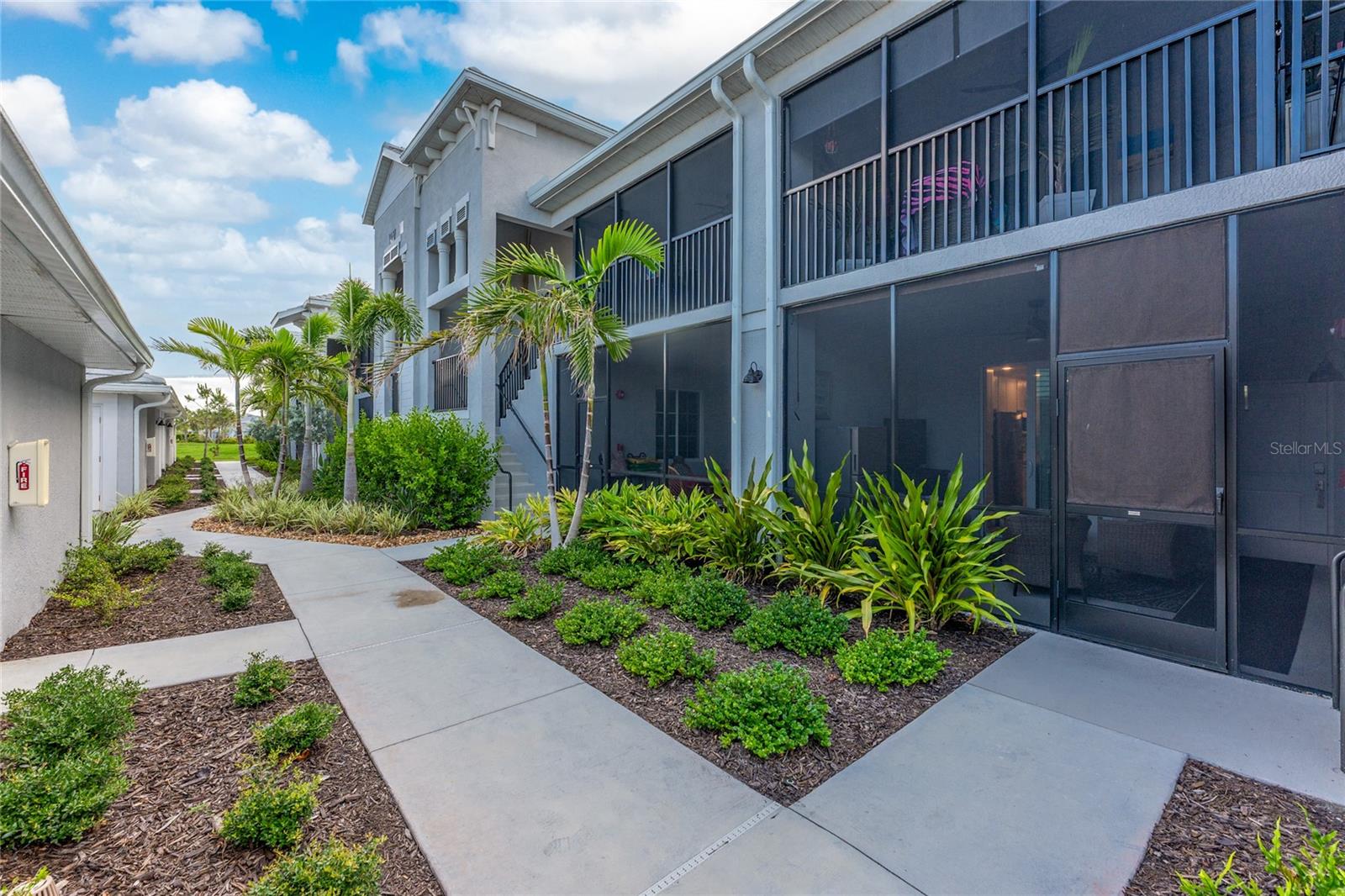 Experience the pinnacle of resort-style living in this impeccably maintained first-floor unit, nestled within the exclusive Heritage Landing Golf & Country Club. This beautifully designed 2-bedroom, 2-bath + den, Bromelia floor plan offers the perfect blend of luxury and comfort. Step inside through the screened front lanai to find an open concept design showcasing diagonally laid tile throughout. The kitchen features quartz countertops, custom tile backsplash, shaker style cabinetry and stainless steel appliances as well as an eat-in dining area, and breakfast bar. The spacious primary suite is complemented by a tray ceiling, two walk-in closets, dual vanities, and a large tiled shower. Custom paint throughout the home enhances its charm. The outdoor space is impressive with an additional screened lanai in the rear with picturesque views of the large pond abundant with wildlife. Both lanais are outfitted with custom sunscreens for both sun protection as well as privacy. Impact windows and a detached 1-car garage provide added convenience. Heritage Landing offers an unparalleled array of amenities including a Championship golf course, resort-style pool with lap lanes and spa, two on-site restaurants offering formal and informal dining options, a state-of-the-art fitness center and beauty spa, sauna, tennis courts, pickle ball courts and more. Located in Punta Gorda with easy access to the local airport and wonderful downtown restaurant options. This property offers a luxurious, maintenance-free lifestyle perfect for year-round living or a seasonal retreat.