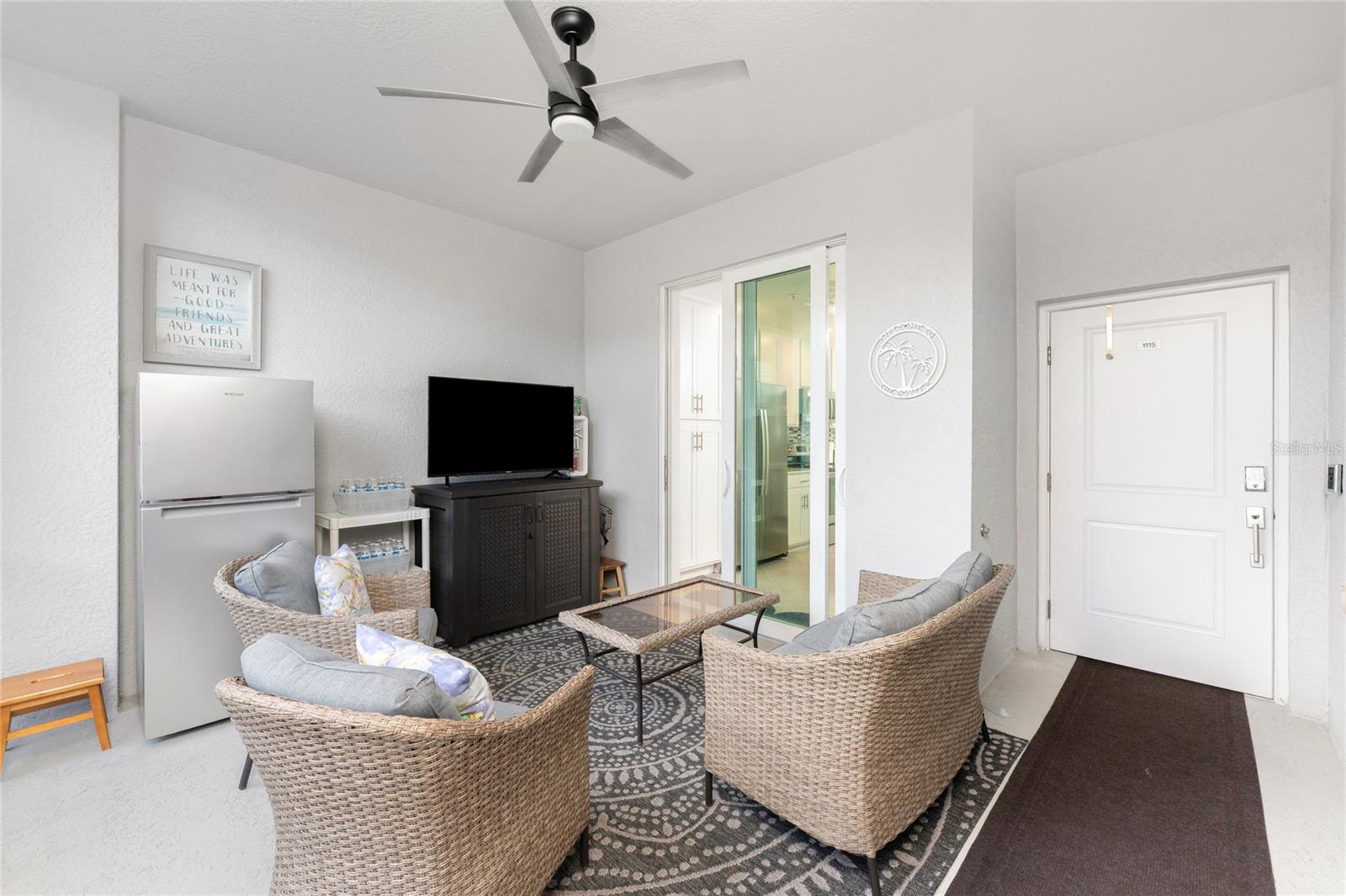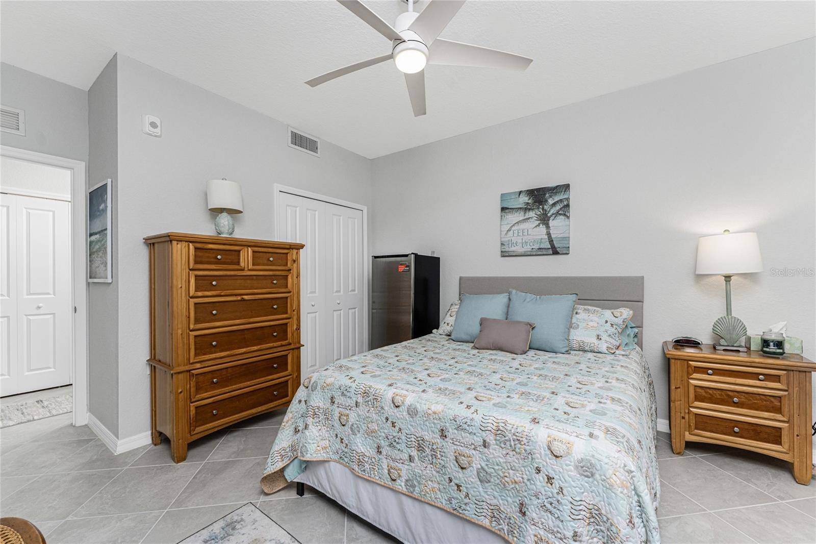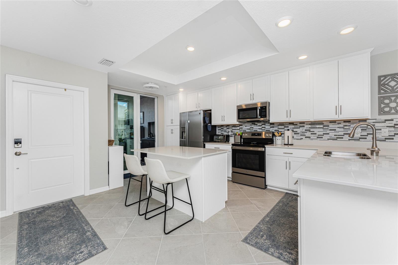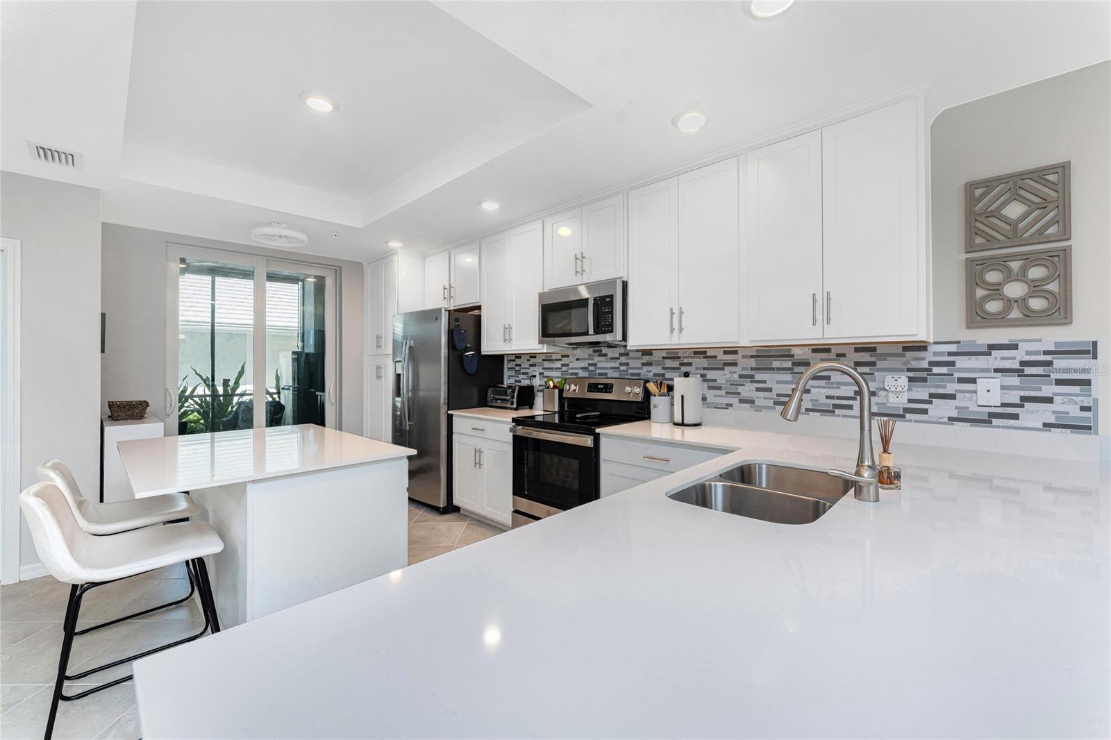 Experience the pinnacle of resort-style living in this impeccably maintained first-floor unit, nestled within the exclusive Heritage Landing Golf & Country Club. This beautifully designed 2-bedroom, 2-bath + den, Bromelia floor plan offers the perfect blend of luxury and comfort. Step inside through the screened front lanai to find an open concept design showcasing diagonally laid tile throughout. The kitchen features quartz countertops, custom tile backsplash, shaker style cabinetry and stainless steel appliances as well as an eat-in dining area, and breakfast bar. The spacious primary suite is complemented by a tray ceiling, two walk-in closets, dual vanities, and a large tiled shower. Custom paint throughout the home enhances its charm. The outdoor space is impressive with an additional screened lanai in the rear with picturesque views of the large pond abundant with wildlife. Both lanais are outfitted with custom sunscreens for both sun protection as well as privacy. Impact windows and a detached 1-car garage provide added convenience. Heritage Landing offers an unparalleled array of amenities including a Championship golf course, resort-style pool with lap lanes and spa, two on-site restaurants offering formal and informal dining options, a state-of-the-art fitness center and beauty spa, sauna, tennis courts, pickle ball courts and more. Located in Punta Gorda with easy access to the local airport and wonderful downtown restaurant options. This property offers a luxurious, maintenance-free lifestyle perfect for year-round living or a seasonal retreat.