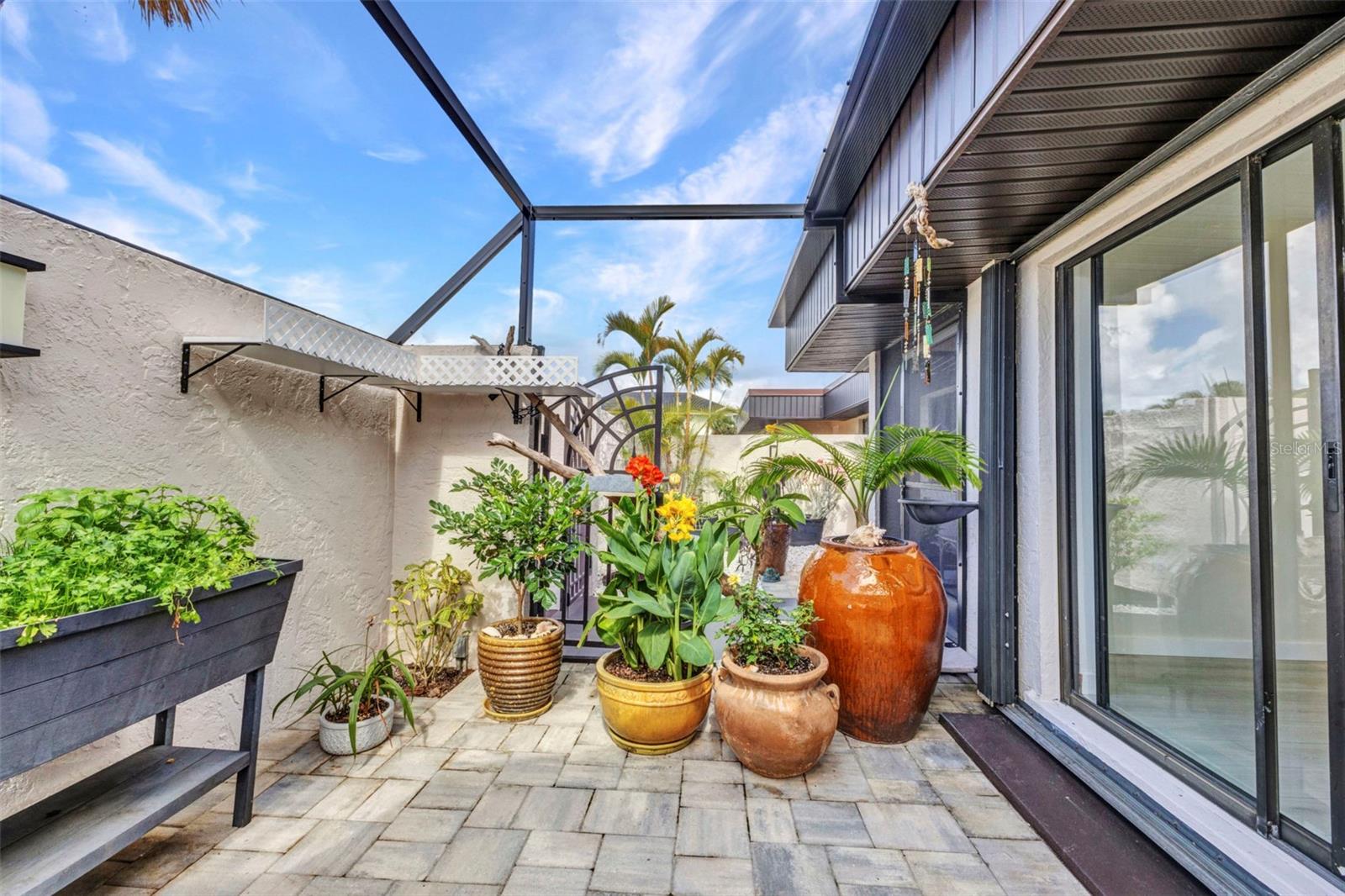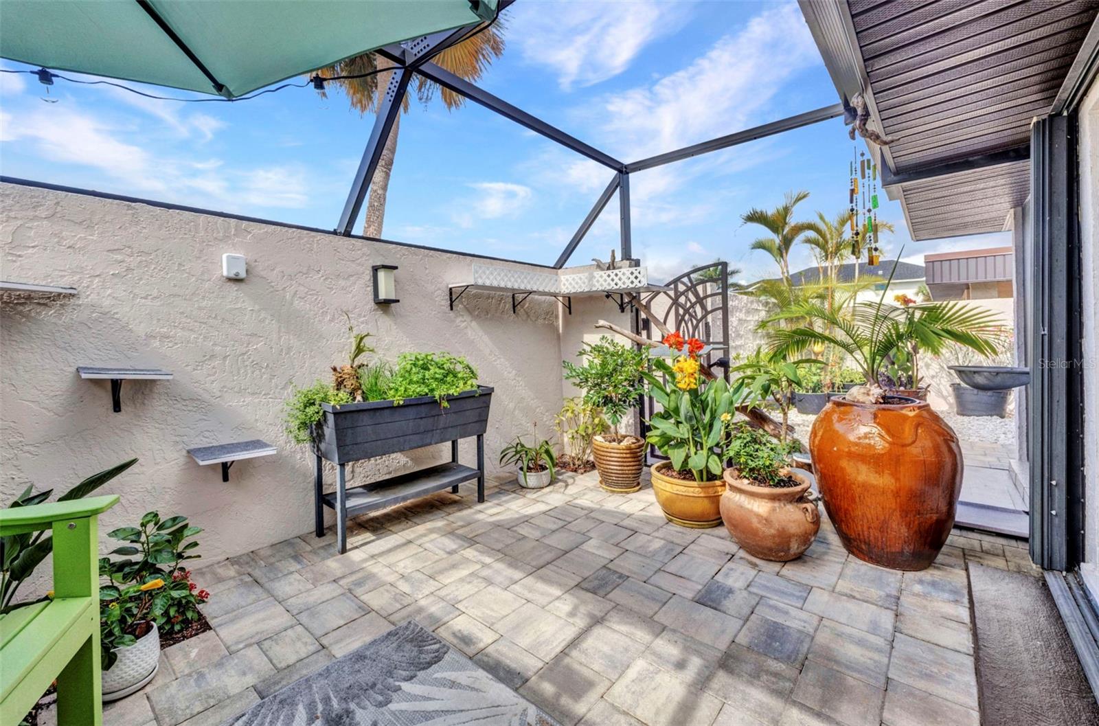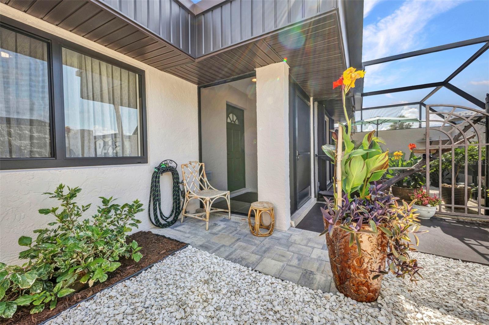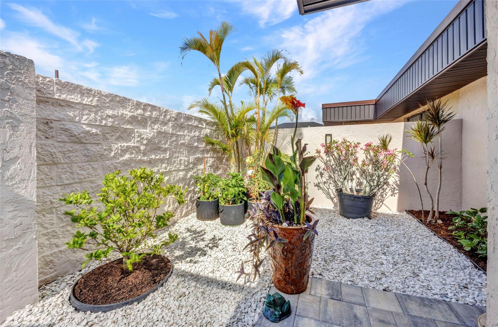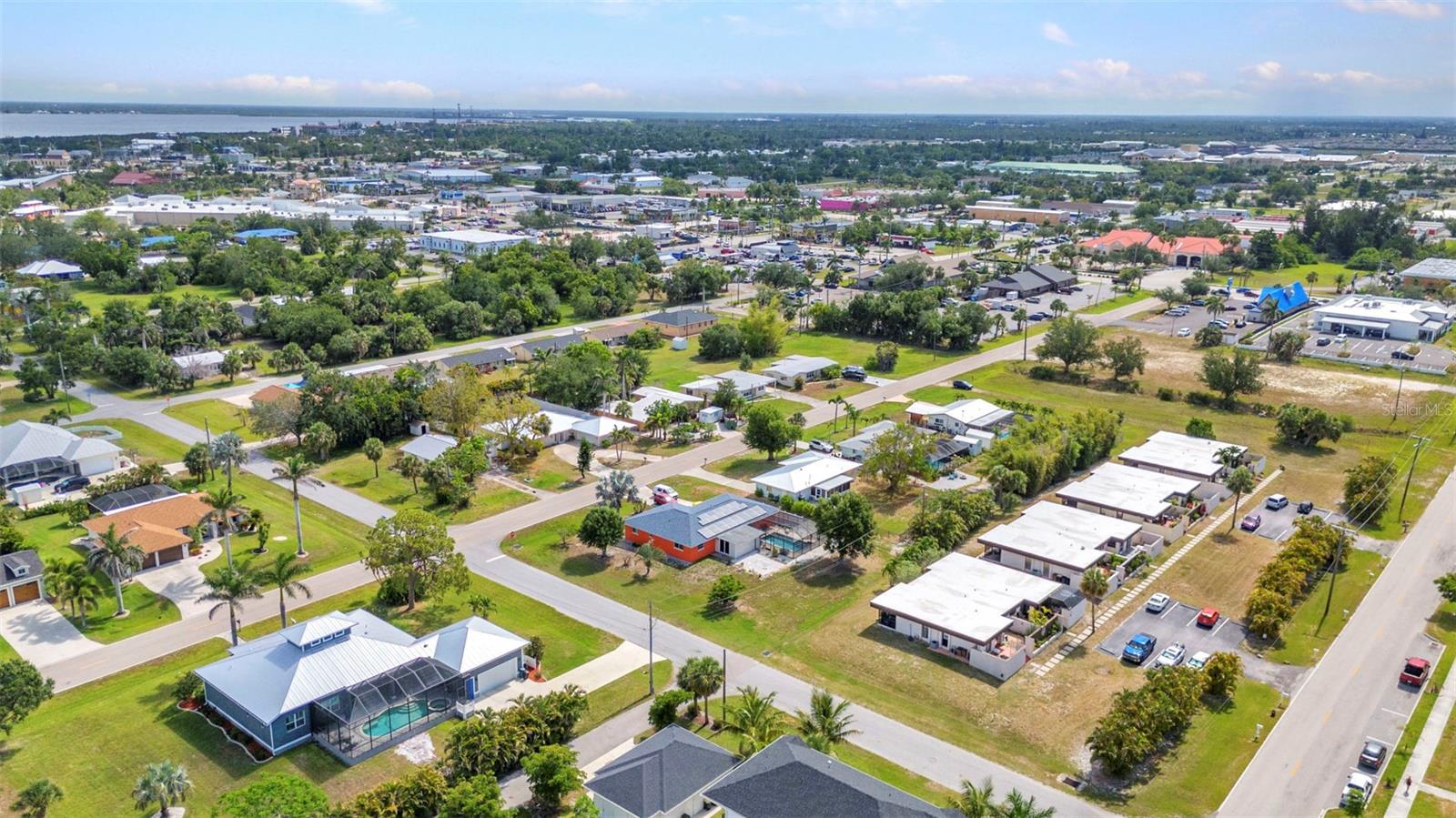 Tucked behind your very own double gate entrance, surrounded by tall concrete walls presents a HIGH ELEVATION 2 bedroom 1 bath, over 1,000 square foot residence, a secluded oasis, unscathed by recent storms. Enjoy your 2 private courtyards; a custom screened enclosed courtyard invites the outdoors protected from pesky pests while lounging, grilling, entertaining and keeping the children & pets safe, while your other courtyard offers infinite opportunities for your pets & children playing, gardening, spa placement, fire pit or nature inspired activities. Nestled in the serene and distinguished historic district of Punta Gorda, this home combines tranquility with convenience. Enjoy a vibrant lifestyle just steps away from scenic trails, farmers markets, local attractions, restaurants, charming shops, and the public library within walking distance. Enter through the new custom enclosed porch, into the home where natural light and LVP flooring flows from room to room. New sleek recessed lighting options illuminate throughout. Tailored cabinetry and granite sink in the kitchen compliments the white Quartz countertops. Full view glass panel door serves as easy access to side of home and an added perk of natural light. Ample Cafe area for extra dining options or extra seating as to be near the enclosed courtyard activities. Renovated bathroom, ergonomically friendly height Quartz vanity, tall custom deep-set wall cabinet, new toilet and a floor to ceiling tiled shower grants pleasure to use. Spacious bedrooms boast serene views from each new oversized high impact window. Living room is graced with floor to ceiling windows and sliders. Spacious secluded lanai with privacy/pet friendly screens features a double door storage option and access to the yard. Assigned close proximity parking to private entrance. Some of the many NEW improvements 2023~present...roof, high impact windows, HVAC system, water heater system for efficiency, interior and exterior electric panel upgrade, courtyard pavers, custom enclosed courtyard and front porch, dryer vent, gutters, hose bibs and landscaping. Enjoy the best of both worlds —the ease and security of condo living combined with the rare freedom of expansive, privately owned outdoor space. This well-appointed, beautifully updated home offers a non-intrusive HOA that maintains shared areas for carefree living while allowing you the creative freedom to personalize your property, all securely tucked behind your own double gates. A truly affordable opportunity for homeowners and investors alike to be part of a friendly, well-kept community.
