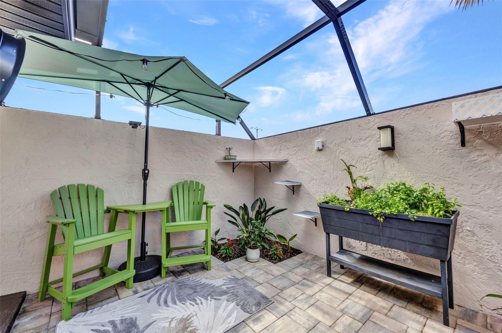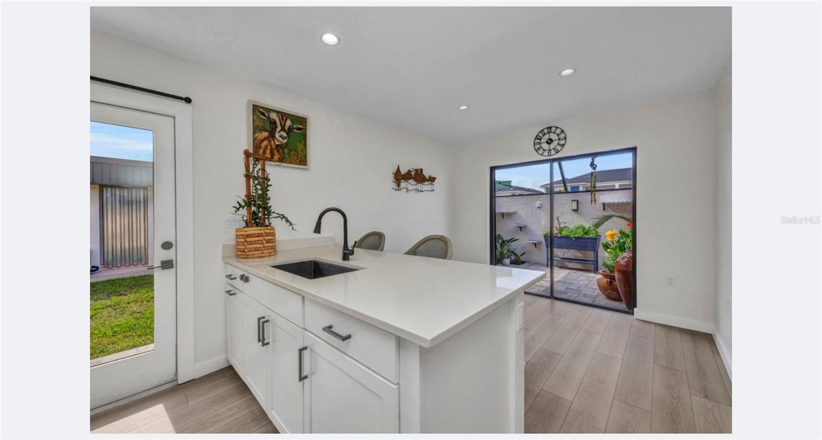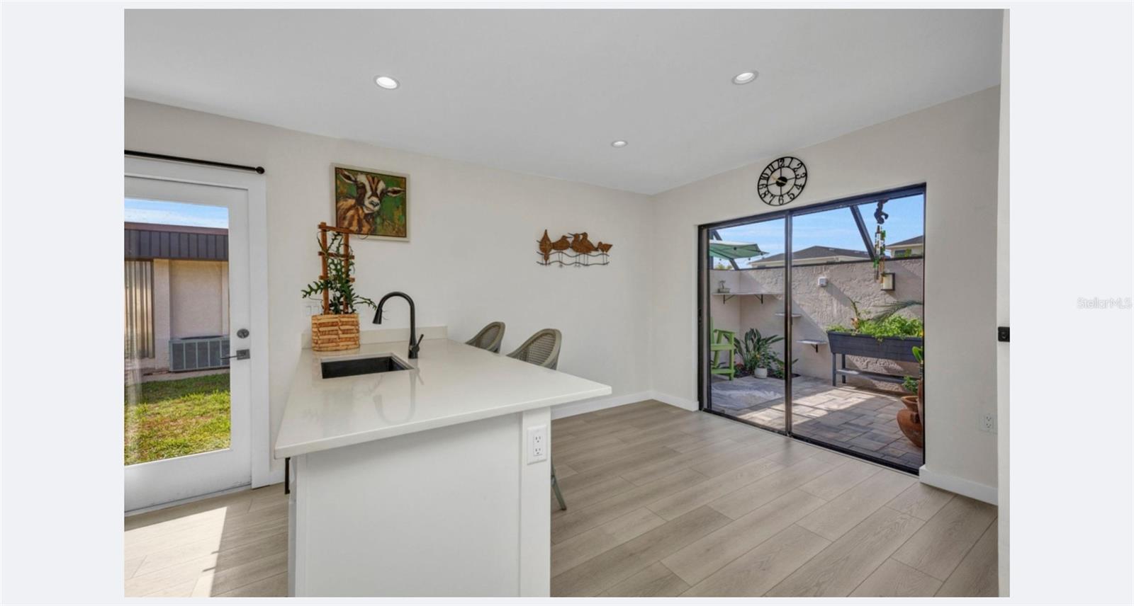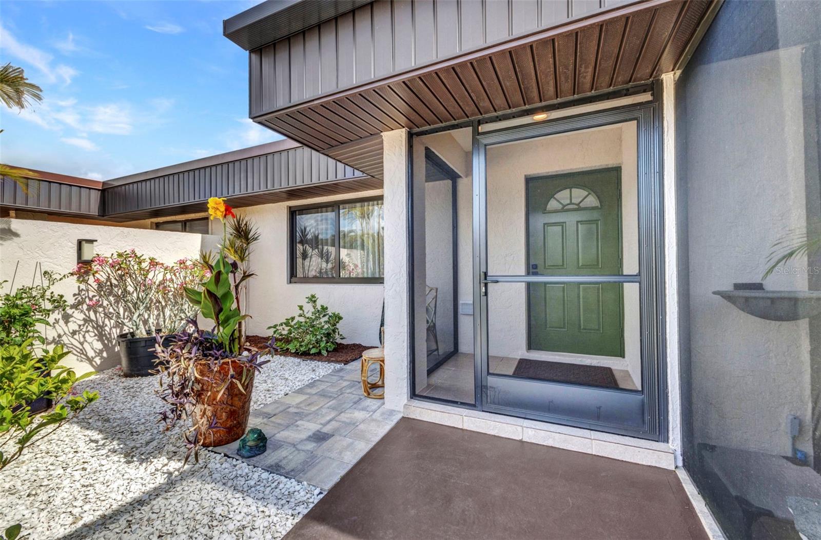 Tucked behind your very own double gate entrance, surrounded by tall concrete walls presents a HIGH ELEVATION 2 bedroom 1 bath, over 1,000 square foot residence, a secluded oasis, unscathed by recent storms. Enjoy your 2 private courtyards; a custom screened enclosed courtyard invites the outdoors protected from pesky pests while lounging, grilling, entertaining and keeping the children & pets safe, while your other courtyard offers infinite opportunities for your pets & children playing, gardening, spa placement, fire pit or nature inspired activities. Nestled in the serene and distinguished historic district of Punta Gorda, this home combines tranquility with convenience. Enjoy a vibrant lifestyle just steps away from scenic trails, farmers markets, local attractions, restaurants, charming shops, and the public library within walking distance. Enter through the new custom enclosed porch, into the home where natural light and LVP flooring flows from room to room. New sleek recessed lighting options illuminate throughout. Tailored cabinetry and granite sink in the kitchen compliments the white Quartz countertops. Full view glass panel door serves as easy access to side of home and an added perk of natural light. Ample Cafe area for extra dining options or extra seating as to be near the enclosed courtyard activities. Renovated bathroom, ergonomically friendly height Quartz vanity, tall custom deep-set wall cabinet, new toilet and a floor to ceiling tiled shower grants pleasure to use. Spacious bedrooms boast serene views from each new oversized high impact window. Living room is graced with floor to ceiling windows and sliders. Spacious secluded lanai with privacy/pet friendly screens features a double door storage option and access to the yard. Assigned close proximity parking to private entrance. Some of the many NEW improvements 2023~present...roof, high impact windows, HVAC system, water heater system for efficiency, interior and exterior electric panel upgrade, courtyard pavers, custom enclosed courtyard and front porch, dryer vent, gutters, hose bibs and landscaping. Enjoy the best of both worlds —the ease and security of condo living combined with the rare freedom of expansive, privately owned outdoor space. This well-appointed, beautifully updated home offers a non-intrusive HOA that maintains shared areas for carefree living while allowing you the creative freedom to personalize your property, all securely tucked behind your own double gates. A truly affordable opportunity for homeowners and investors alike to be part of a friendly, well-kept community.