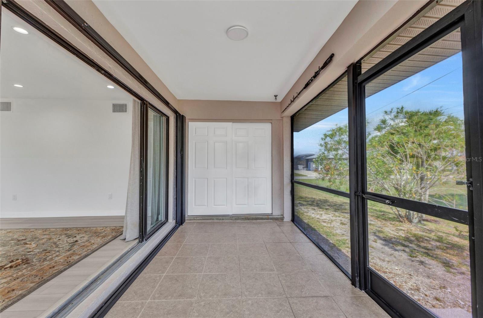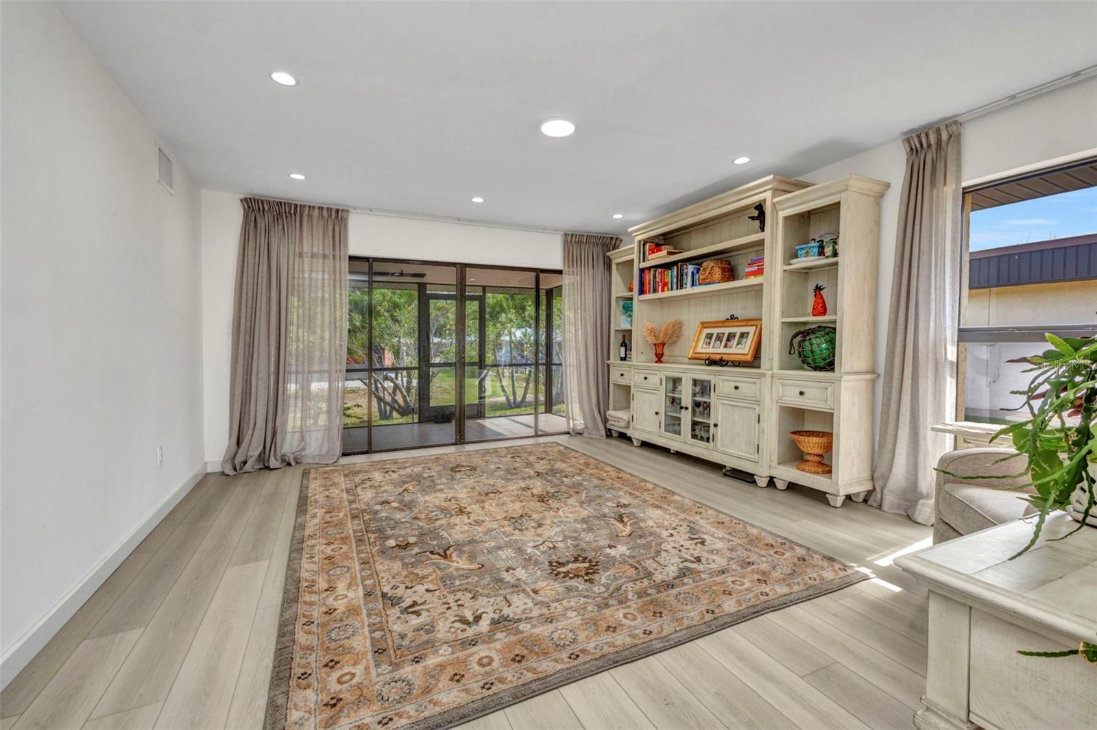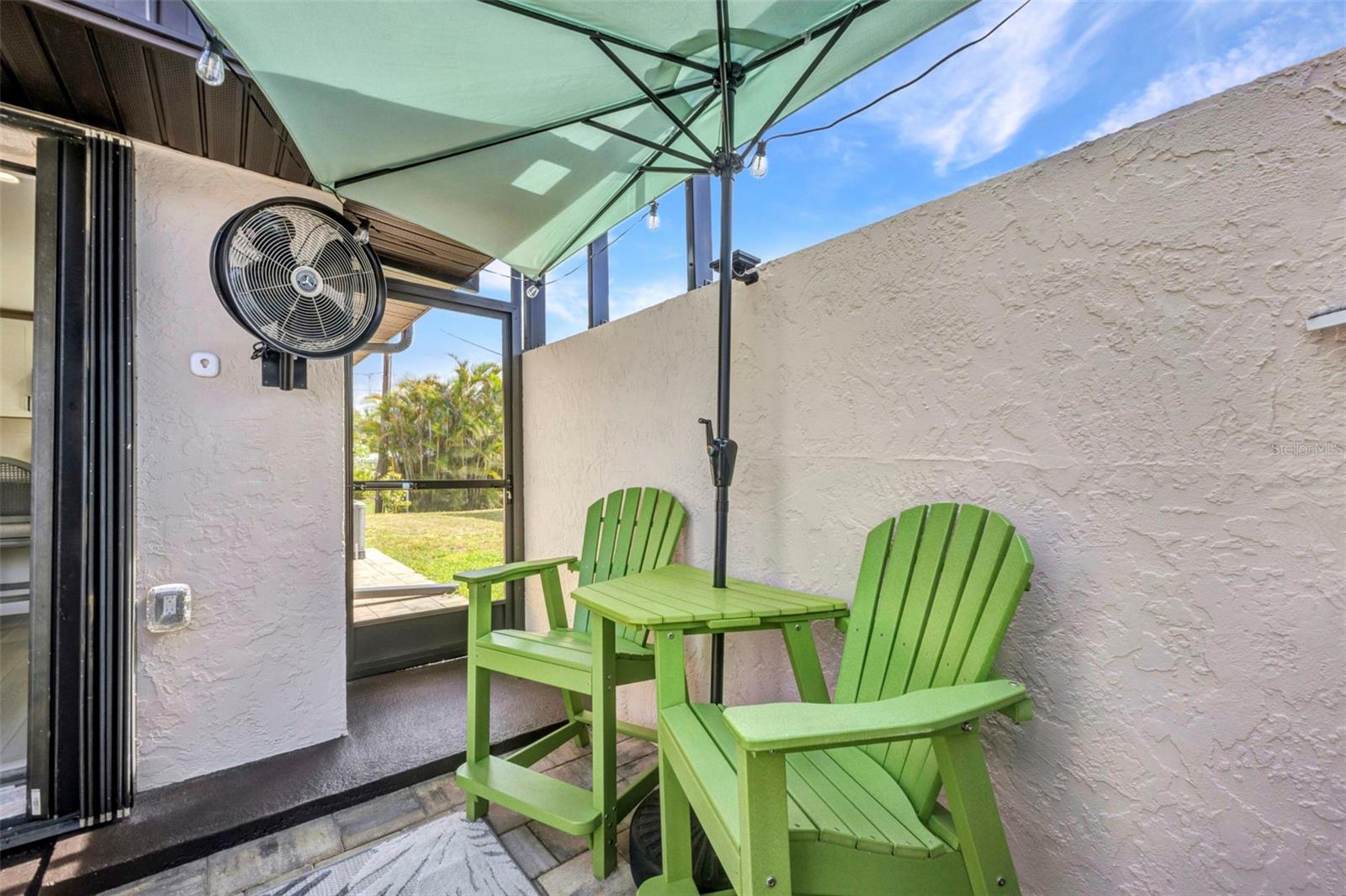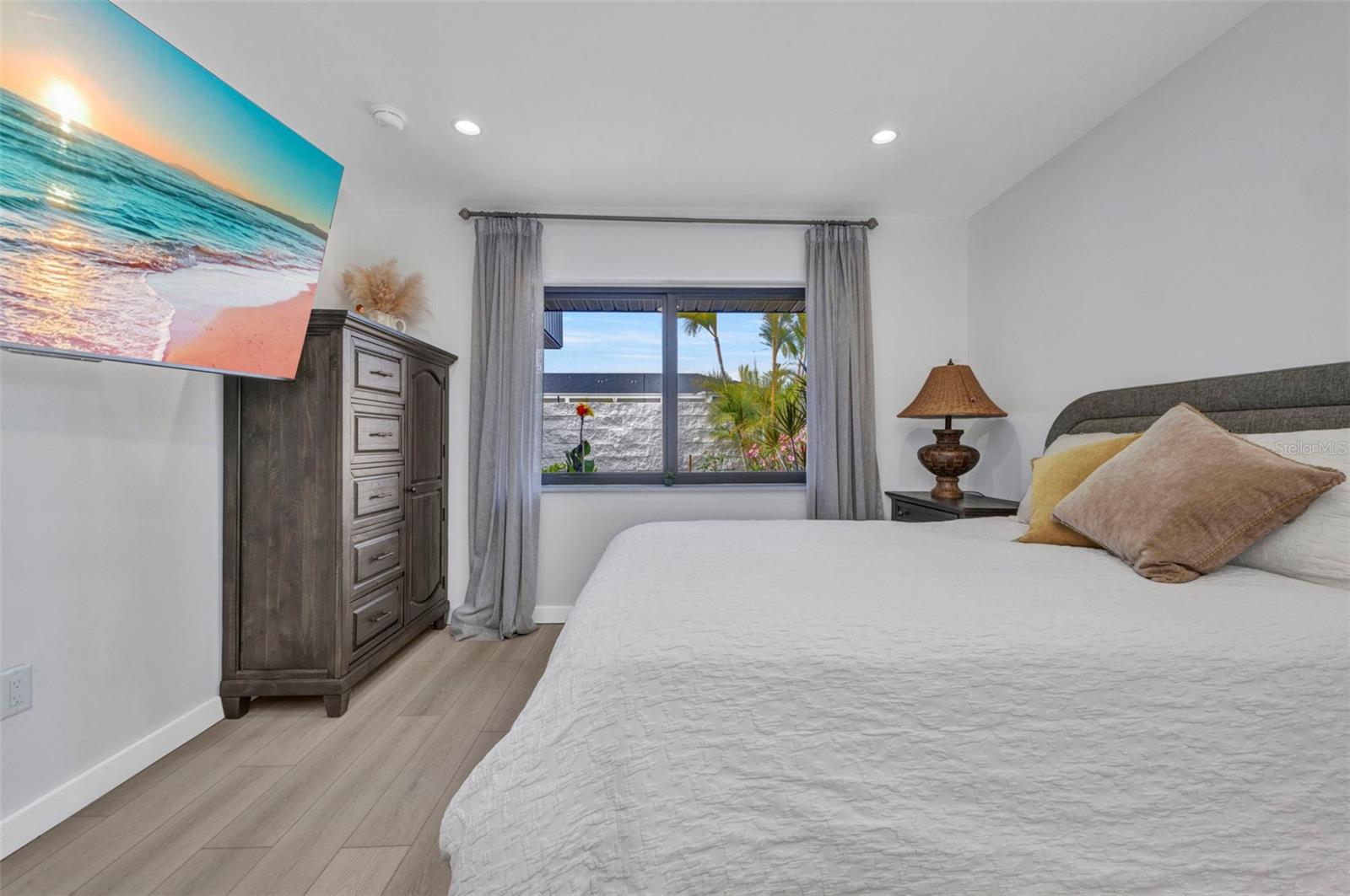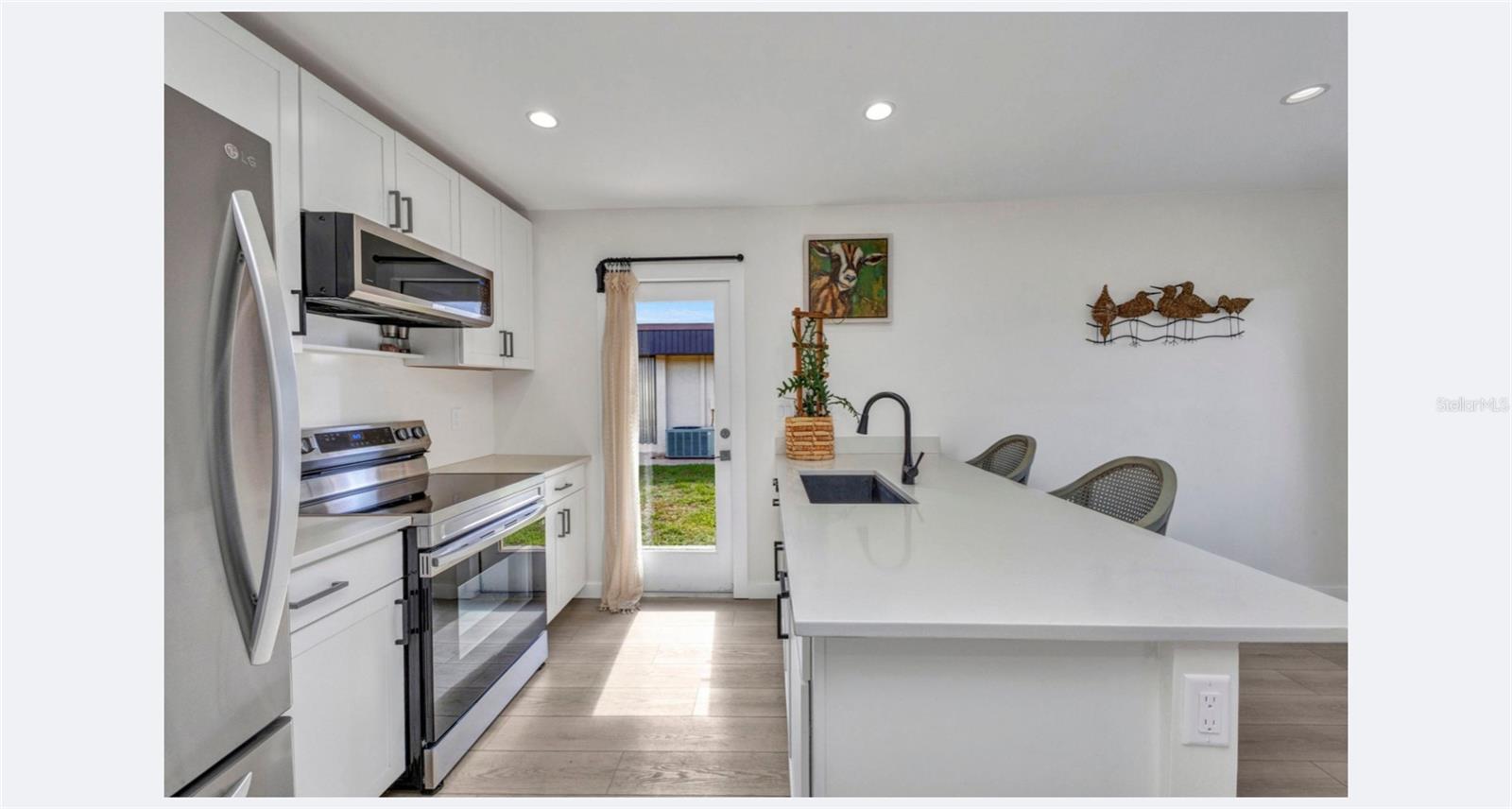 Tucked behind your very own double gate entrance, surrounded by tall concrete walls presents a HIGH ELEVATION 2 bedroom 1 bath, over 1,000 square foot residence, a secluded oasis, unscathed by recent storms. Enjoy your 2 private courtyards; a custom screened enclosed courtyard invites the outdoors protected from pesky pests while lounging, grilling, entertaining and keeping the children & pets safe, while your other courtyard offers infinite opportunities for your pets & children playing, gardening, spa placement, fire pit or nature inspired activities. Nestled in the serene and distinguished historic district of Punta Gorda, this home combines tranquility with convenience. Enjoy a vibrant lifestyle just steps away from scenic trails, farmers markets, local attractions, restaurants, charming shops, and the public library within walking distance. Enter through the new custom enclosed porch, into the home where natural light and LVP flooring flows from room to room. New sleek recessed lighting options illuminate throughout. Tailored cabinetry and granite sink in the kitchen compliments the white Quartz countertops. Full view glass panel door serves as easy access to side of home and an added perk of natural light. Ample Cafe area for extra dining options or extra seating as to be near the enclosed courtyard activities. Renovated bathroom, ergonomically friendly height Quartz vanity, tall custom deep-set wall cabinet, new toilet and a floor to ceiling tiled shower grants pleasure to use. Spacious bedrooms boast serene views from each new oversized high impact window. Living room is graced with floor to ceiling windows and sliders. Spacious secluded lanai with privacy/pet friendly screens features a double door storage option and access to the yard. Assigned close proximity parking to private entrance. Some of the many NEW improvements 2023~present...roof, high impact windows, HVAC system, water heater system for efficiency, interior and exterior electric panel upgrade, courtyard pavers, custom enclosed courtyard and front porch, dryer vent, gutters, hose bibs and landscaping. Enjoy the best of both worlds —the ease and security of condo living combined with the rare freedom of expansive, privately owned outdoor space. This well-appointed, beautifully updated home offers a non-intrusive HOA that maintains shared areas for carefree living while allowing you the creative freedom to personalize your property, all securely tucked behind your own double gates. A truly affordable opportunity for homeowners and investors alike to be part of a friendly, well-kept community.