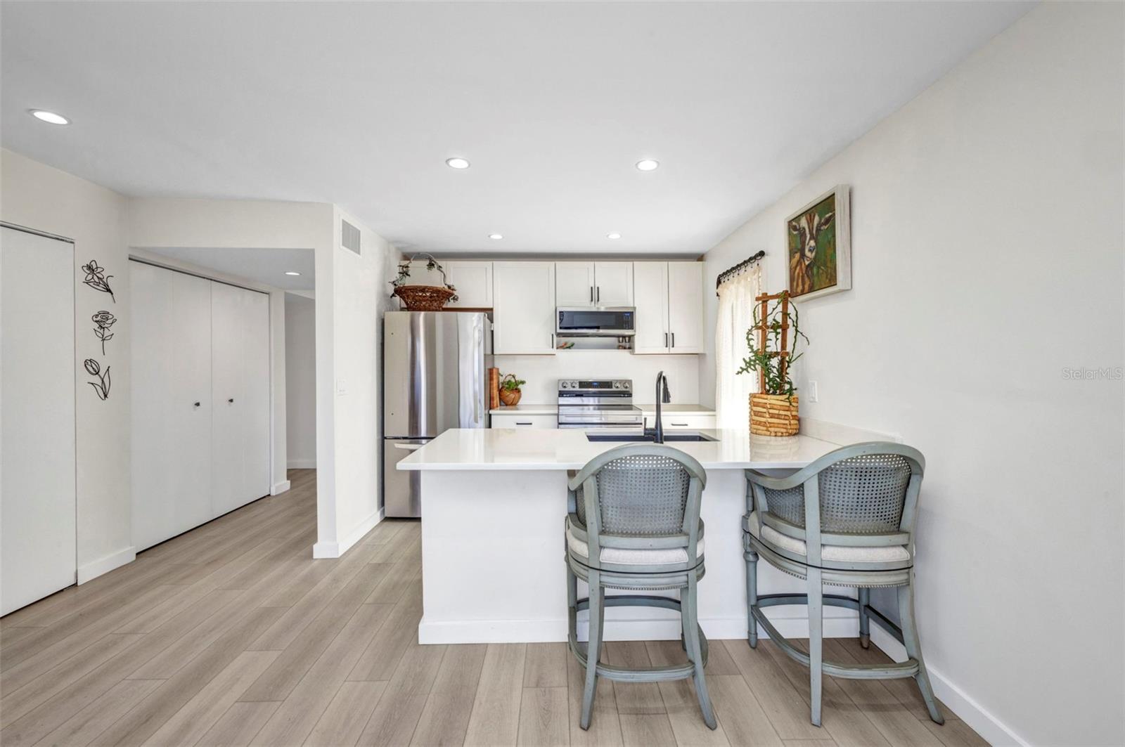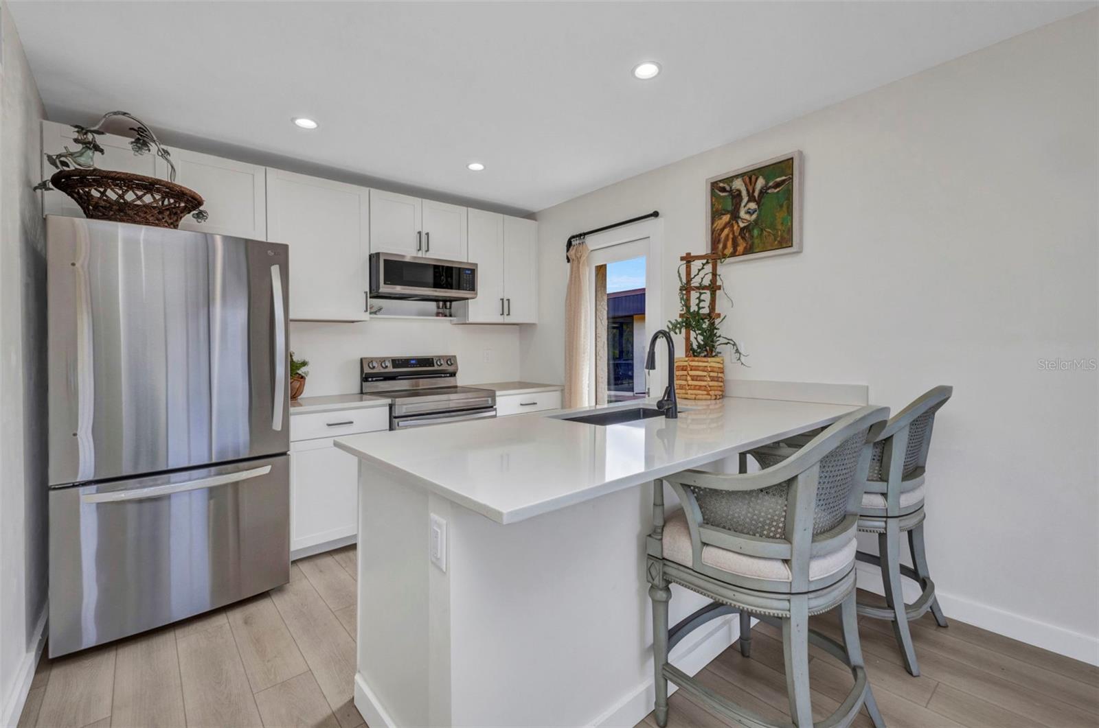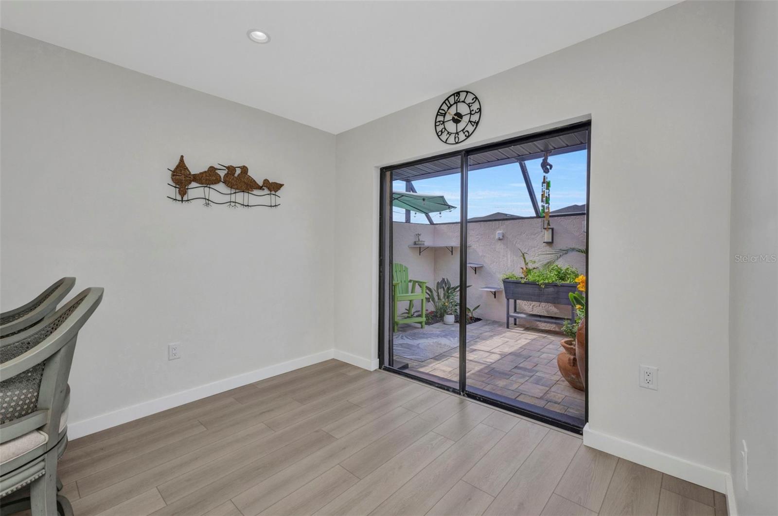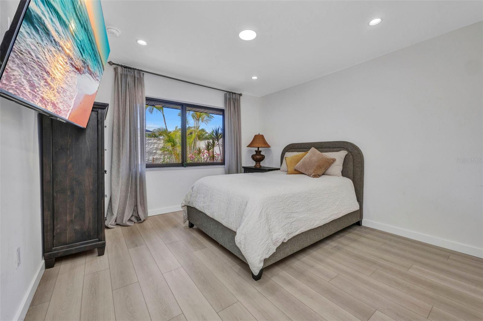Tucked behind your very own double gate entrance, surrounded by tall concrete walls presents a HIGH ELEVATION 2 bedroom 1 bath, over 1,000 square foot residence, a secluded oasis, unscathed by recent storms. Enjoy your 2 private courtyards; a custom screened enclosed courtyard invites the outdoors protected from pesky pests while lounging, grilling, entertaining and keeping the children & pets safe, while your other courtyard offers infinite opportunities for your pets & children playing, gardening, spa placement, fire pit or nature inspired activities. Nestled in the serene and distinguished historic district of Punta Gorda, this home combines tranquility with convenience. Enjoy a vibrant lifestyle just steps away from scenic trails, farmers markets, local attractions, restaurants, charming shops, and the public library within walking distance. Enter through the new custom enclosed porch, into the home where natural light and LVP flooring flows from room to room. New sleek recessed lighting options illuminate throughout. Tailored cabinetry and granite sink in the kitchen compliments the white Quartz countertops. Full view glass panel door serves as easy access to side of home and an added perk of natural light. Ample Cafe area for extra dining options or extra seating as to be near the enclosed courtyard activities. Renovated bathroom, ergonomically friendly height Quartz vanity, tall custom deep-set wall cabinet, new toilet and a floor to ceiling tiled shower grants pleasure to use. Spacious bedrooms boast serene views from each new oversized high impact window. Living room is graced with floor to ceiling windows and sliders. Spacious secluded lanai with privacy/pet friendly screens features a double door storage option and access to the yard. Assigned close proximity parking to private entrance. Some of the many NEW improvements 2023~present...roof, high impact windows, HVAC system, water heater system for efficiency, interior and exterior electric panel upgrade, courtyard pavers, custom enclosed courtyard and front porch, dryer vent, gutters, hose bibs and landscaping. Enjoy the best of both worlds —the ease and security of condo living combined with the rare freedom of expansive, privately owned outdoor space. This well-appointed, beautifully updated home offers a non-intrusive HOA that maintains shared areas for carefree living while allowing you the creative freedom to personalize your property, all securely tucked behind your own double gates. A truly affordable opportunity for homeowners and investors alike to be part of a friendly, well-kept community.