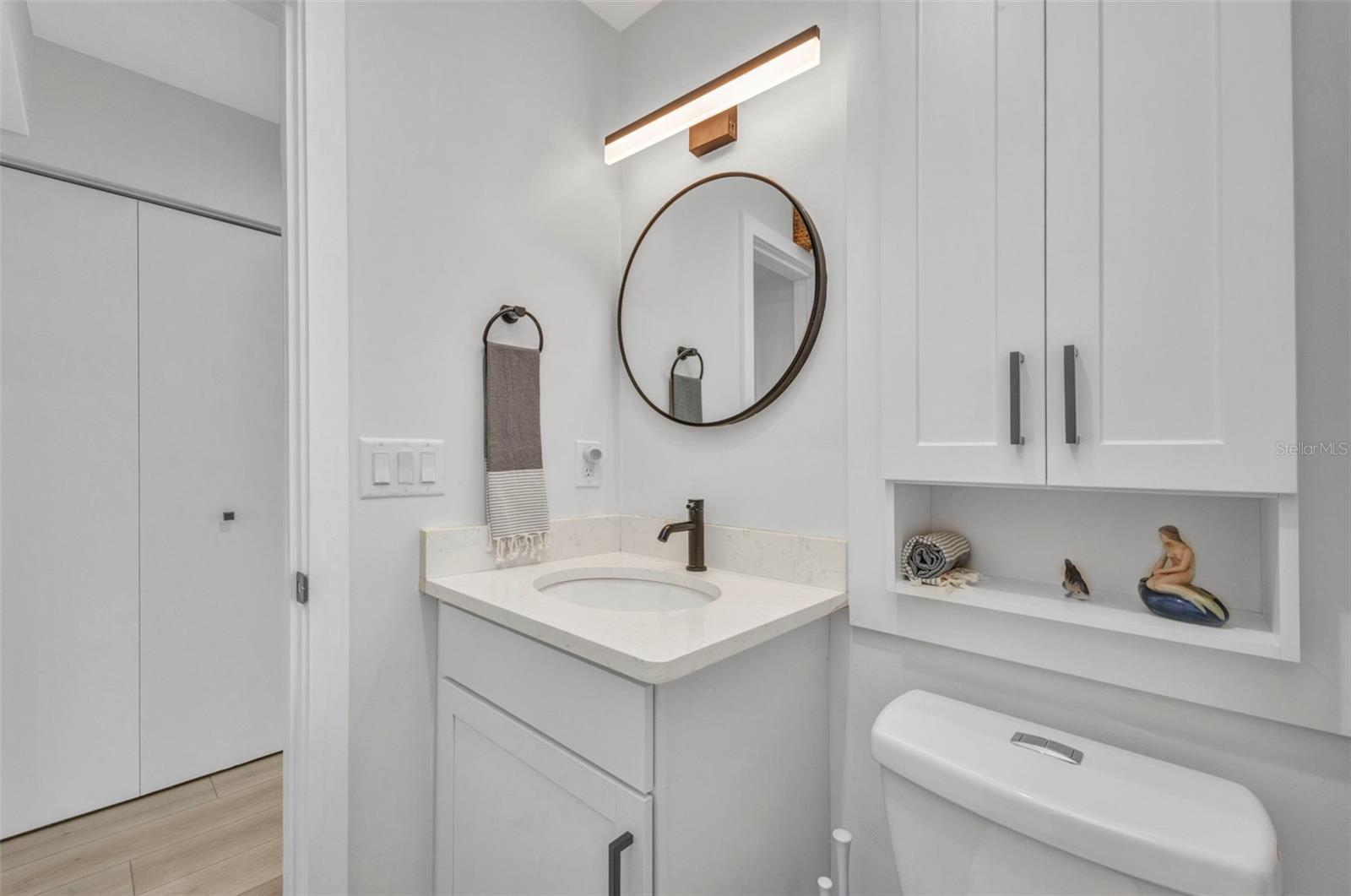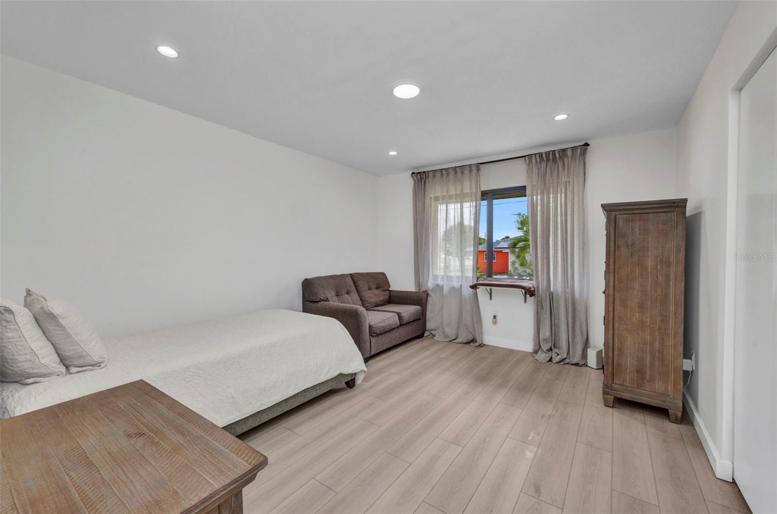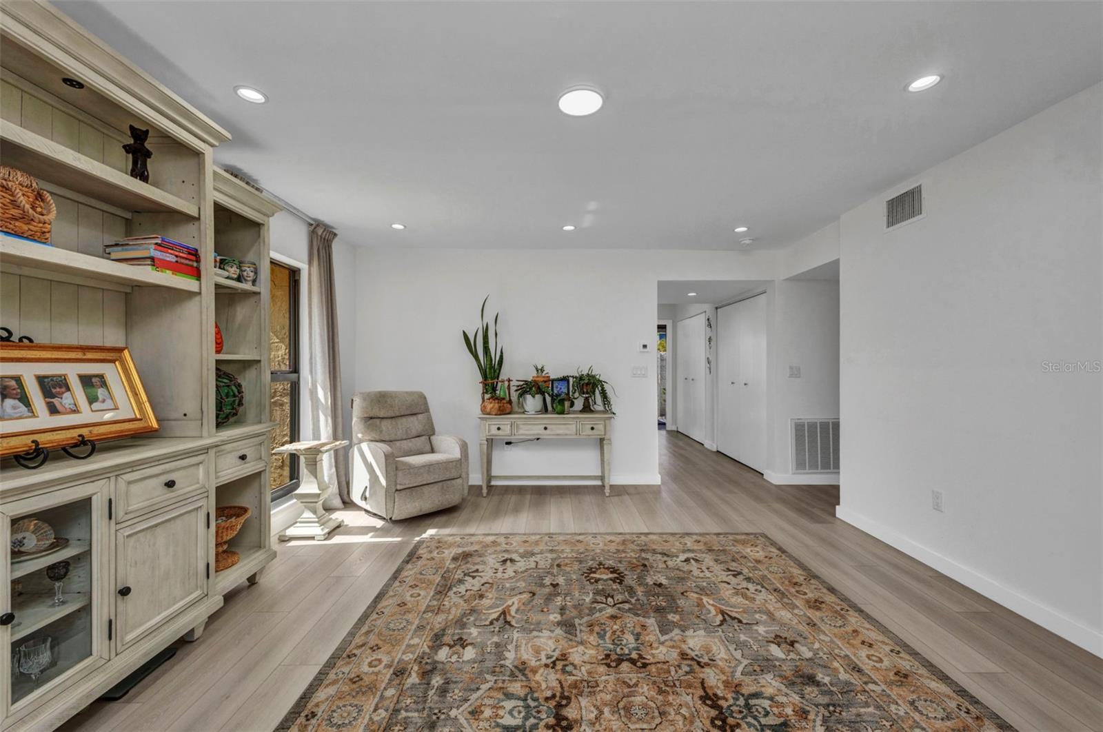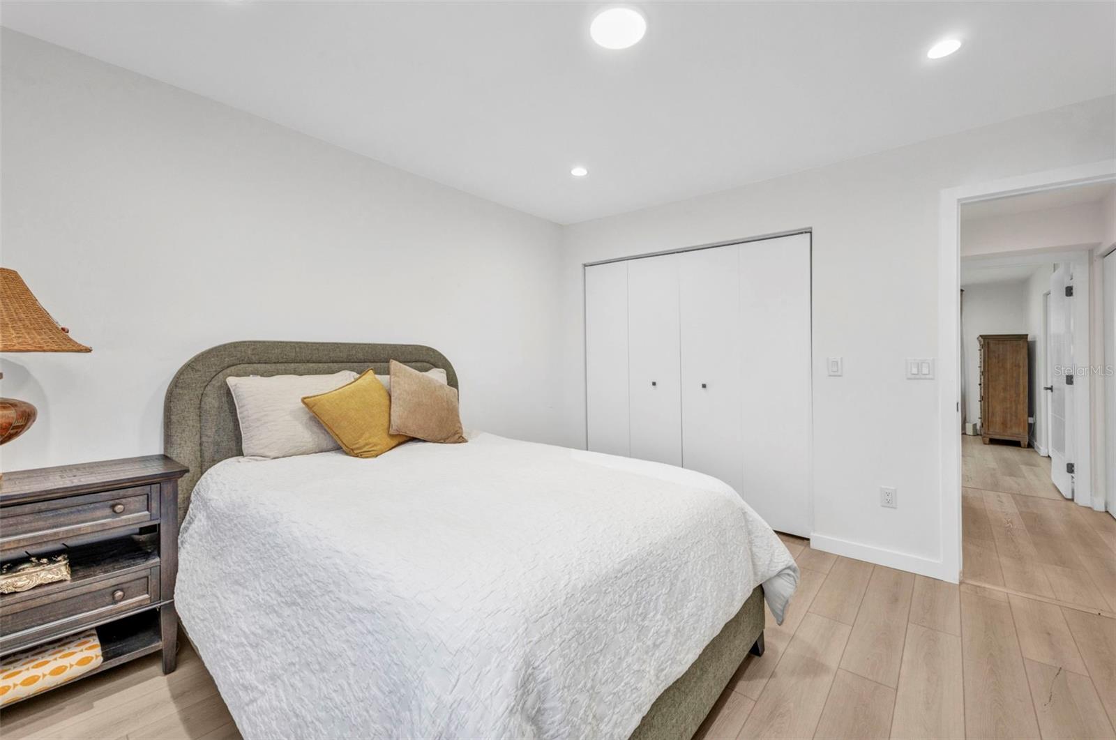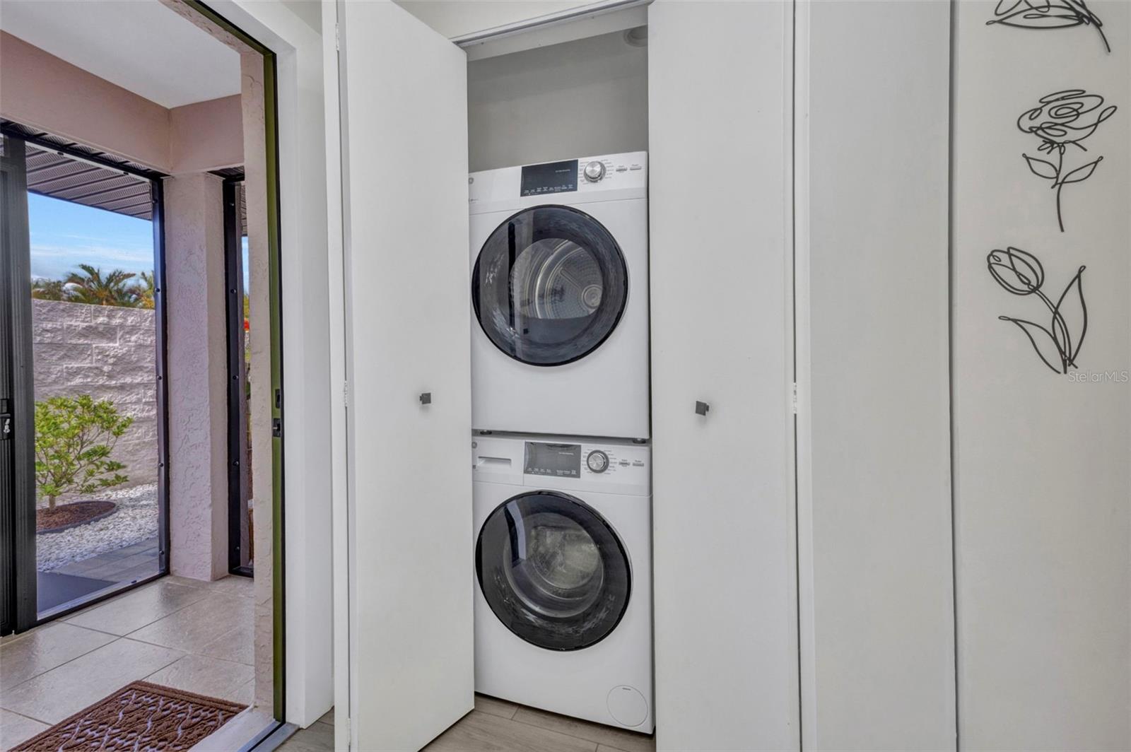 Tucked behind your very own double gate entrance, surrounded by tall concrete walls presents a HIGH ELEVATION 2 bedroom 1 bath, over 1,000 square foot residence, a secluded oasis, unscathed by recent storms. Enjoy your 2 private courtyards; a custom screened enclosed courtyard invites the outdoors protected from pesky pests while lounging, grilling, entertaining and keeping the children & pets safe, while your other courtyard offers infinite opportunities for your pets & children playing, gardening, spa placement, fire pit or nature inspired activities. Nestled in the serene and distinguished historic district of Punta Gorda, this home combines tranquility with convenience. Enjoy a vibrant lifestyle just steps away from scenic trails, farmers markets, local attractions, restaurants, charming shops, and the public library within walking distance. Enter through the new custom enclosed porch, into the home where natural light and LVP flooring flows from room to room. New sleek recessed lighting options illuminate throughout. Tailored cabinetry and granite sink in the kitchen compliments the white Quartz countertops. Full view glass panel door serves as easy access to side of home and an added perk of natural light. Ample Cafe area for extra dining options or extra seating as to be near the enclosed courtyard activities. Renovated bathroom, ergonomically friendly height Quartz vanity, tall custom deep-set wall cabinet, new toilet and a floor to ceiling tiled shower grants pleasure to use. Spacious bedrooms boast serene views from each new oversized high impact window. Living room is graced with floor to ceiling windows and sliders. Spacious secluded lanai with privacy/pet friendly screens features a double door storage option and access to the yard. Assigned close proximity parking to private entrance. Some of the many NEW improvements 2023~present...roof, high impact windows, HVAC system, water heater system for efficiency, interior and exterior electric panel upgrade, courtyard pavers, custom enclosed courtyard and front porch, dryer vent, gutters, hose bibs and landscaping. Enjoy the best of both worlds —the ease and security of condo living combined with the rare freedom of expansive, privately owned outdoor space. This well-appointed, beautifully updated home offers a non-intrusive HOA that maintains shared areas for carefree living while allowing you the creative freedom to personalize your property, all securely tucked behind your own double gates. A truly affordable opportunity for homeowners and investors alike to be part of a friendly, well-kept community.