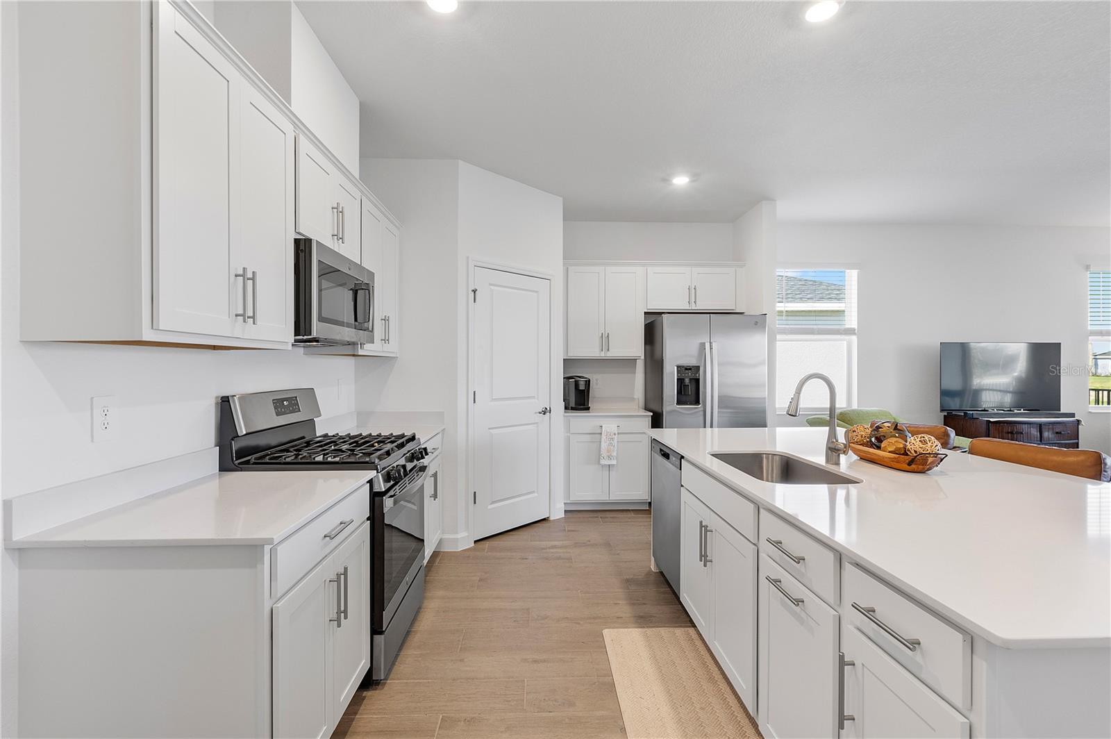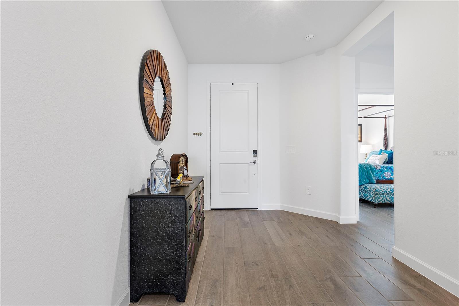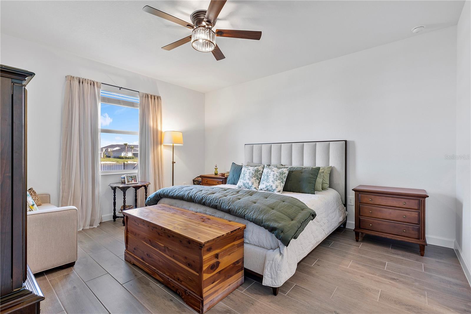 Welcome to your BETTER than NEW dream home in beautiful Babcock Ranch's newest community in Tuckers Cove! This stunning 3-bedroom + den, 3-FULL bathroom residence offers modern luxury and serene lakefront living with A HUGE FENCED IN BACK YARD! Enjoy durable and stylish luxury TILE plank flooring throughout—NO CARPET anywhere! The spacious open-concept living and dining area is framed by three large sliding glass doors that showcase breathtaking lake views and fill the home with natural light & HURRICANE IMPACT GLASS WINDOWS & DOORS !!! The gourmet kitchen features sleek white quartz countertops, gas stove, large island with sink, a large walk-in pantry, and a bright, airy feel perfect for entertaining. Step outside to a large, covered lanai and fully FENCED BACKYARD with extra space between neighboring homes—ideal for privacy and outdoor enjoyment. The front guest bedroom includes a walk-in closet, ceiling fan, and a private bath with a full vanity. A second guest suite offers its own private en suite with a walk-in shower. The luxurious master suite features curtains, a ceiling fan, two oversized walk-in closets, and a spa-like bath with double quartz sinks and a large walk-in shower. Additional upgrades include a laundry room with a built-in sink and cabinetry, ceiling fans in every room, and window treatments already installed. This spotless, move-in-ready home is the perfect blend of style, function, and tranquility. Don't miss this opportunity to own a brand new home with a gorgeous lake view in one of the most sought-after communities in Florida! Enjoy living in Babcock Ranch, America's first entirely solar-powered town, with access to multiple community pools, nature trails, with shopping and dining. Come enjoy the convenience of Babcock Ranch living with festivals, farmer's markets, Concerts, Health gym & just a golf cart ride to the grocery store. There is so much to do with hundreds of clubs and activities planned every month. There is a K-12 neighborhood school with a brand new sports complex, including football, soccer and baseball fields. There are many playgrounds and parks, including multiple dog parks and a brand new skate park and six new parks along the nature trails. Babcock Ranch is a top master planned community and was featured on CNN and 60 Min for not losing any power or internet after hurricane Ian made a direct hit and Milton came very close. Beautiful parks and amenities let you experience SW Florida at its finest! Schedule your private tour today and make your dream home a reality! Come live a better life at Babcock Ranch!