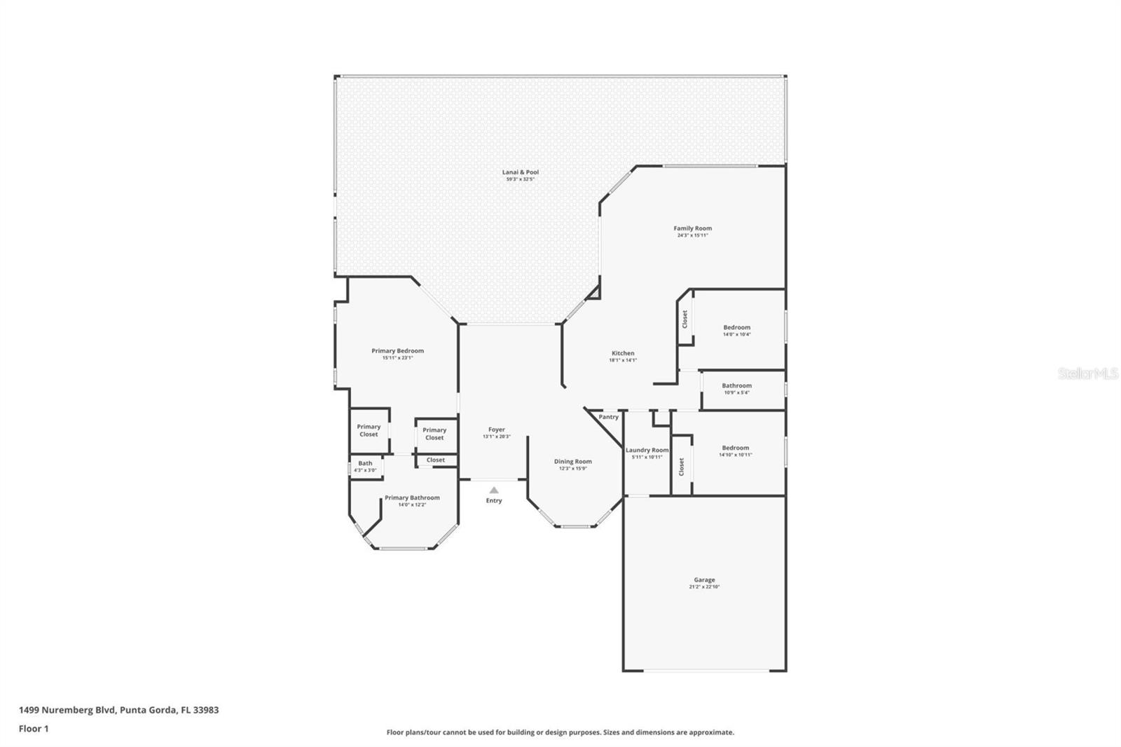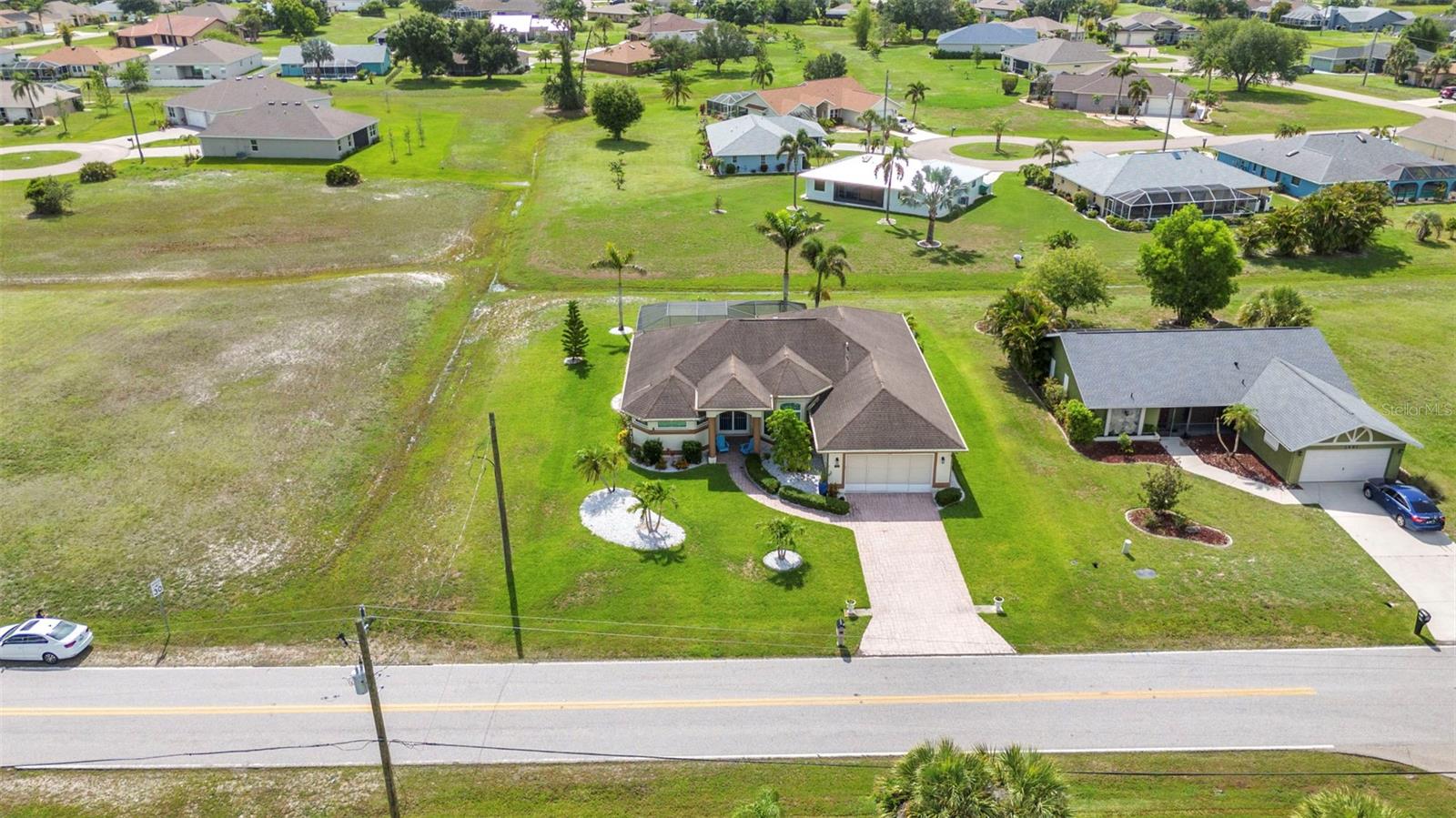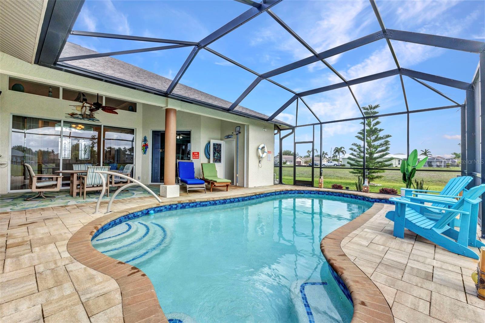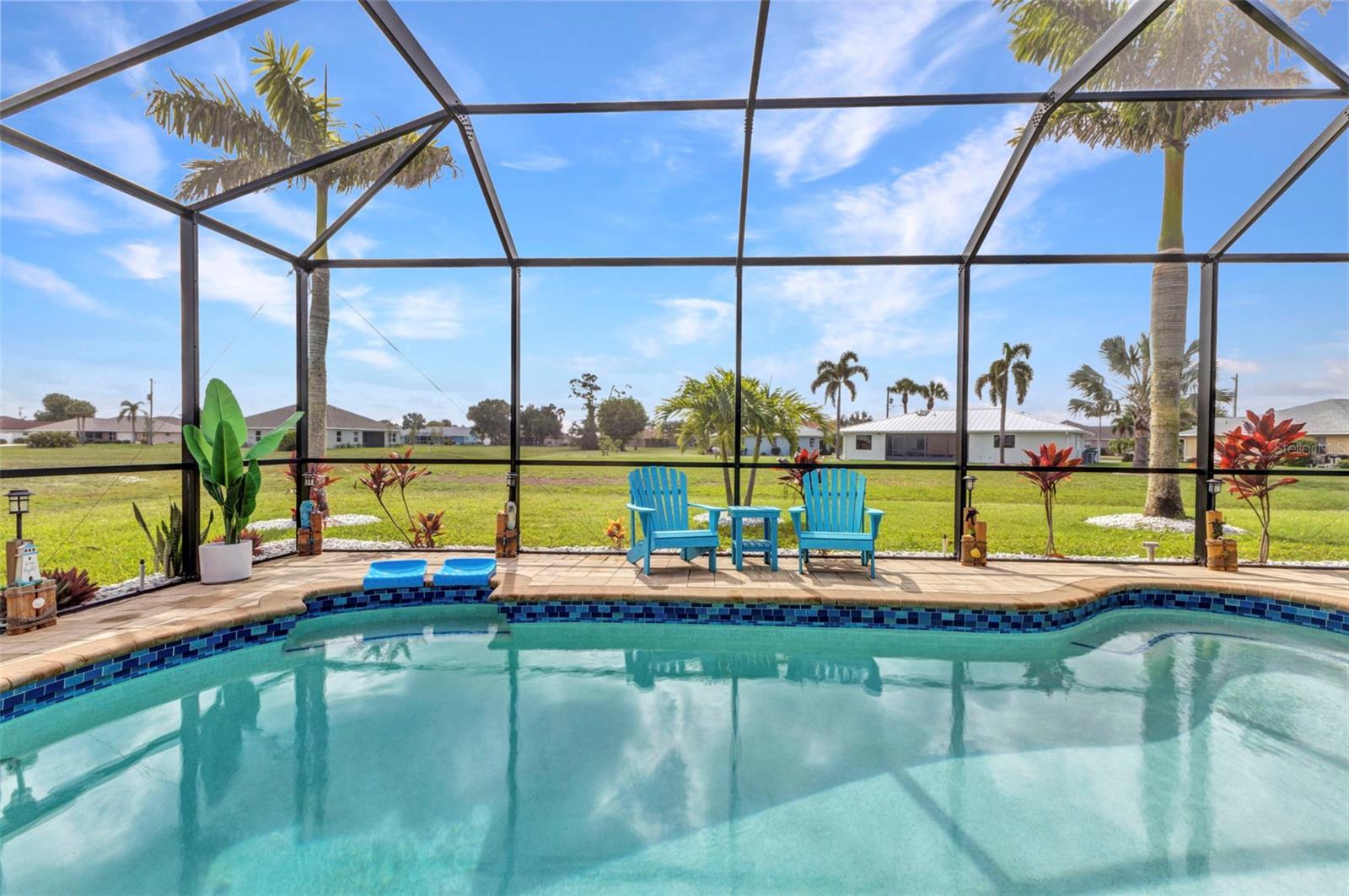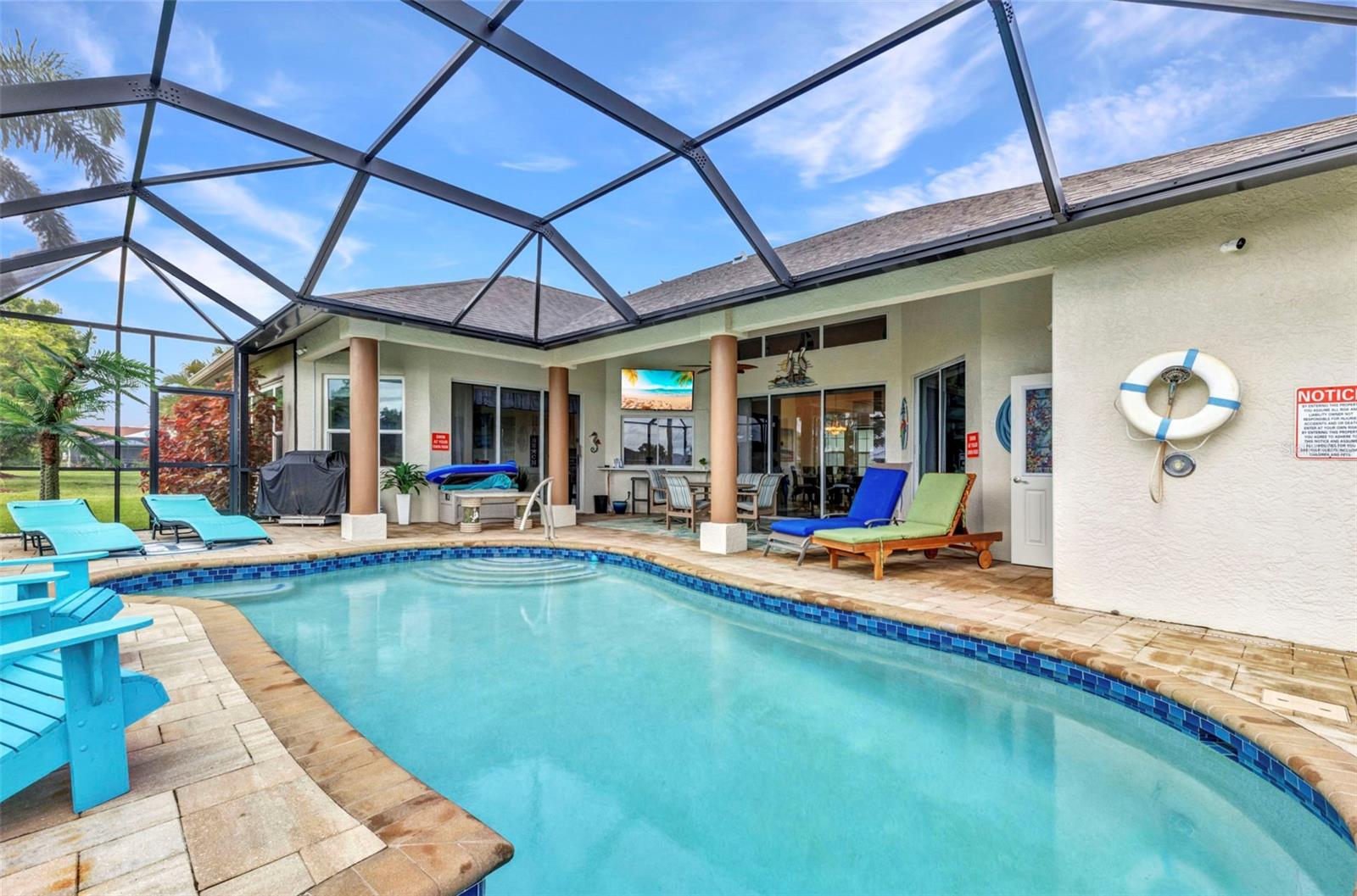 Welcome to 1499 Nuremberg Blvd, a well-maintained home located in the highly desired community of Deep Creek in beautiful Southwest Florida. This home features three bedrooms, two full bathrooms, one half bathroom, a two car garage, and a generous 2,198 square feet of living space, making this home a must see for all types of buyers! On top of those great features, you also get a large heated pool that not only has color changing LED lights but is also 6ft deep at one end and lies within a screened-in lanai with high quality bug proof screening that was done just two years ago. The view from your screened-in lanai is priceless as this great home sits on not one, but two expansive greenbelts giving you additional space and privacy to the side and rear. The layout of this home flows nicely, and from the moment you enter the front door you will be immediately presented with the vast views through the formal living room and into the lanai and beyond! On the left of the home you will find your primary bedroom suite with an oversized bedroom, two large walk-in closest, and a spacious bathroom with a convenient fan to help keep you cool while getting ready. Continuing to the right of the home you will find an area at the front of the home perfect for a formal dining room or office space. Beyond that you enter into the large kitchen with crown molding, plenty of cabinets, quartz countertops, and quite spacious family room, both with grand views of the lanai and into the community. Finally on the right side of this spectacular home you will find your two bedrooms, second full bathroom, and laundry room with exterior door leading to the garage. Let’s now head to the pool area and you will quickly realize you are entering paradise. Sparkling heated water, endless views, a half bathroom, pool shower, and plenty of room under cover or in the open make this space in the home quite often a favored spot for all. From get togethers to quietly relaxing, whatever your mind can think of can be achieved out here! Back inside the home we have to mention more great updates and features including the elegant stamped driveway, sliding garage door screen, 13ft ceilings, wifi controlled thermostat, wifi controlled patio lights, ceiling fans in all rooms, additional water treatment system, full covered external security camera system, city water and sewer but well-fed irrigation to save on watering costs, professional landscaping including high end rocks and palm trees, hurricane windows and doors with additional hurricane shutters, 150mps impact Kevlar roll down screens in the lanai, exterior garage door opener, and flood lights around the home. Don’t forget to check out the 3D virtual tour and floorplan to get a great idea of the home layout before calling your favorite real estate agent to see this immaculate home in person! With very low annual HOA Fee of less than $15/month, no flood insurance required, and close proximity to I75 and lots of great shops, dining, and entertainment, this home might be exactly what you have been looking for. You might as well stop by downtown Punta Gorda, which is just about 10 minutes away, and treat yourself to waterfront dining and some of the best fishing and boating Florida has to offer! Welcome to paradise!